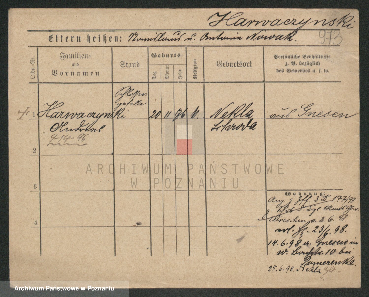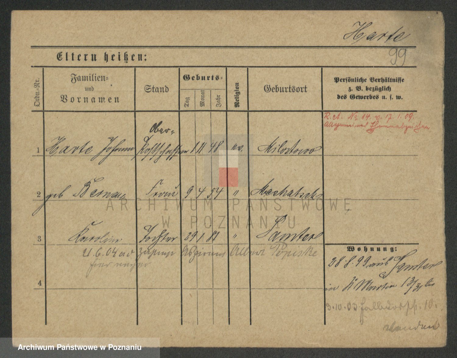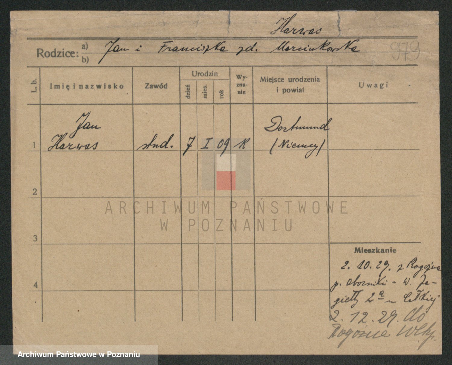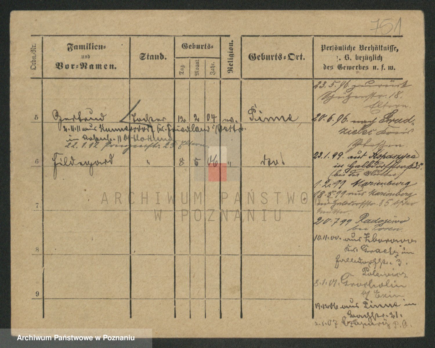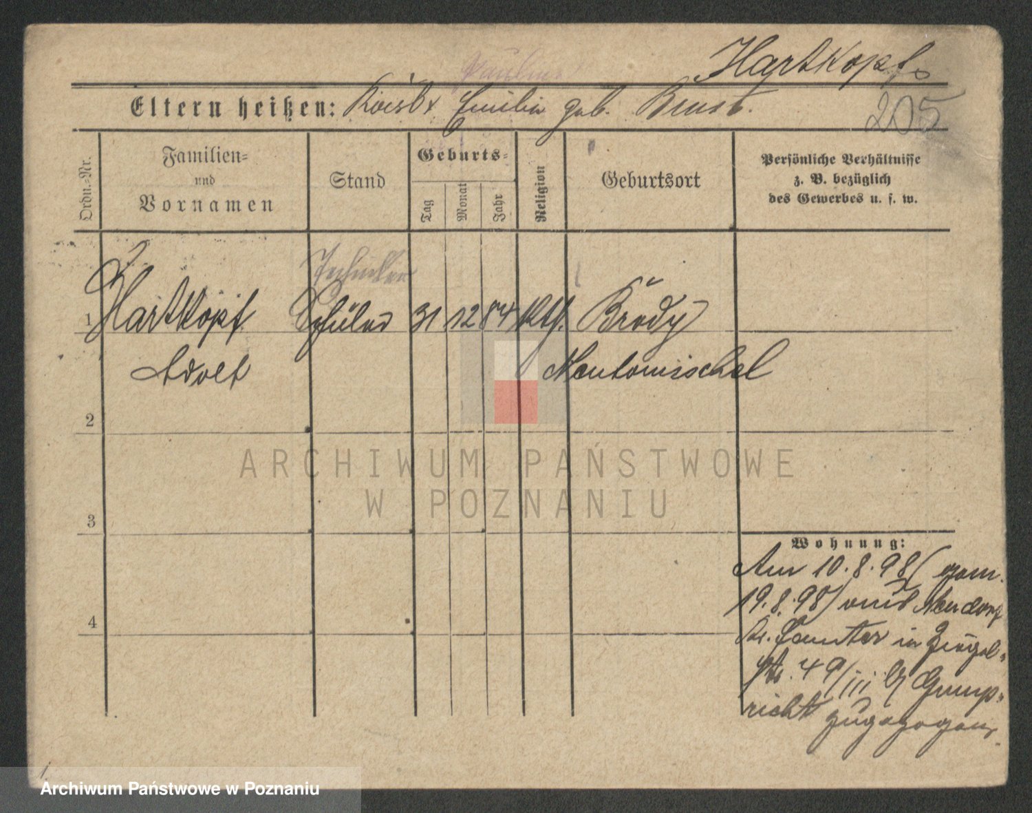 Podgląd karty osobowej dostępny jest po kliknięciu na nazwisko lub ikonkę karty. Można dokonywać powiększenia (ikony na górze) lub przechodzić między kolejnymi skanami (strzałki po bokach).