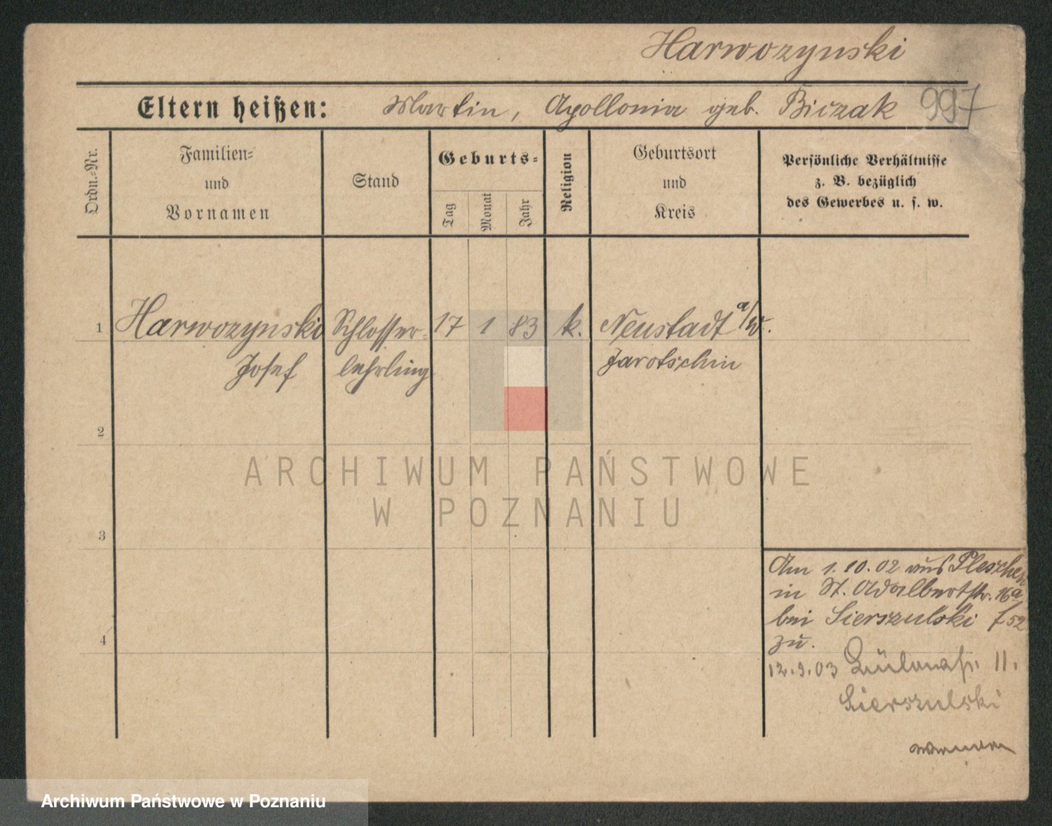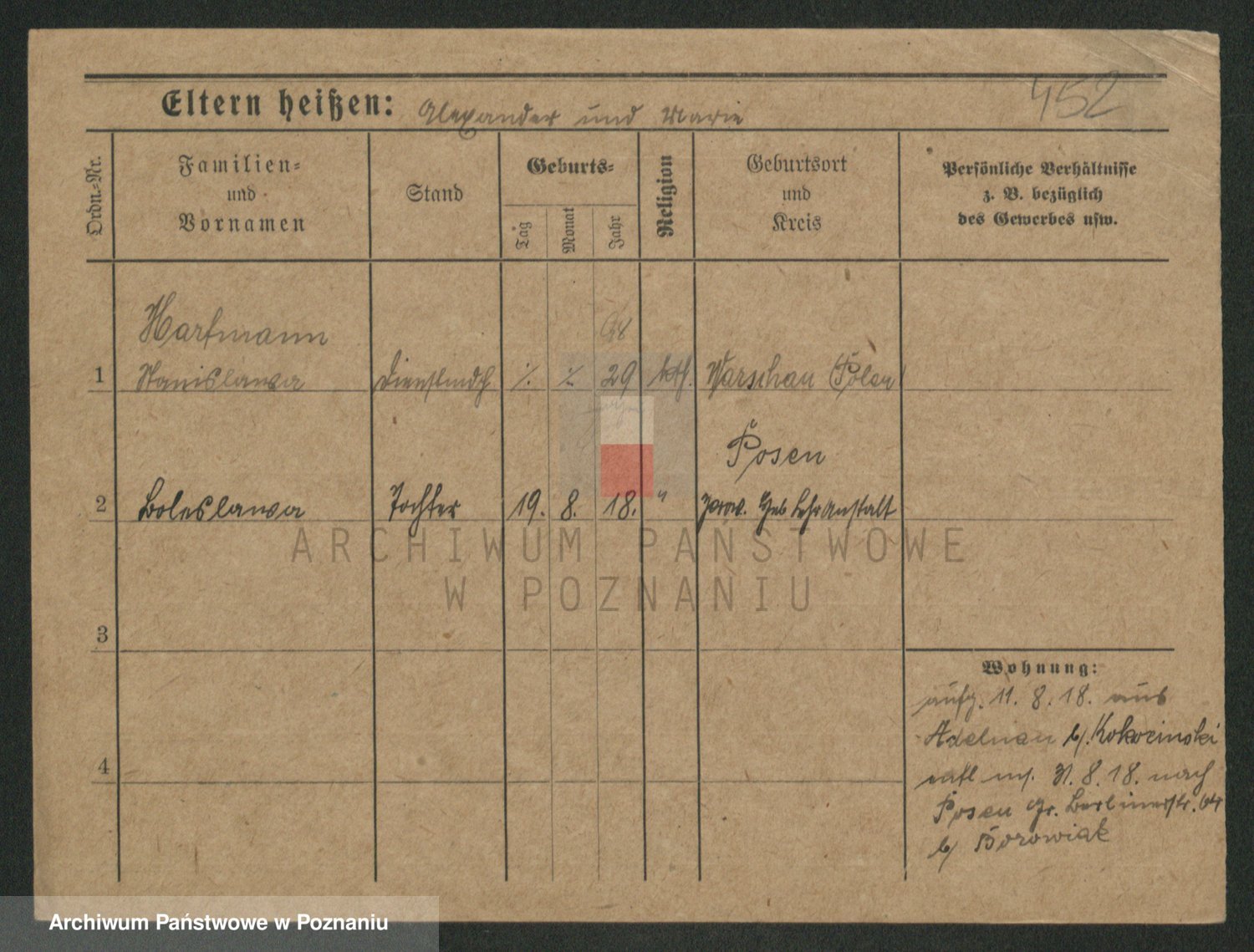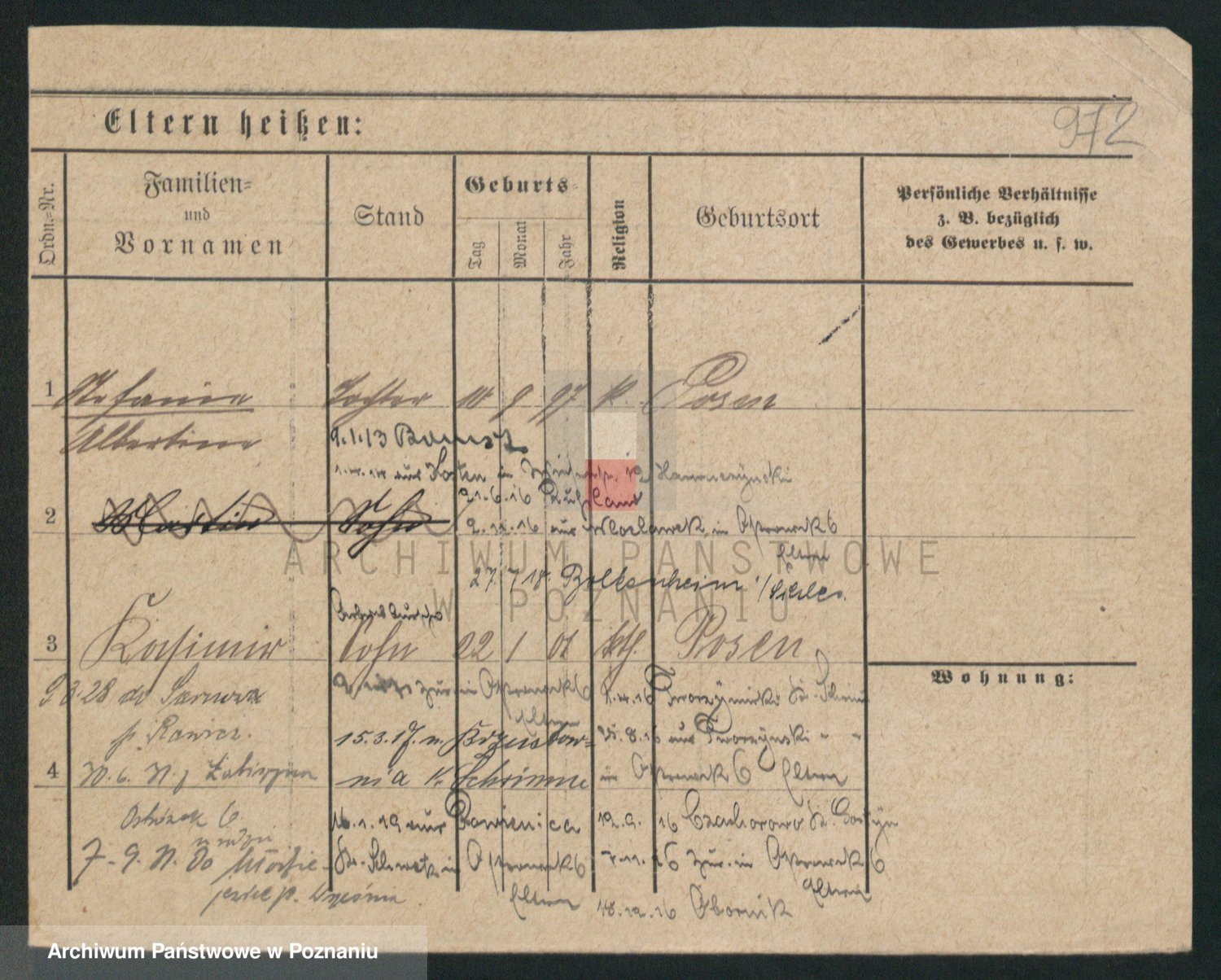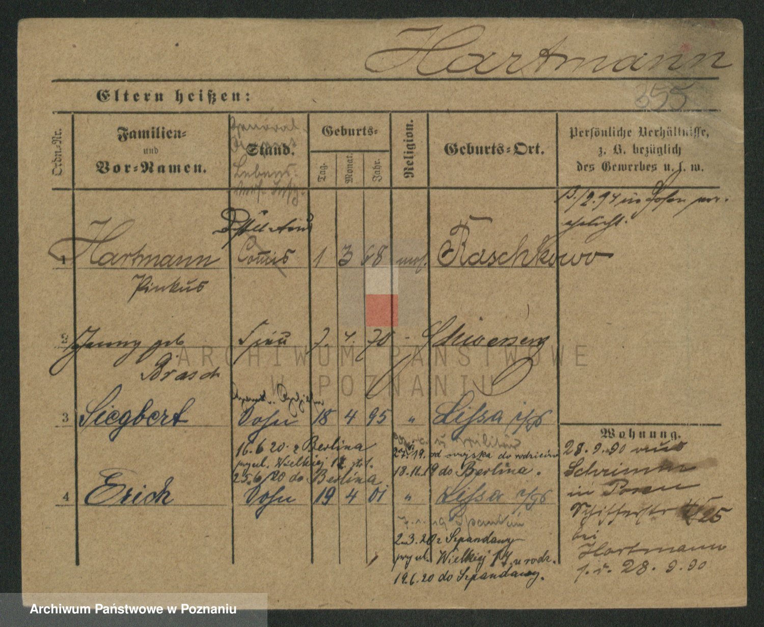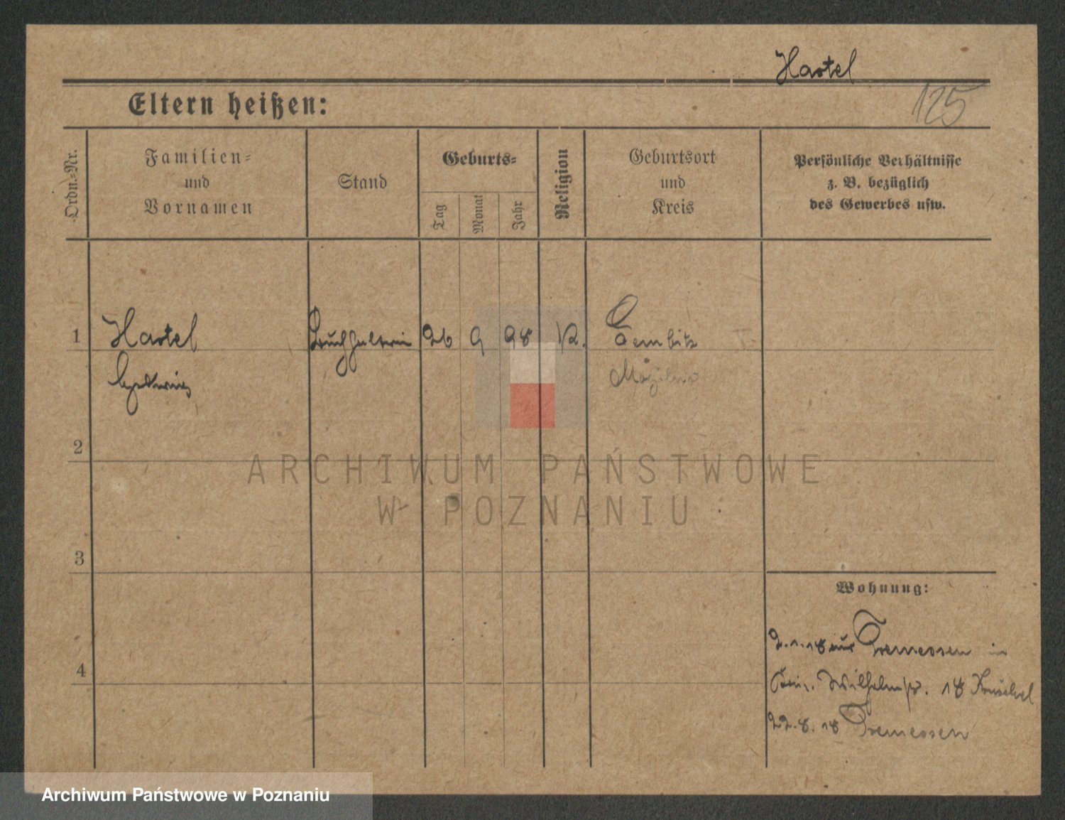 Podgląd karty osobowej dostępny jest po kliknięciu na nazwisko lub ikonkę karty. Można dokonywać powiększenia (ikony na górze) lub przechodzić między kolejnymi skanami (strzałki po bokach).