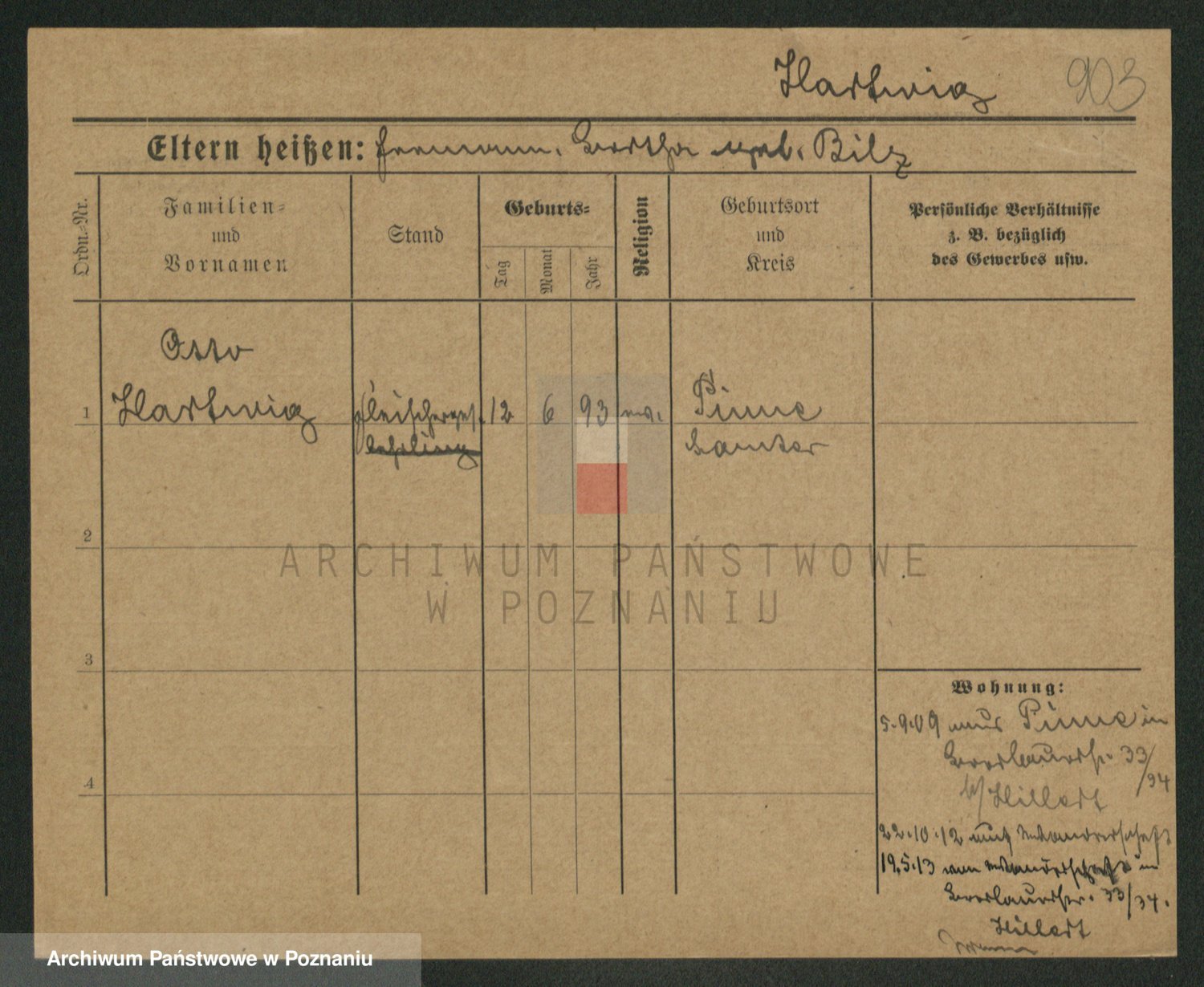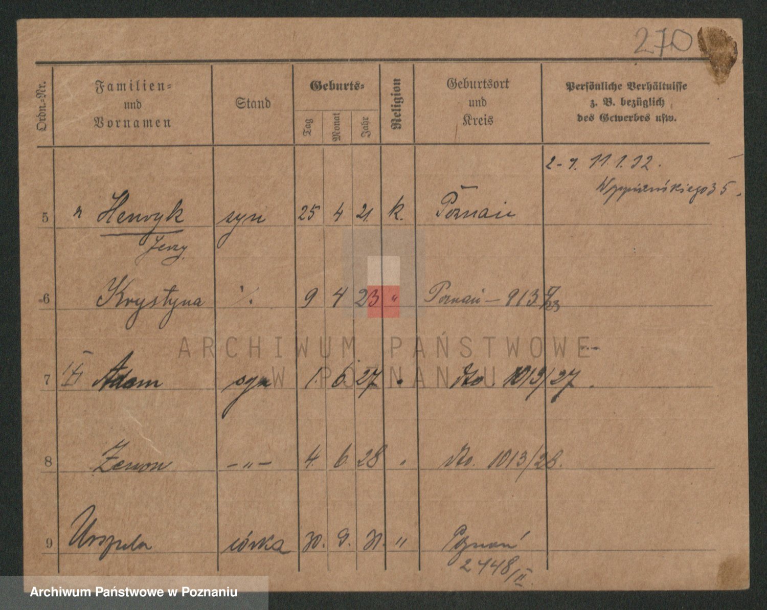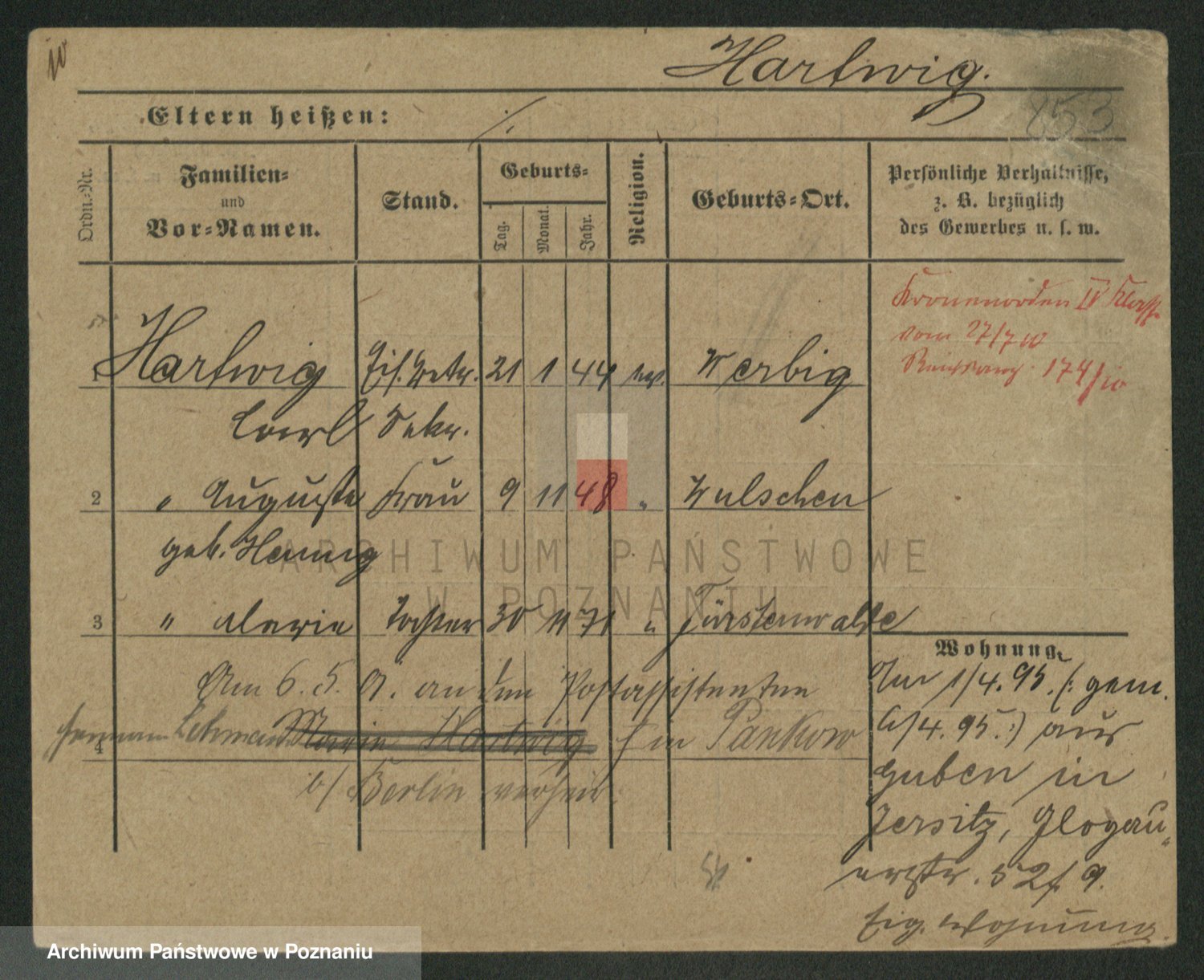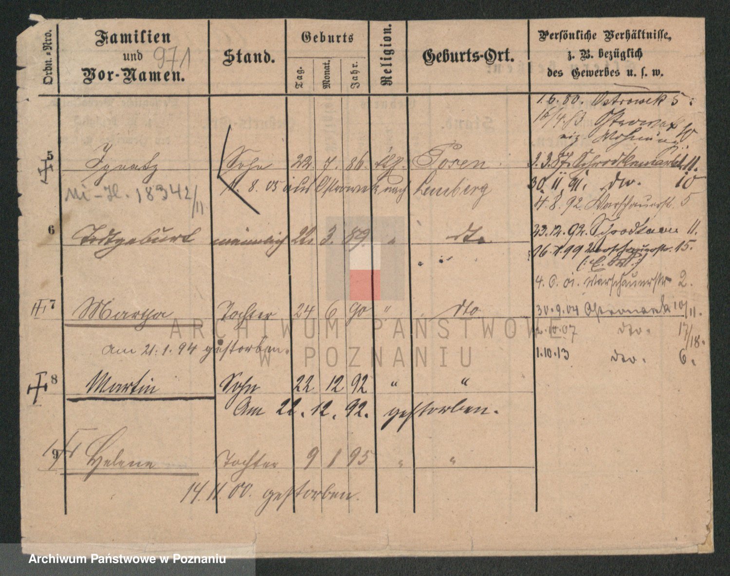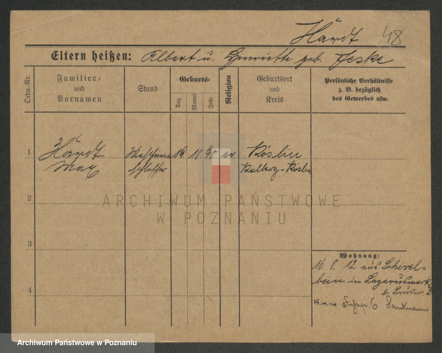 Podgląd karty osobowej dostępny jest po kliknięciu na nazwisko lub ikonkę karty. Można dokonywać powiększenia (ikony na górze) lub przechodzić między kolejnymi skanami (strzałki po bokach).