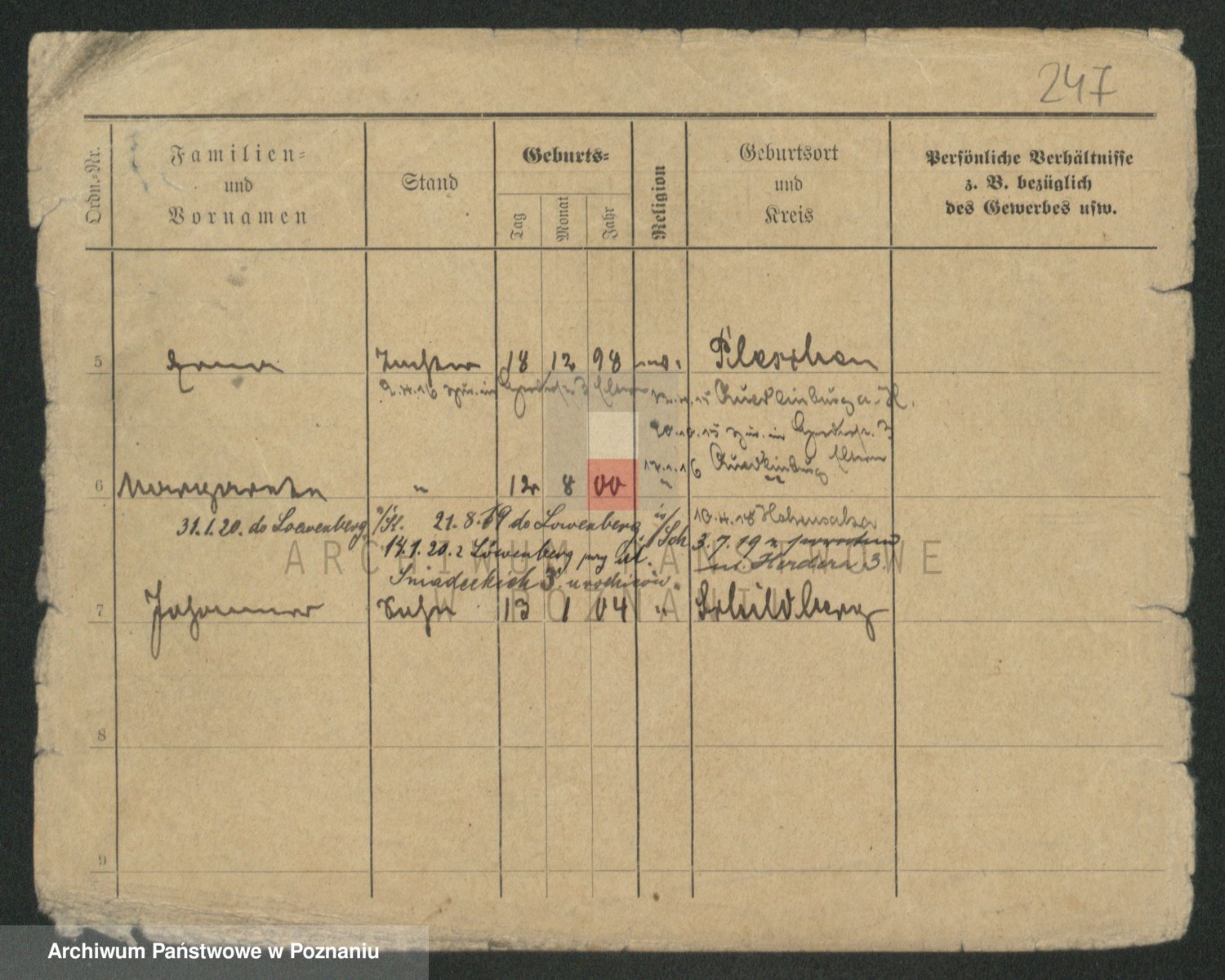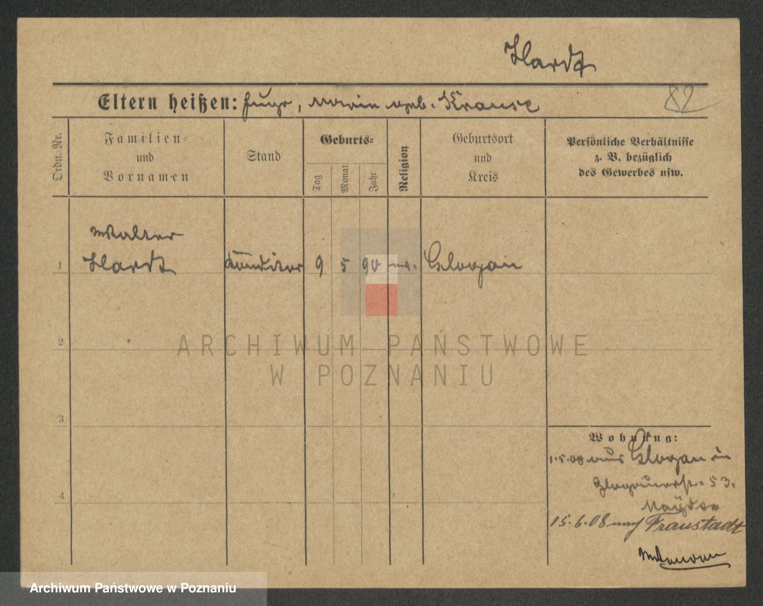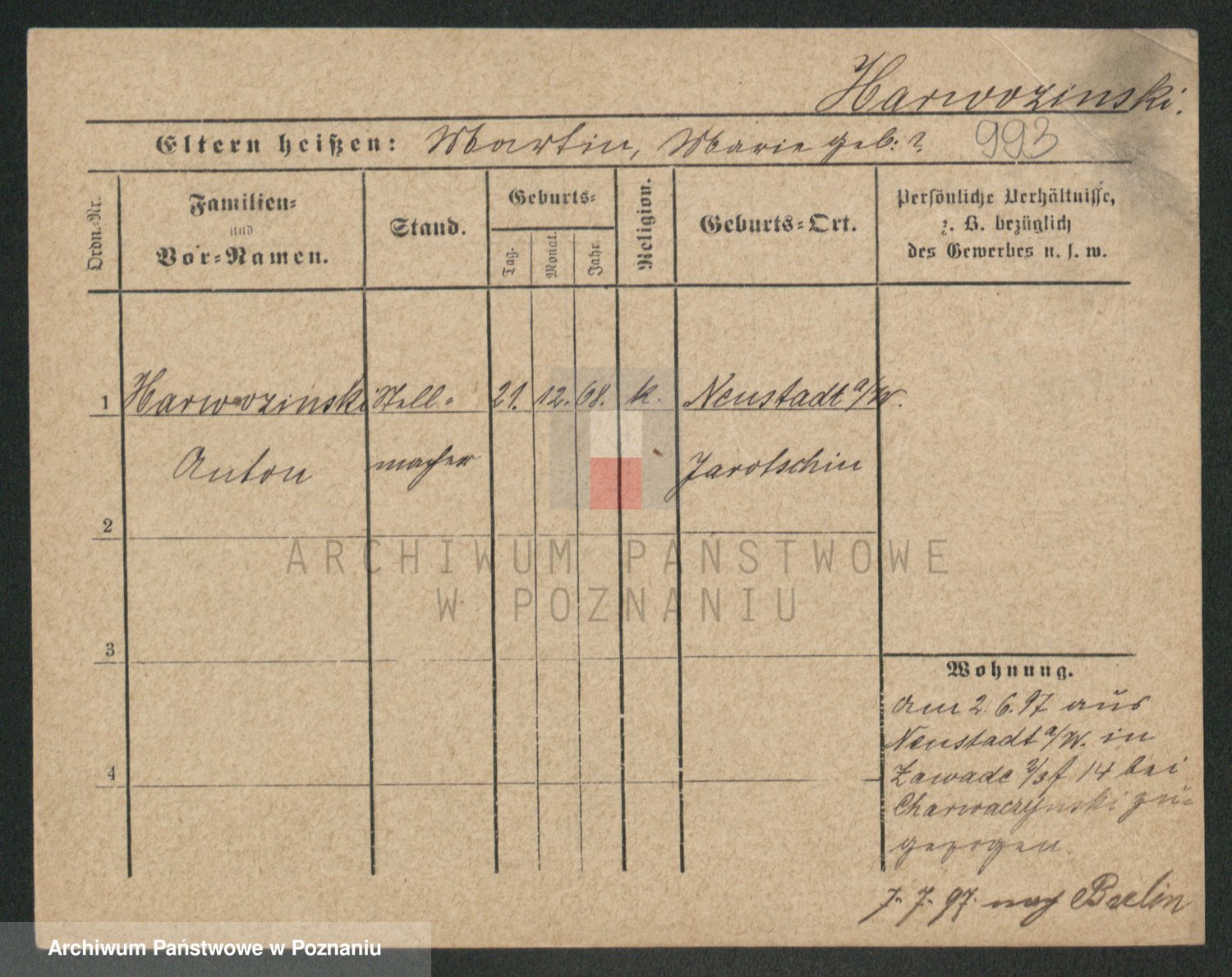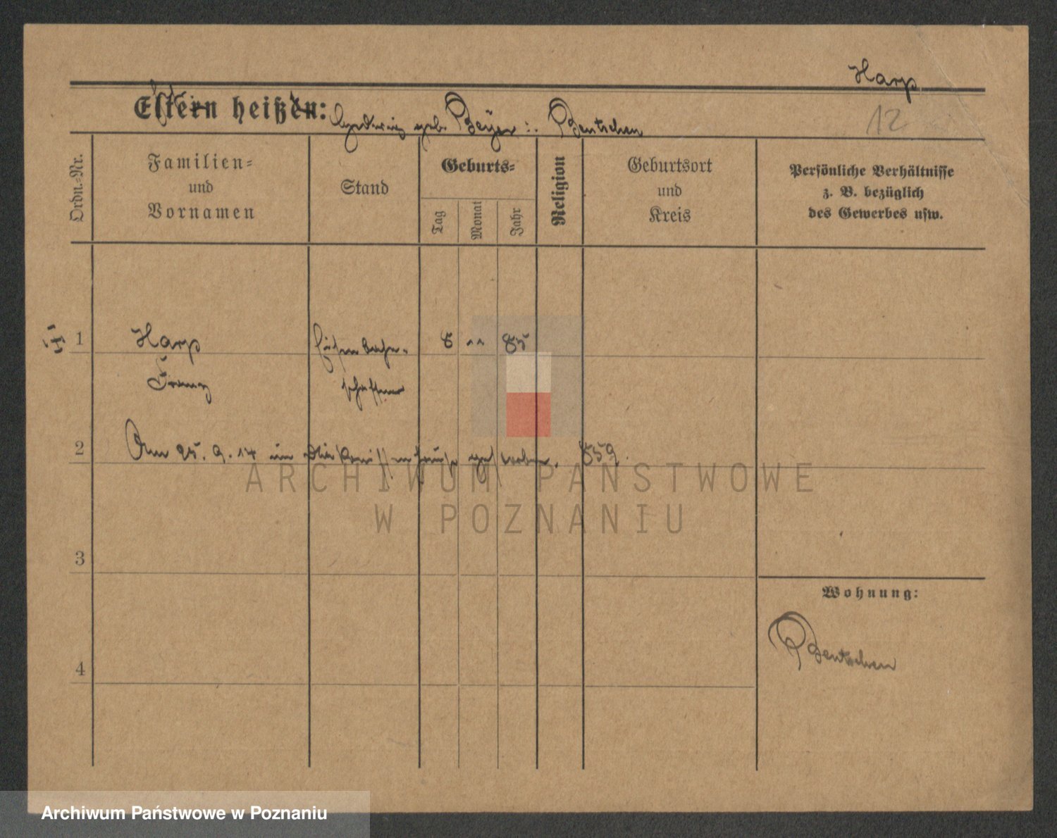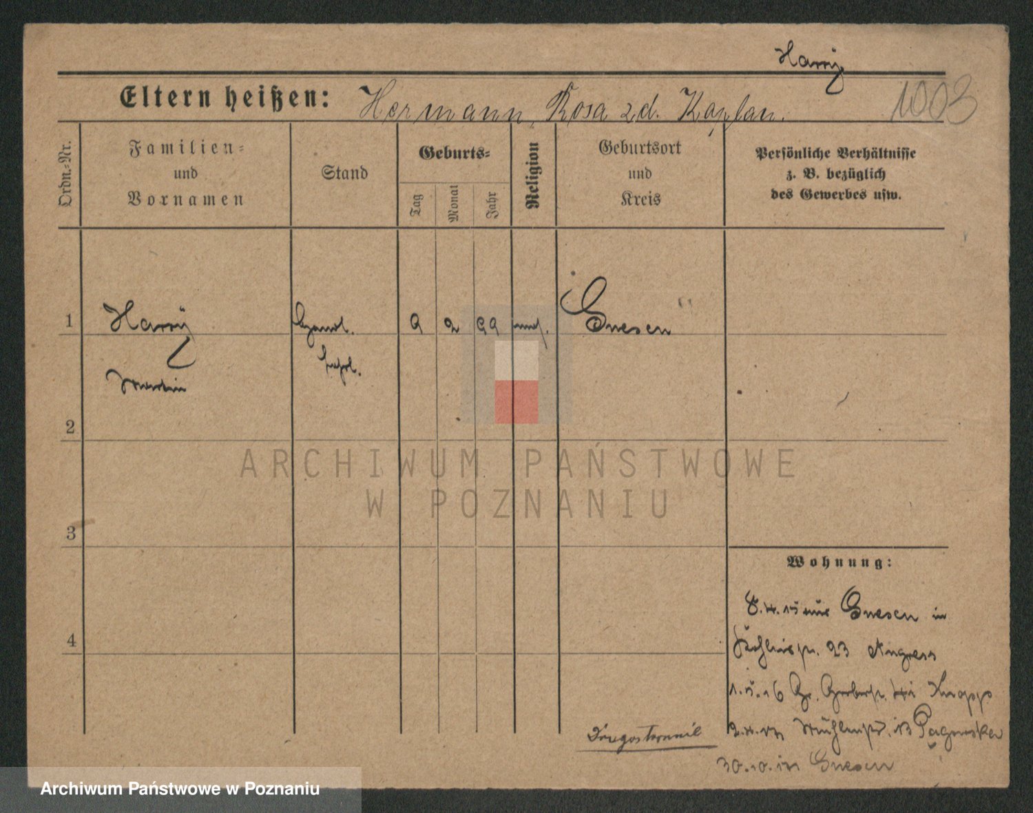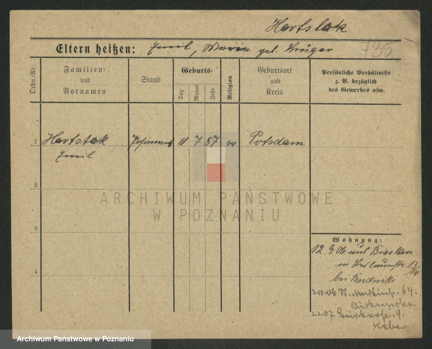 Podgląd karty osobowej dostępny jest po kliknięciu na nazwisko lub ikonkę karty. Można dokonywać powiększenia (ikony na górze) lub przechodzić między kolejnymi skanami (strzałki po bokach).