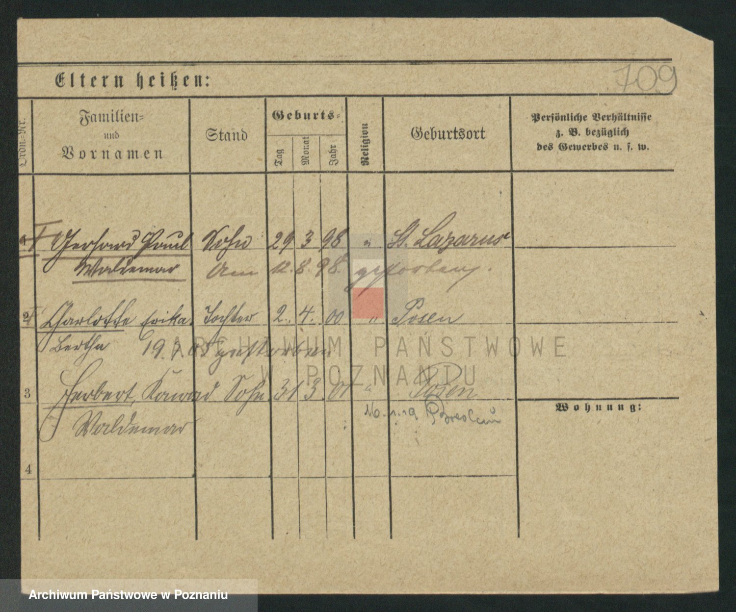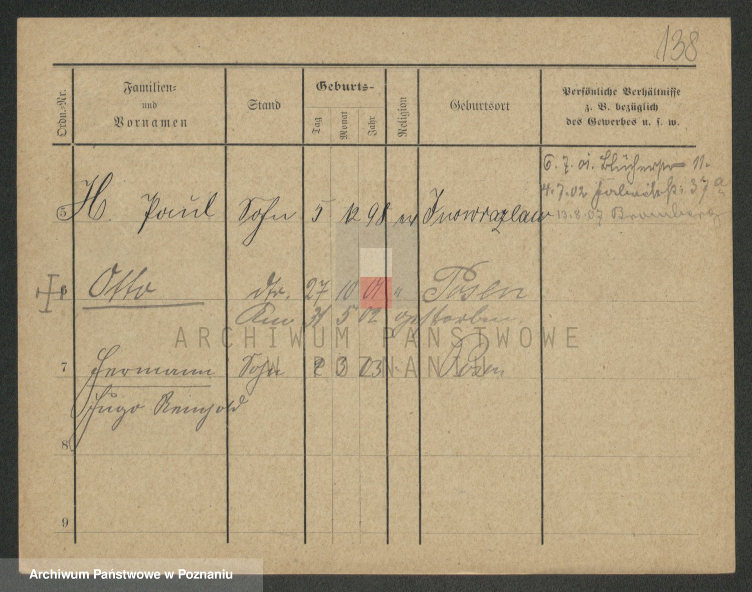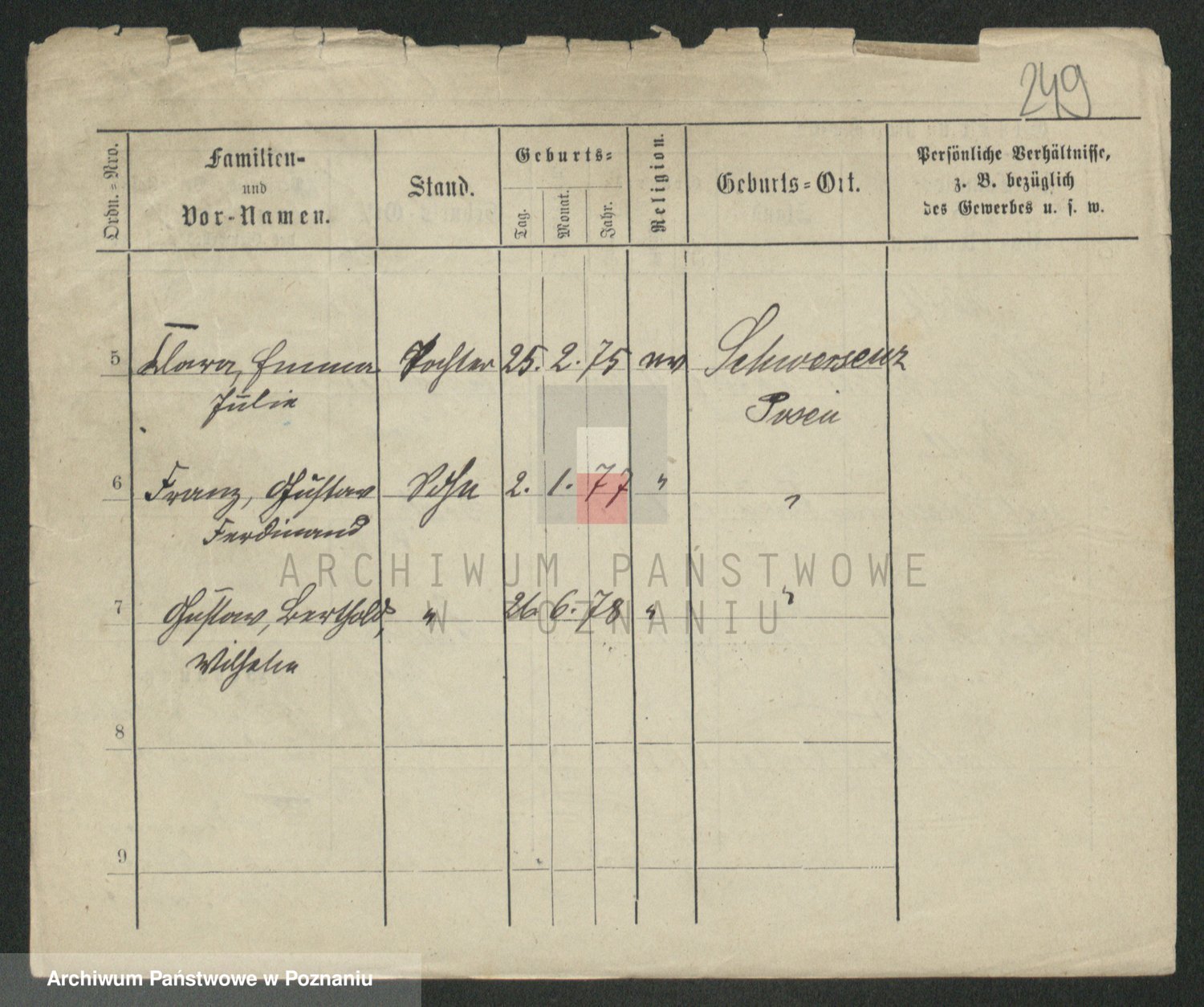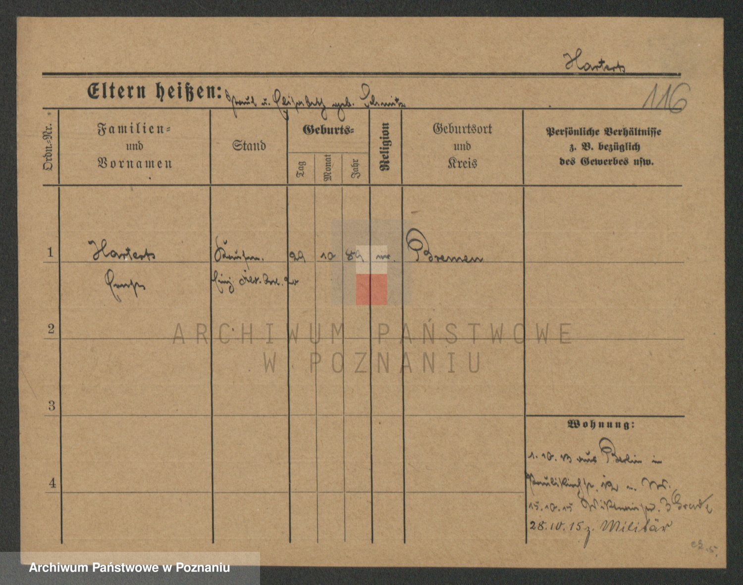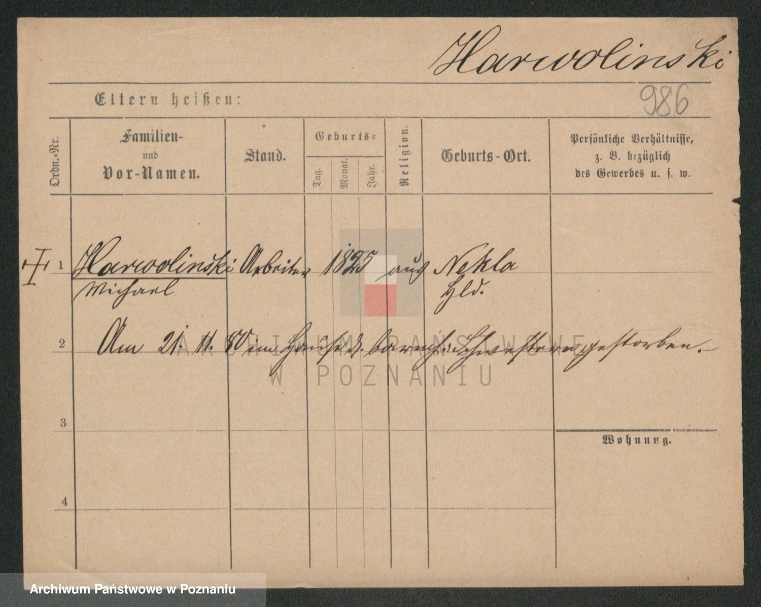 Podgląd karty osobowej dostępny jest po kliknięciu na nazwisko lub ikonkę karty. Można dokonywać powiększenia (ikony na górze) lub przechodzić między kolejnymi skanami (strzałki po bokach).