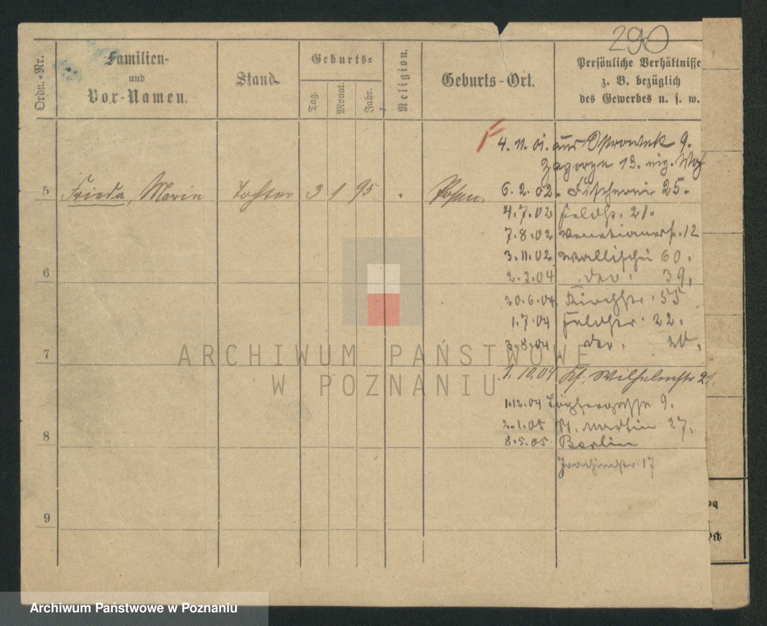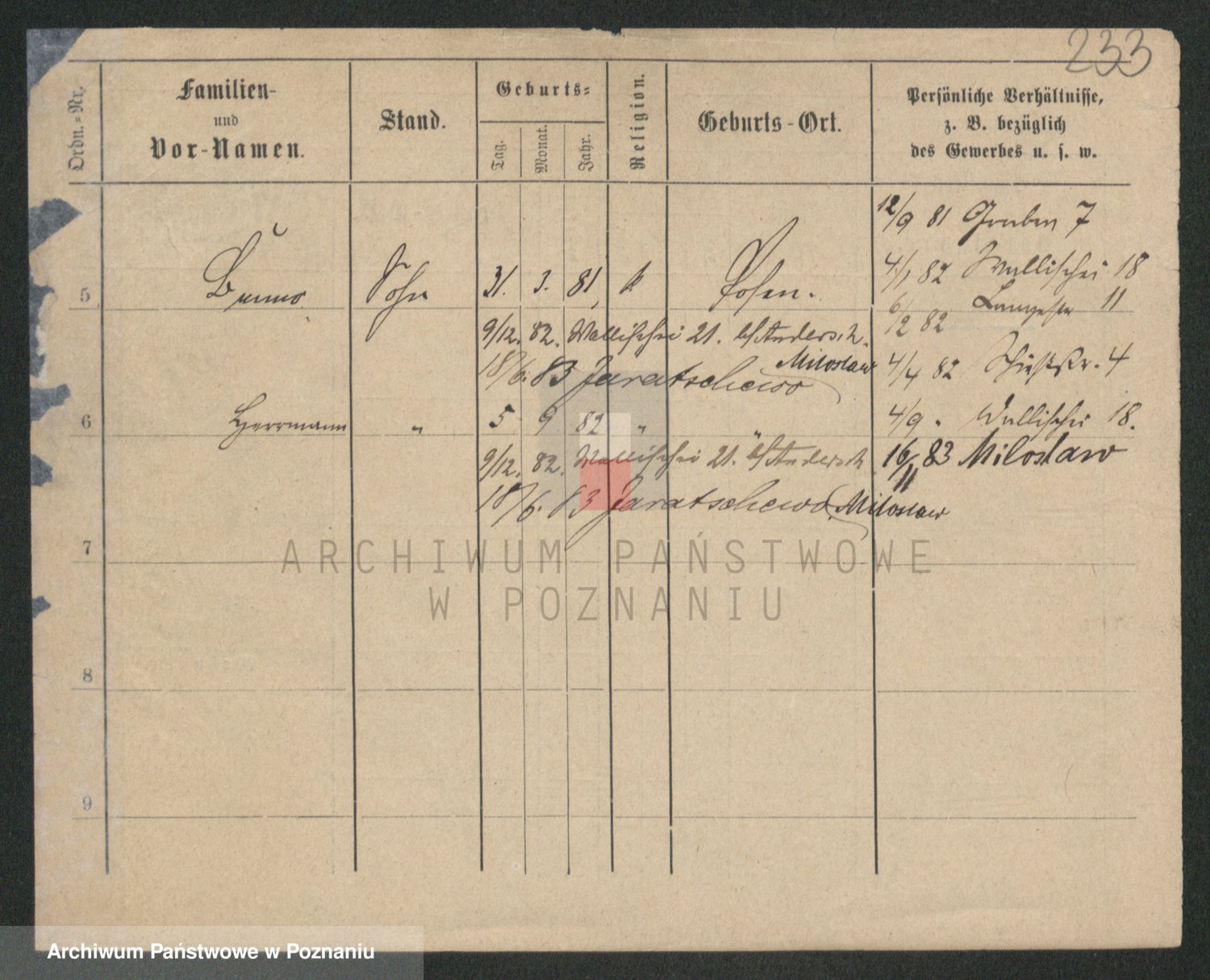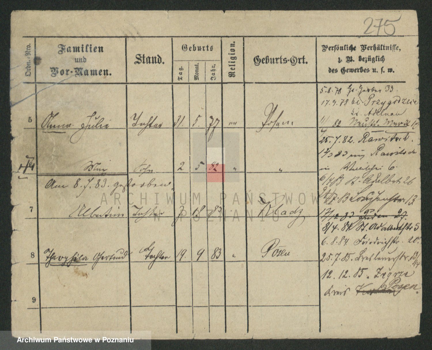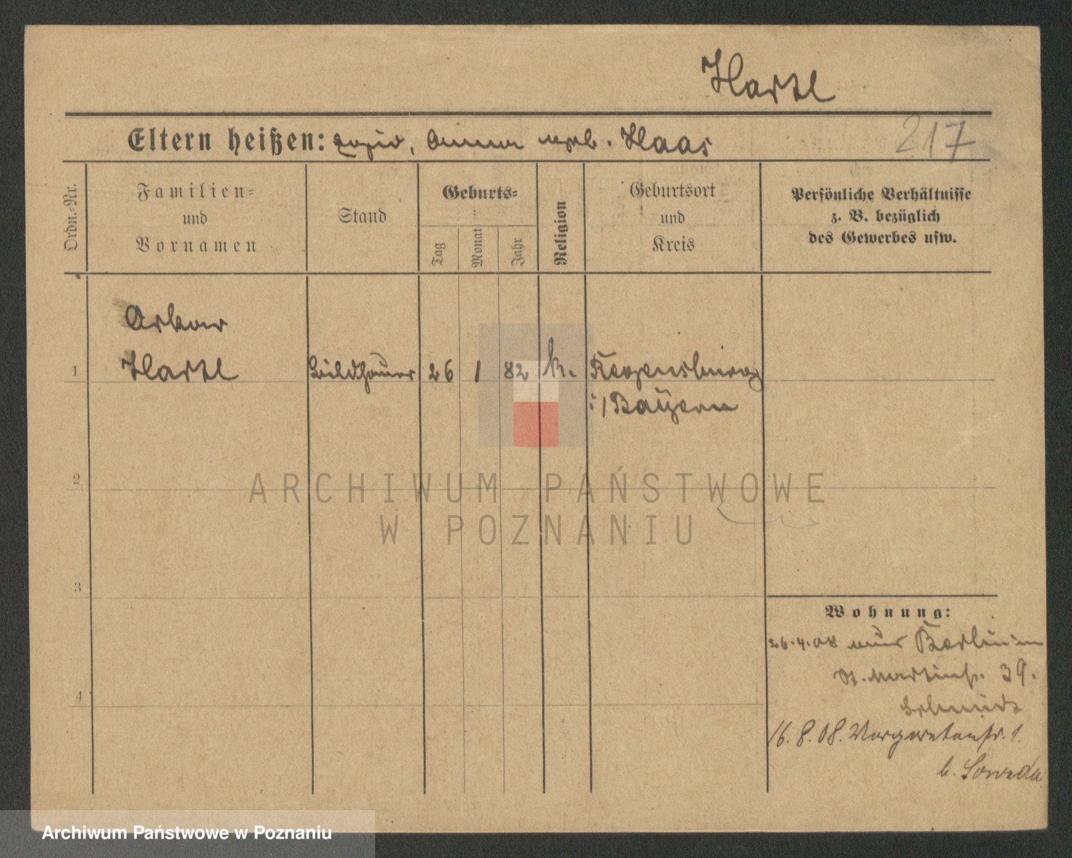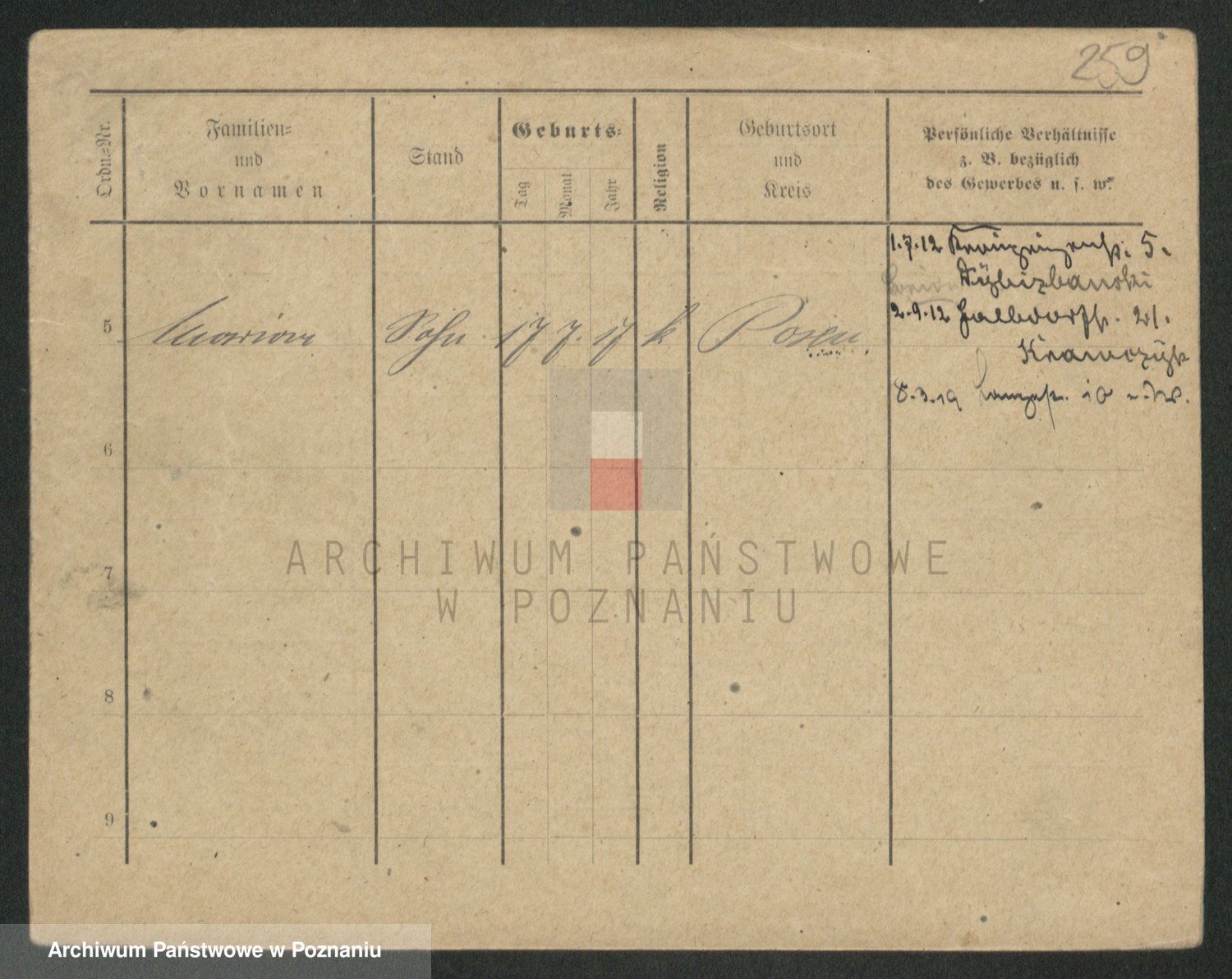 Podgląd karty osobowej dostępny jest po kliknięciu na nazwisko lub ikonkę karty. Można dokonywać powiększenia (ikony na górze) lub przechodzić między kolejnymi skanami (strzałki po bokach).