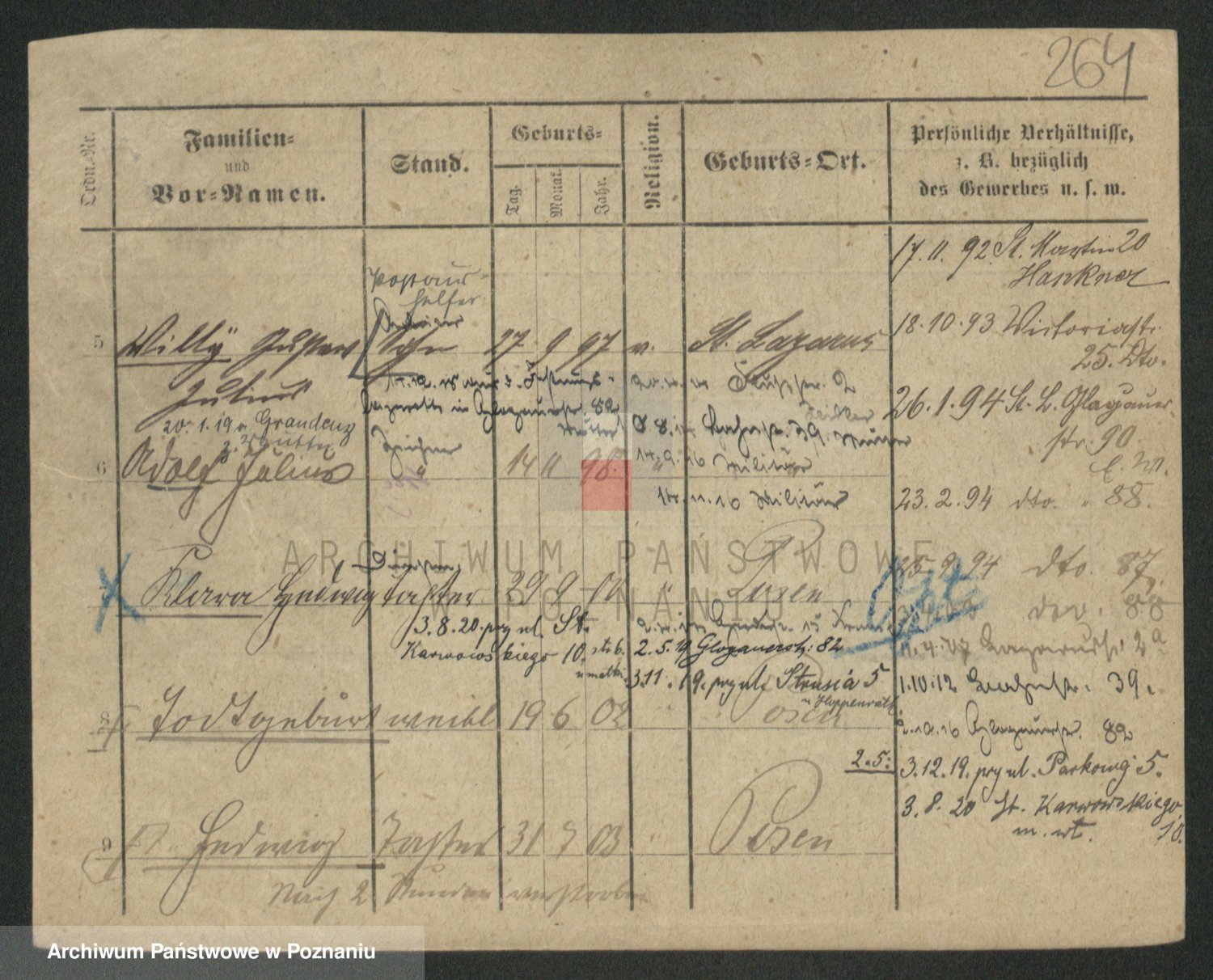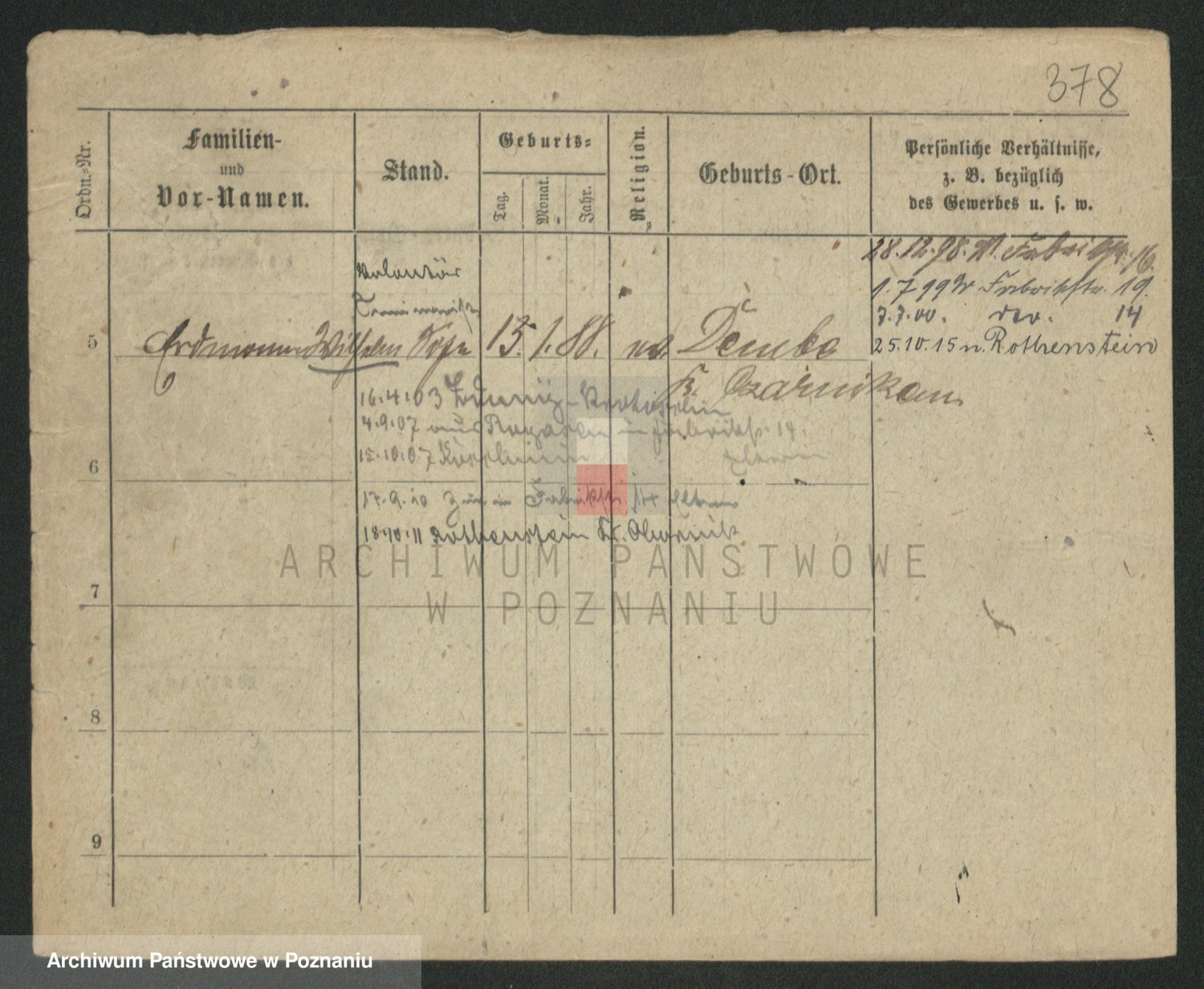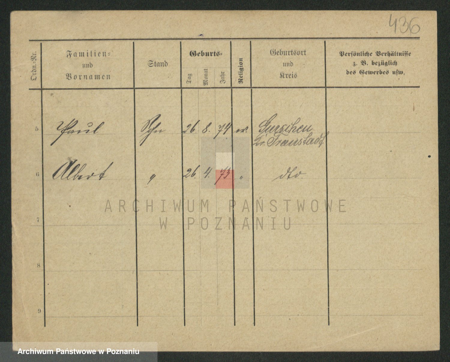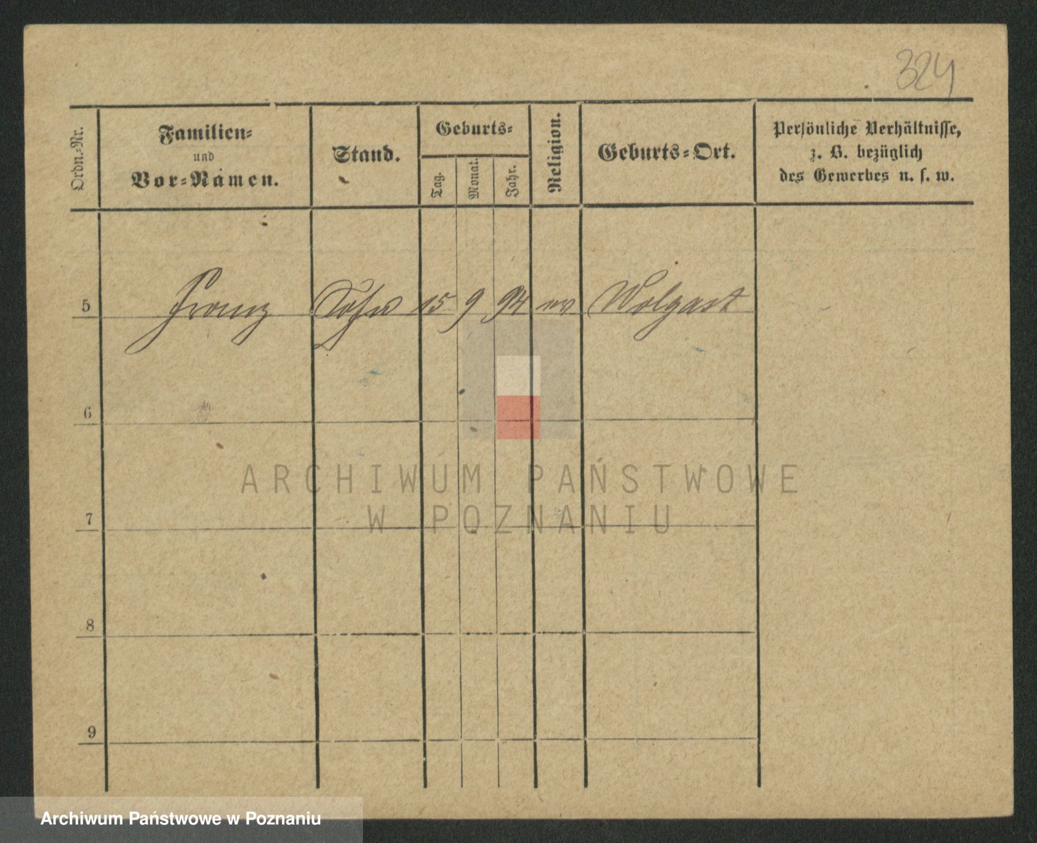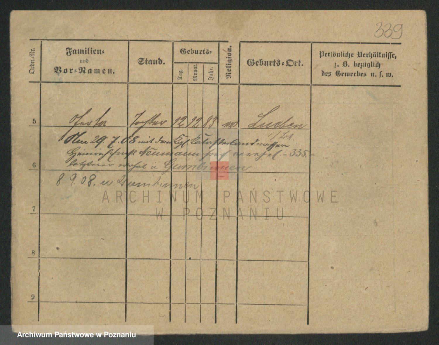 Podgląd karty osobowej dostępny jest po kliknięciu na nazwisko lub ikonkę karty. Można dokonywać powiększenia (ikony na górze) lub przechodzić między kolejnymi skanami (strzałki po bokach).