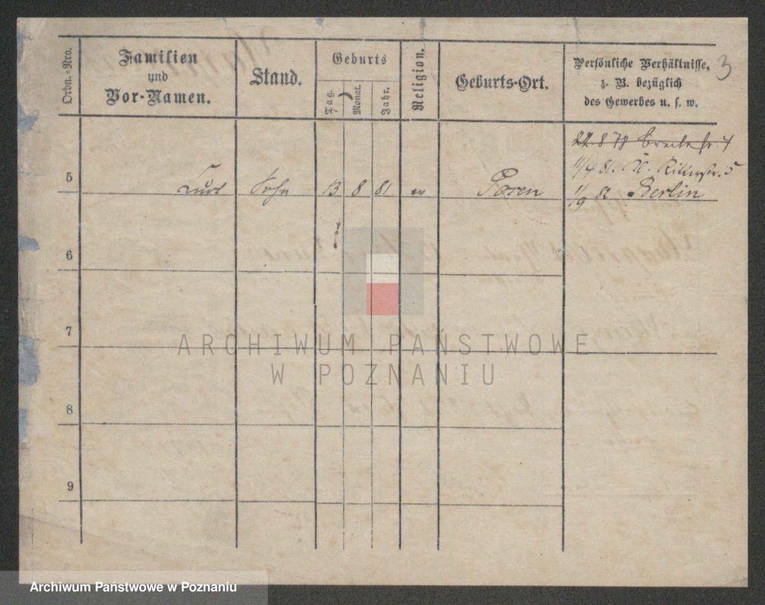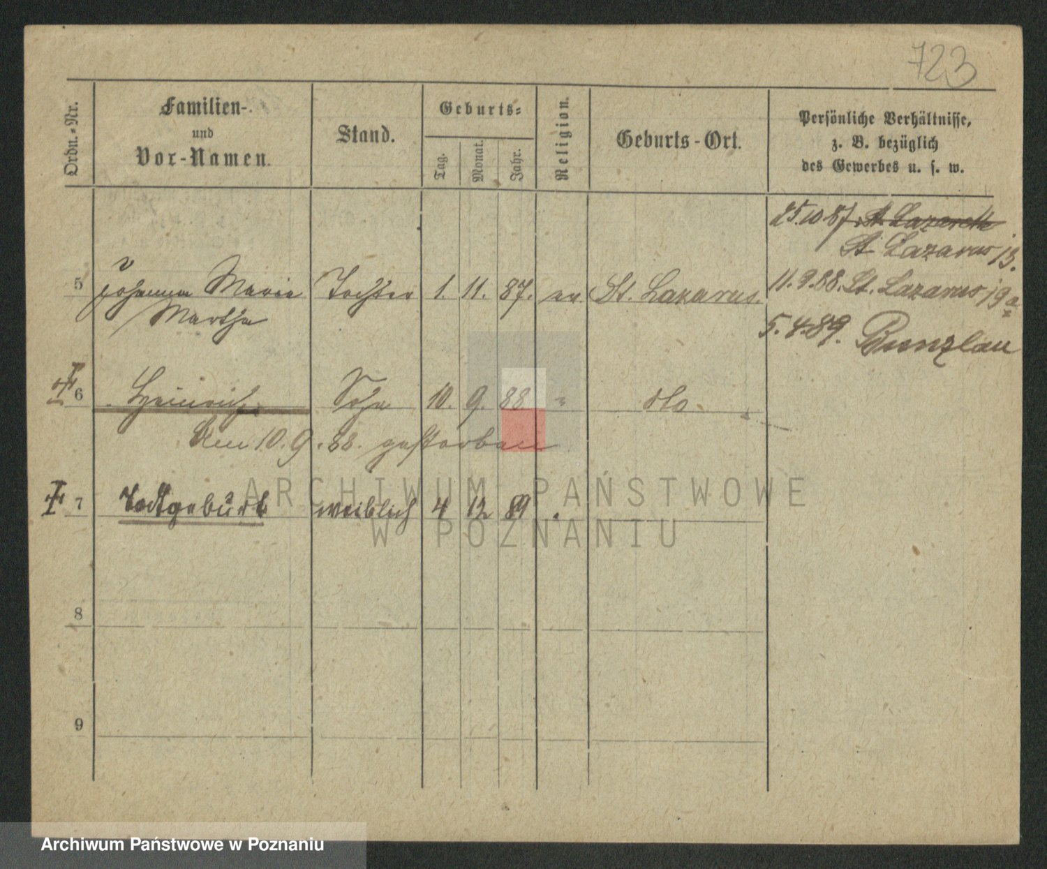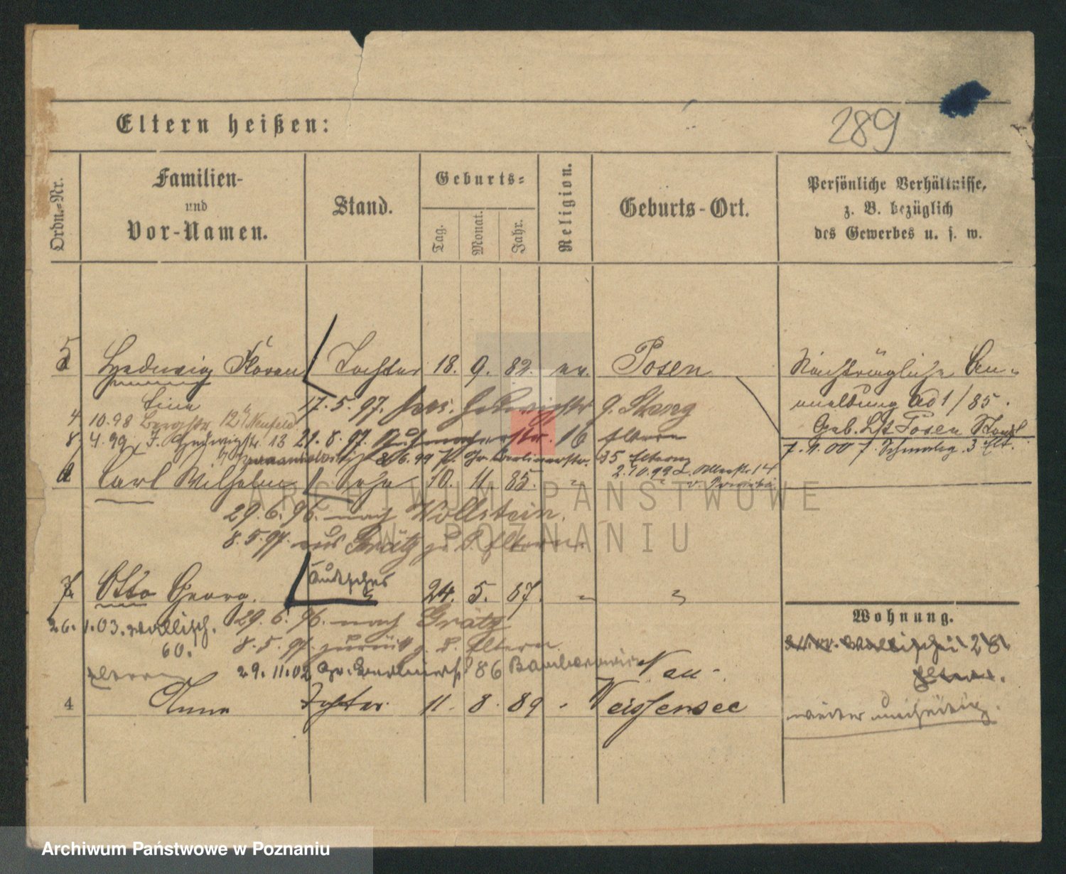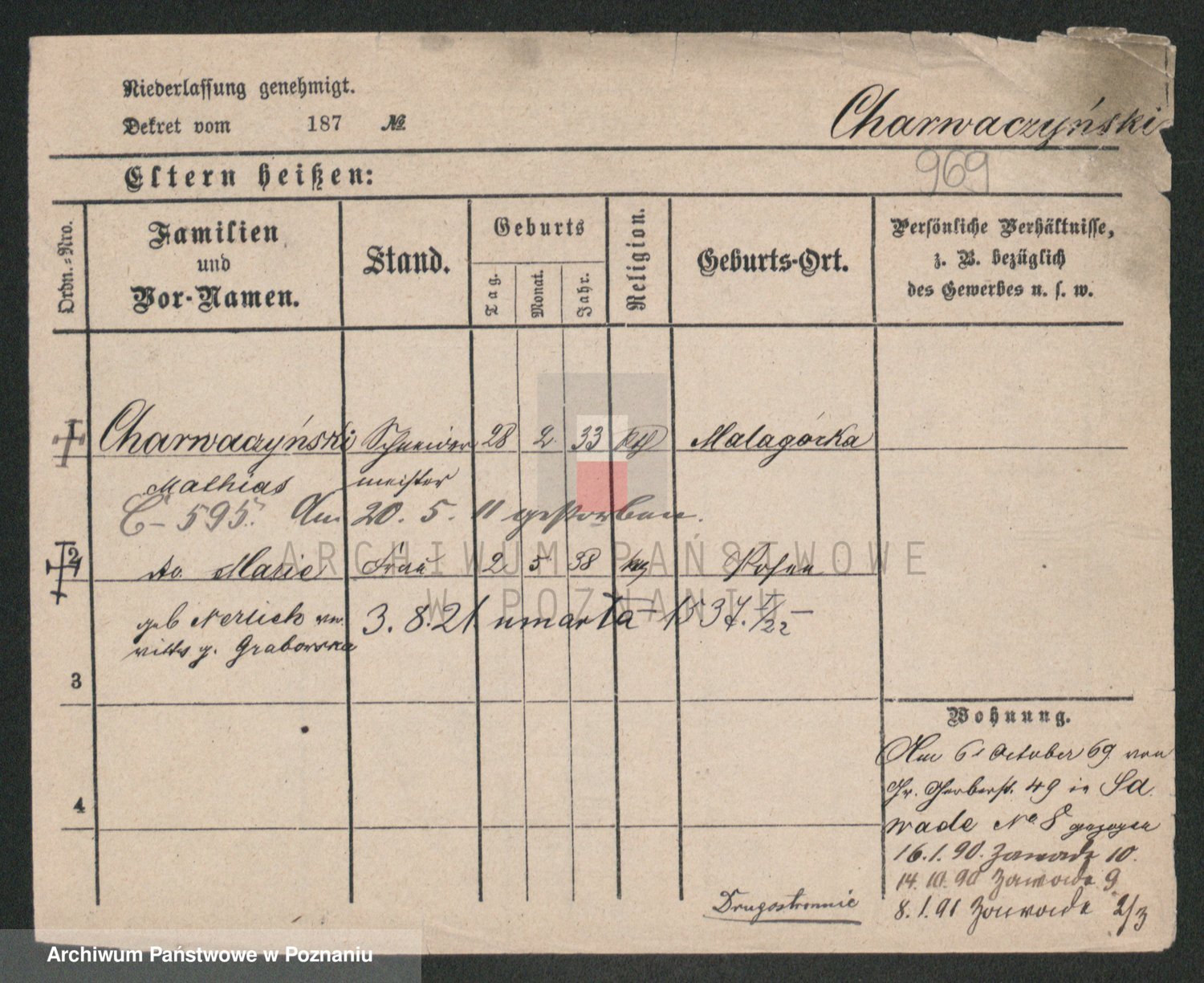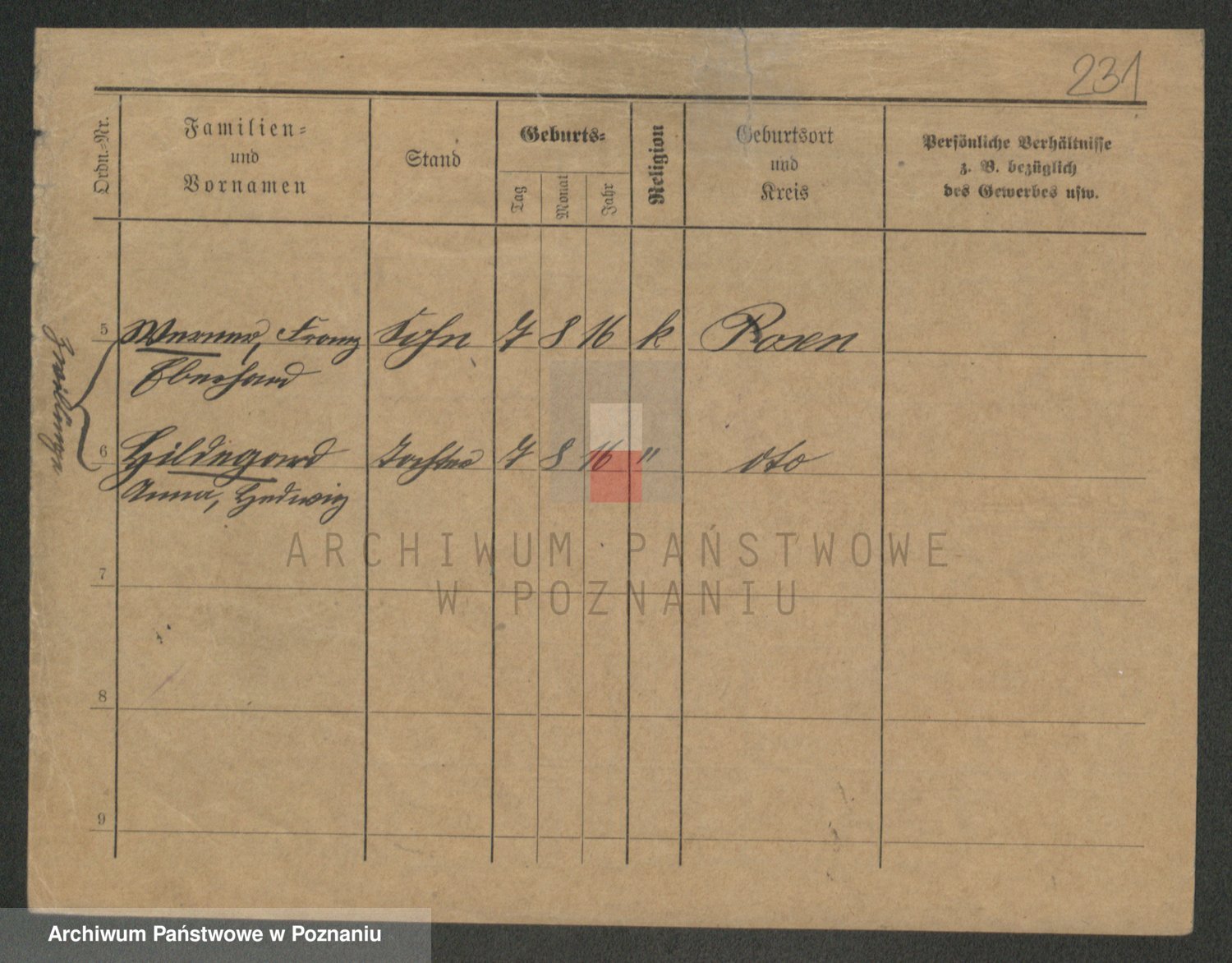 Podgląd karty osobowej dostępny jest po kliknięciu na nazwisko lub ikonkę karty. Można dokonywać powiększenia (ikony na górze) lub przechodzić między kolejnymi skanami (strzałki po bokach).