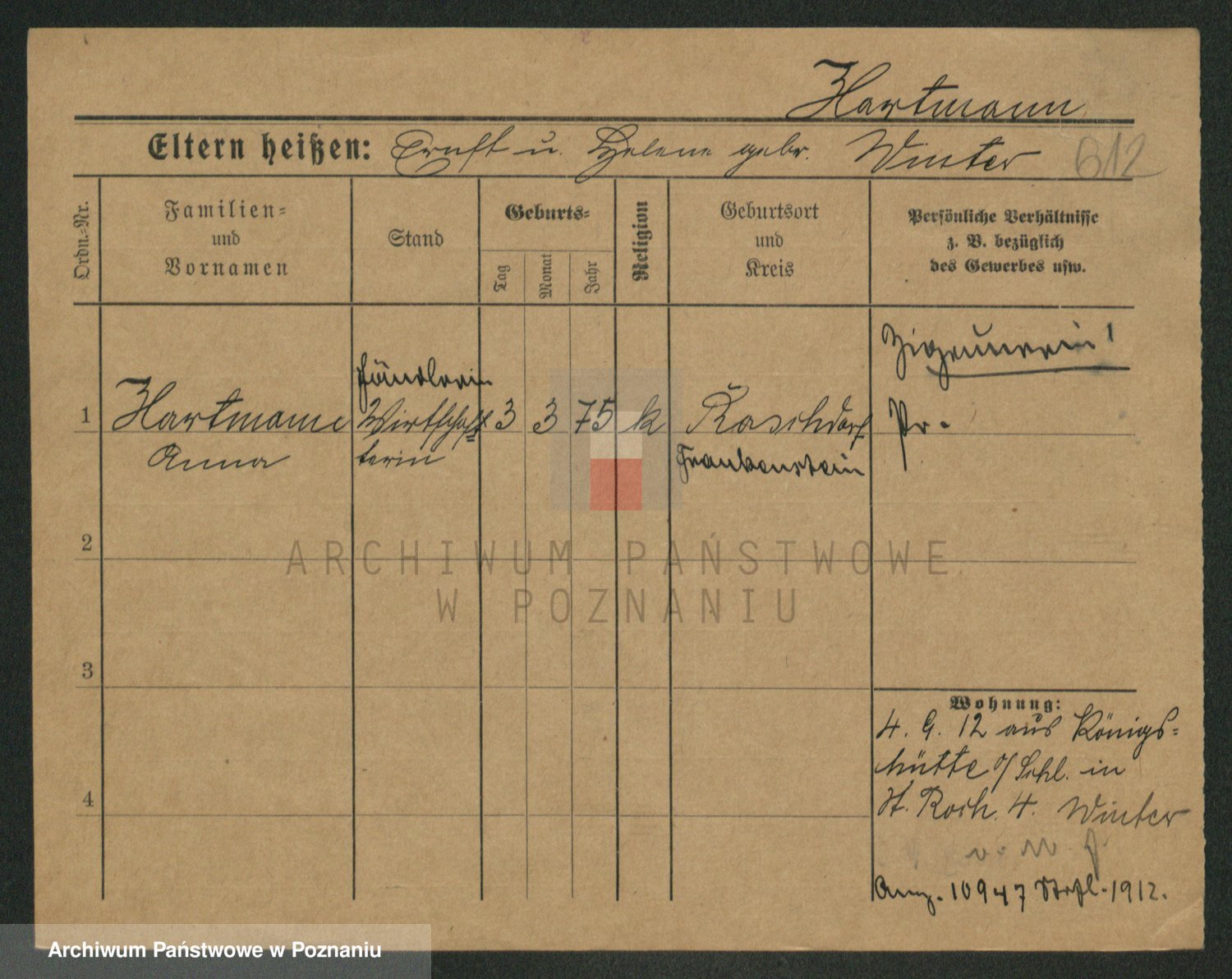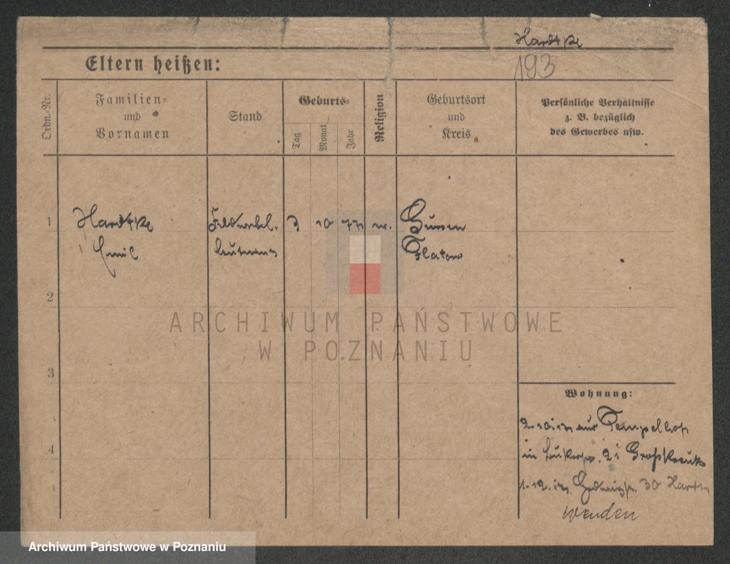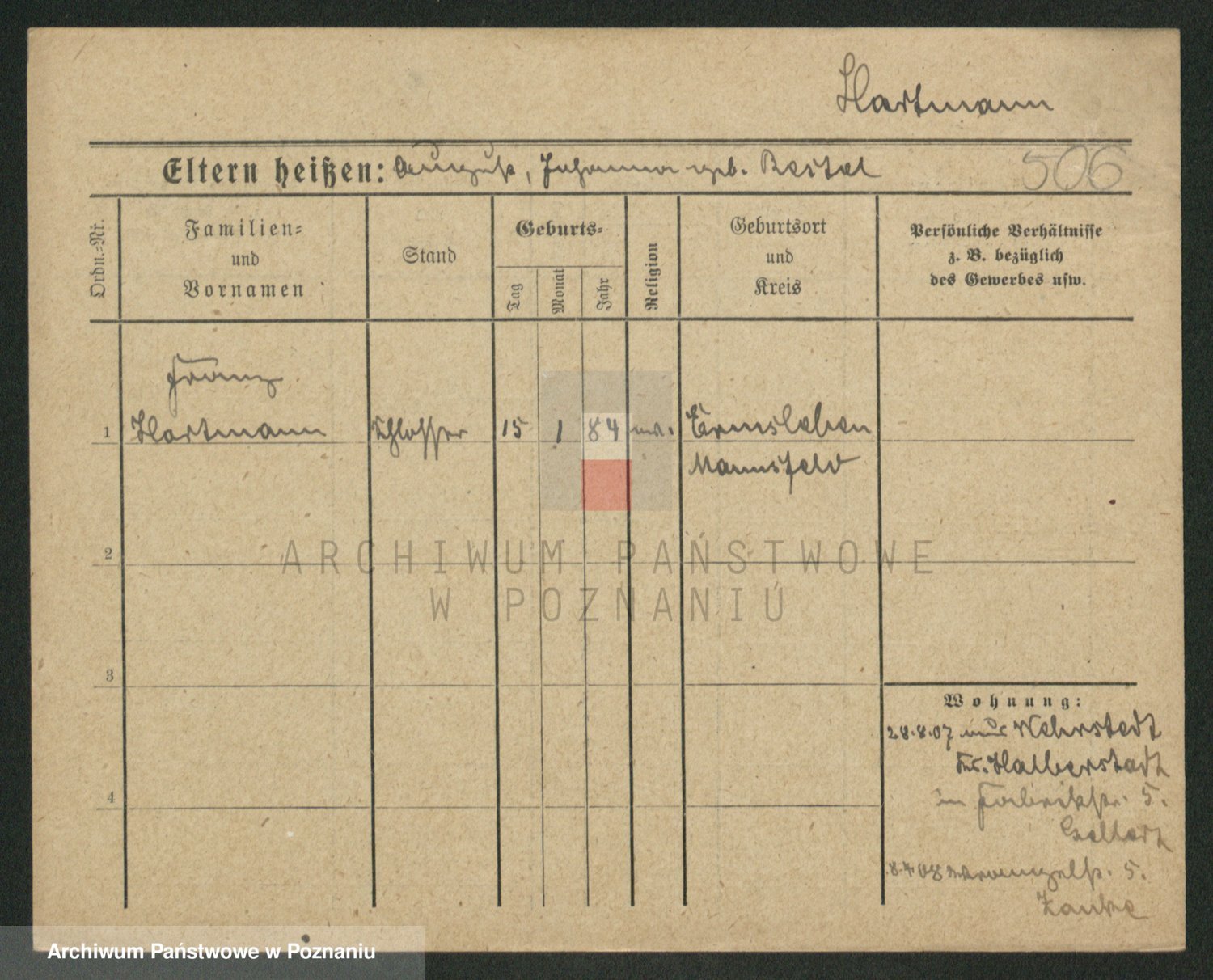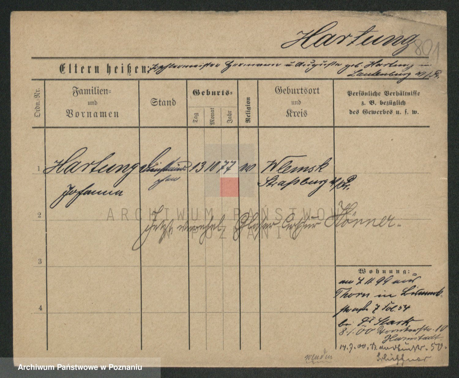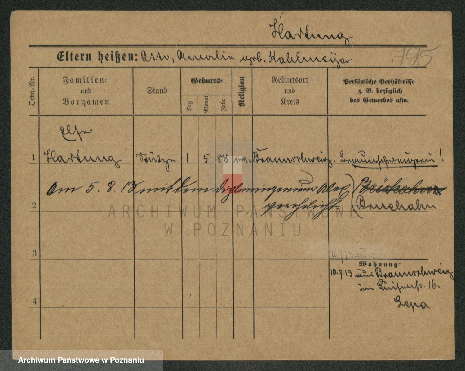 Hartwig z d. Schumacher I voto Wende, Amalie