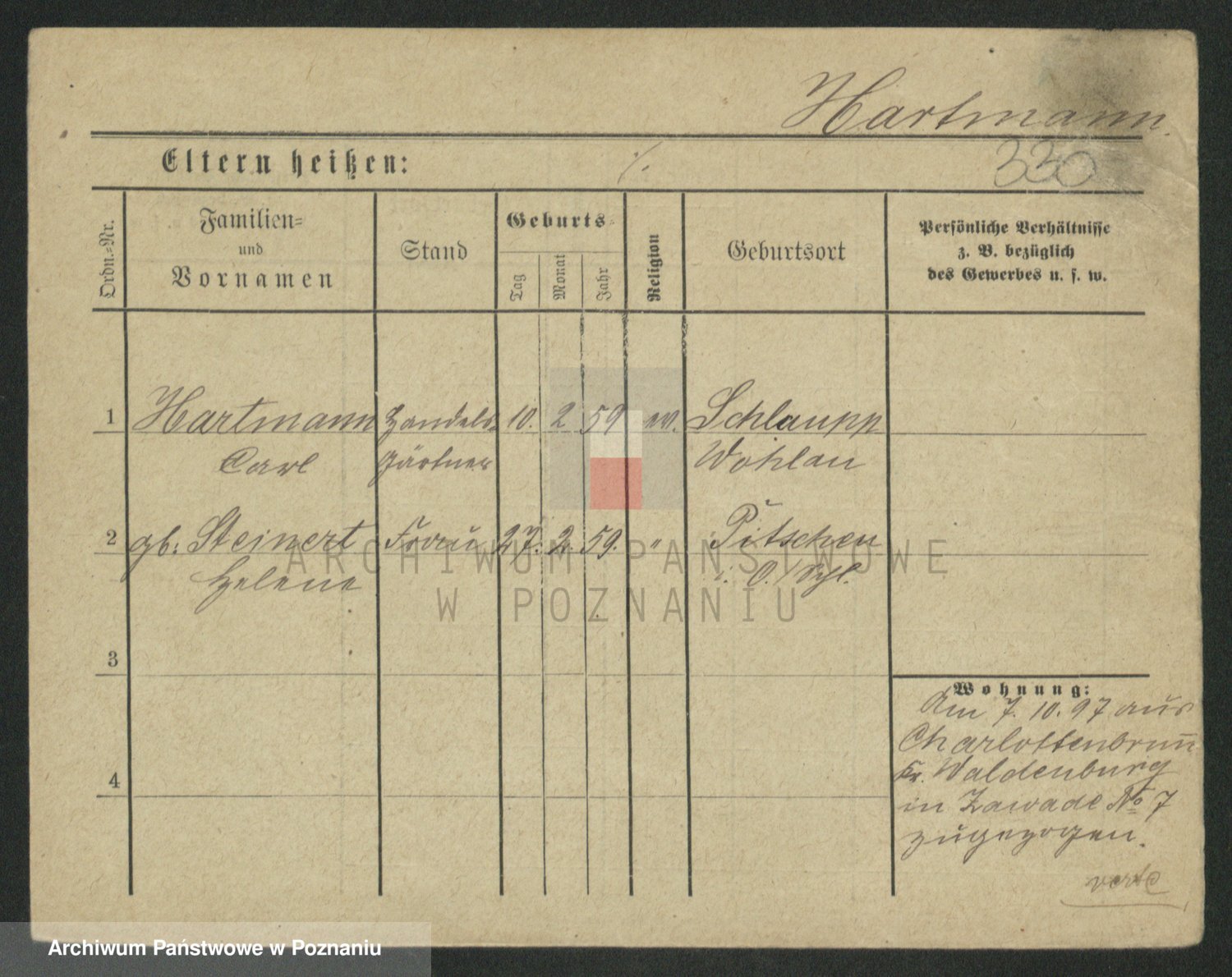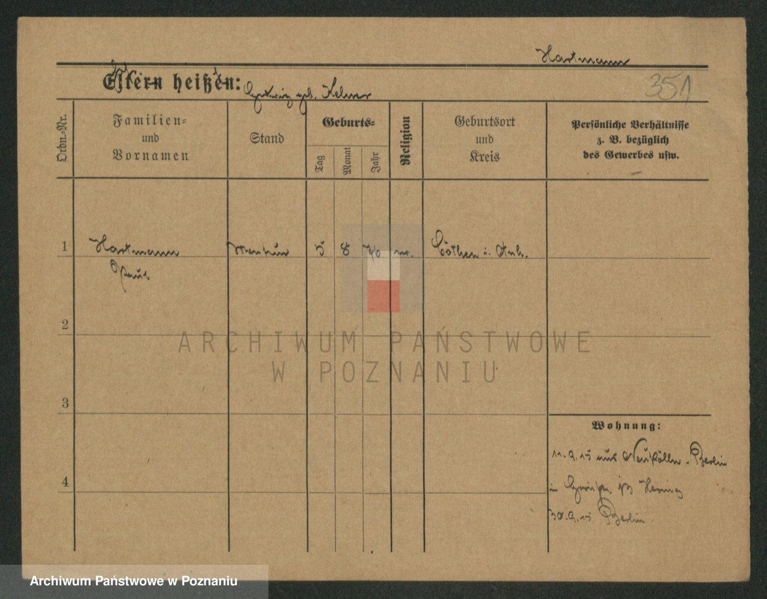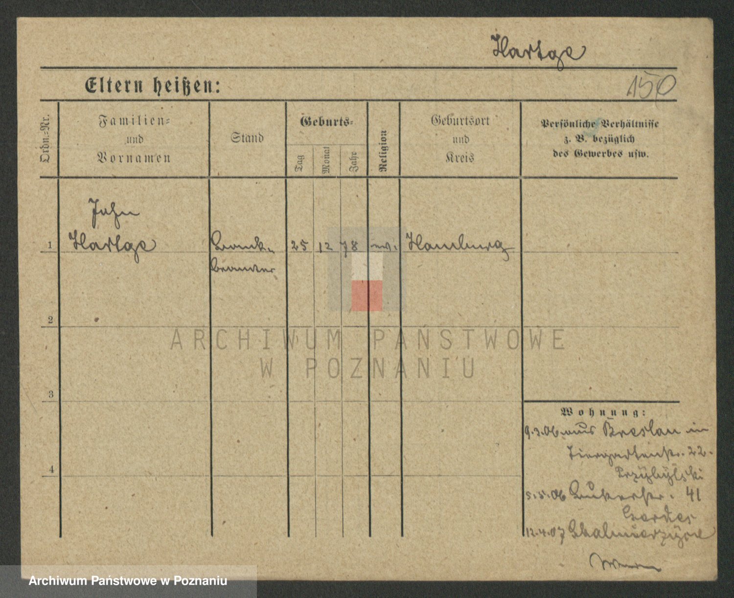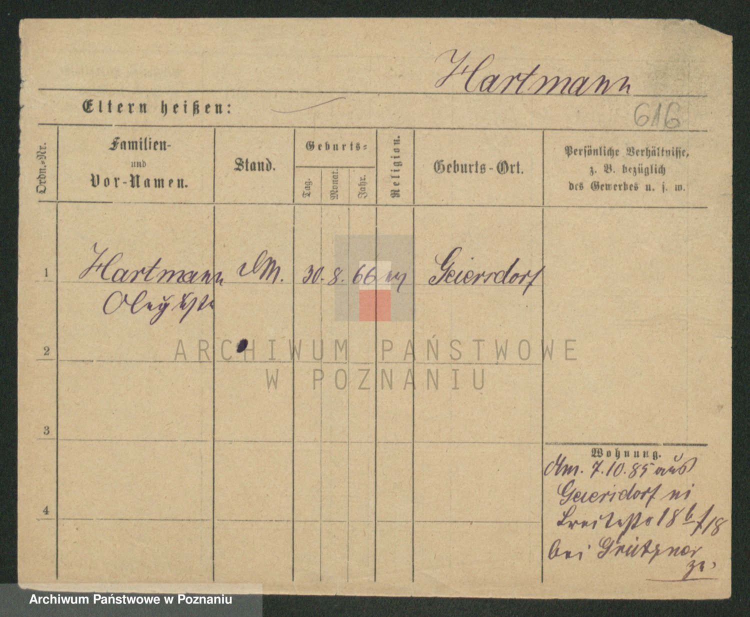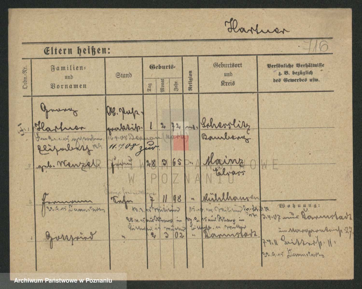 Hartwig z d. Schumacher I voto Wende, Amalie