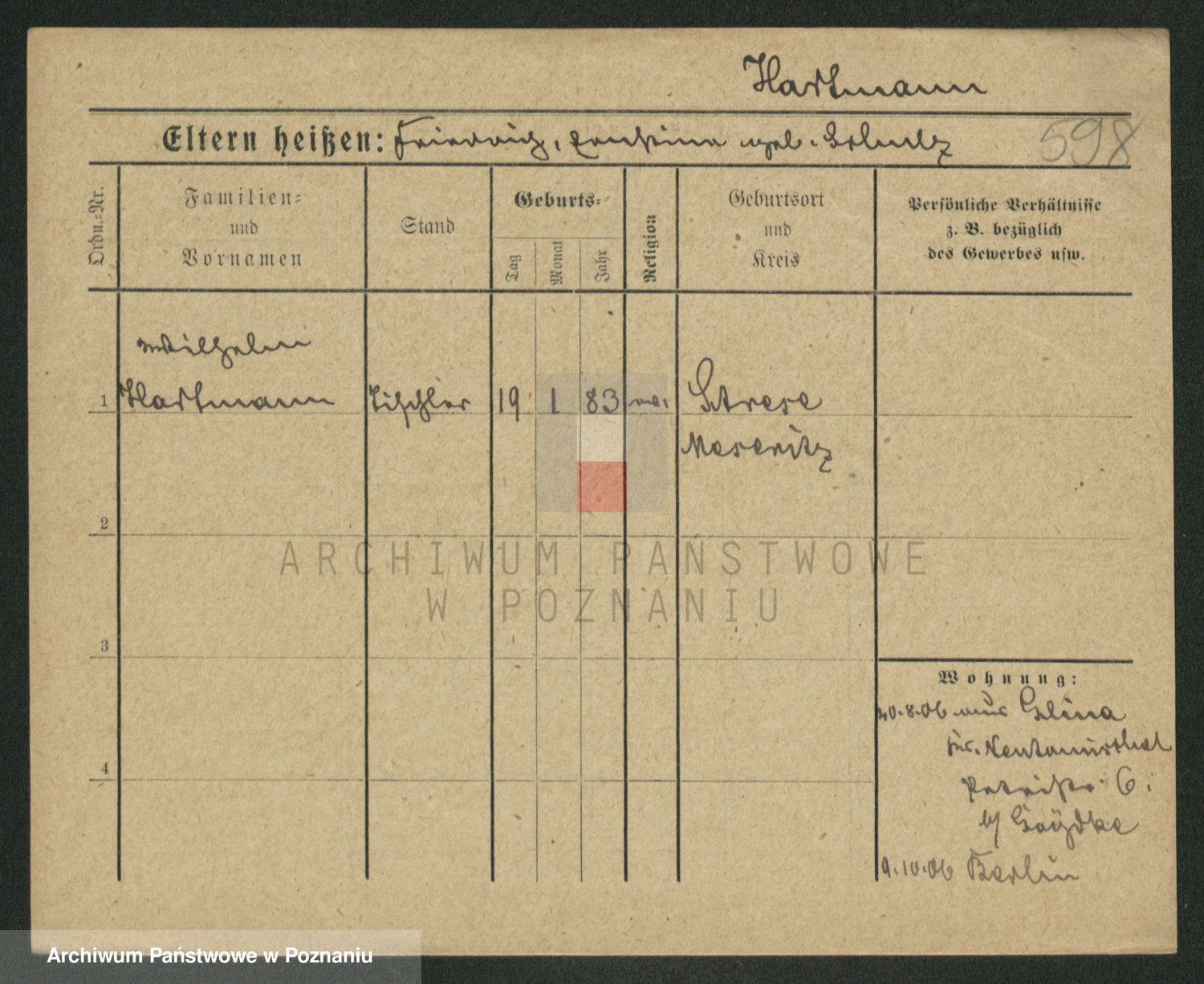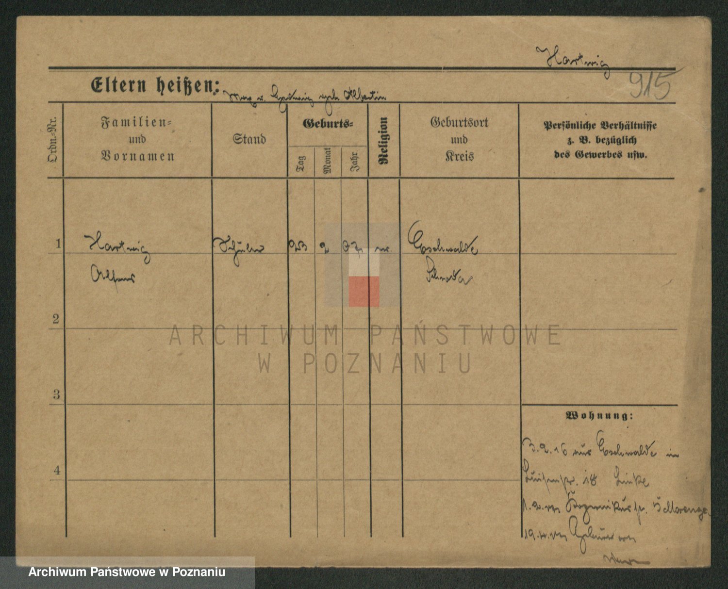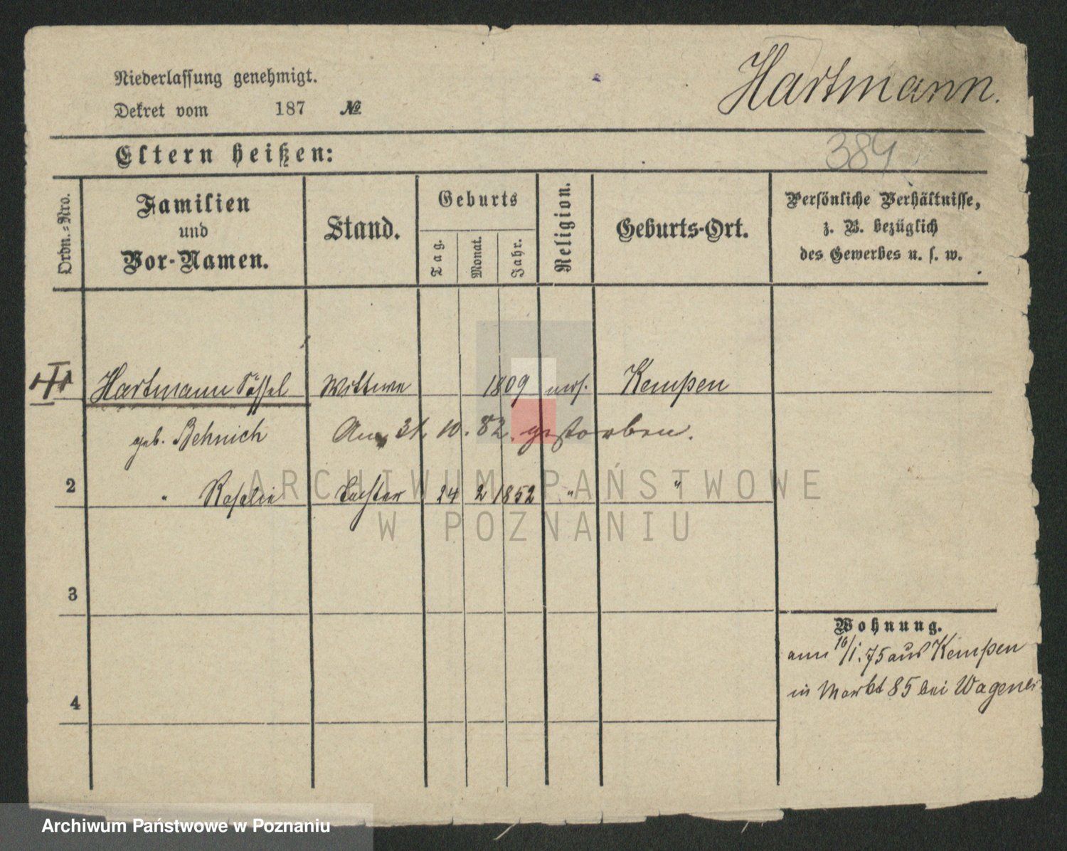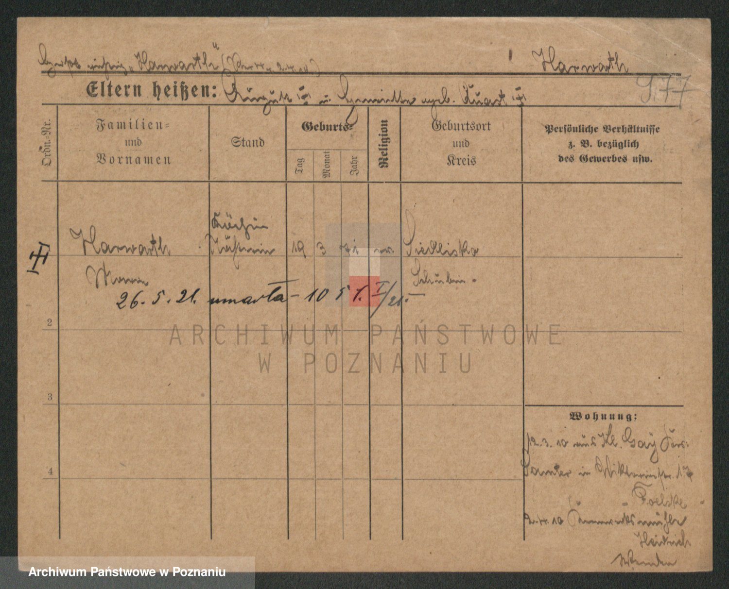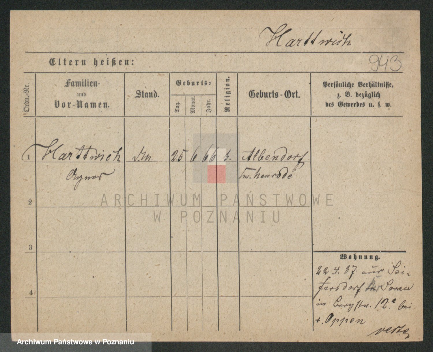 Hartwig z d. Schumacher I voto Wende, Amalie
