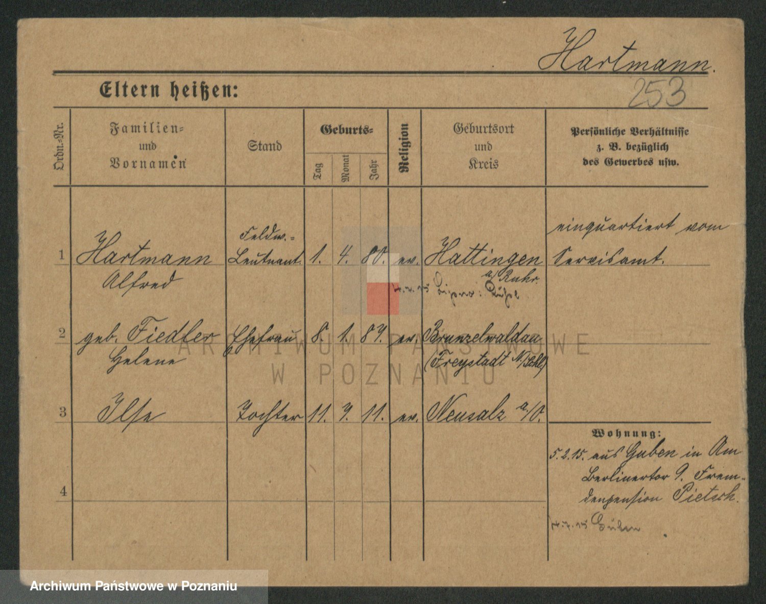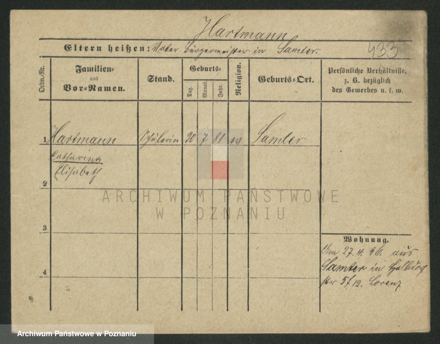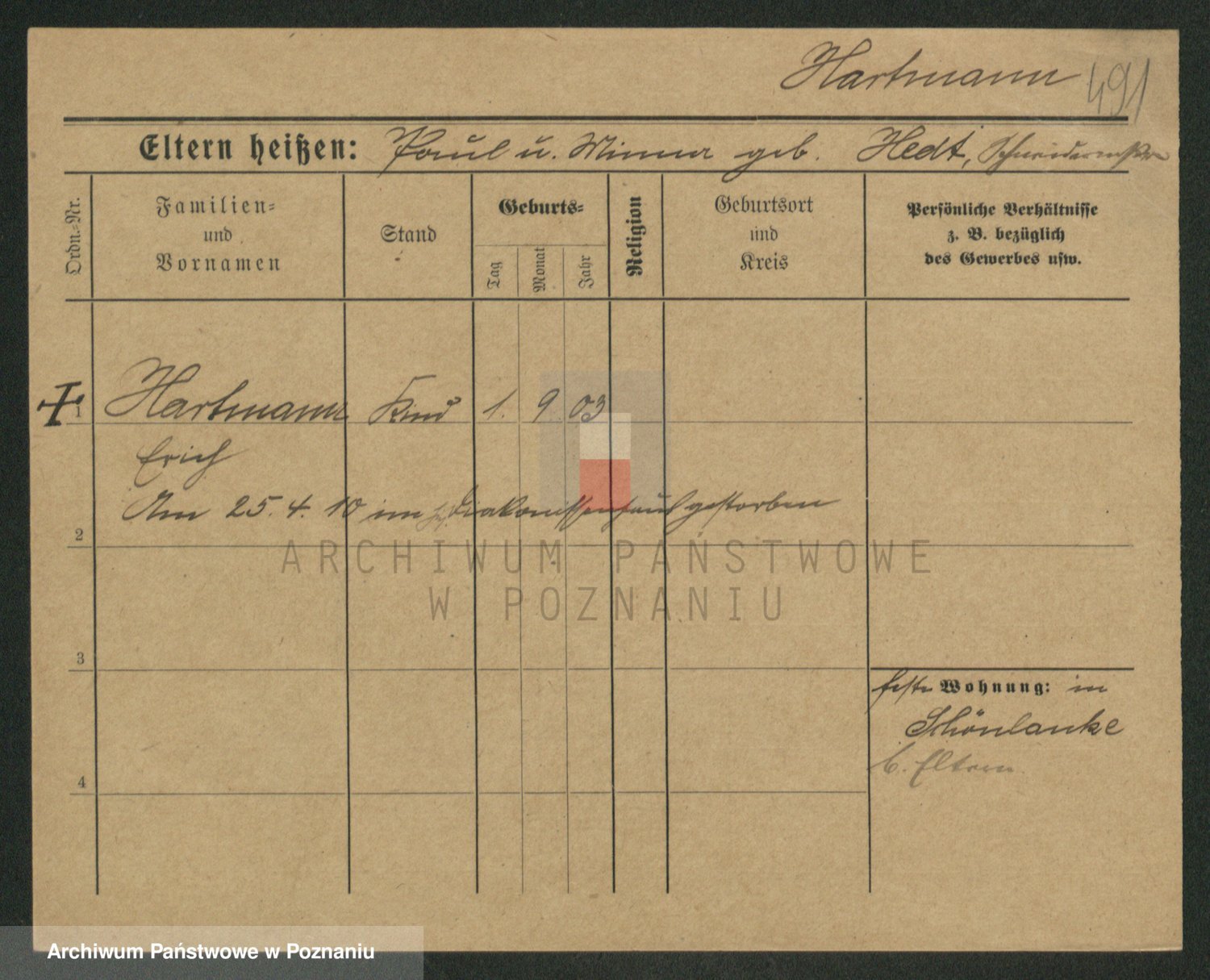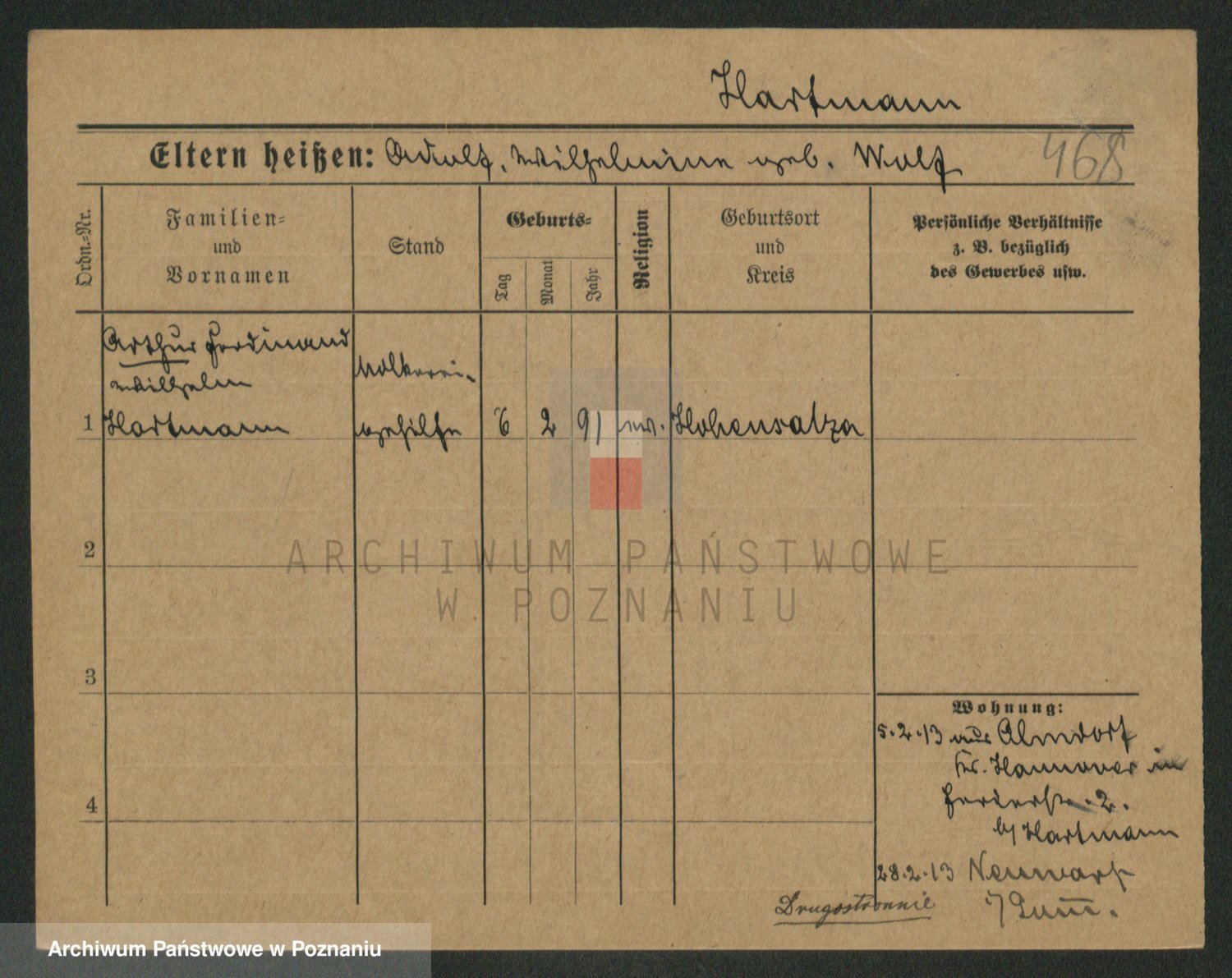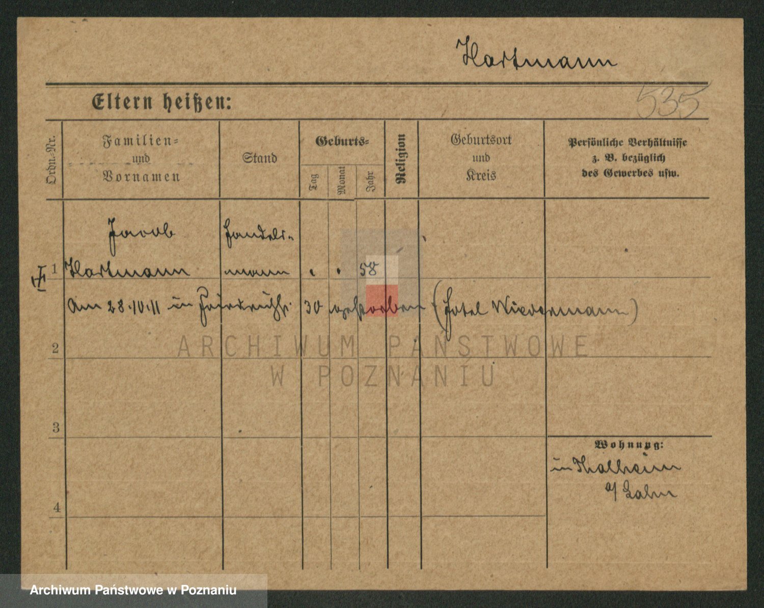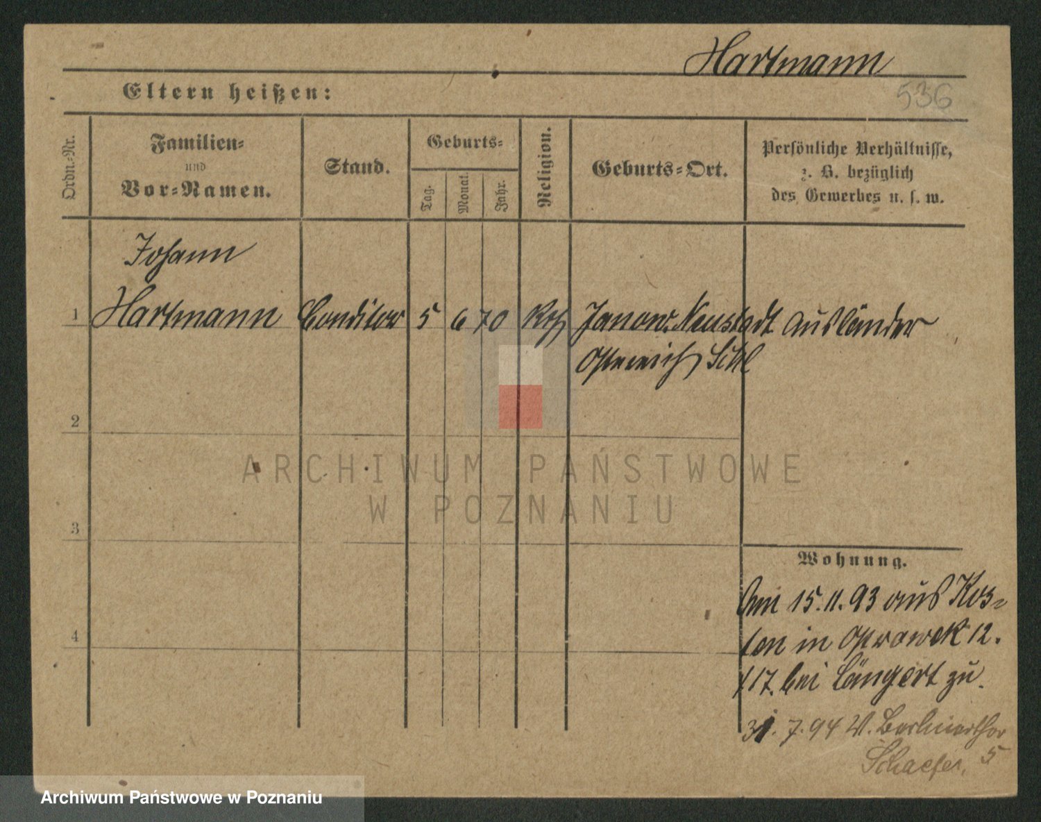 Hartwig z d. Schumacher I voto Wende, Amalie