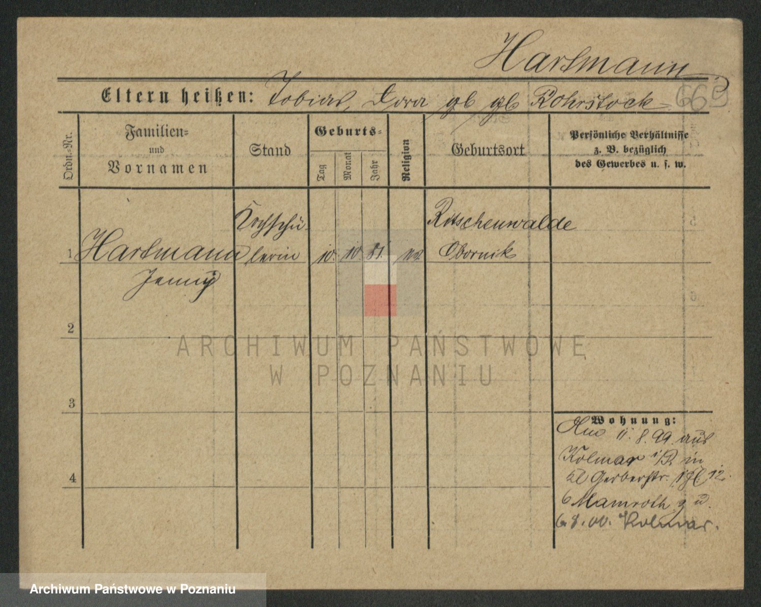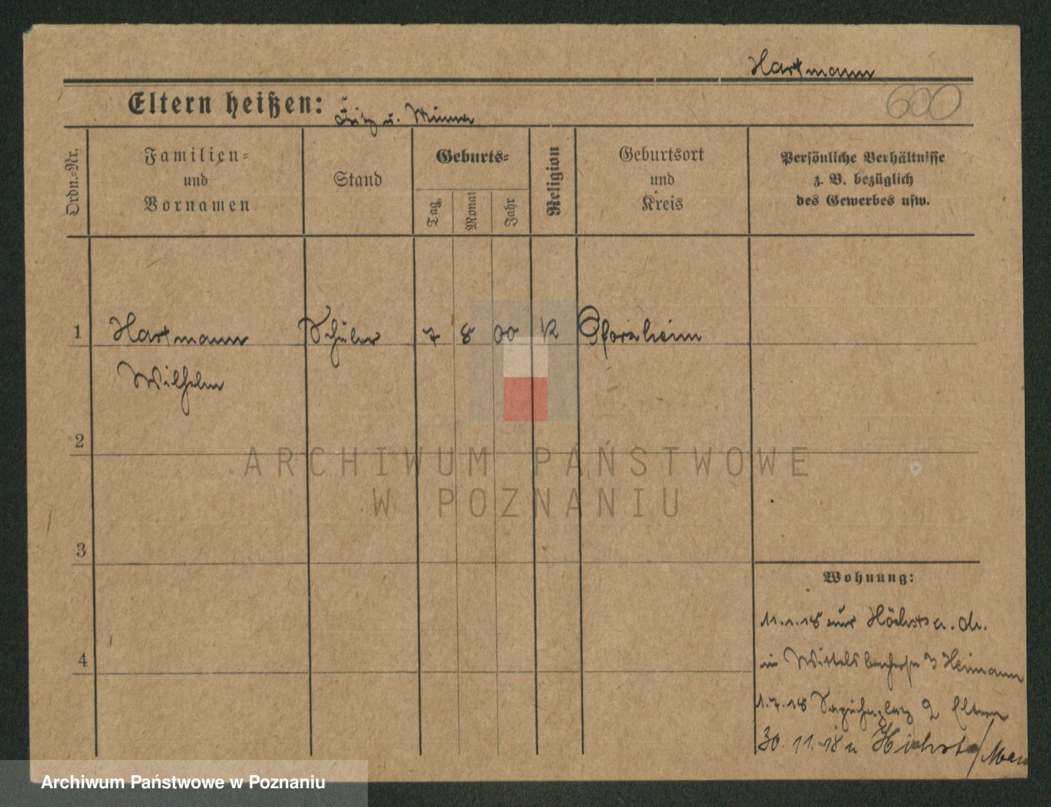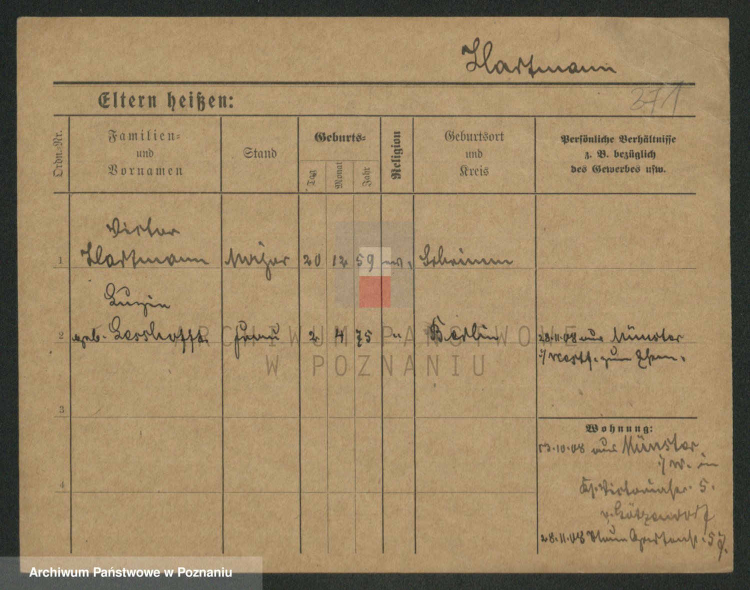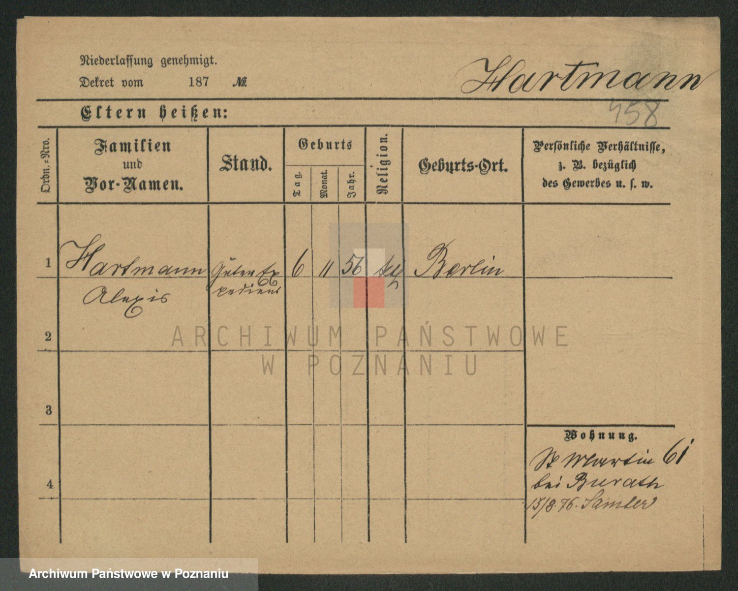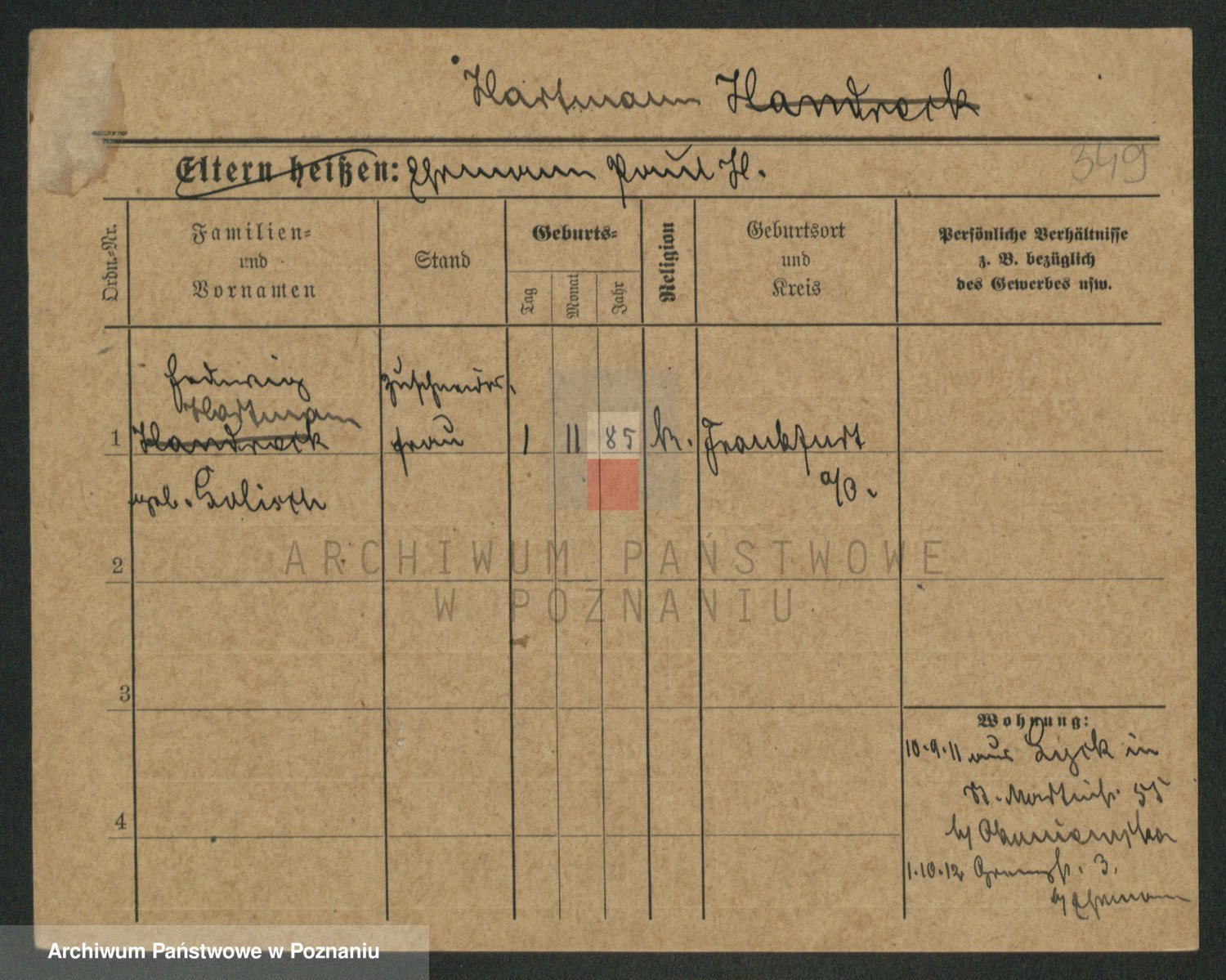 Hartwig z d. Schumacher I voto Wende, Amalie