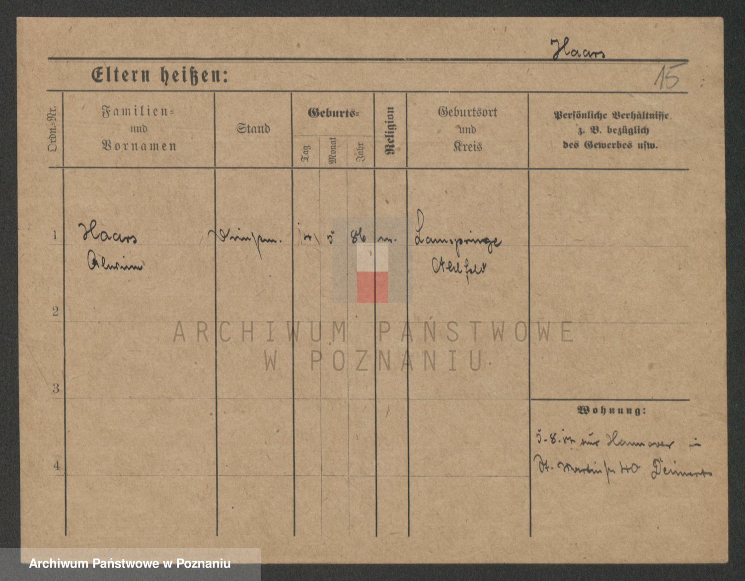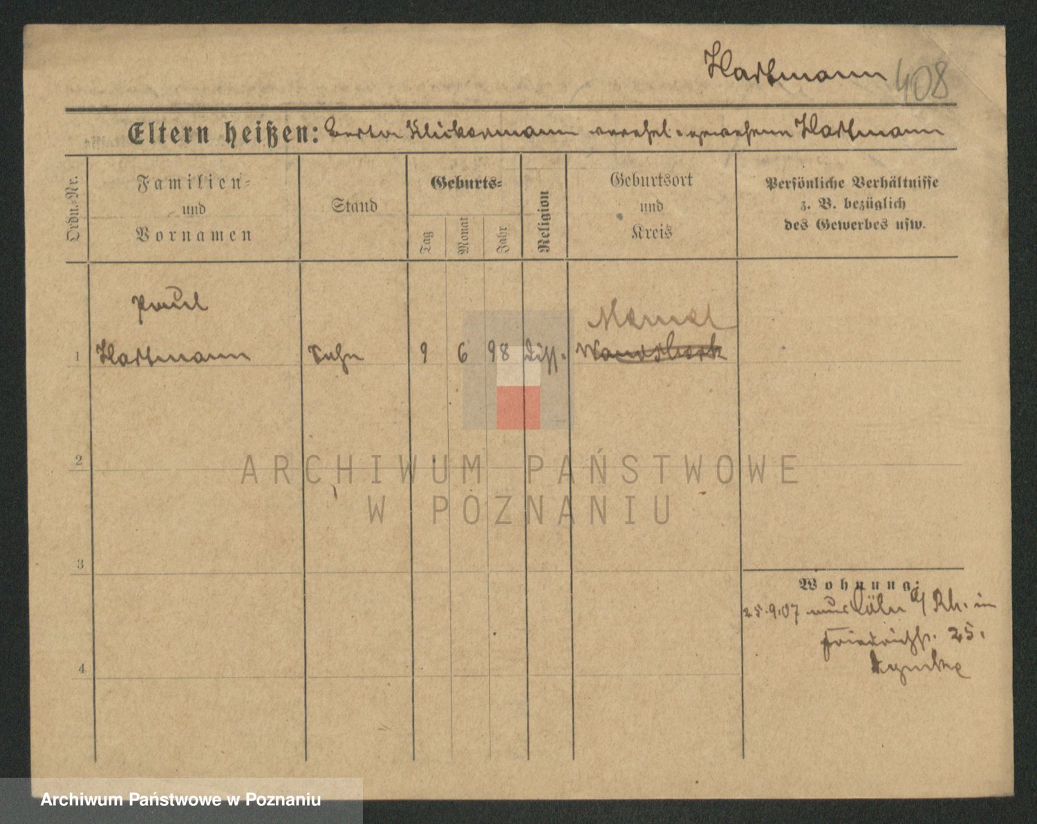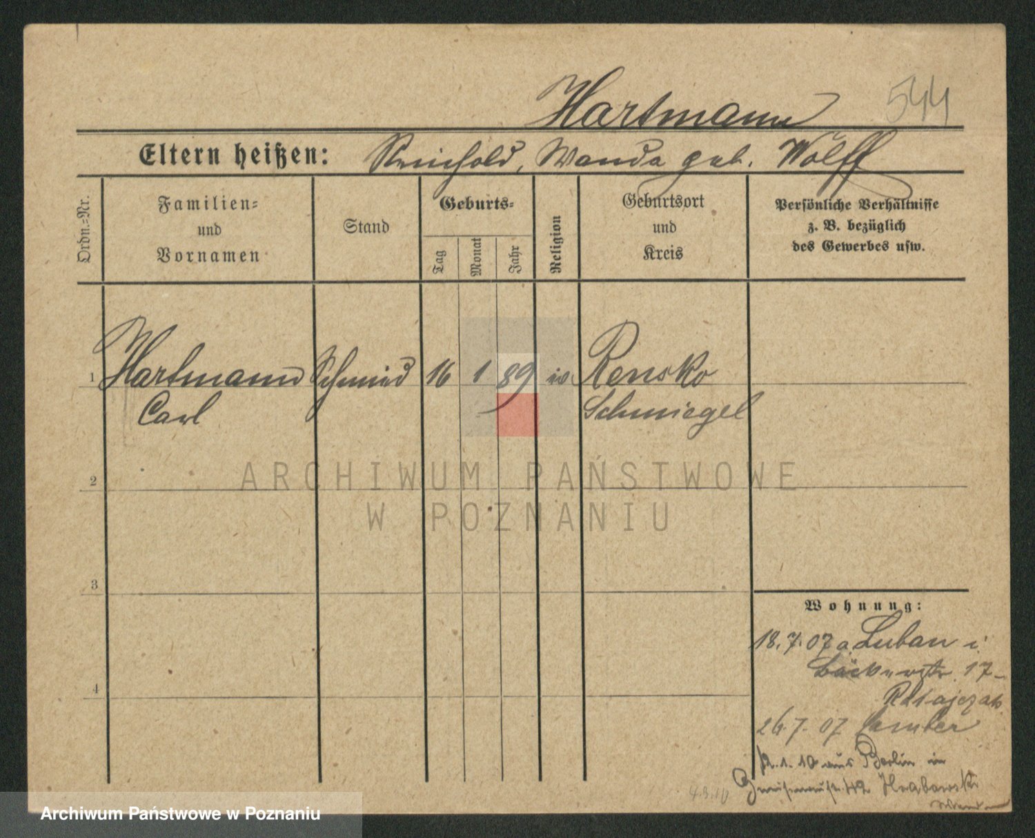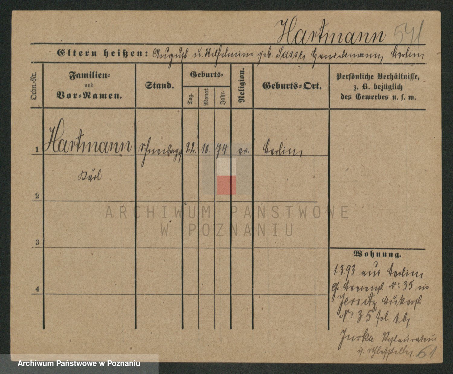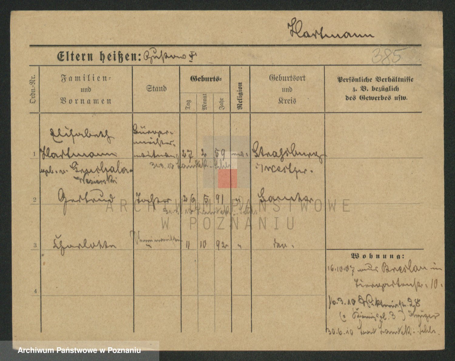 Hartwig z d. Schumacher I voto Wende, Amalie
