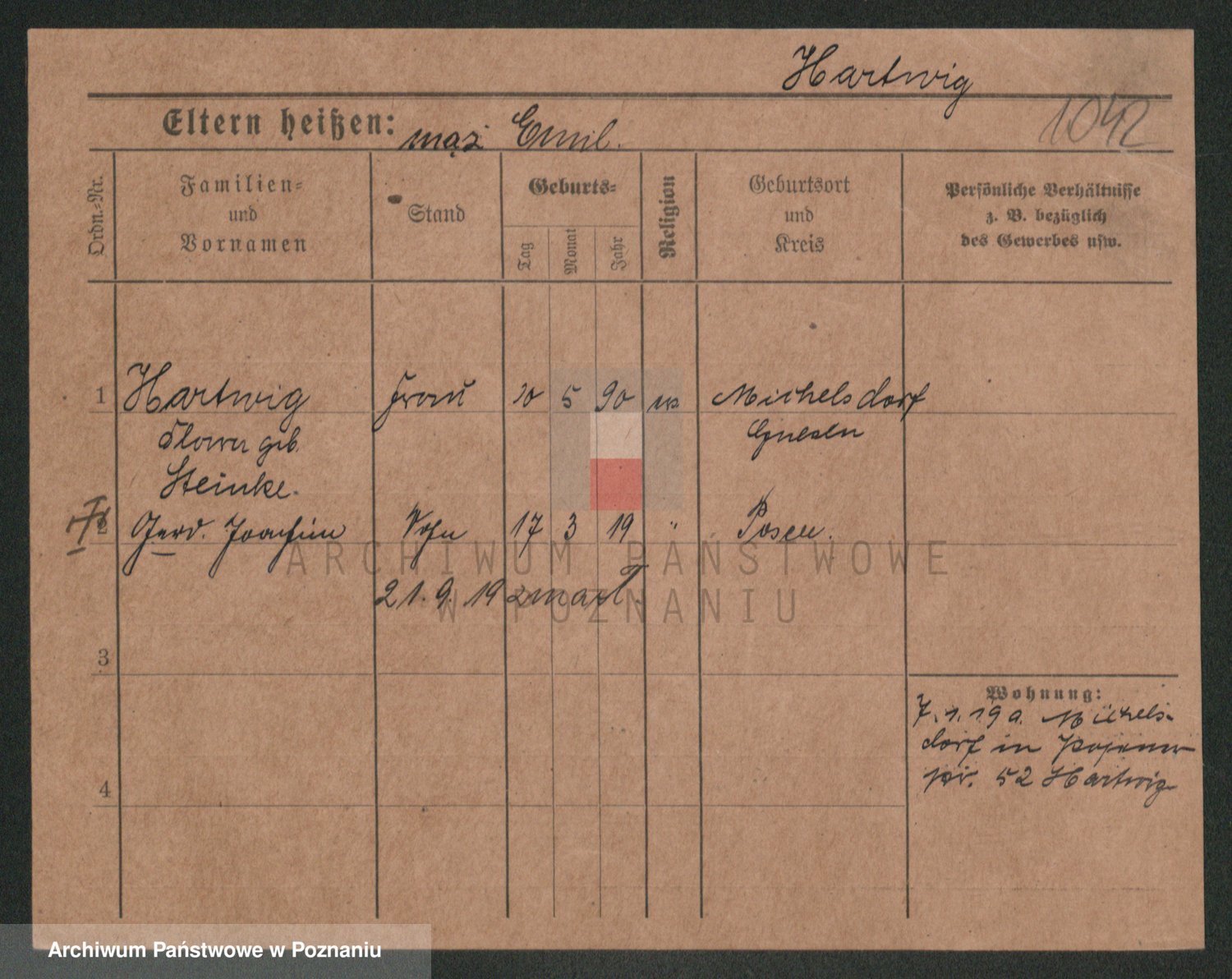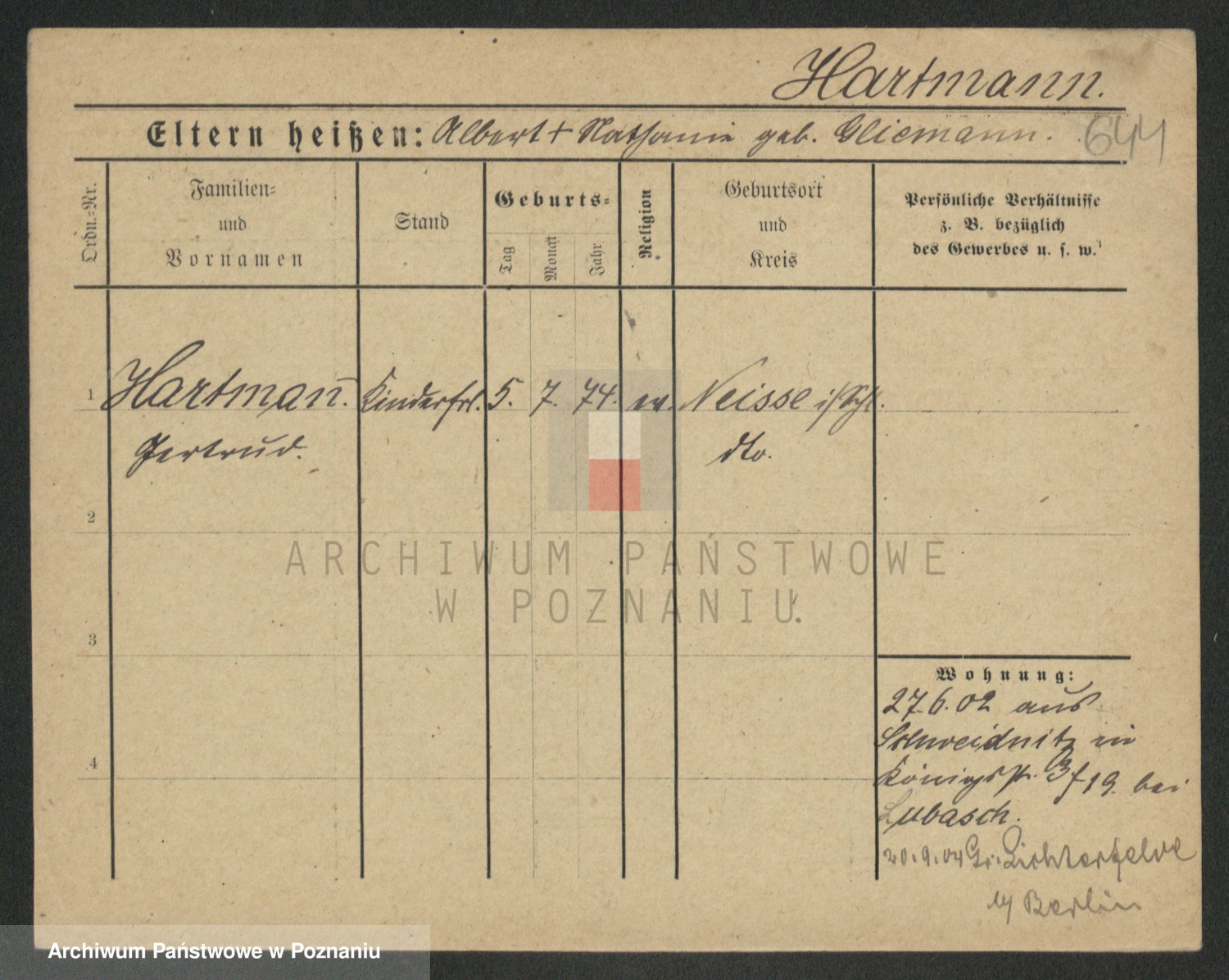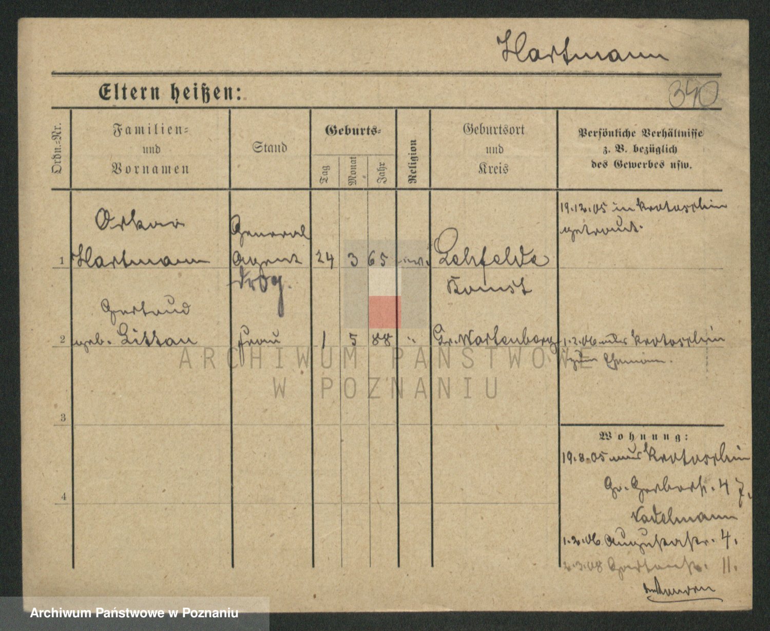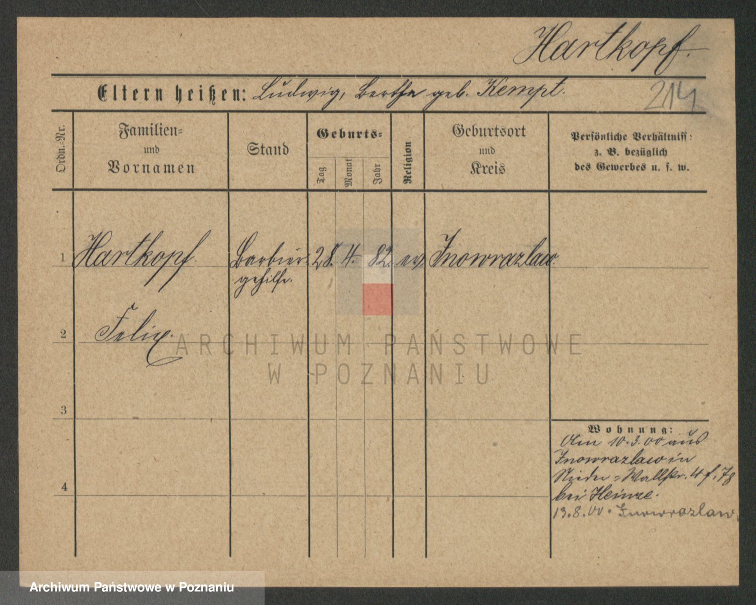 Hartwig z d. Kleinert I voto Adam, Pauline