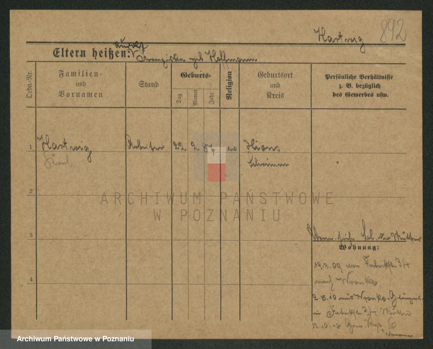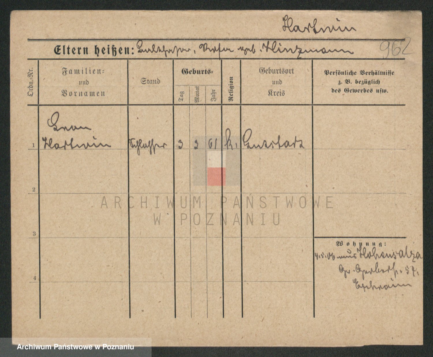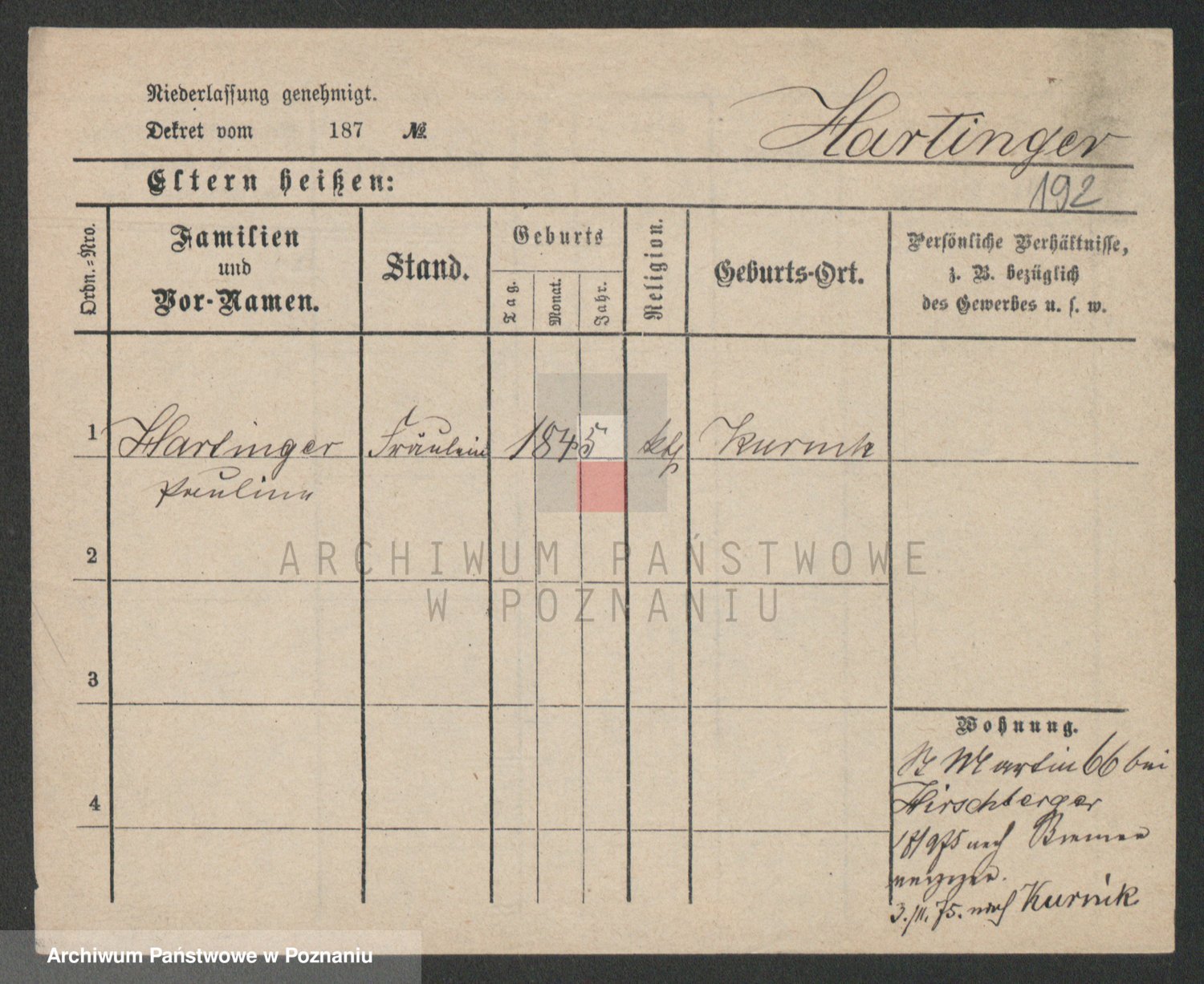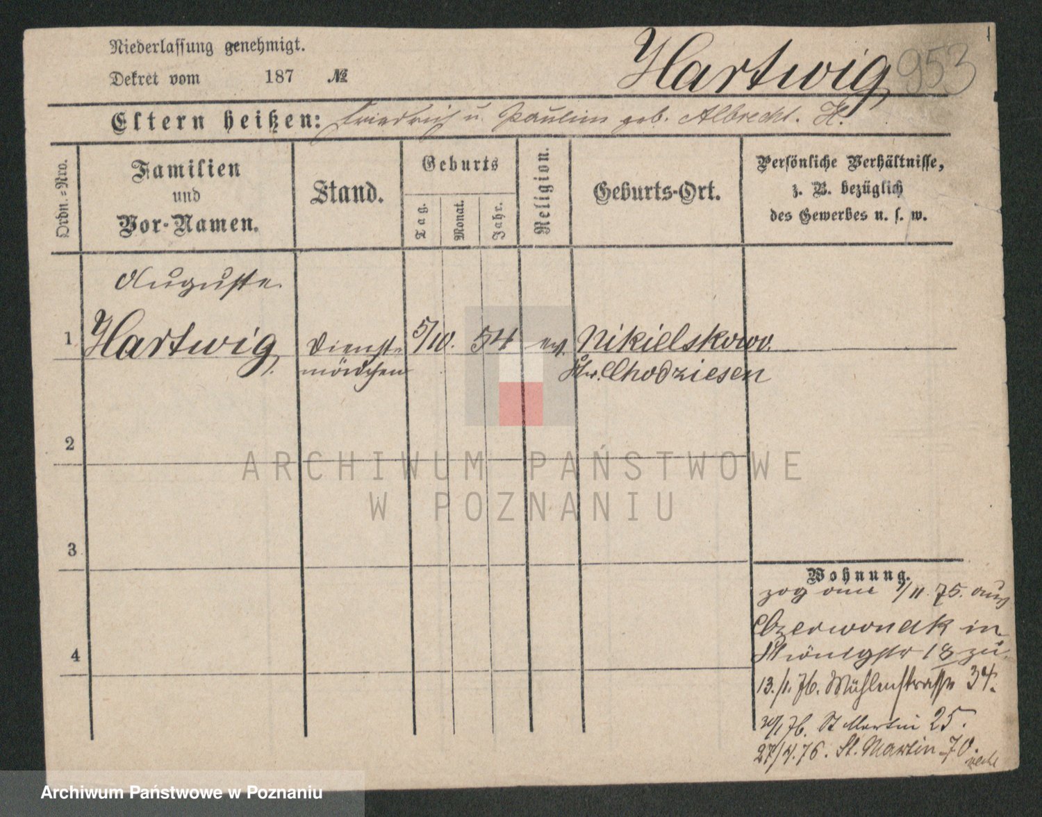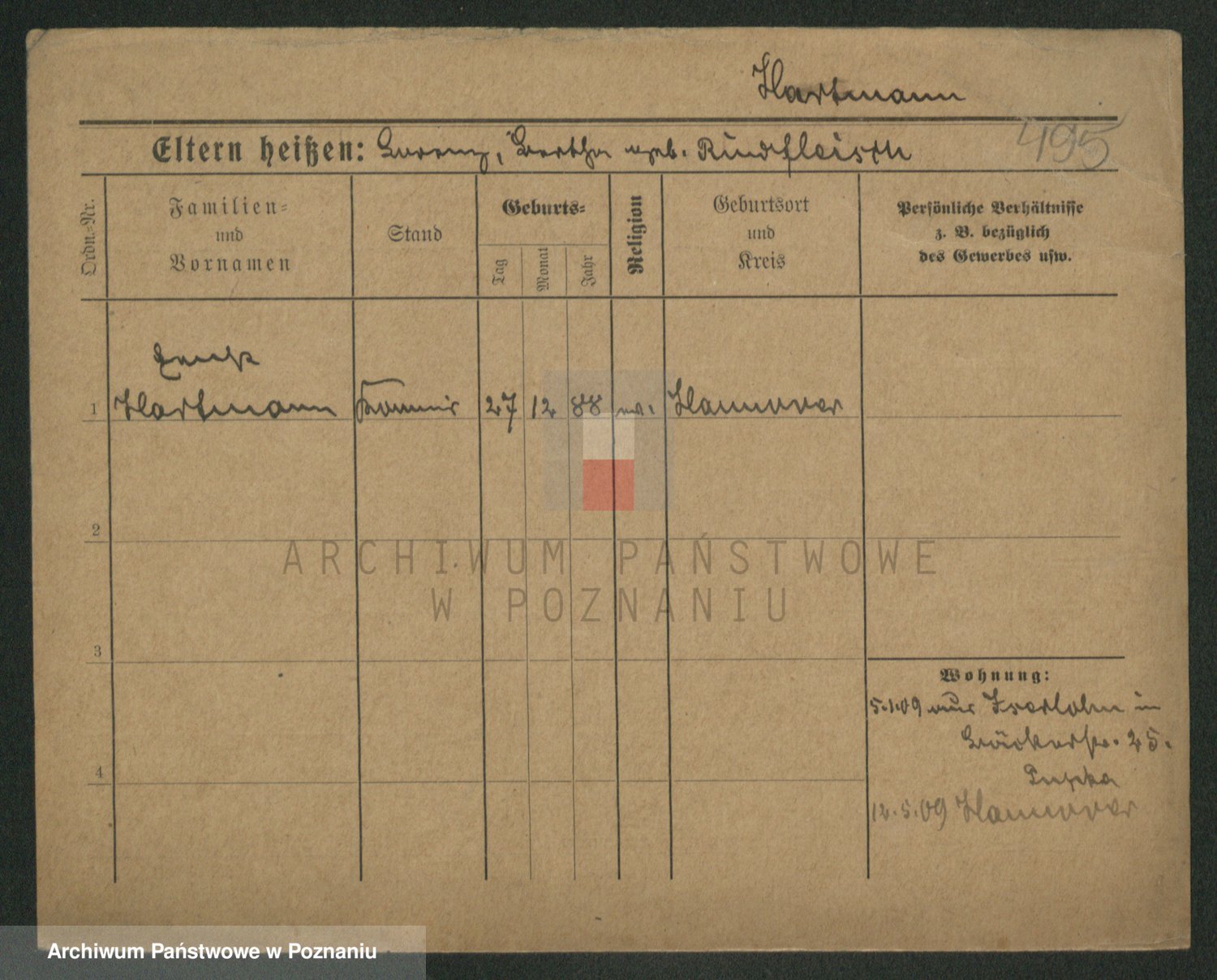 Hartwig z d. Kleinert I voto Adam, Pauline