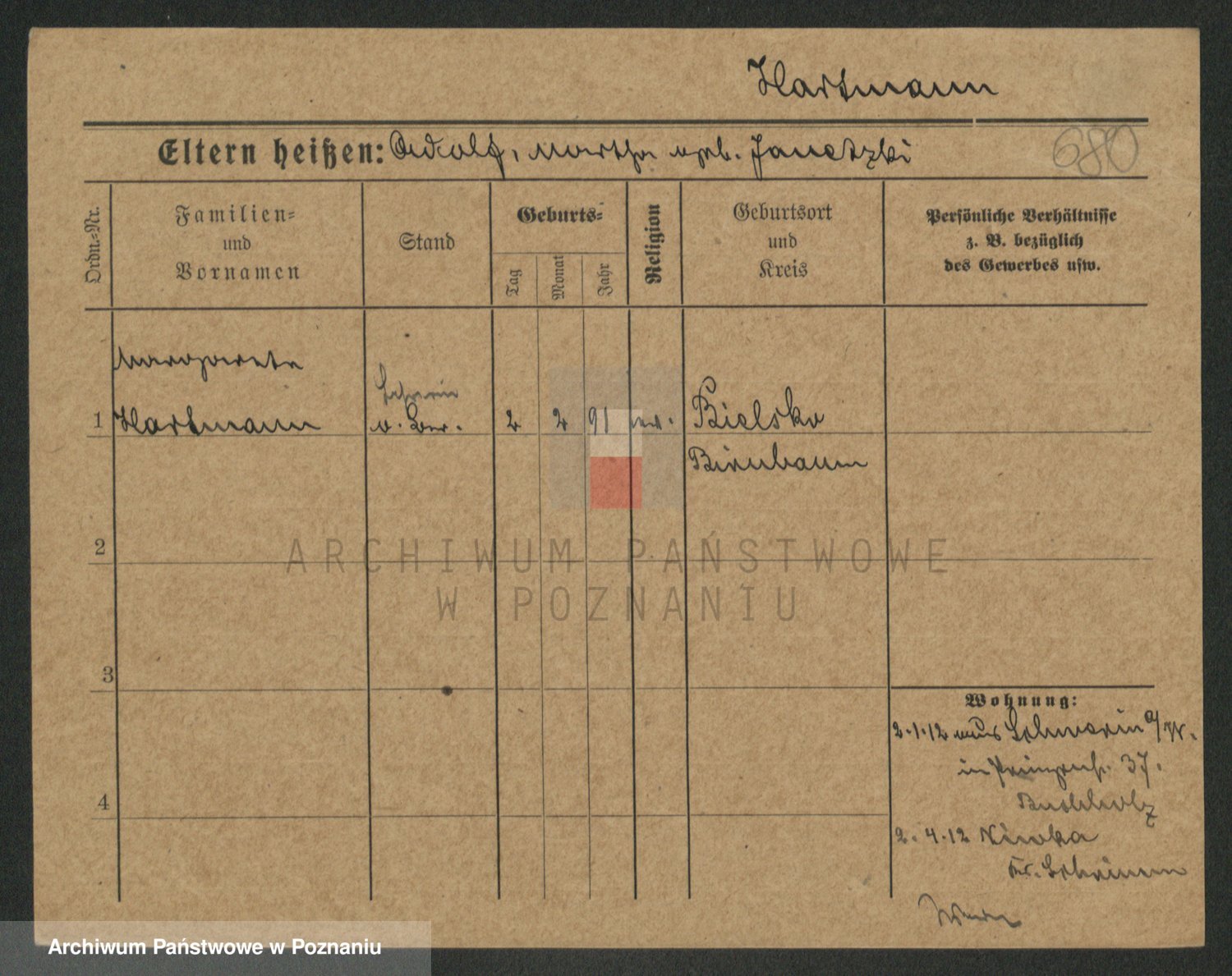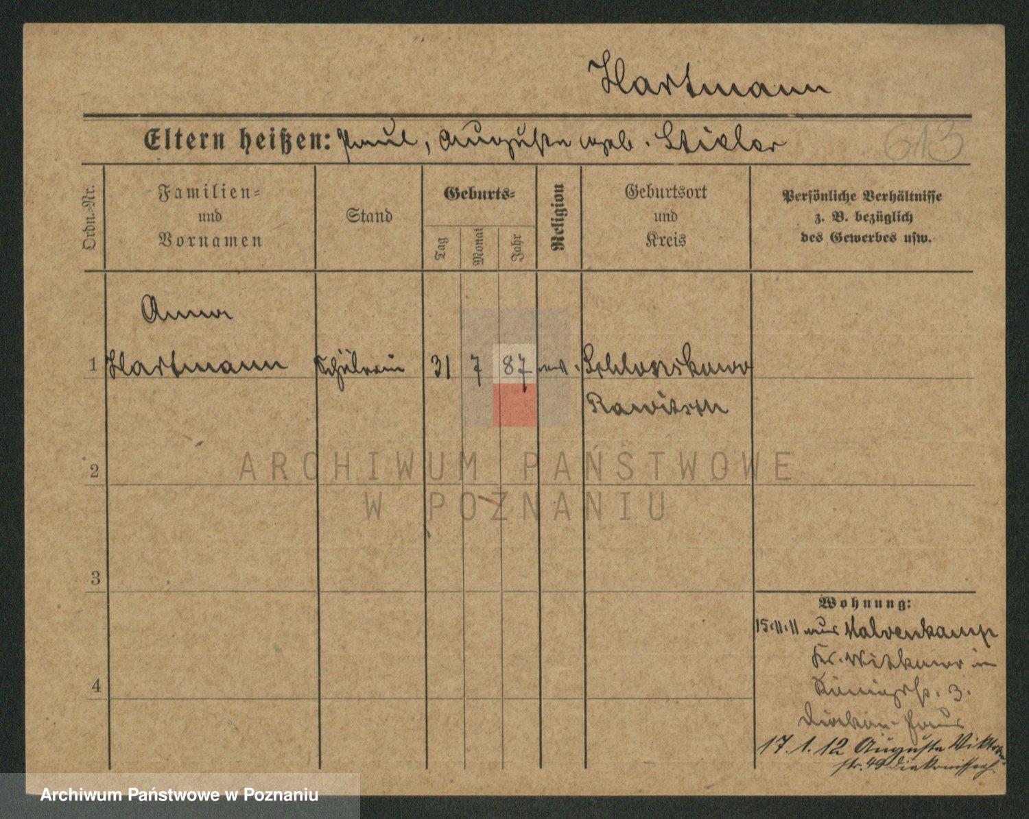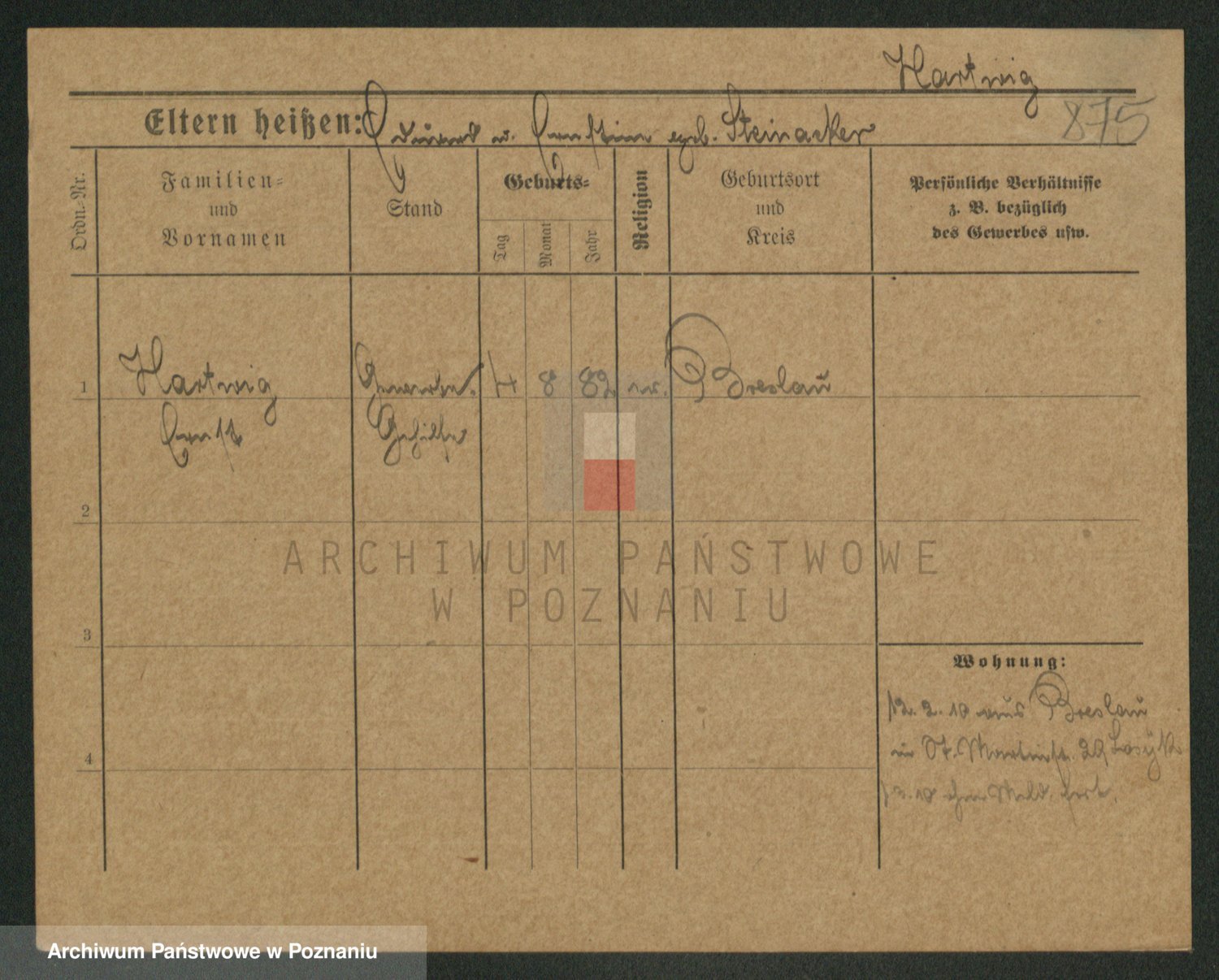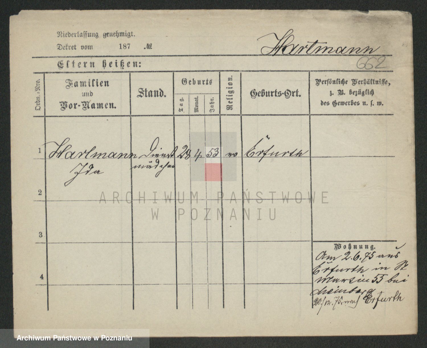 Hartwig z d. Kleinert I voto Adam, Pauline