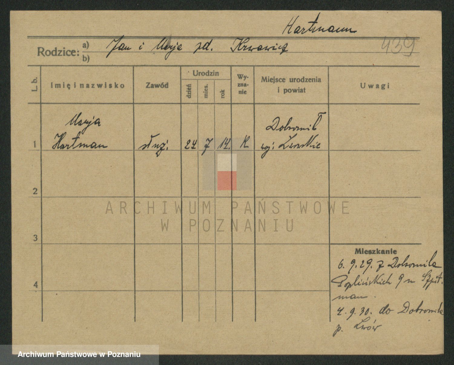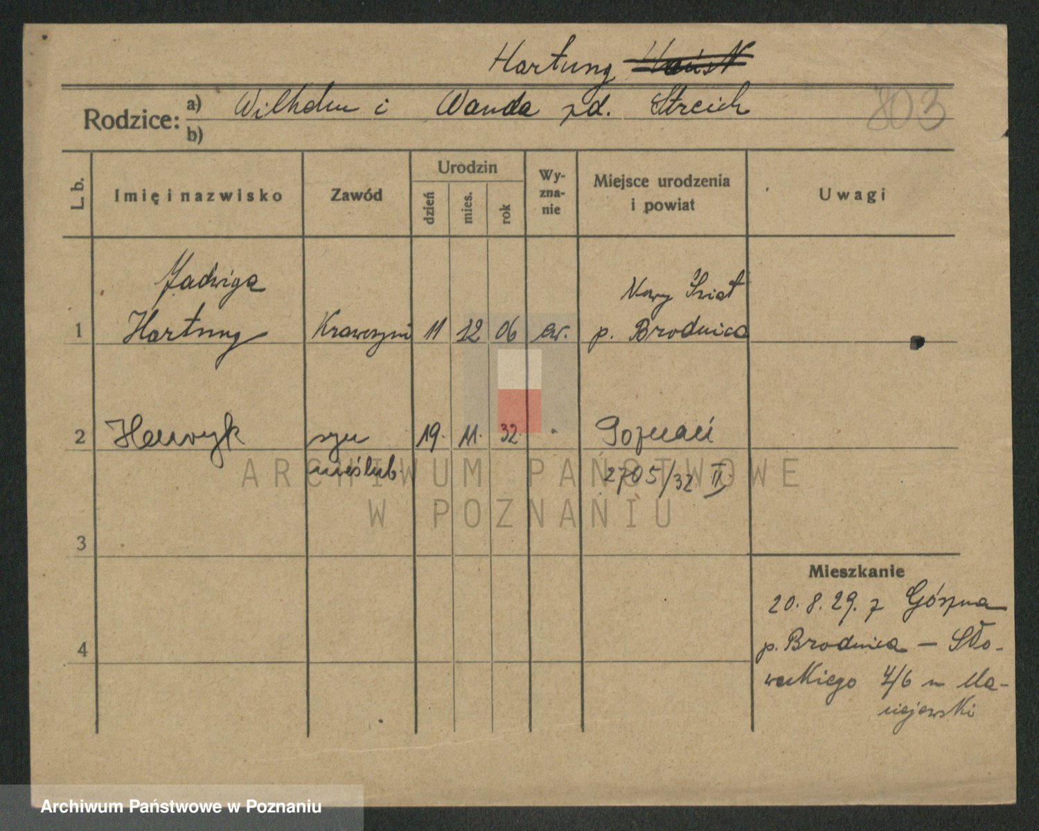 Hartwig z d. Olsztyńska, Marja
