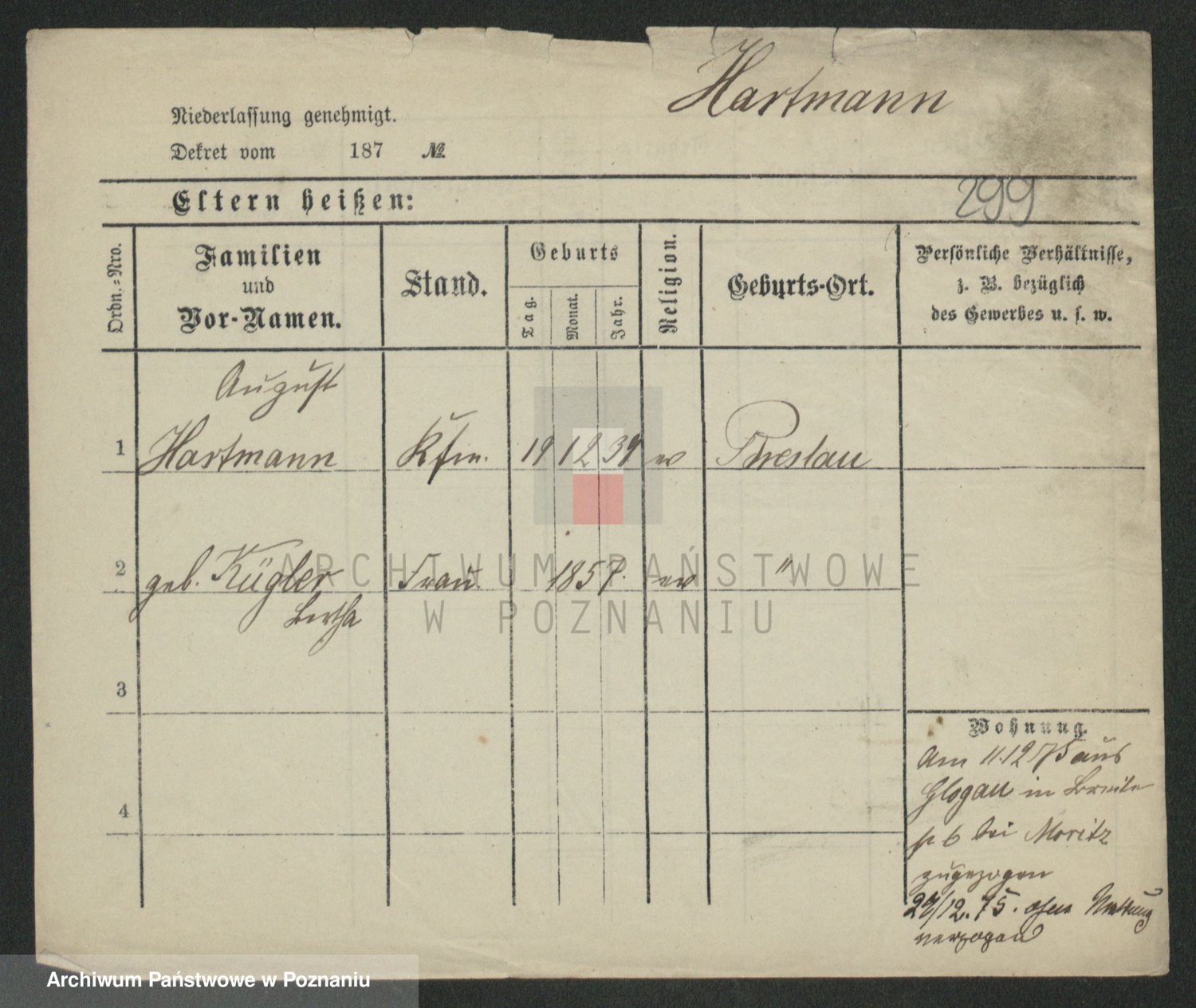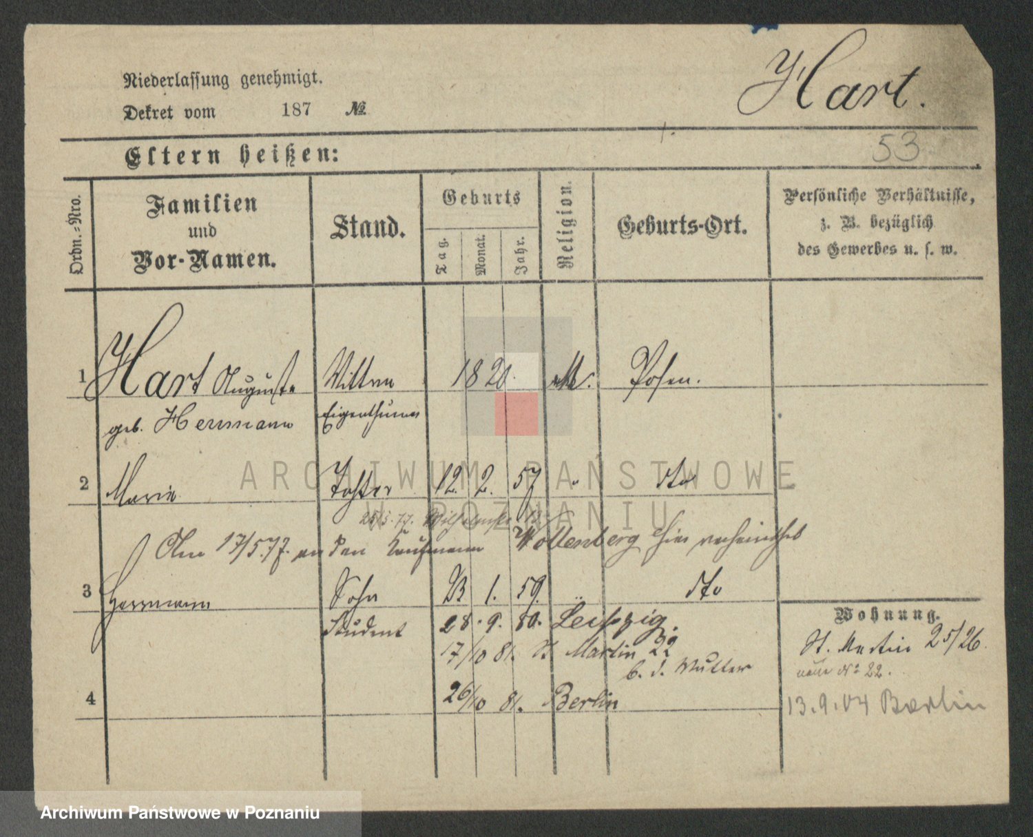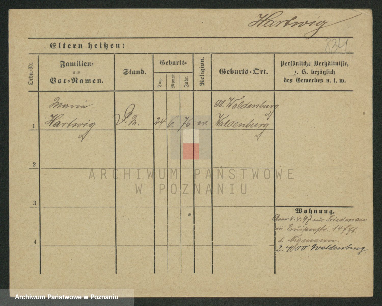 Hartwig z d. Wald, Auguste Martha