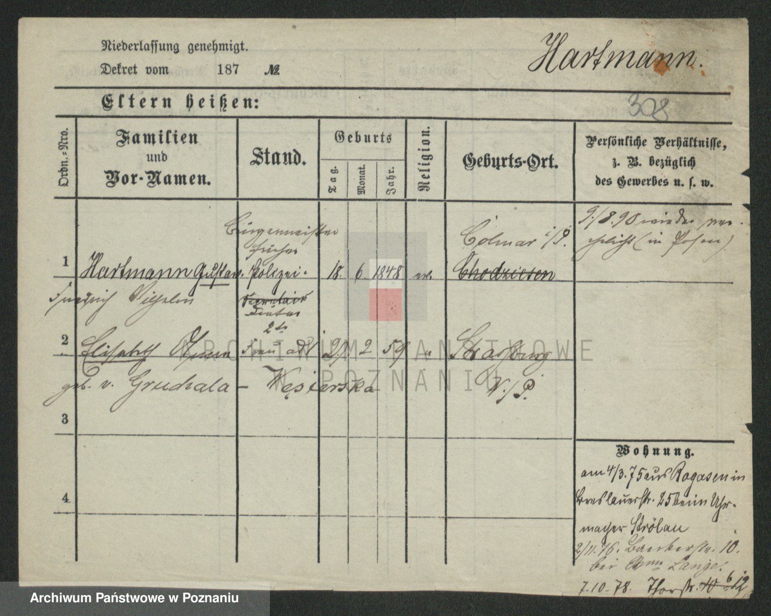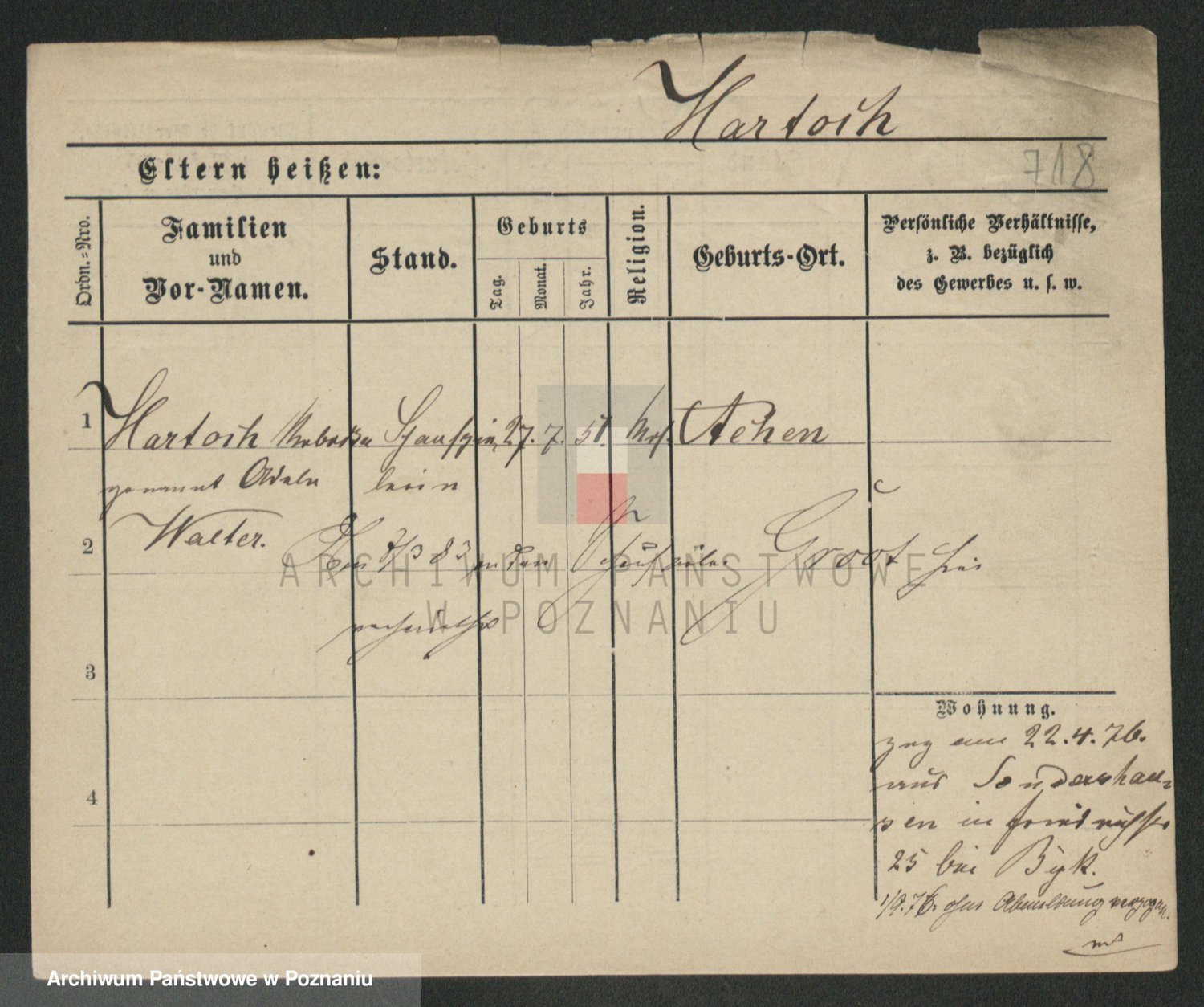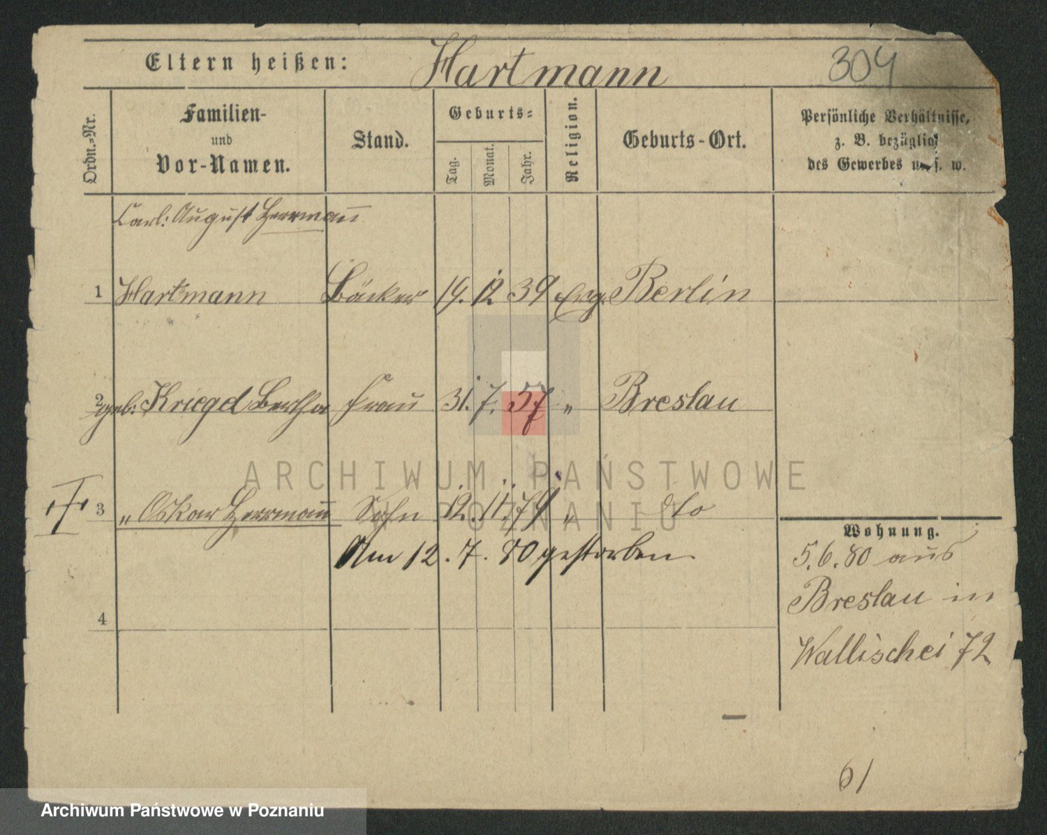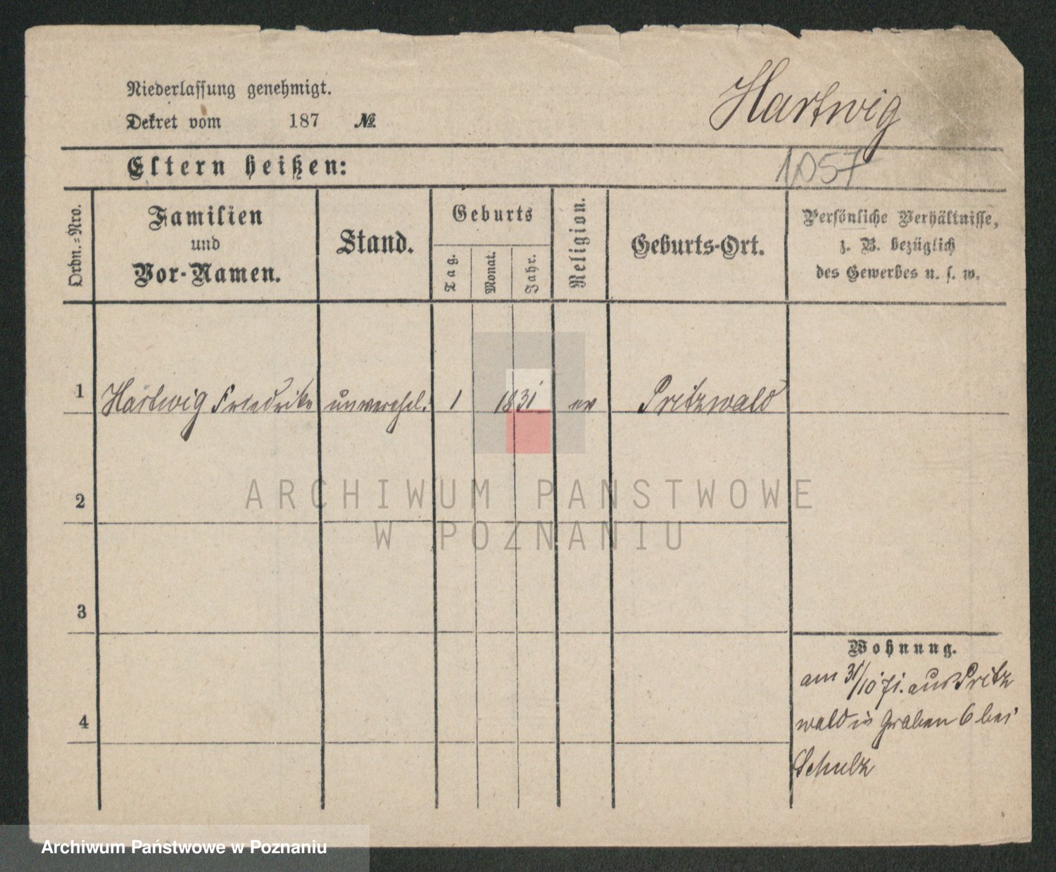 Hartwig z d. Wald, Auguste Martha