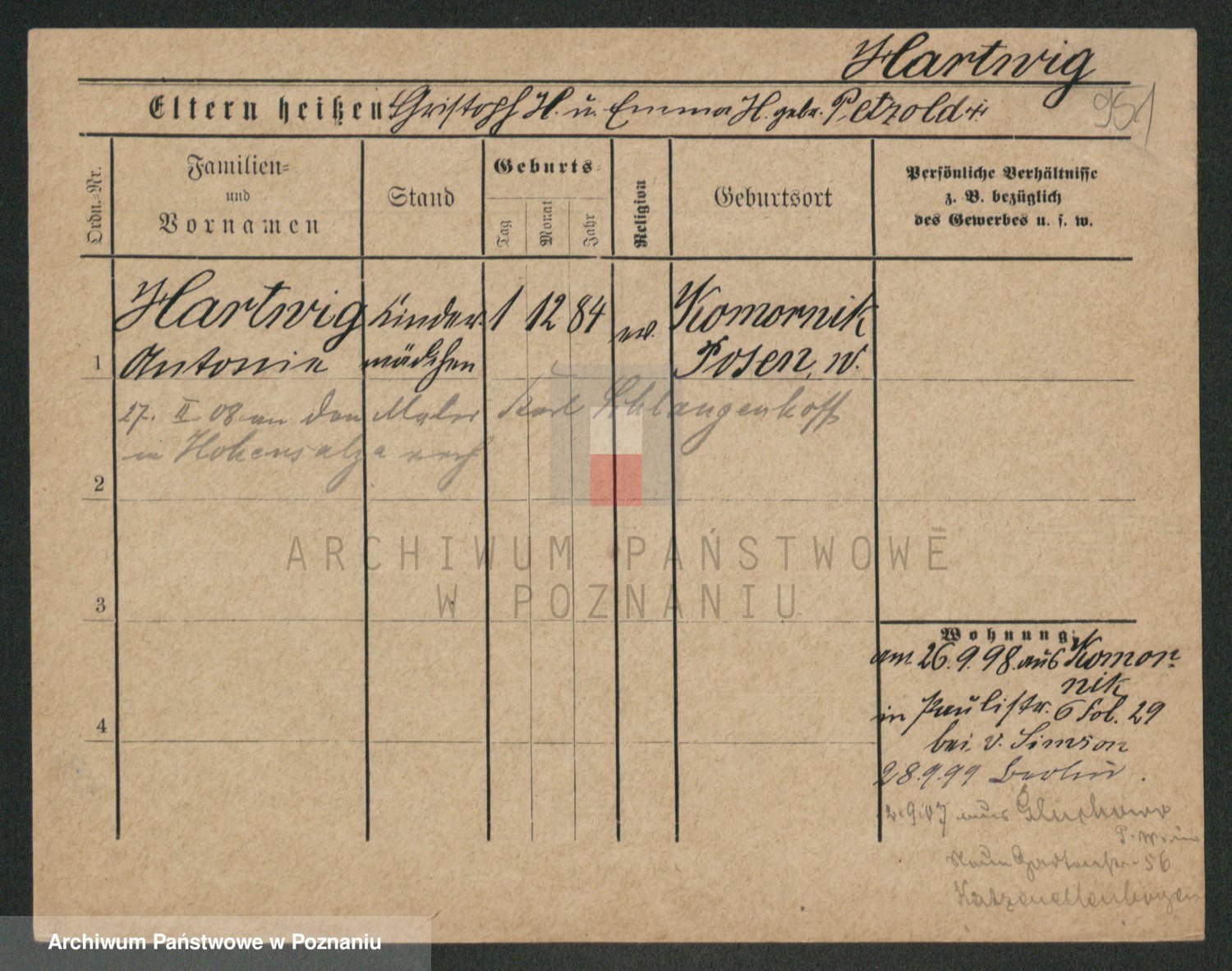 Hartwig z d. Kleinert, Ernstine