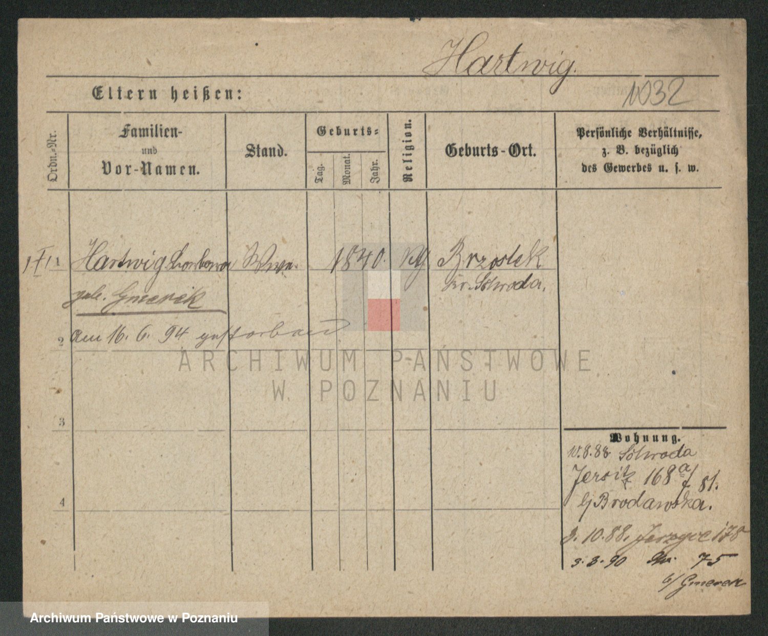 Hartwig z d. Zeuschner, Anna