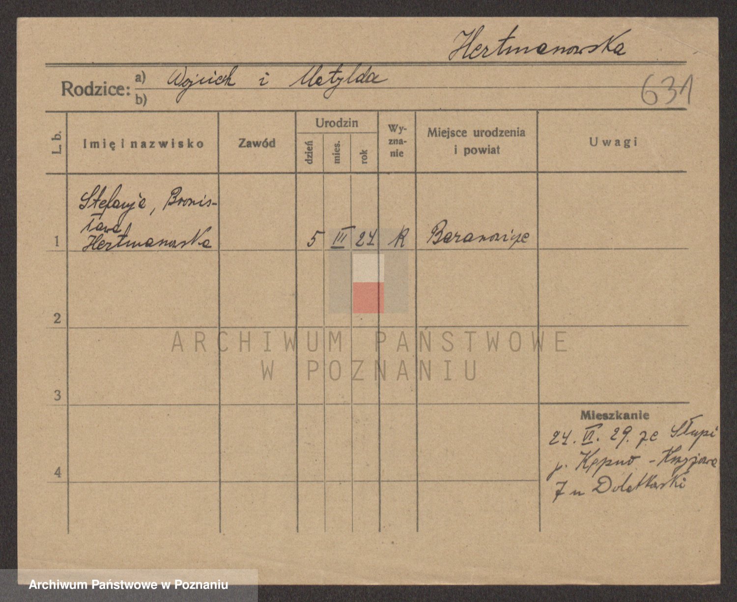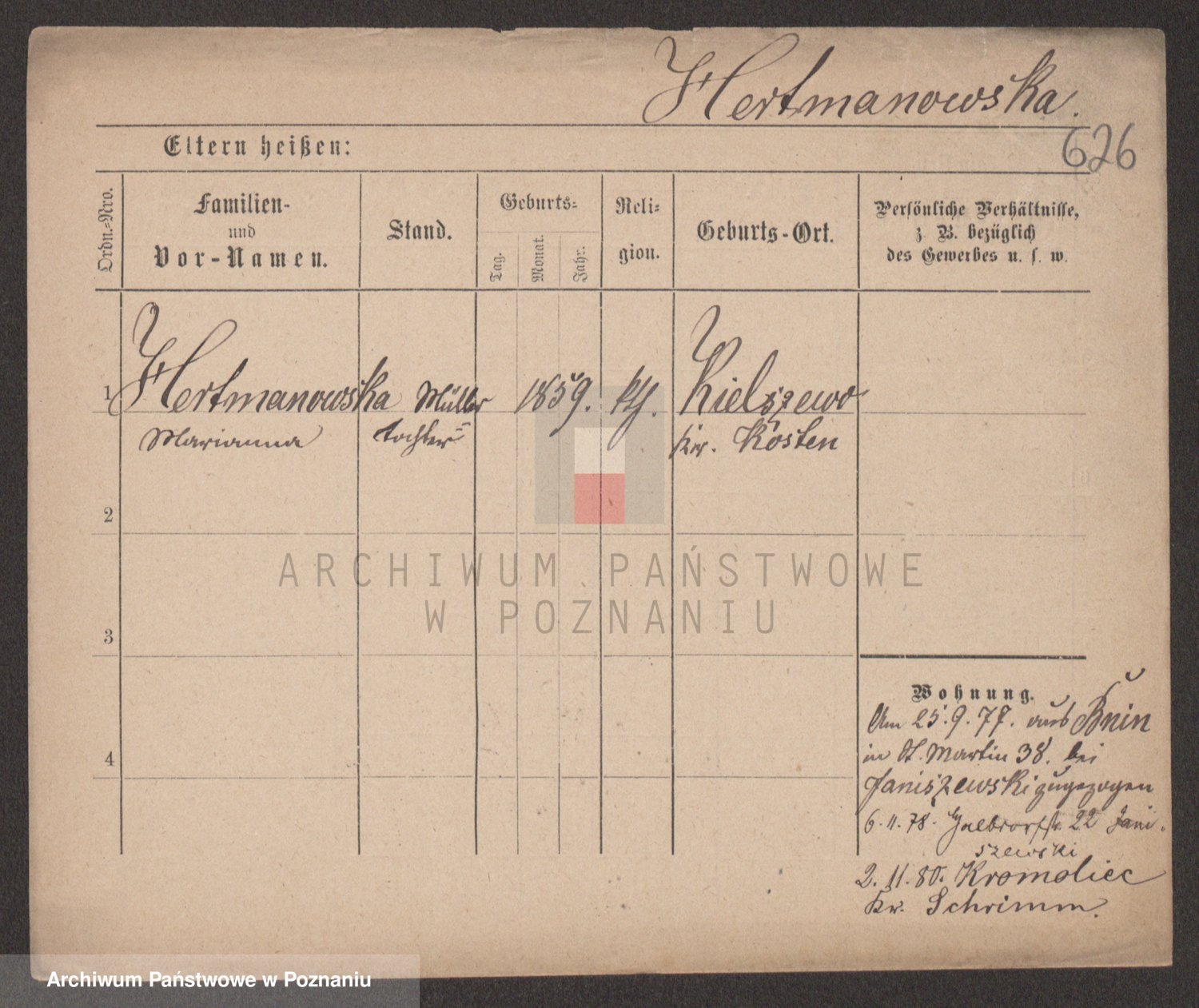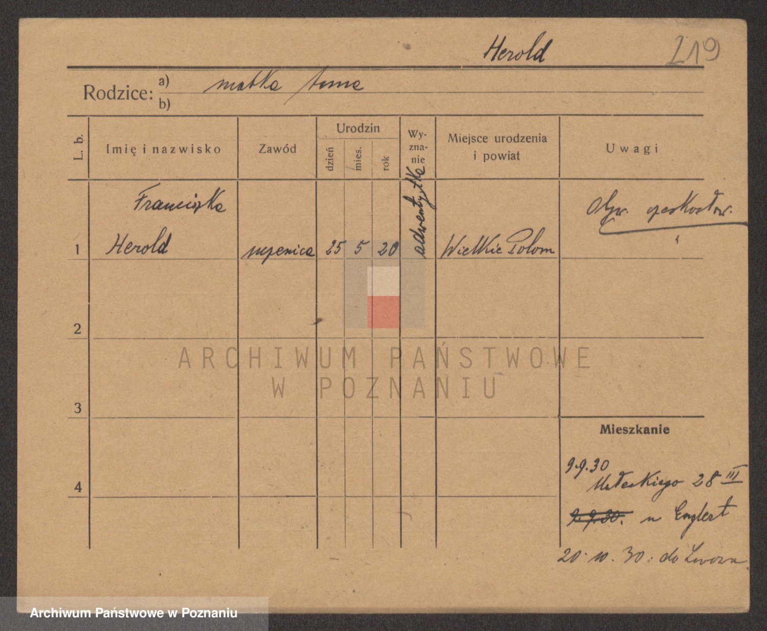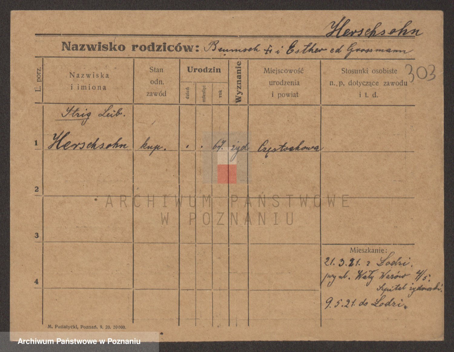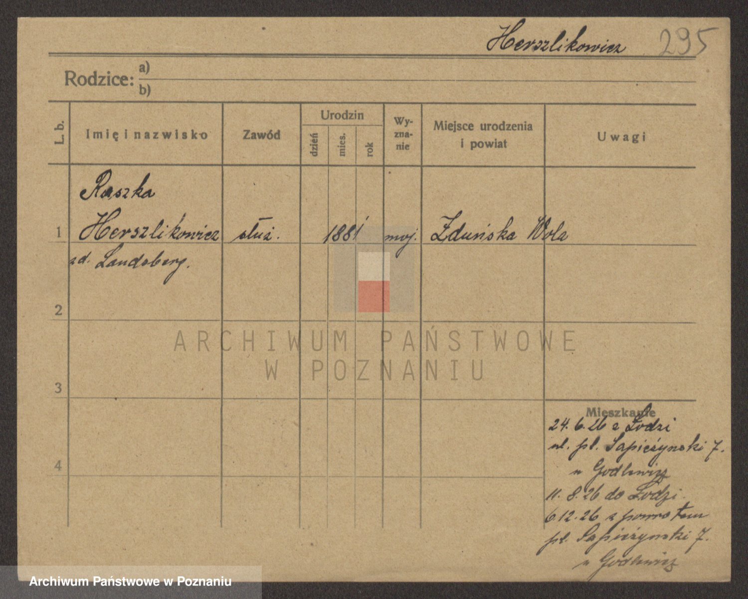 Podgląd karty osobowej dostępny jest po kliknięciu na nazwisko lub ikonkę karty. Można dokonywać powiększenia (ikony na górze) lub przechodzić między kolejnymi skanami (strzałki po bokach).