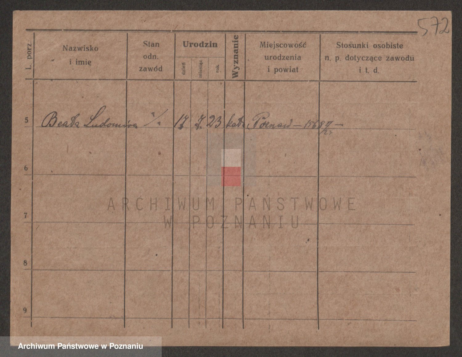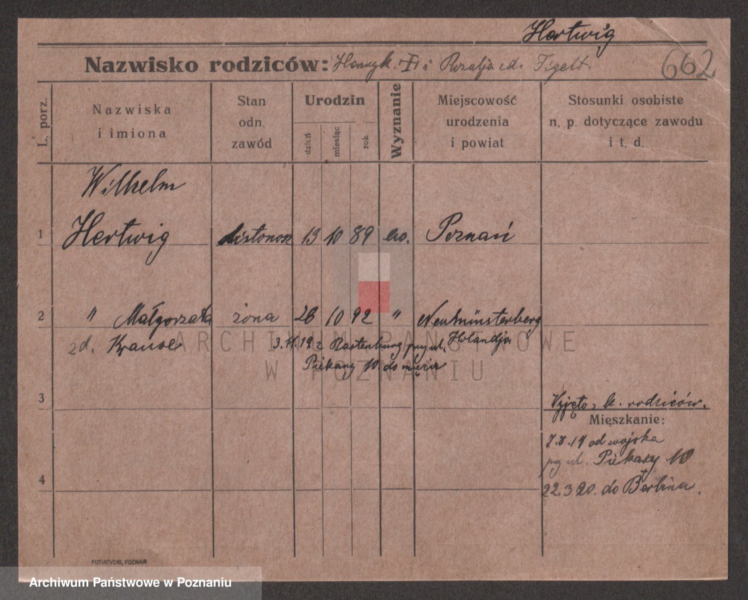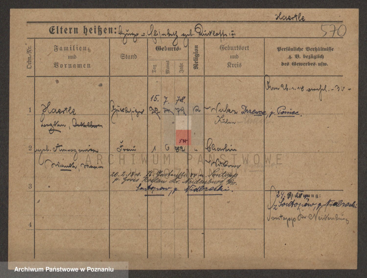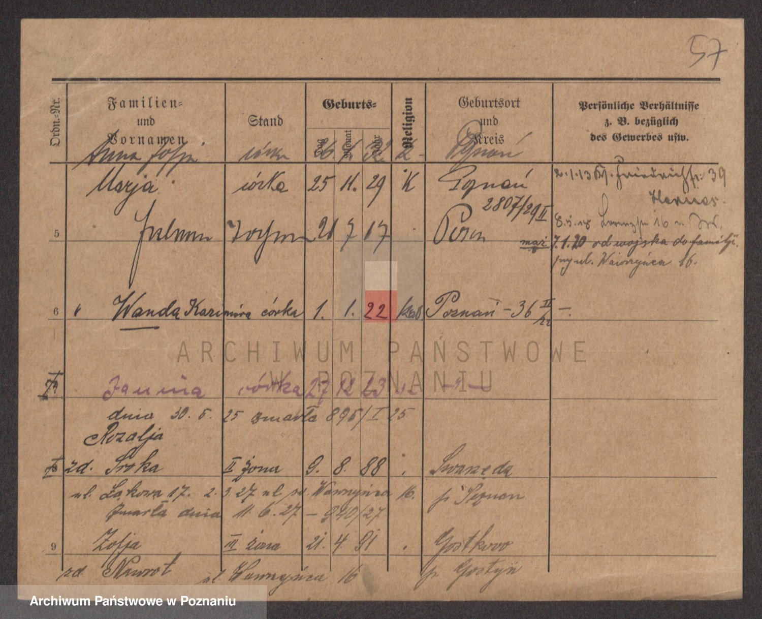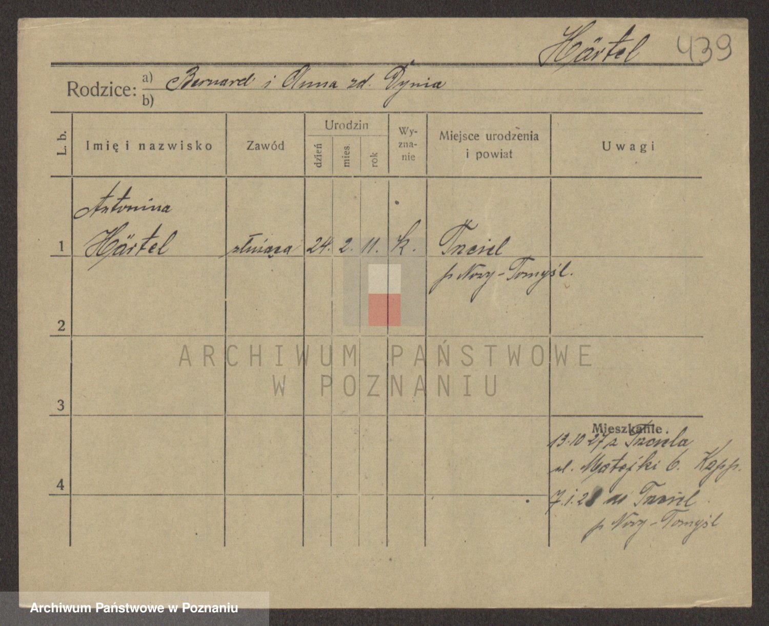 Podgląd karty osobowej dostępny jest po kliknięciu na nazwisko lub ikonkę karty. Można dokonywać powiększenia (ikony na górze) lub przechodzić między kolejnymi skanami (strzałki po bokach).
