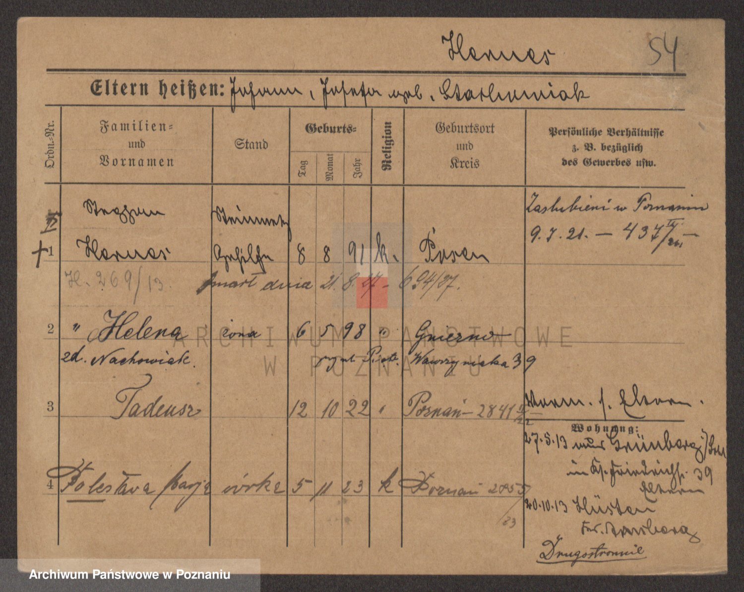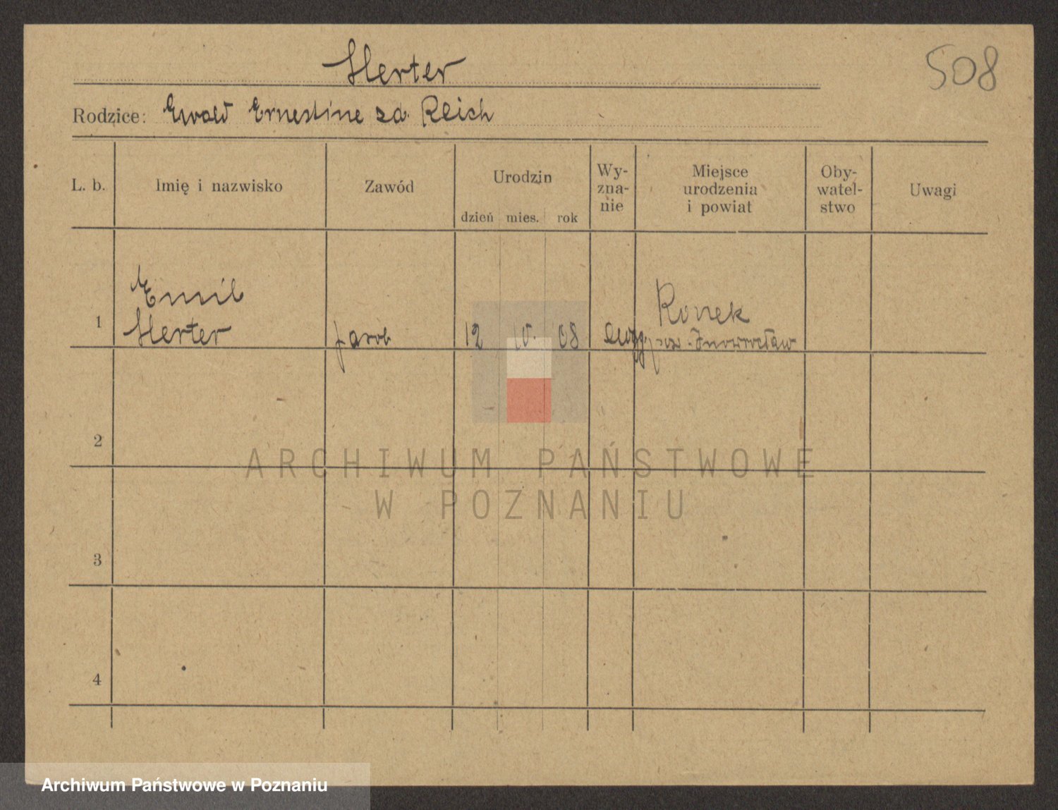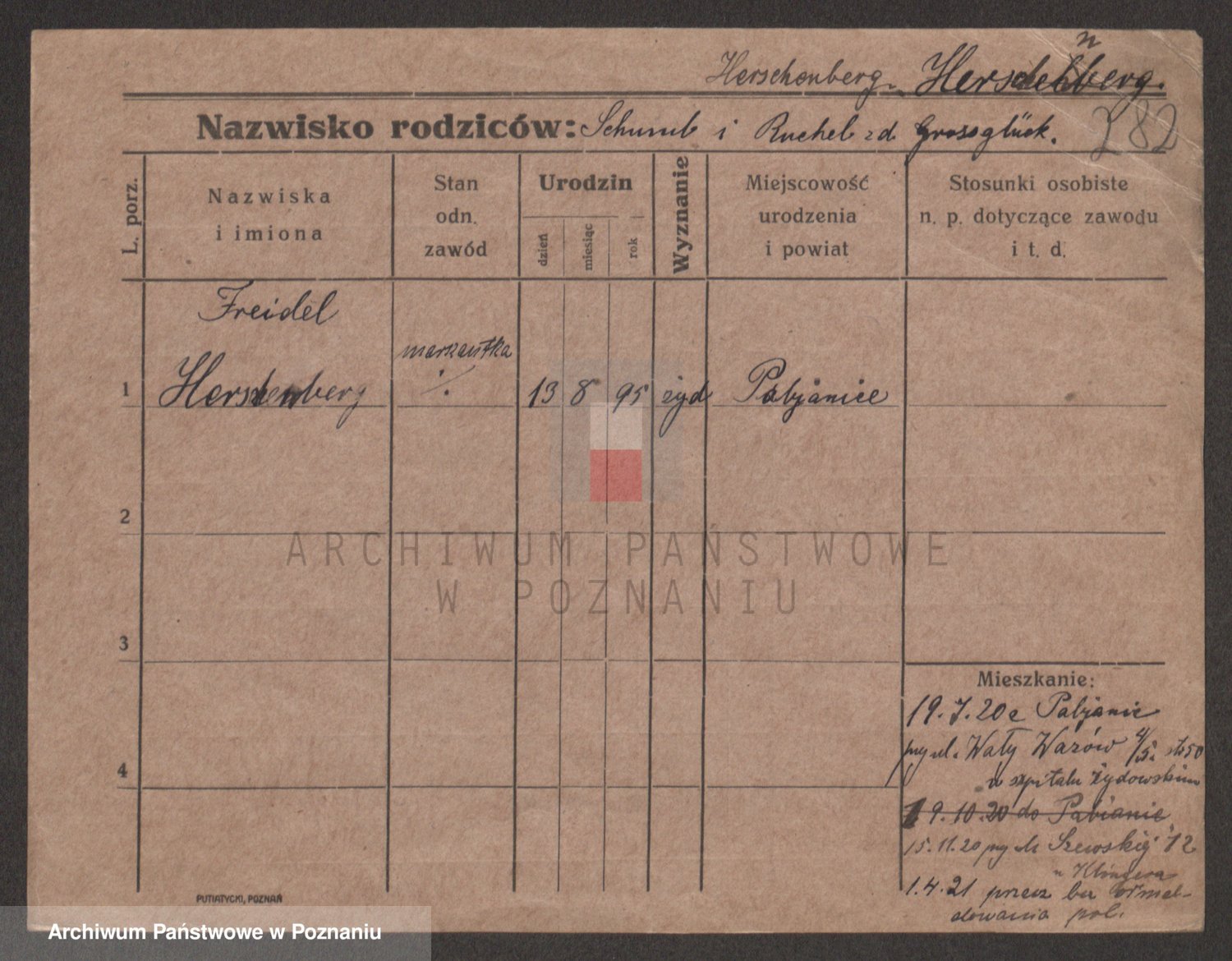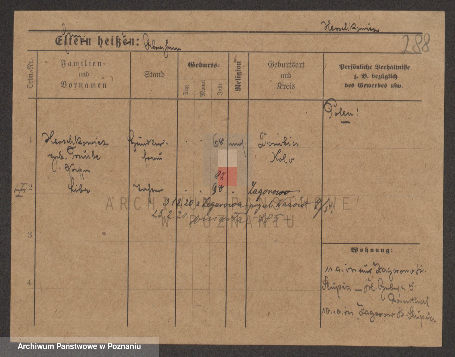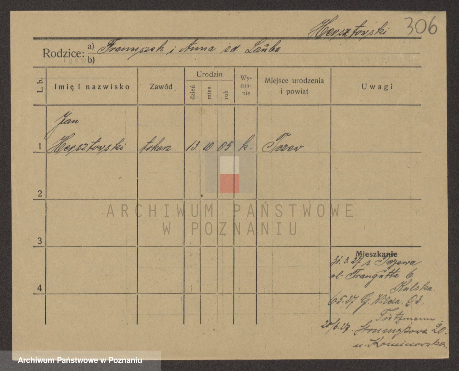 Podgląd karty osobowej dostępny jest po kliknięciu na nazwisko lub ikonkę karty. Można dokonywać powiększenia (ikony na górze) lub przechodzić między kolejnymi skanami (strzałki po bokach).