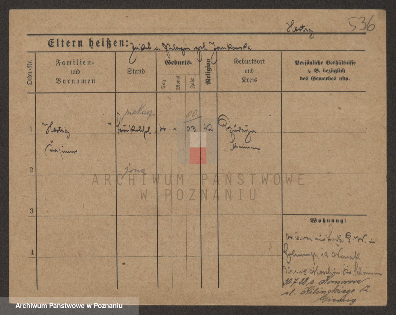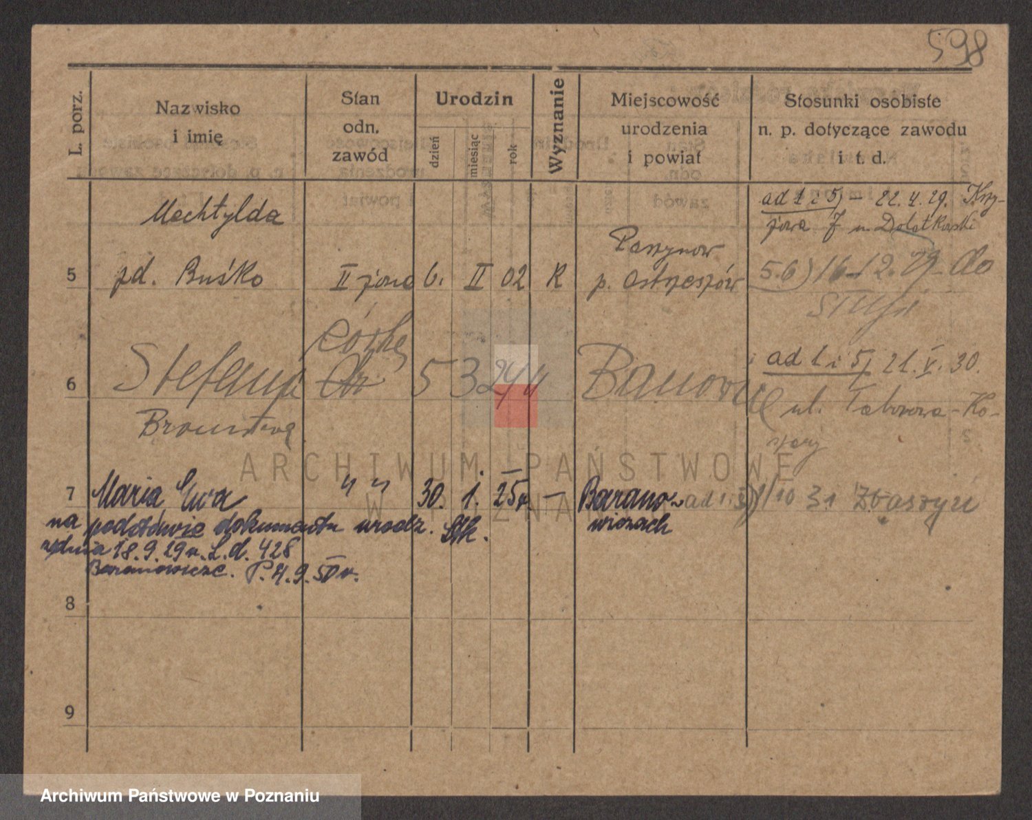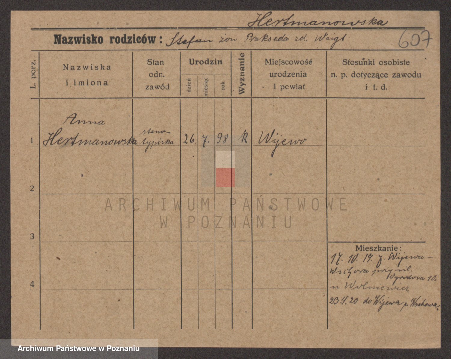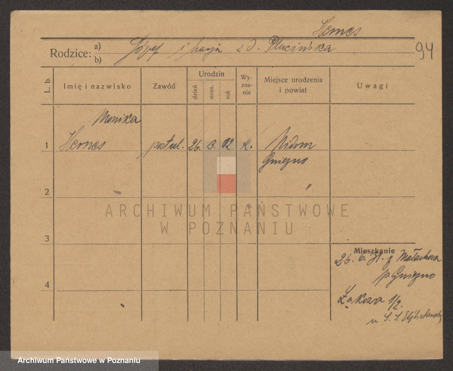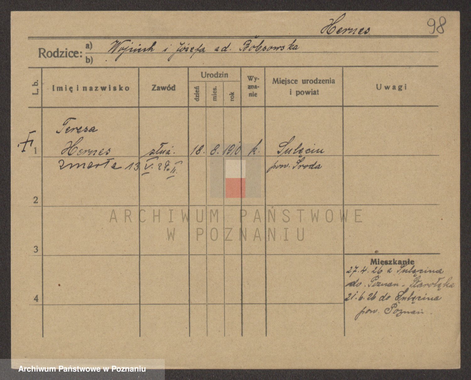 Podgląd karty osobowej dostępny jest po kliknięciu na nazwisko lub ikonkę karty. Można dokonywać powiększenia (ikony na górze) lub przechodzić między kolejnymi skanami (strzałki po bokach).