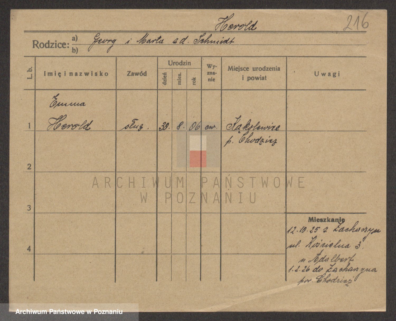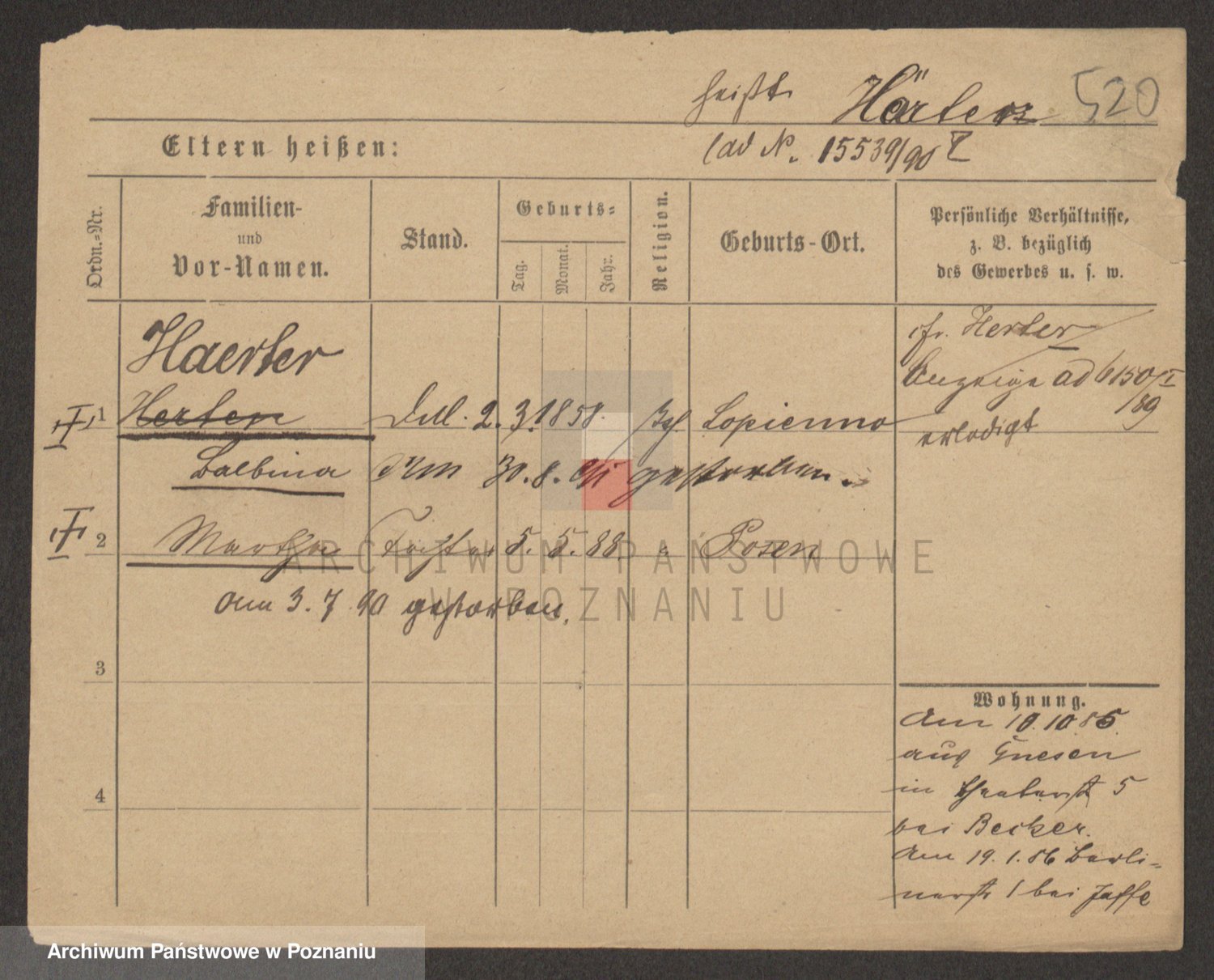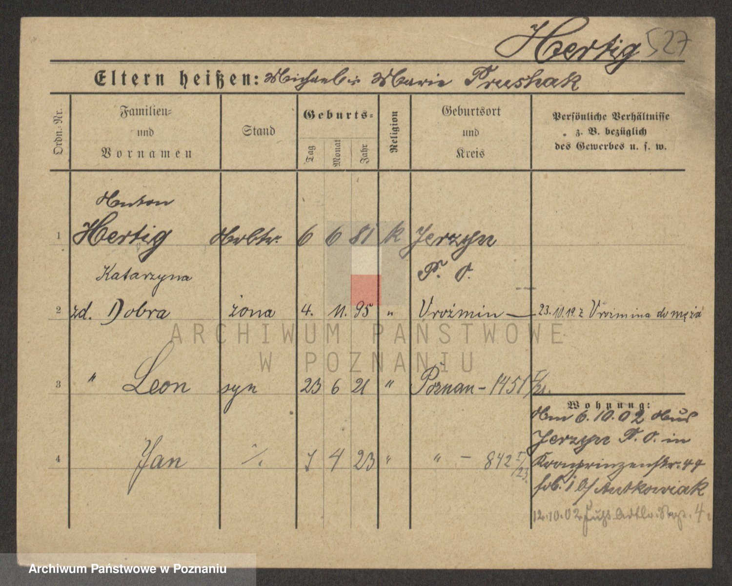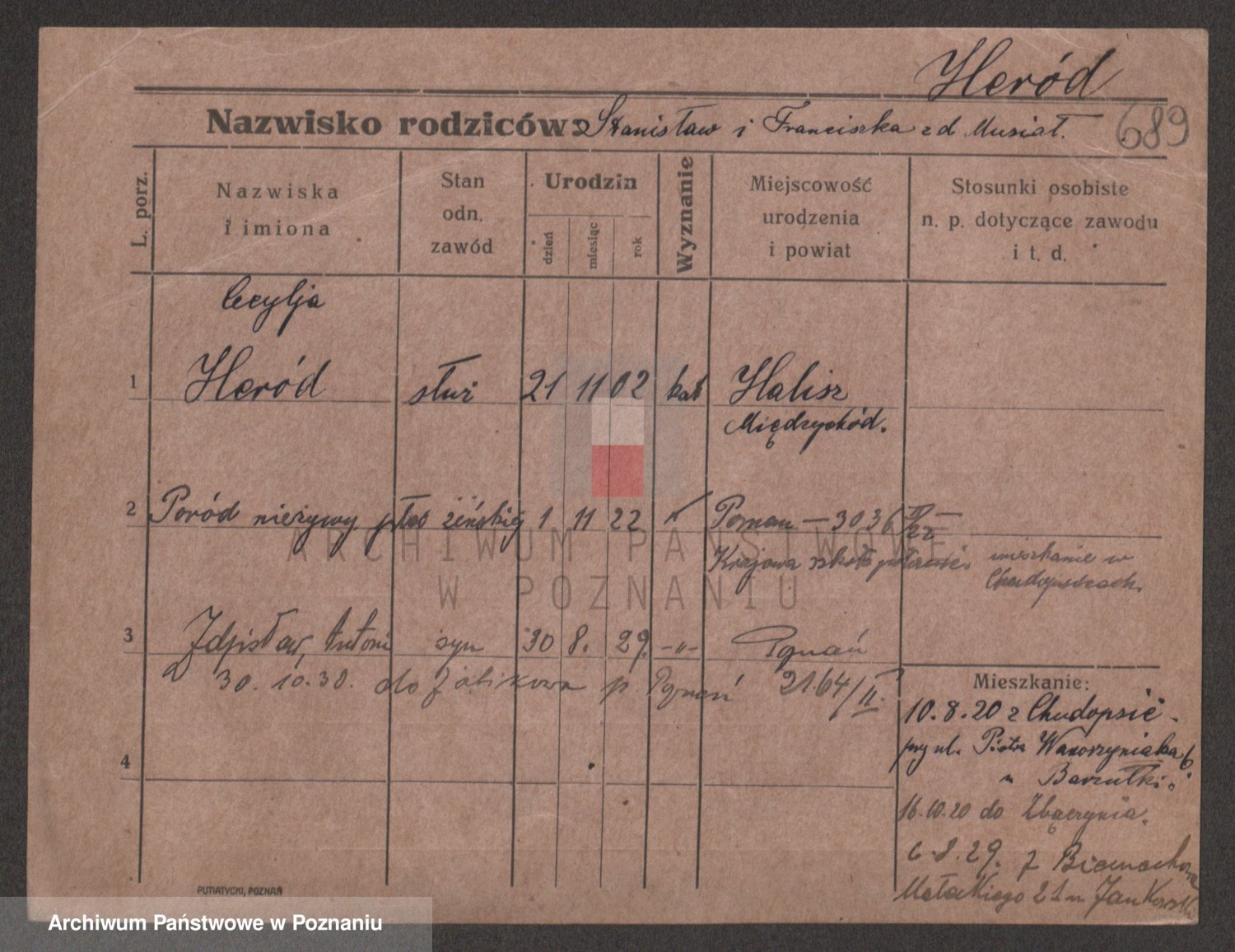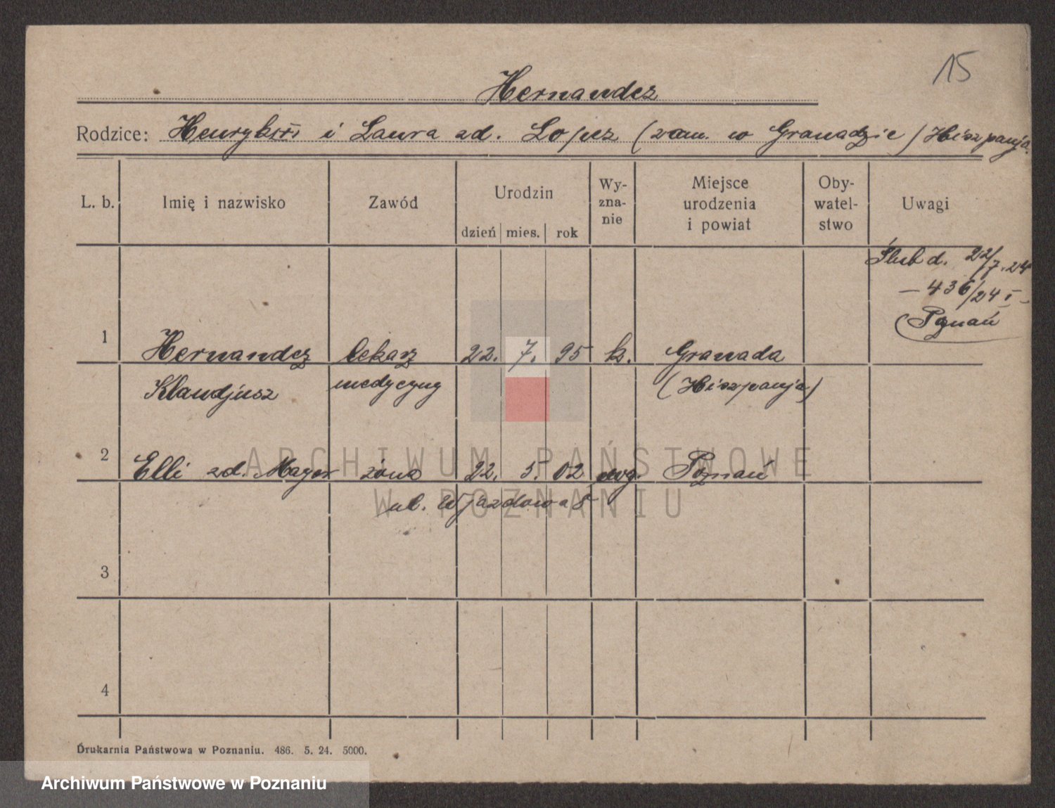 Podgląd karty osobowej dostępny jest po kliknięciu na nazwisko lub ikonkę karty. Można dokonywać powiększenia (ikony na górze) lub przechodzić między kolejnymi skanami (strzałki po bokach).