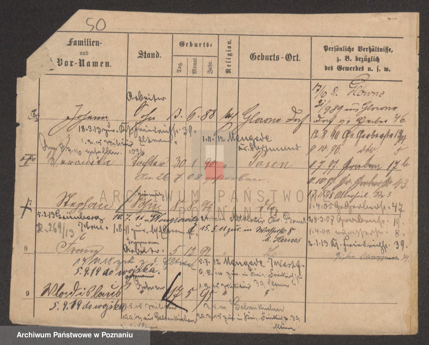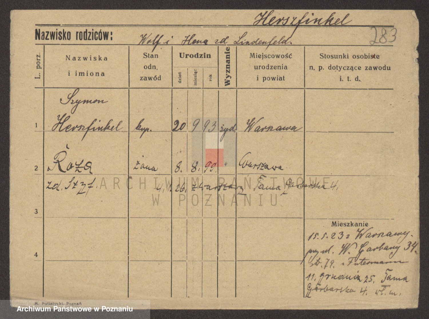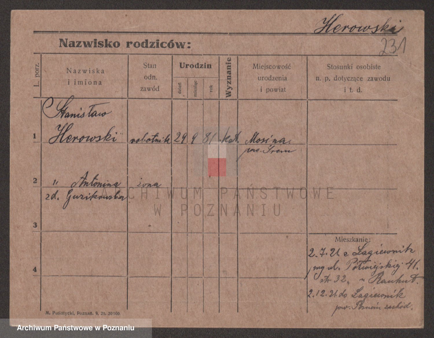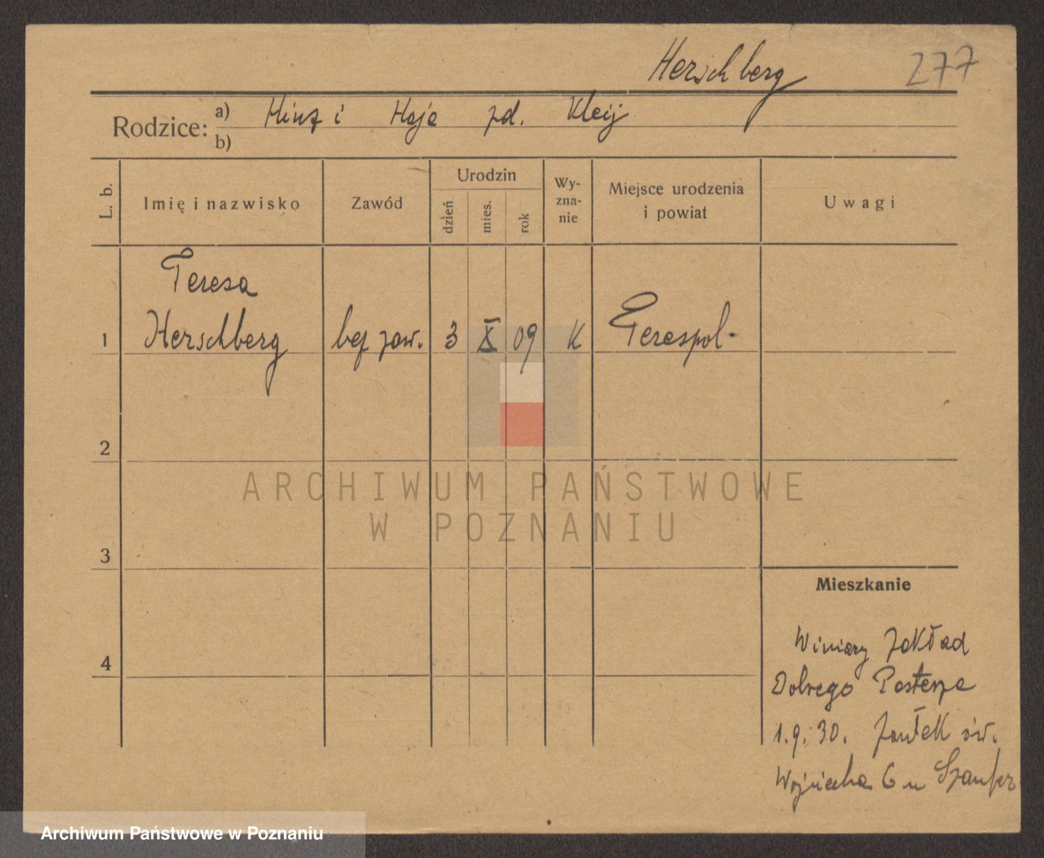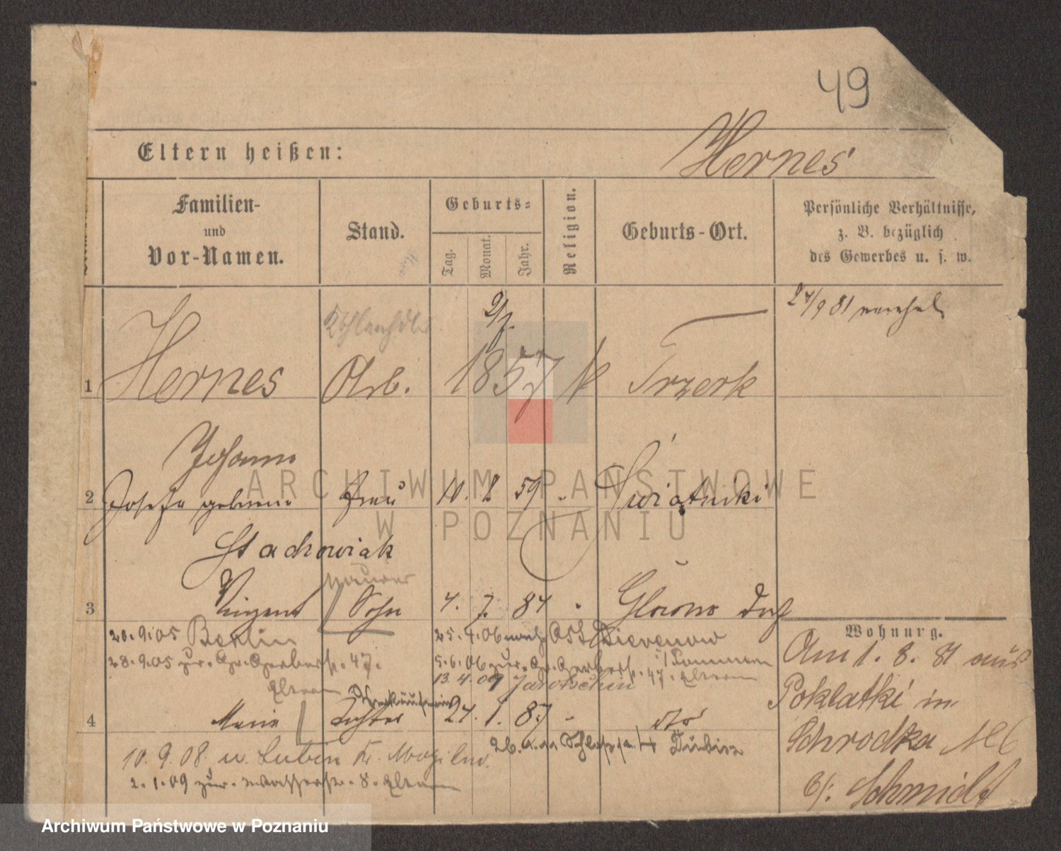 Podgląd karty osobowej dostępny jest po kliknięciu na nazwisko lub ikonkę karty. Można dokonywać powiększenia (ikony na górze) lub przechodzić między kolejnymi skanami (strzałki po bokach).