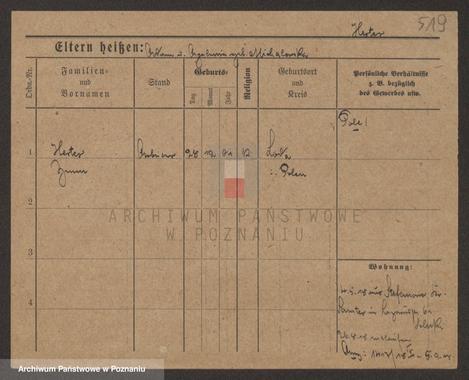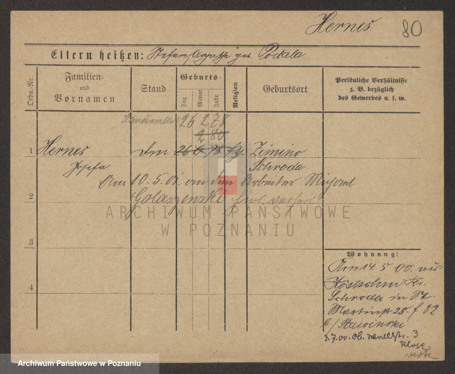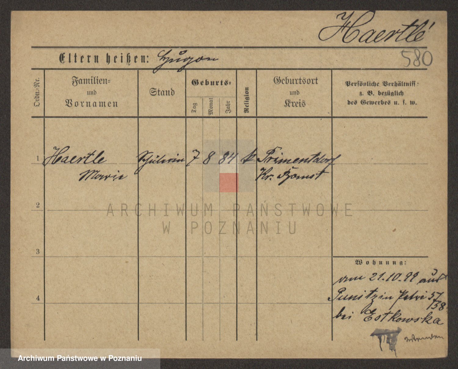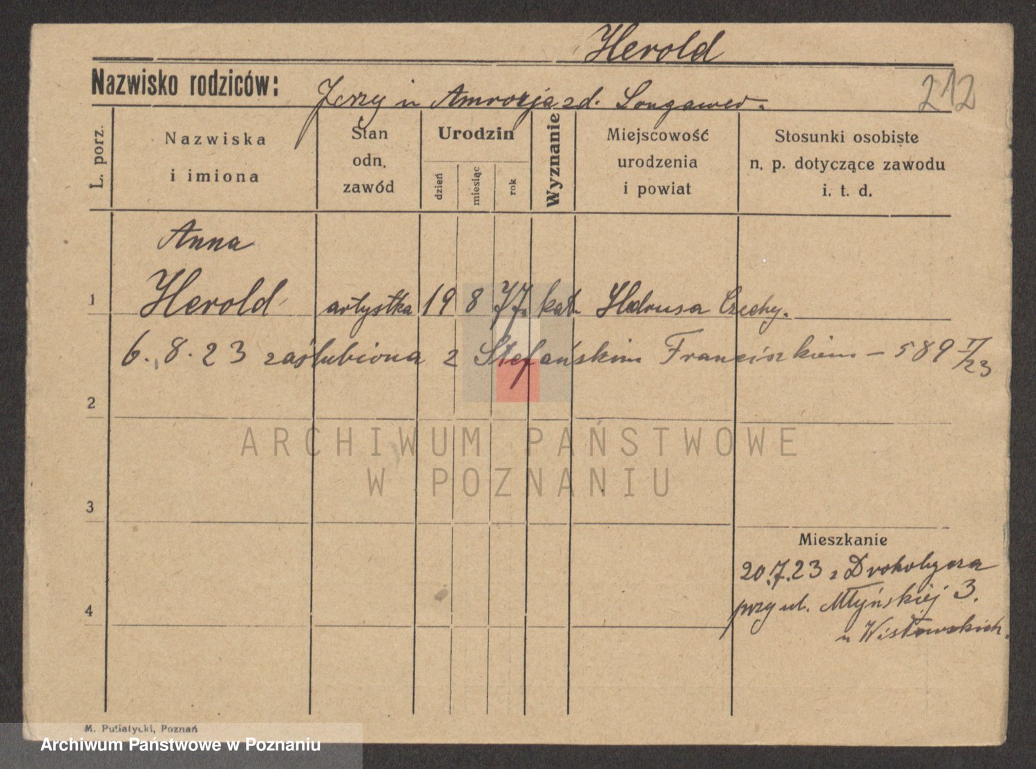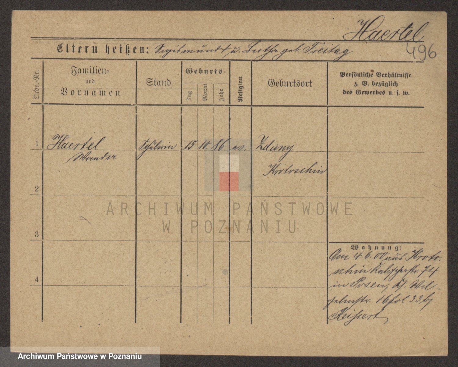 Podgląd karty osobowej dostępny jest po kliknięciu na nazwisko lub ikonkę karty. Można dokonywać powiększenia (ikony na górze) lub przechodzić między kolejnymi skanami (strzałki po bokach).
