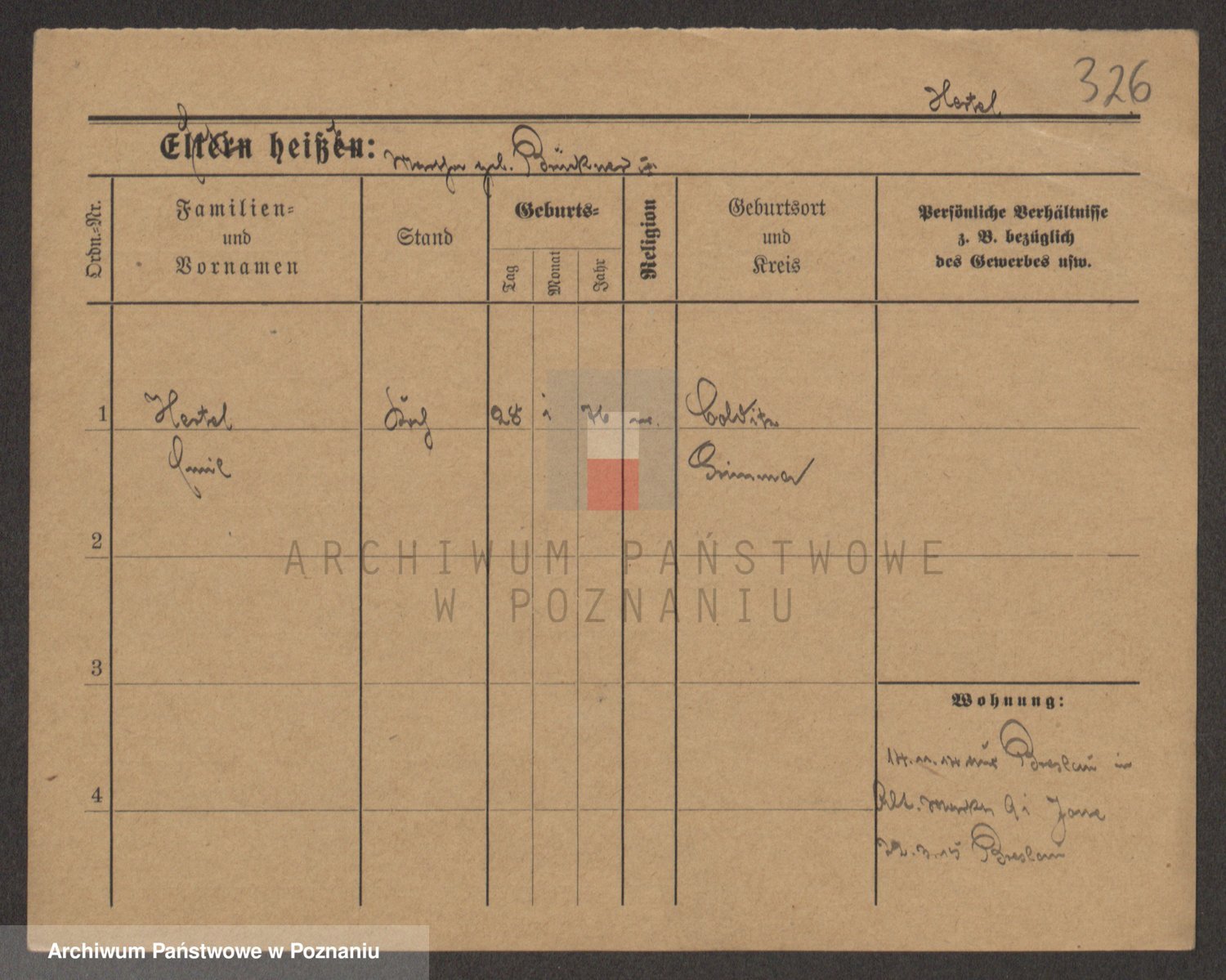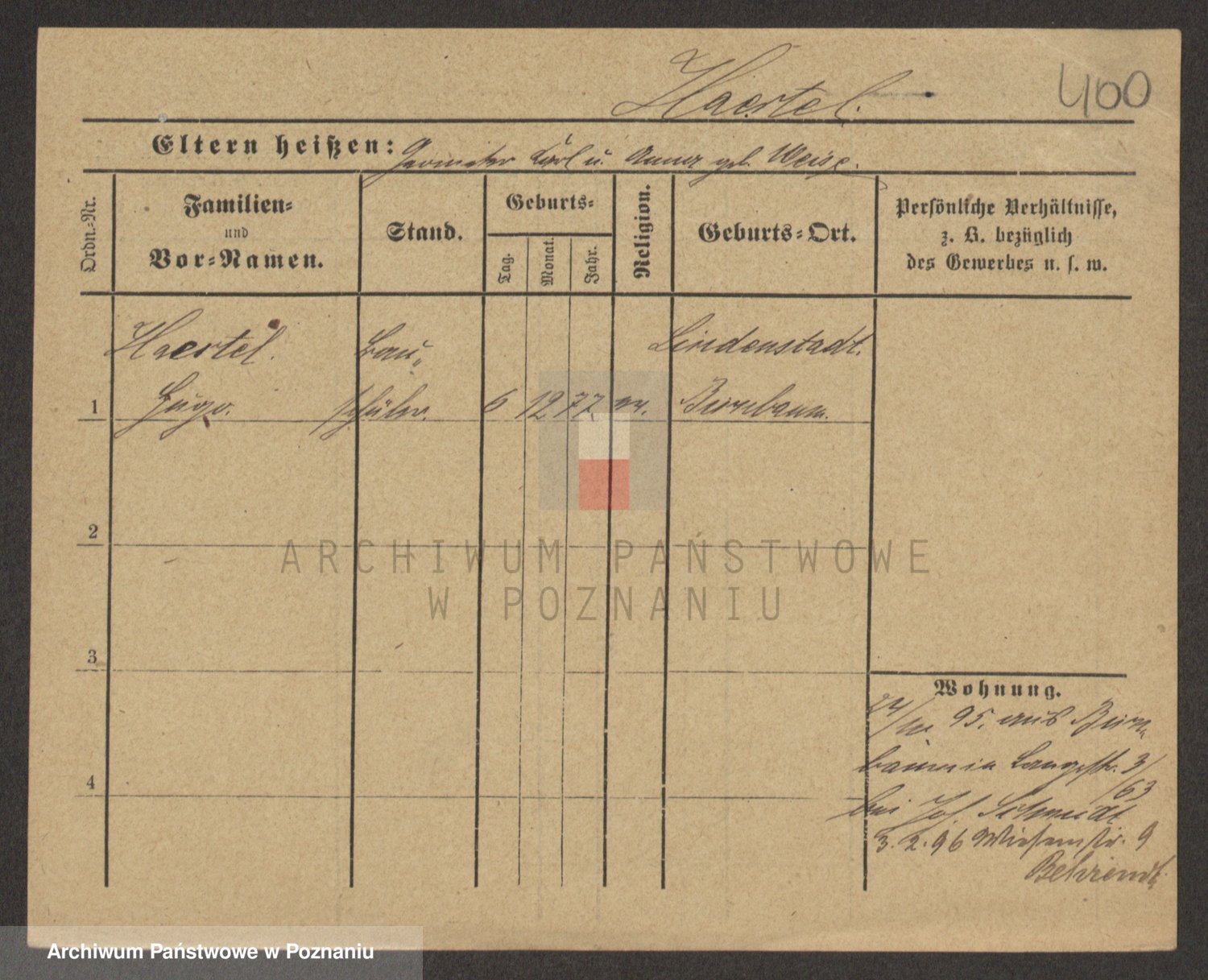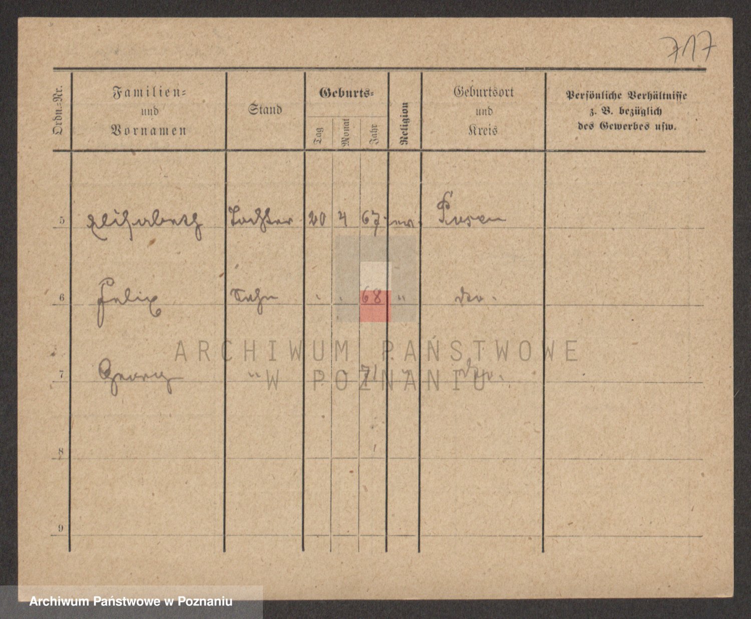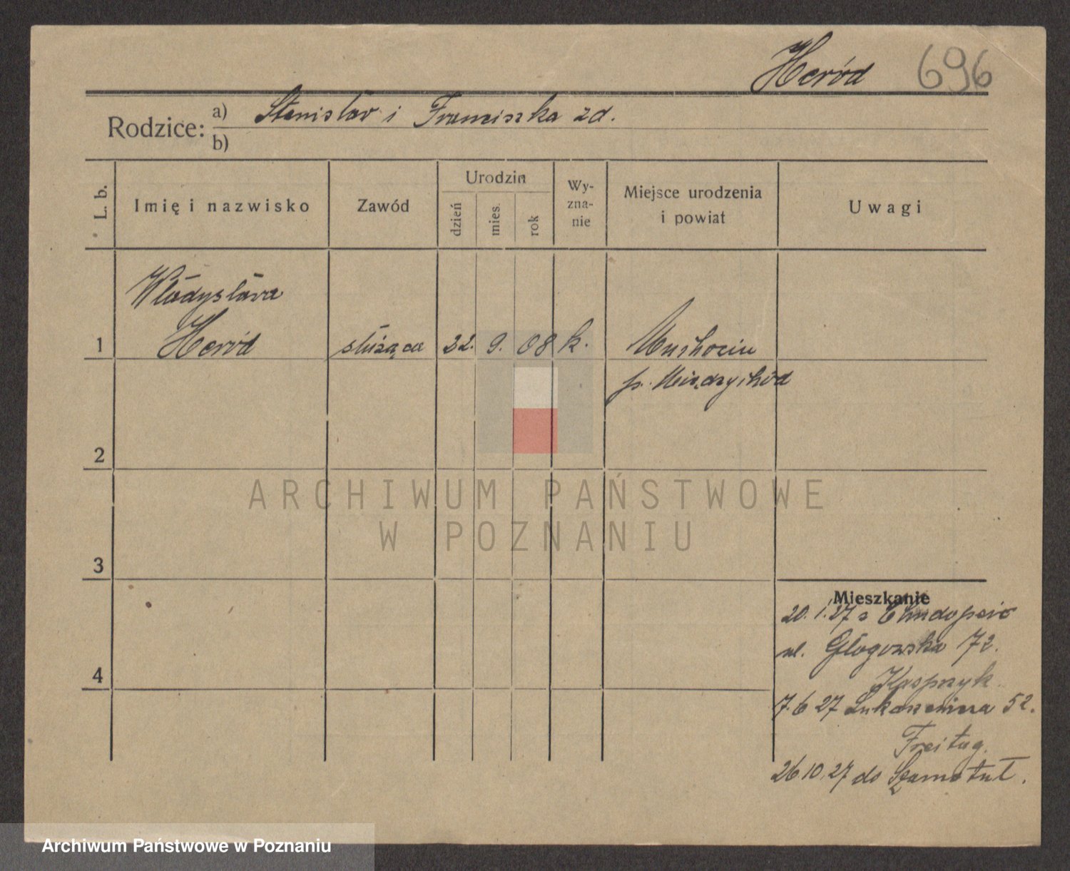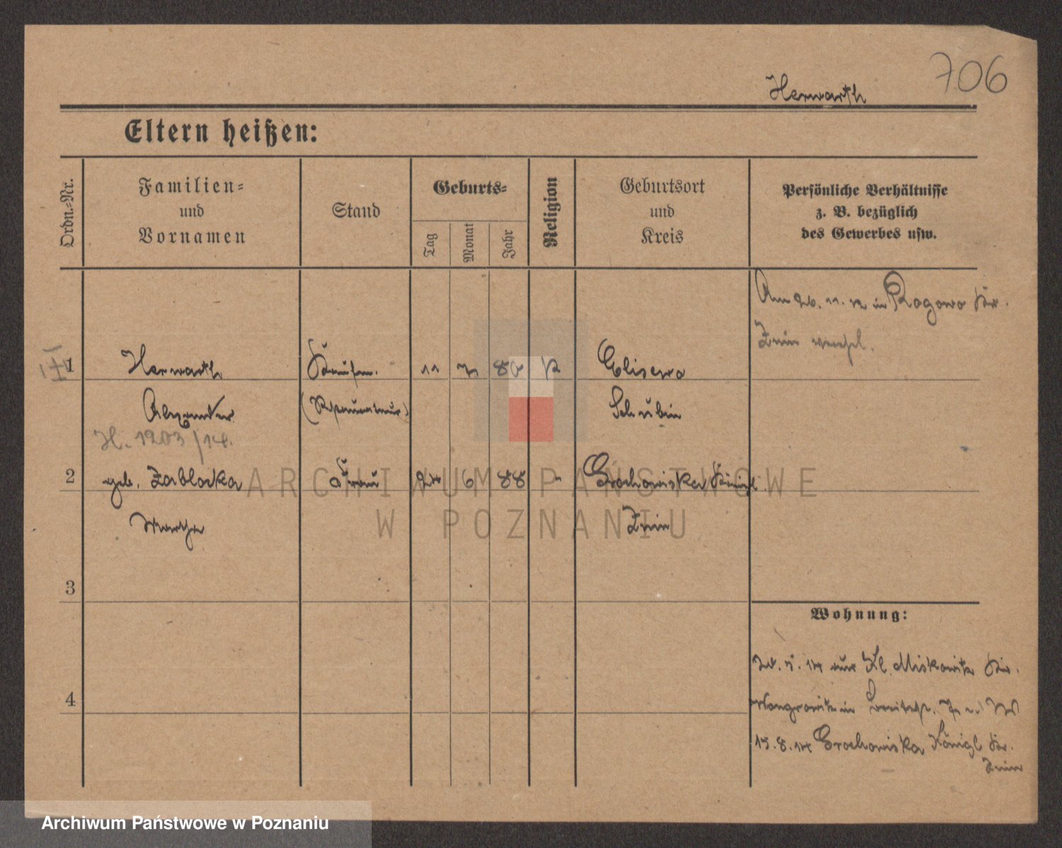 Podgląd karty osobowej dostępny jest po kliknięciu na nazwisko lub ikonkę karty. Można dokonywać powiększenia (ikony na górze) lub przechodzić między kolejnymi skanami (strzałki po bokach).