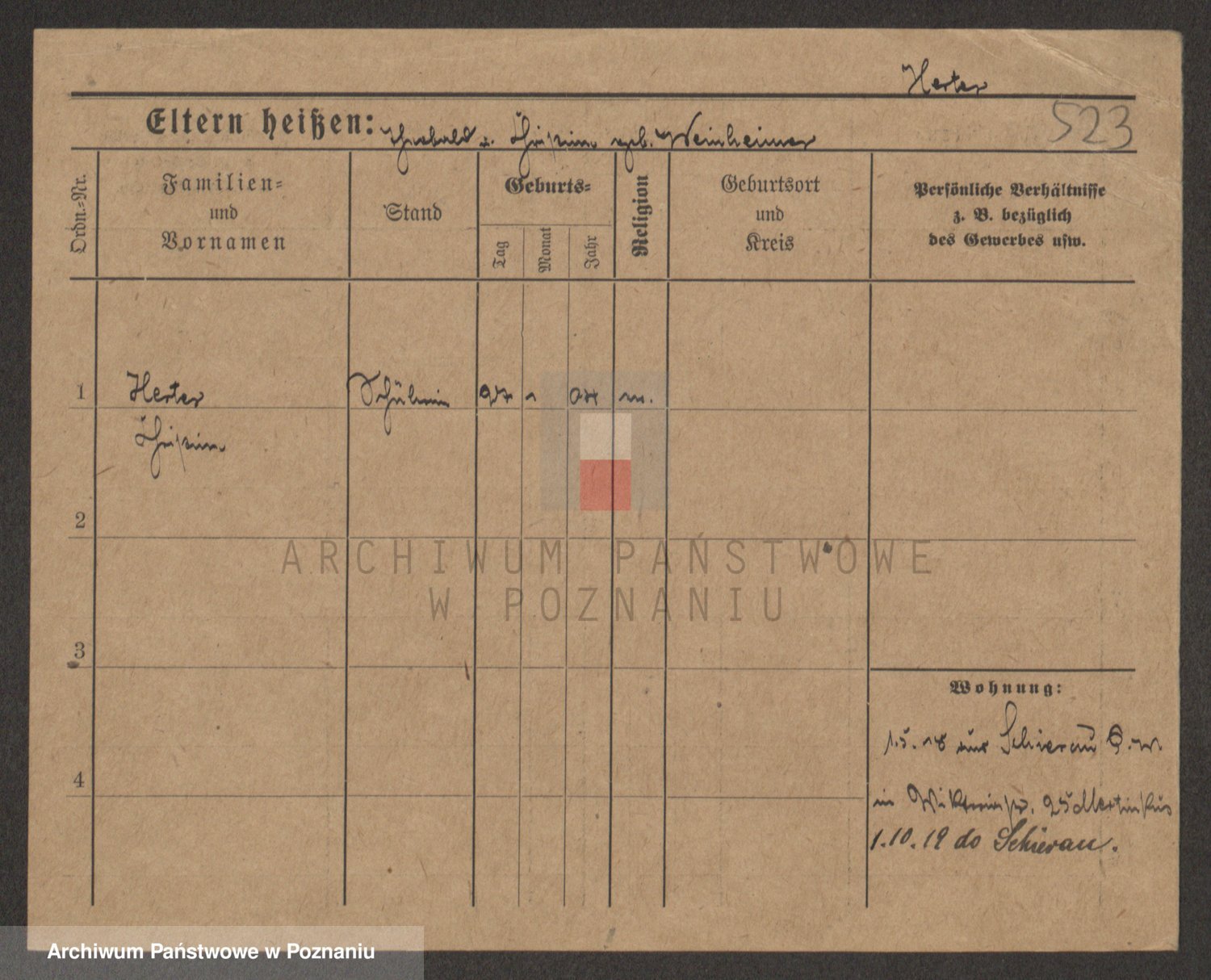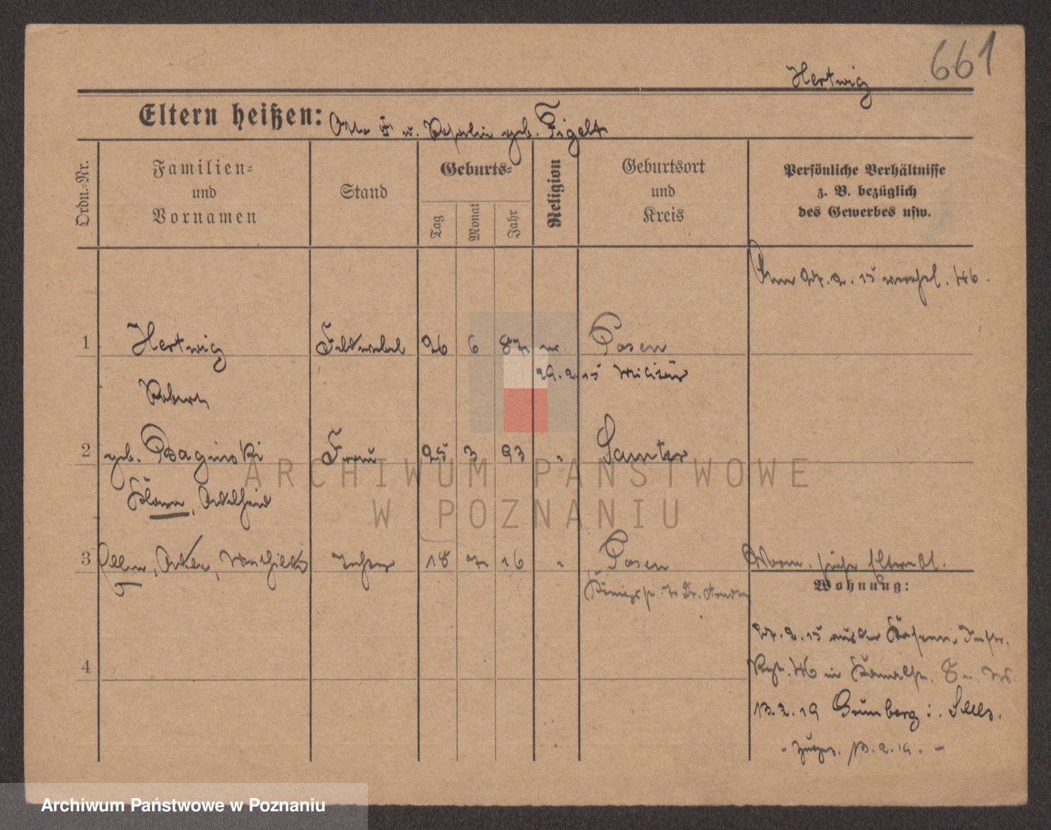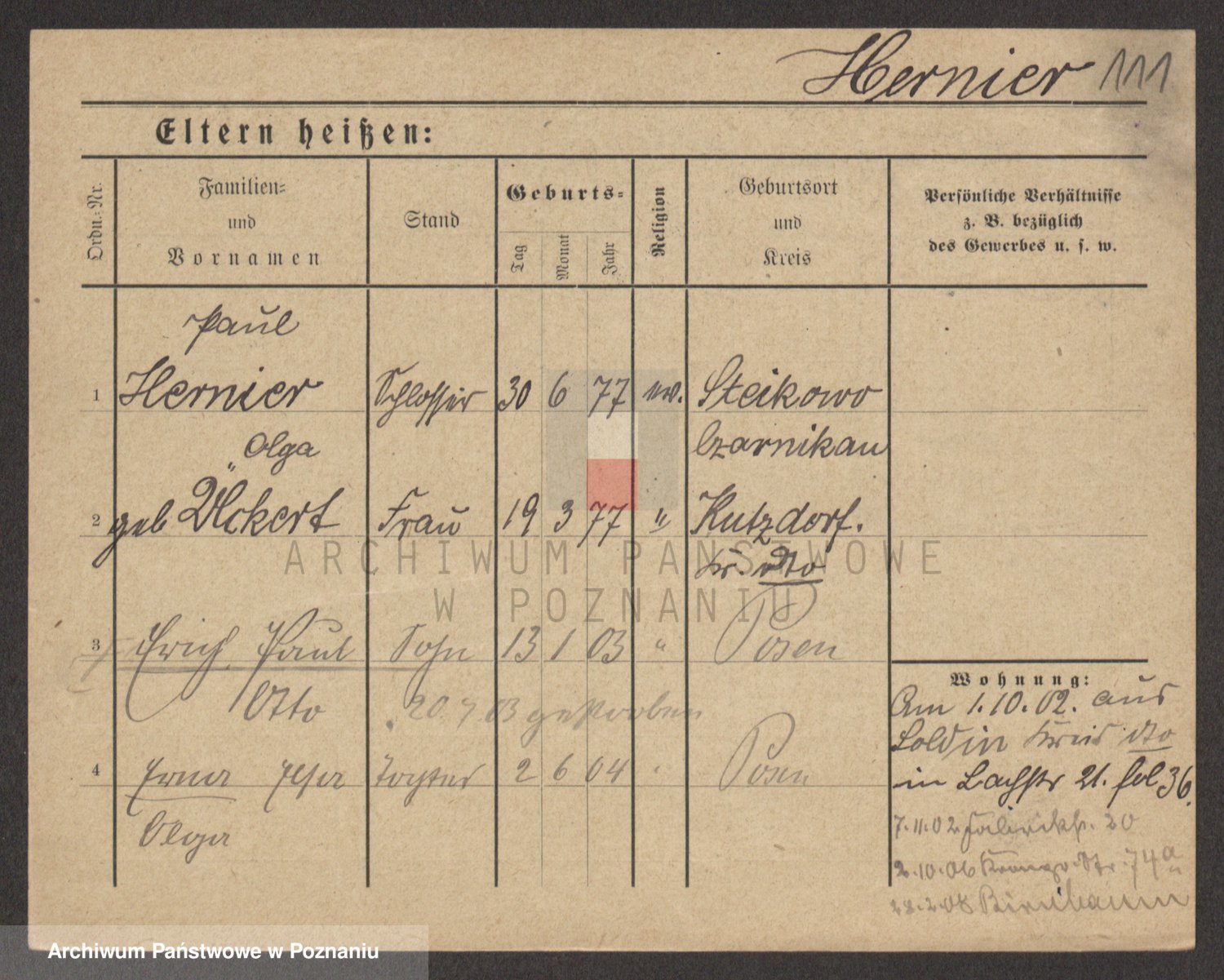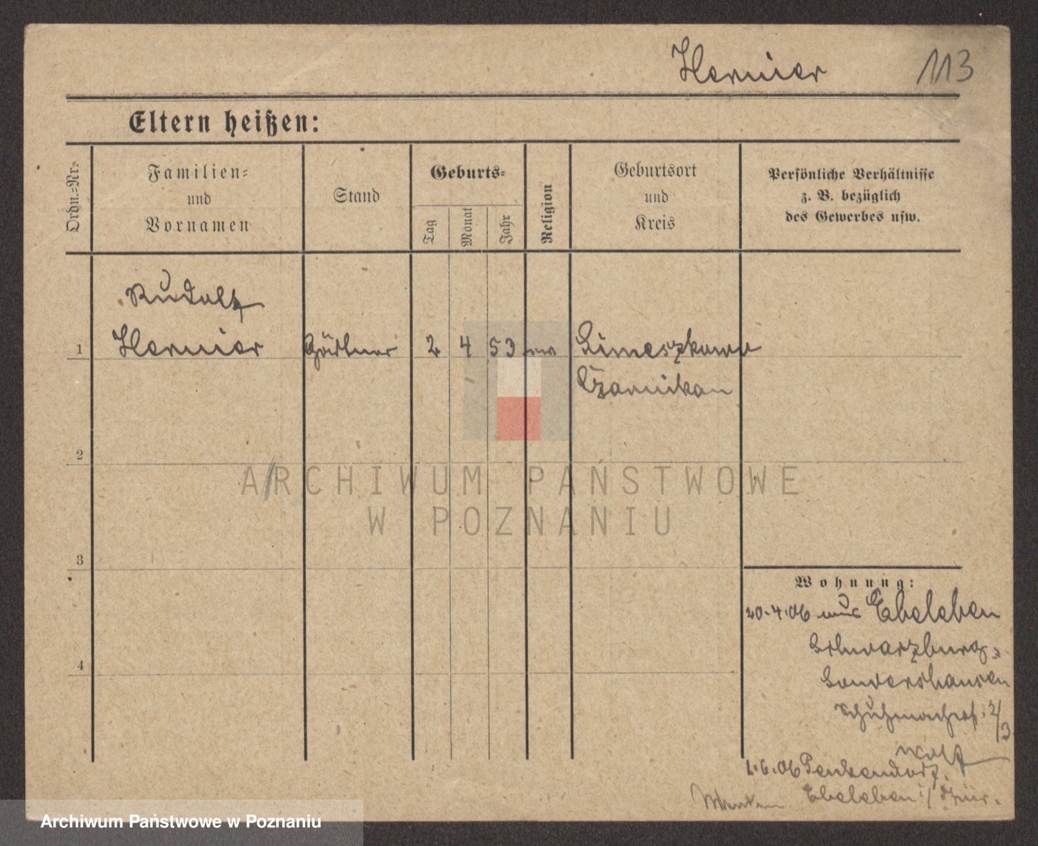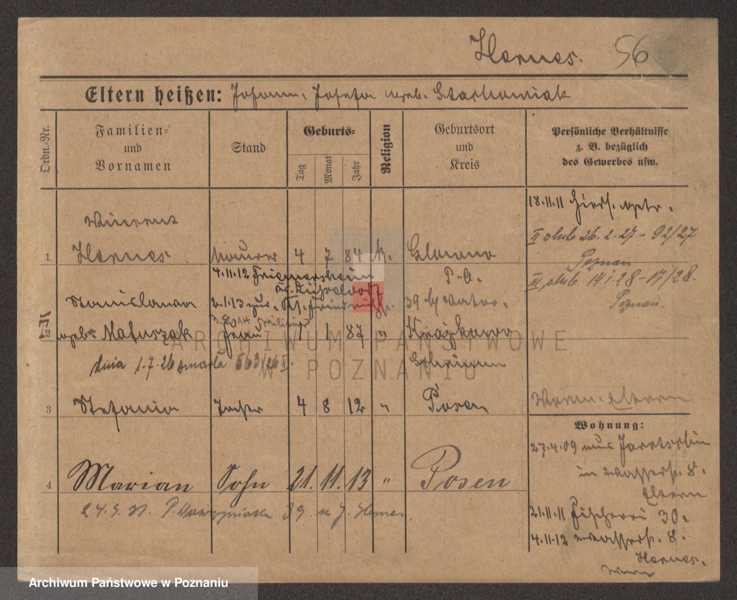 Podgląd karty osobowej dostępny jest po kliknięciu na nazwisko lub ikonkę karty. Można dokonywać powiększenia (ikony na górze) lub przechodzić między kolejnymi skanami (strzałki po bokach).