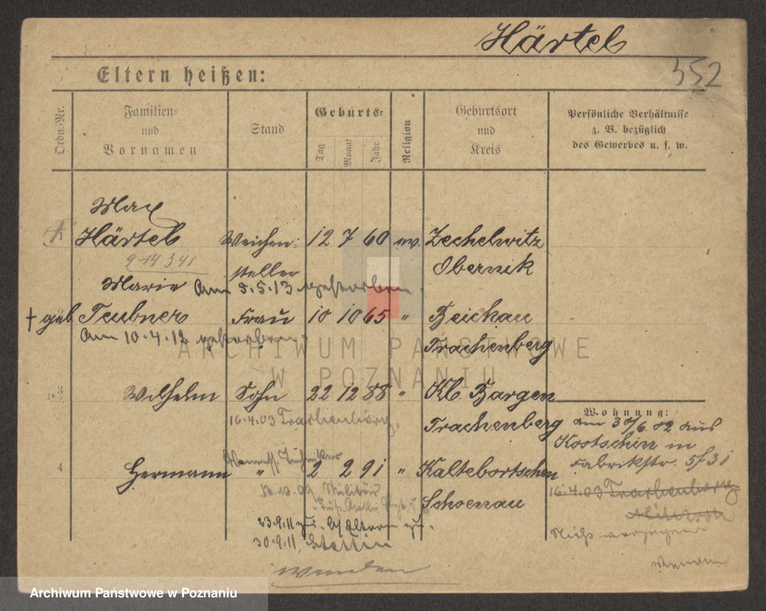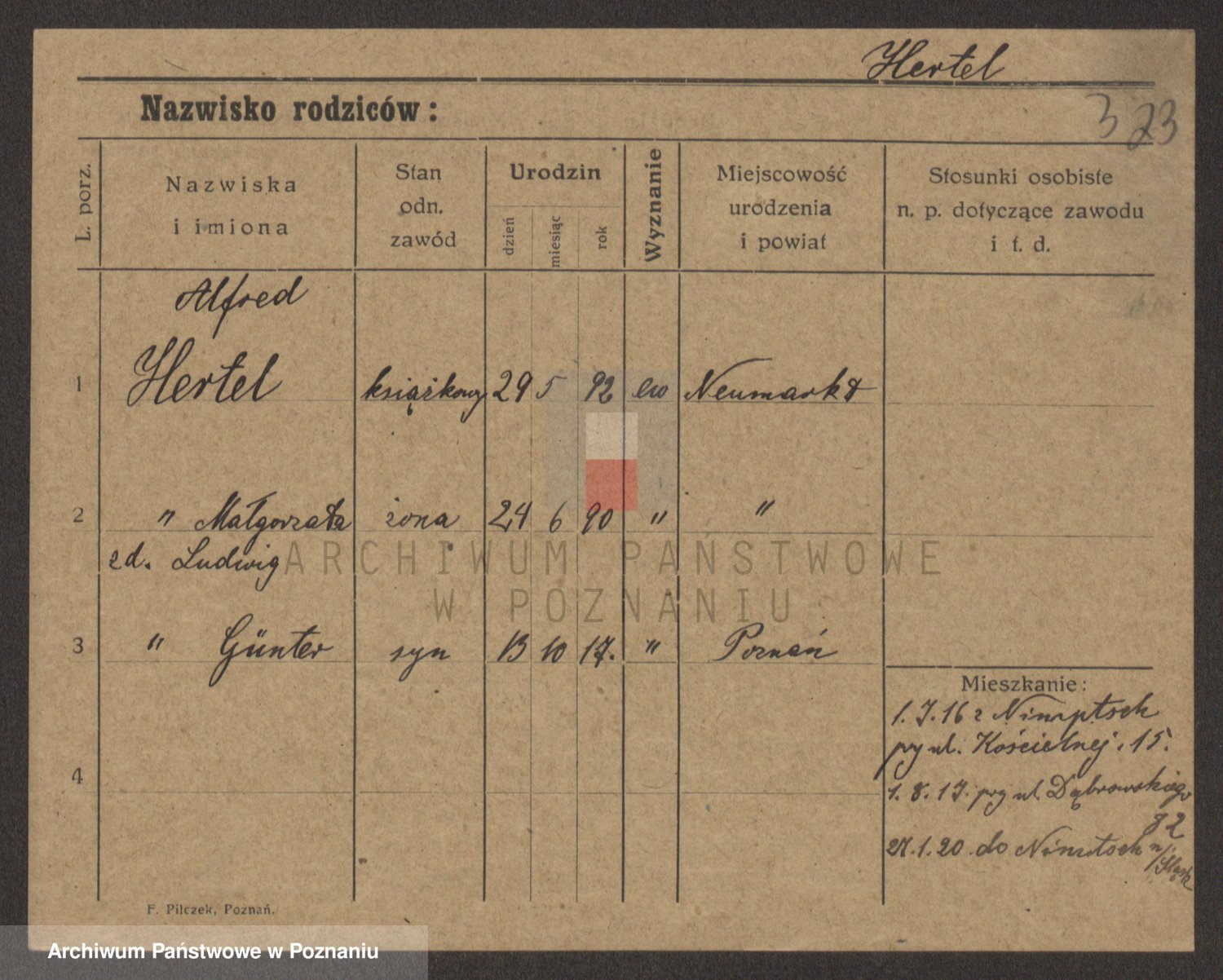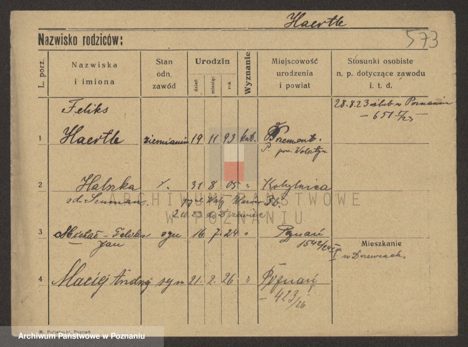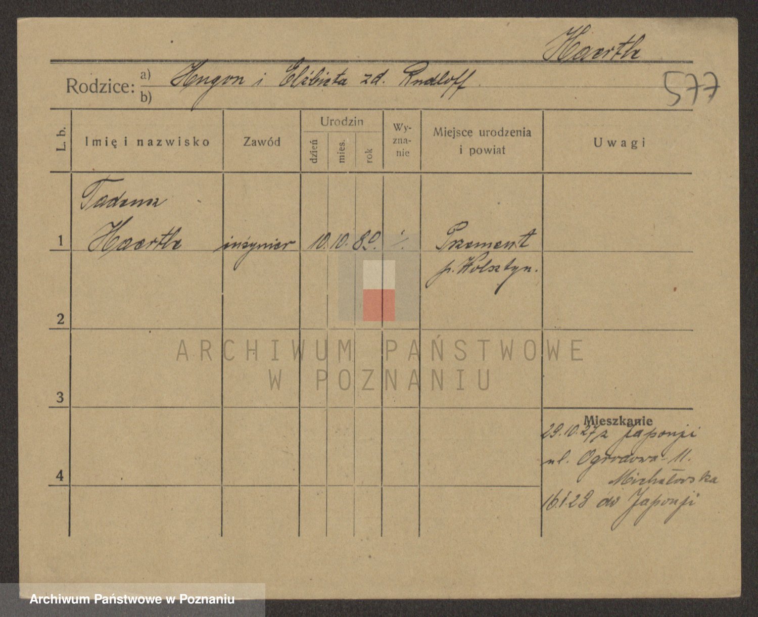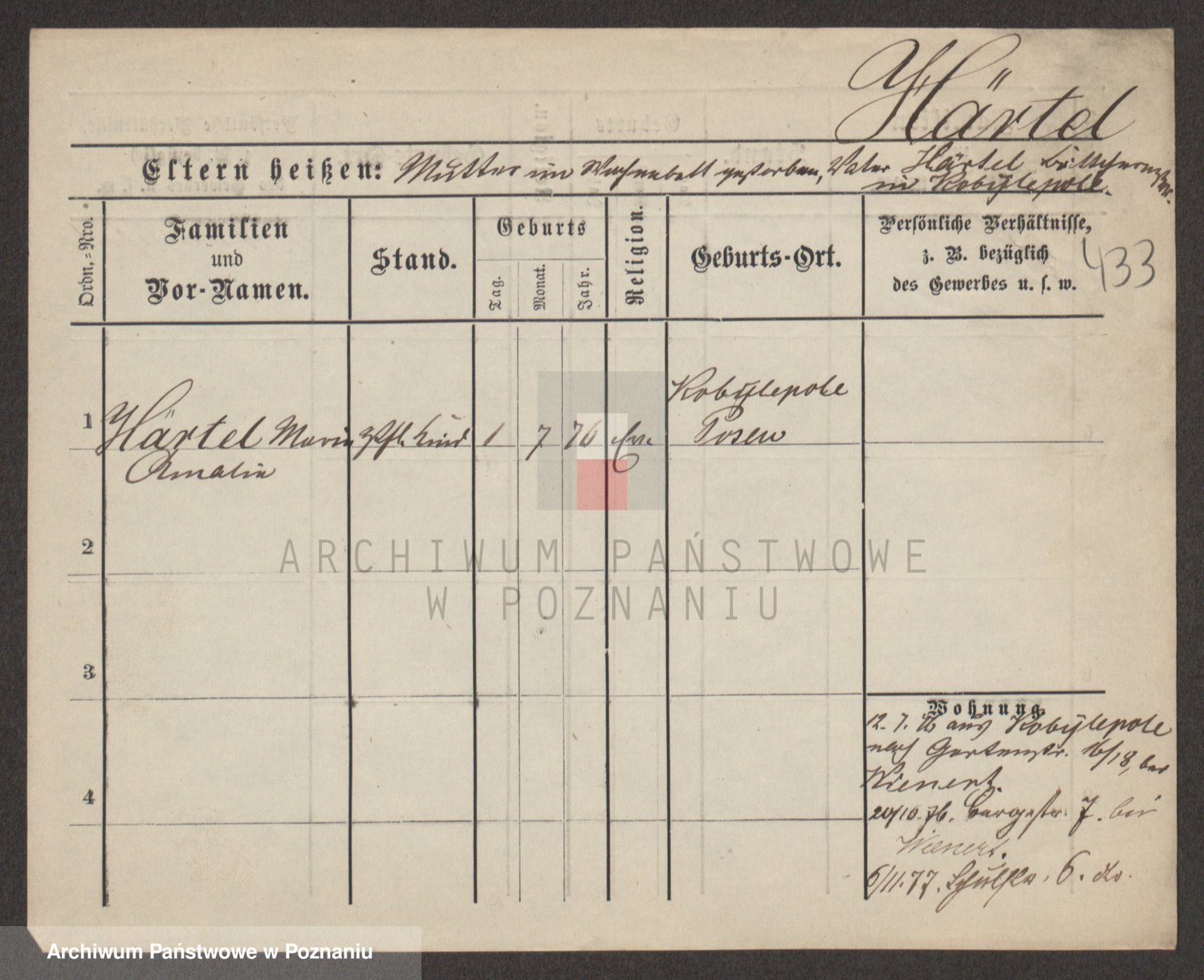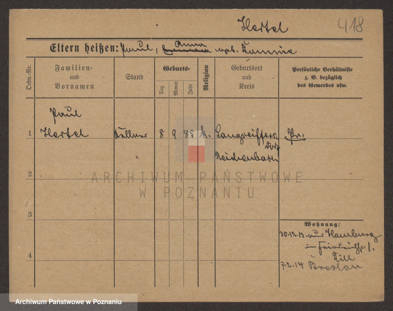 Podgląd karty osobowej dostępny jest po kliknięciu na nazwisko lub ikonkę karty. Można dokonywać powiększenia (ikony na górze) lub przechodzić między kolejnymi skanami (strzałki po bokach).
