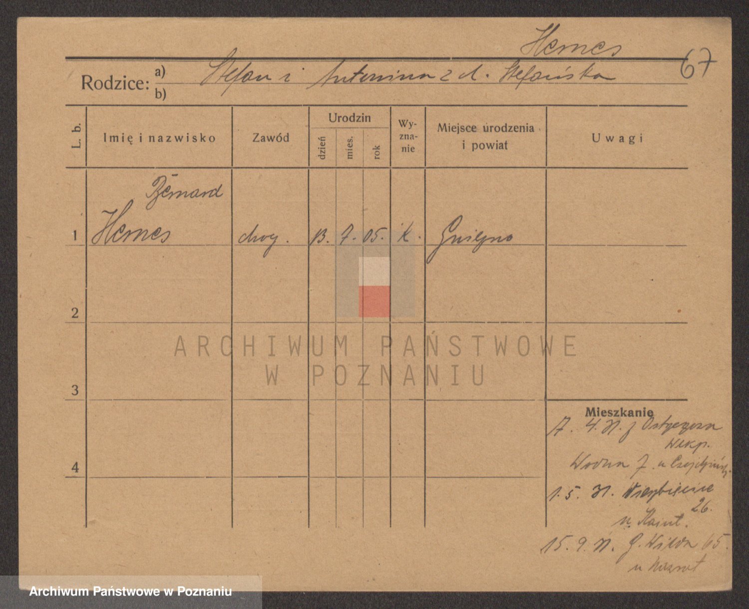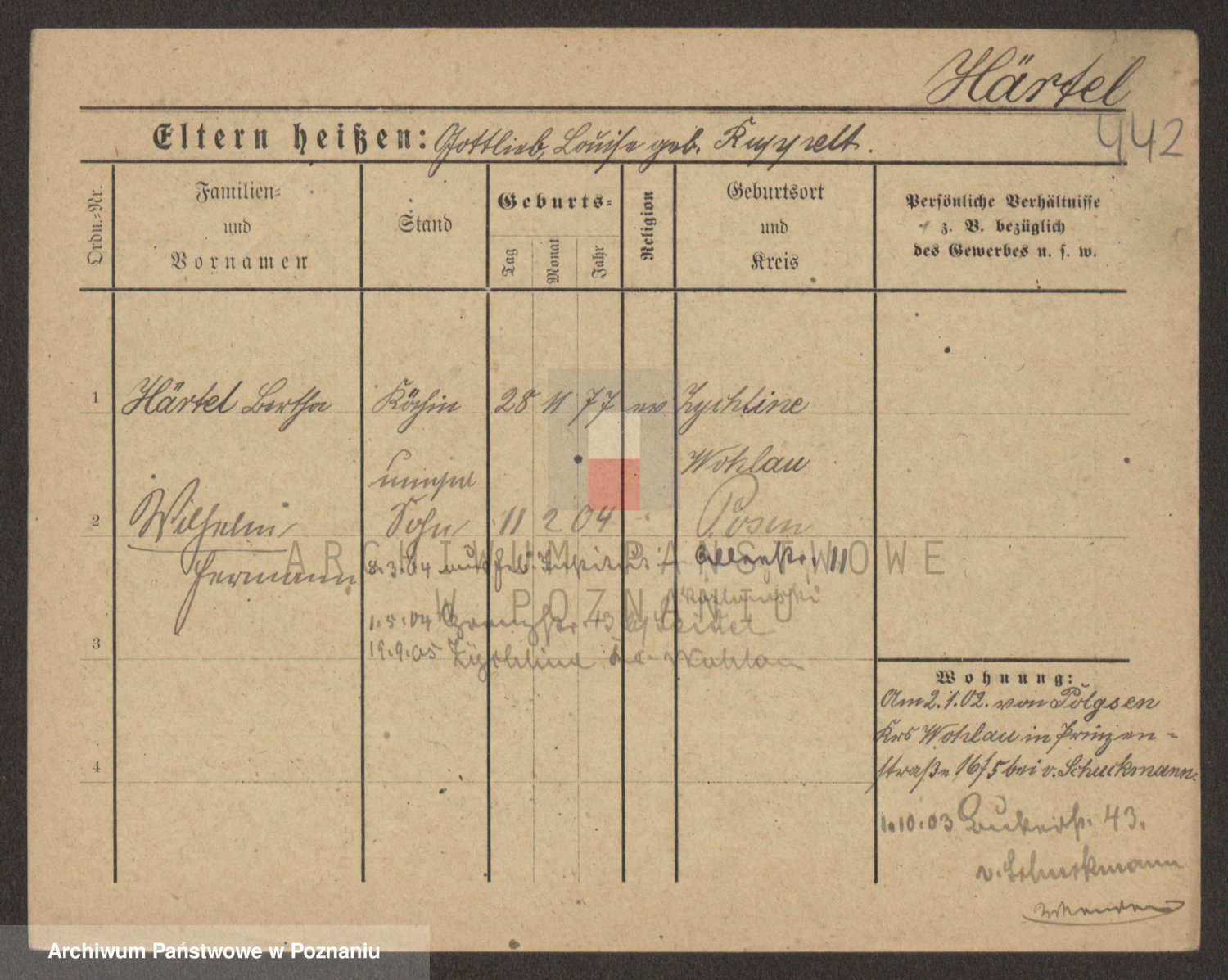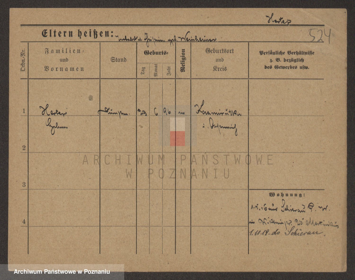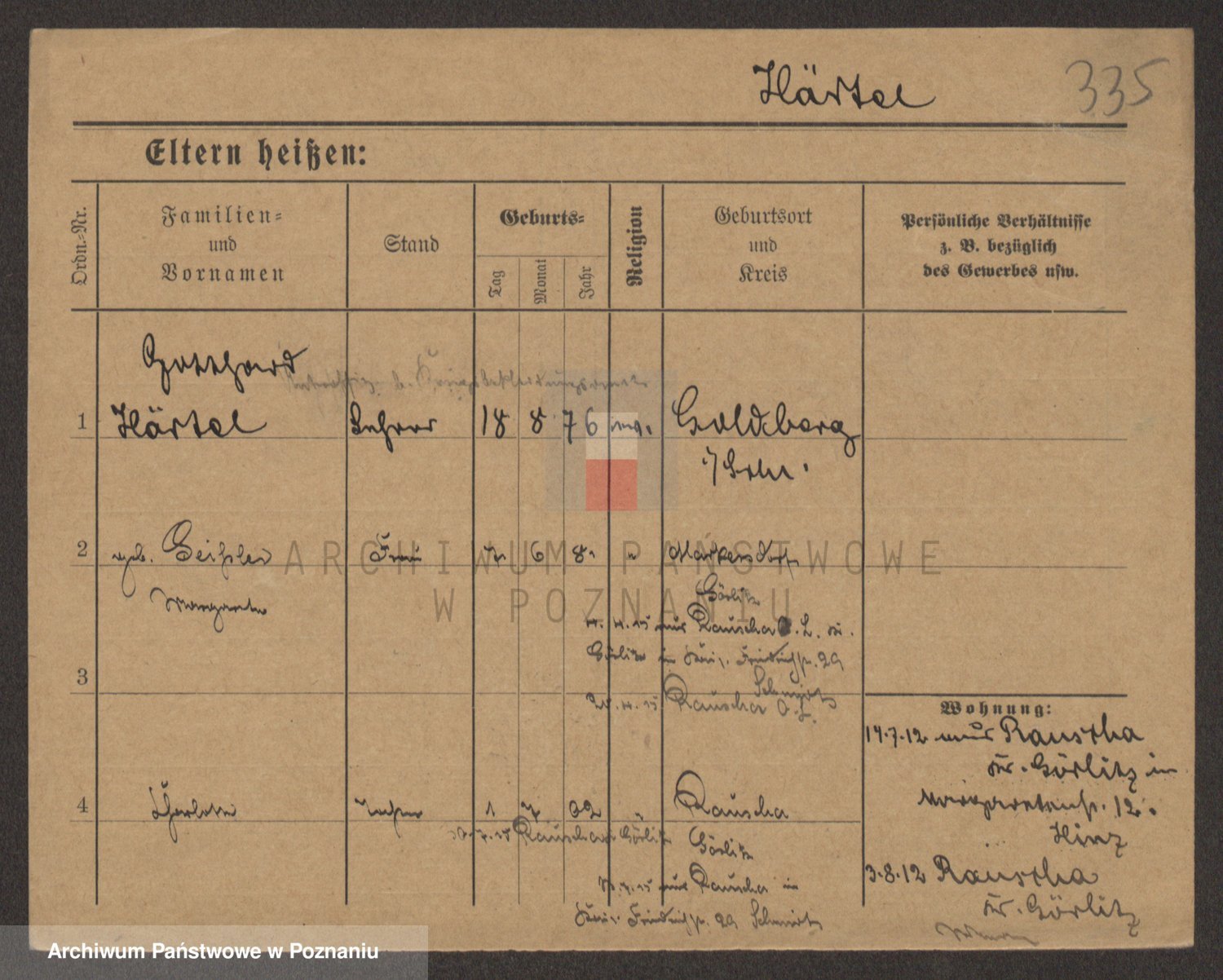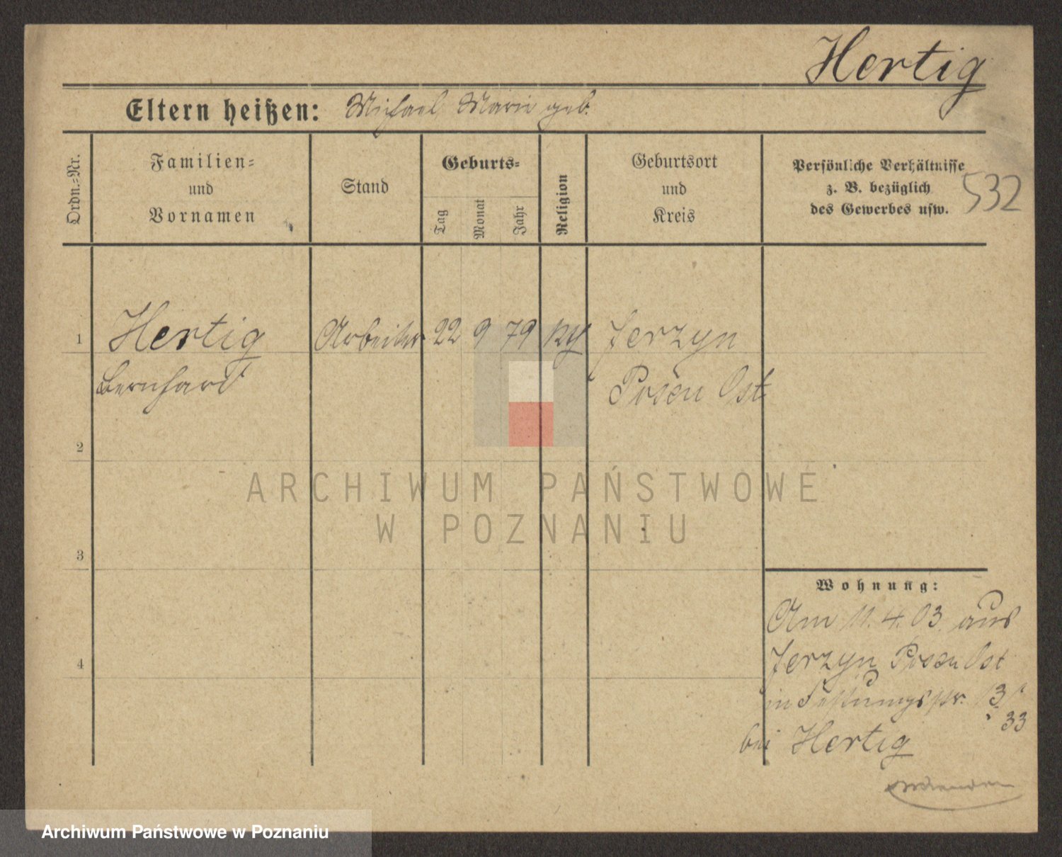 Podgląd karty osobowej dostępny jest po kliknięciu na nazwisko lub ikonkę karty. Można dokonywać powiększenia (ikony na górze) lub przechodzić między kolejnymi skanami (strzałki po bokach).