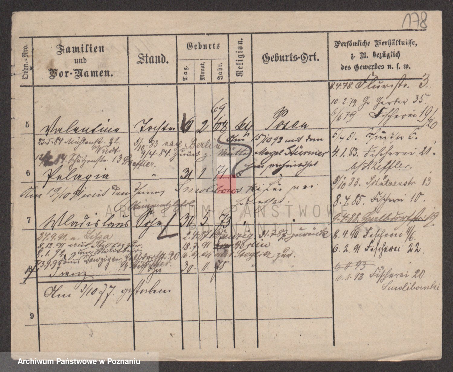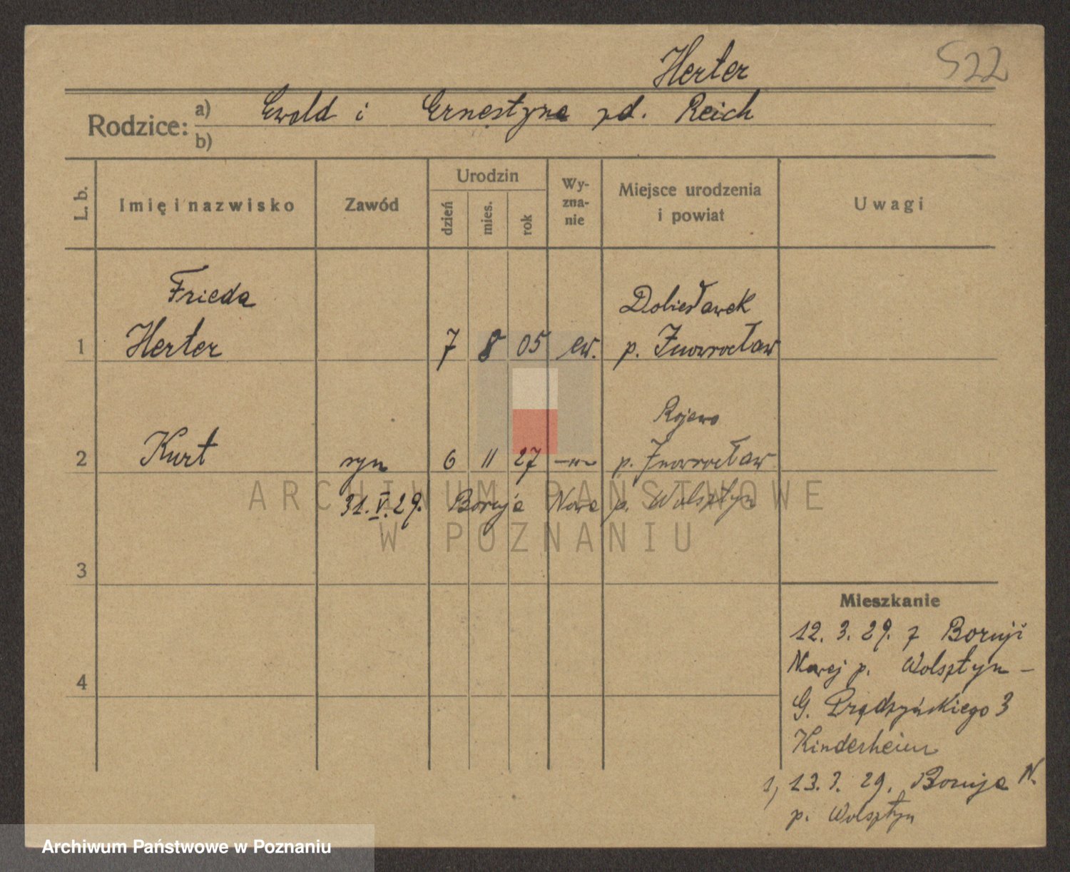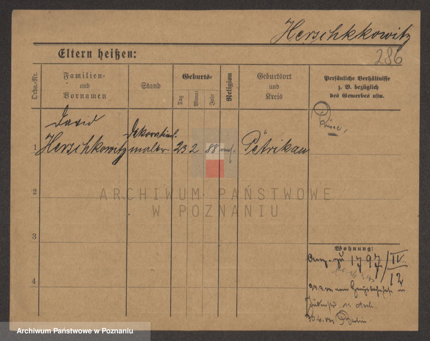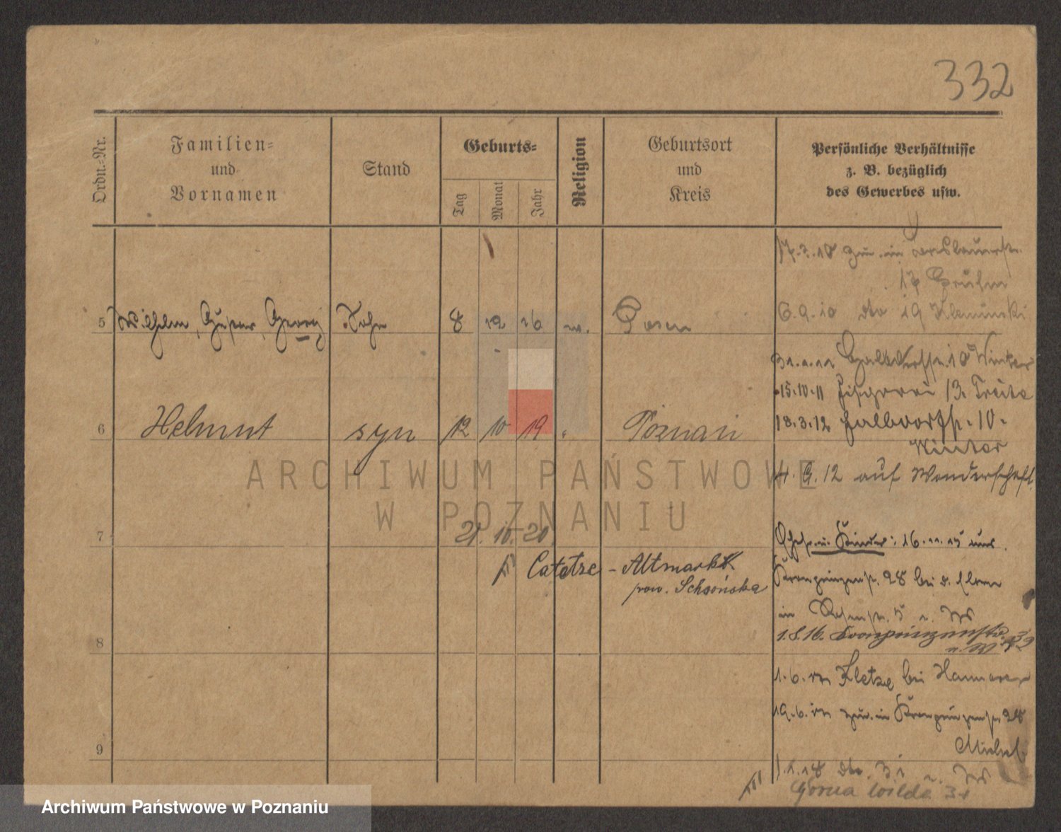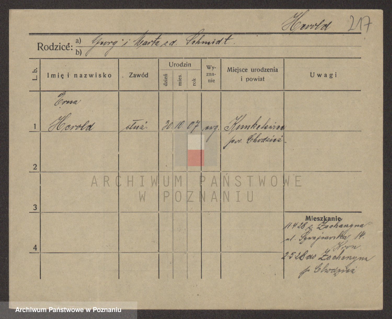Podgląd karty osobowej dostępny jest po kliknięciu na nazwisko lub ikonkę karty. Można dokonywać powiększenia (ikony na górze) lub przechodzić między kolejnymi skanami (strzałki po bokach).
