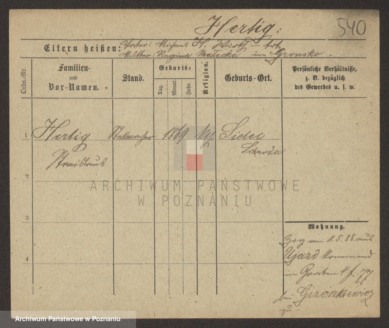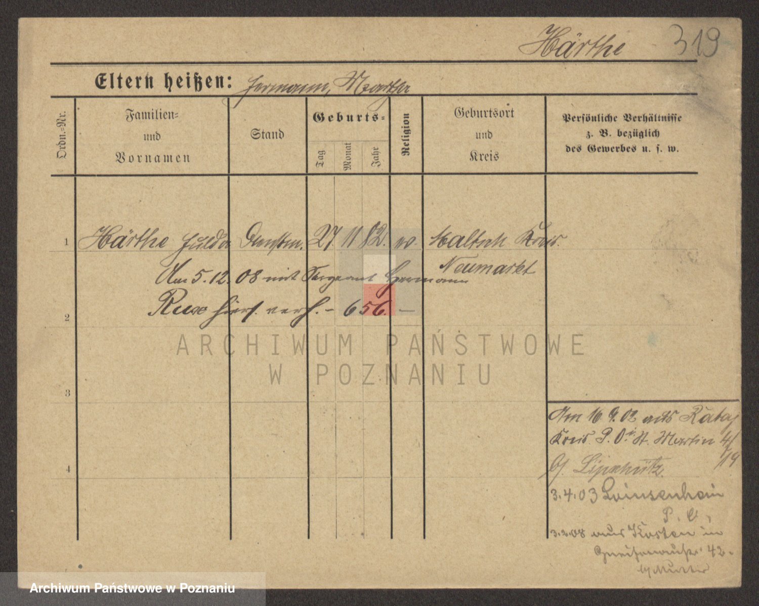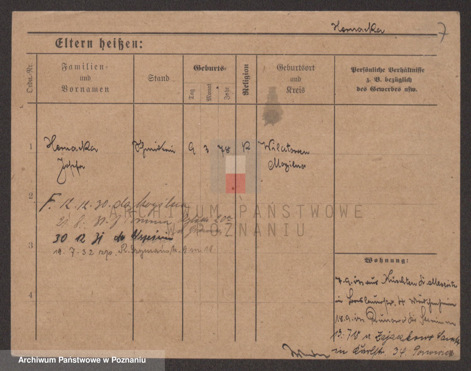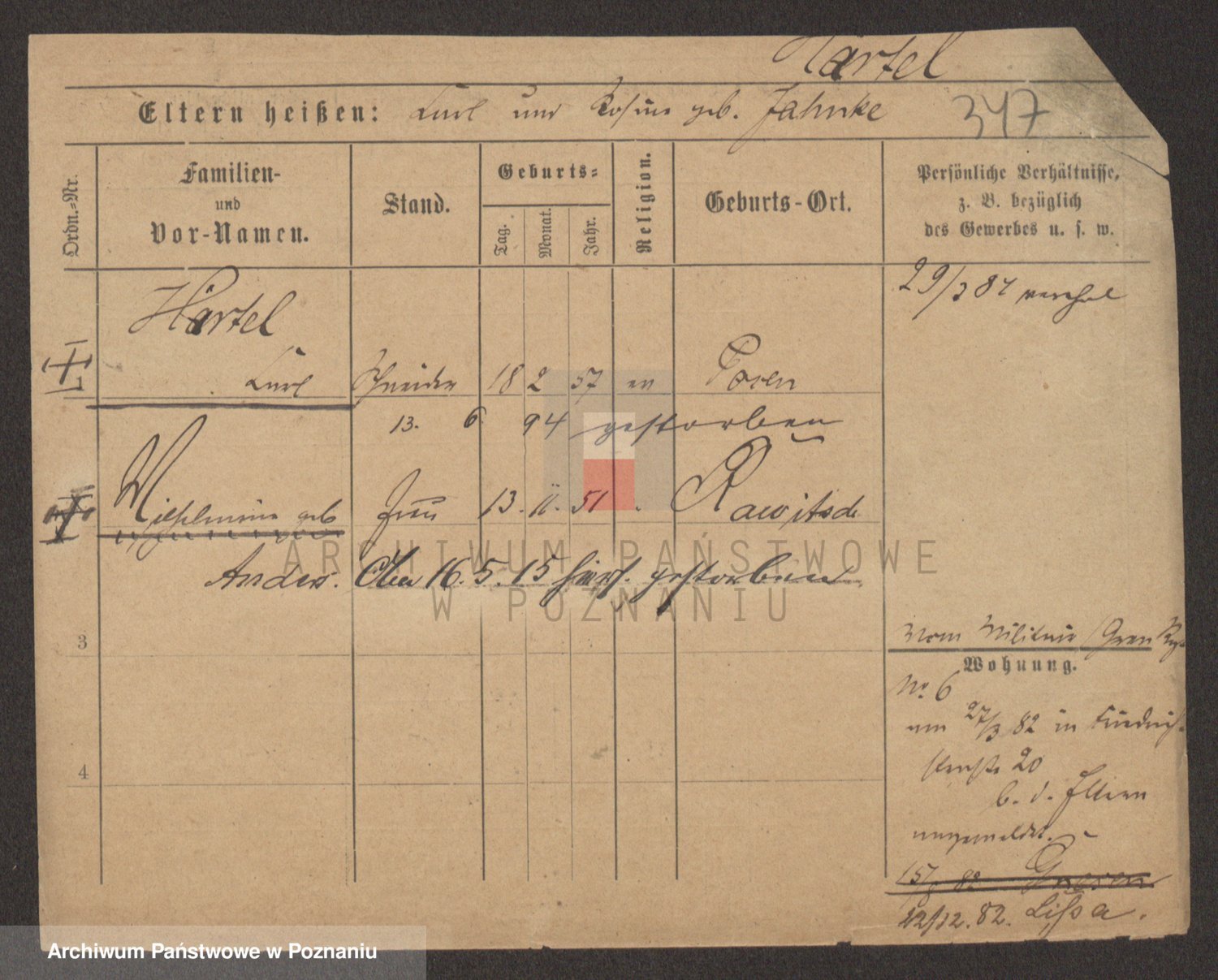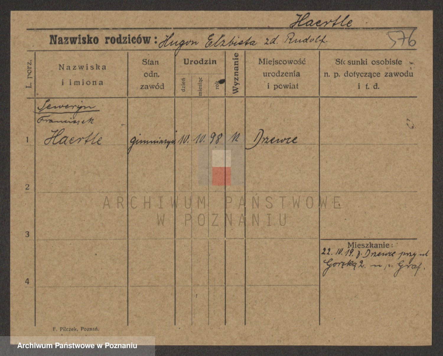 Podgląd karty osobowej dostępny jest po kliknięciu na nazwisko lub ikonkę karty. Można dokonywać powiększenia (ikony na górze) lub przechodzić między kolejnymi skanami (strzałki po bokach).