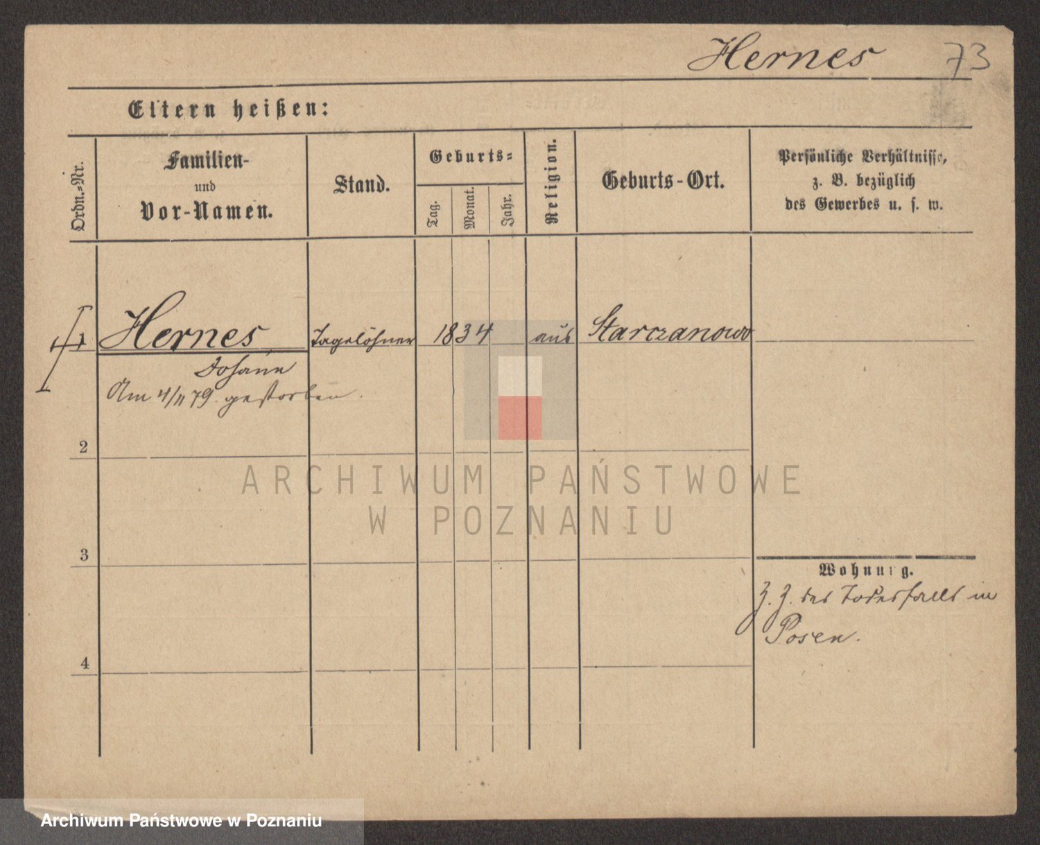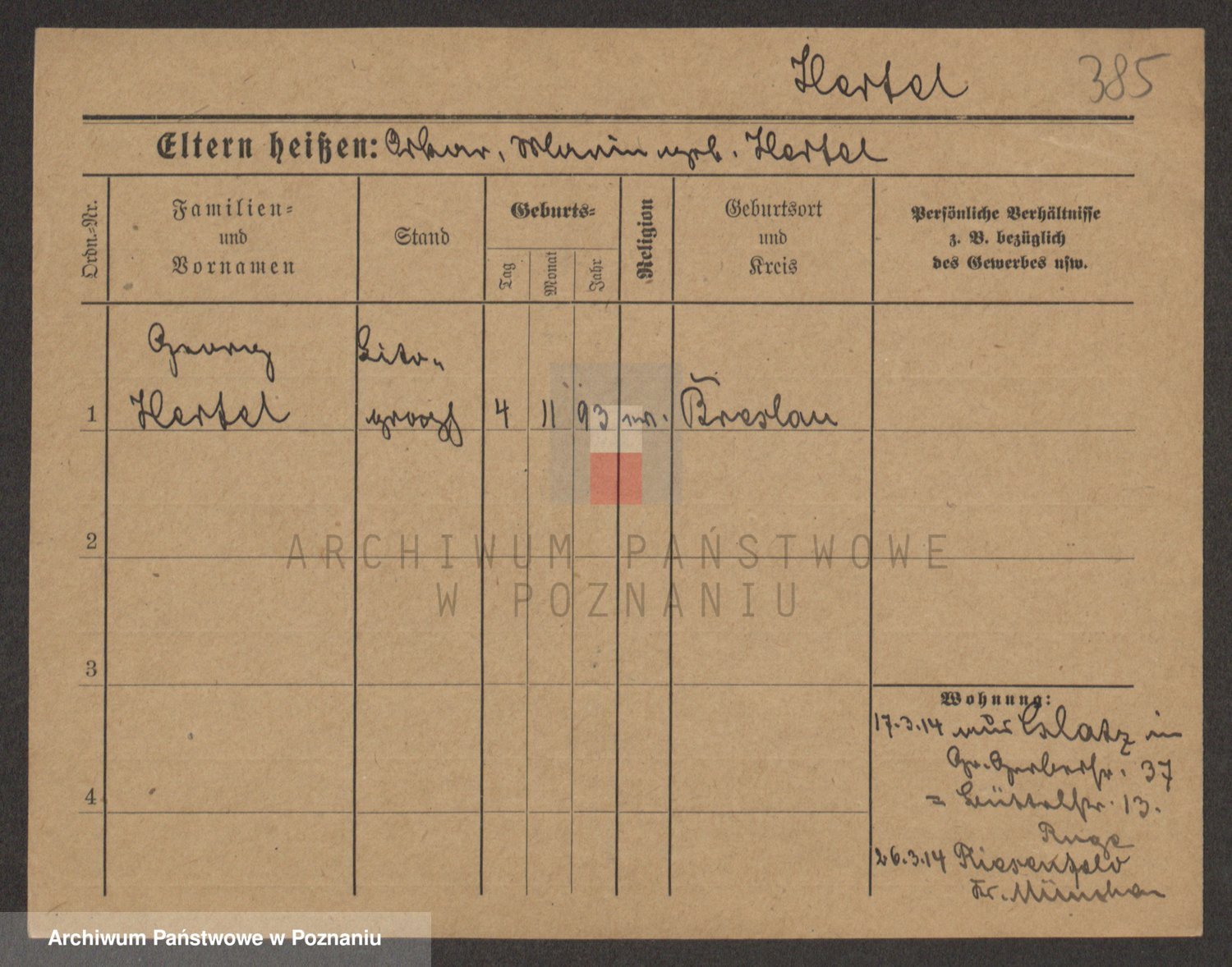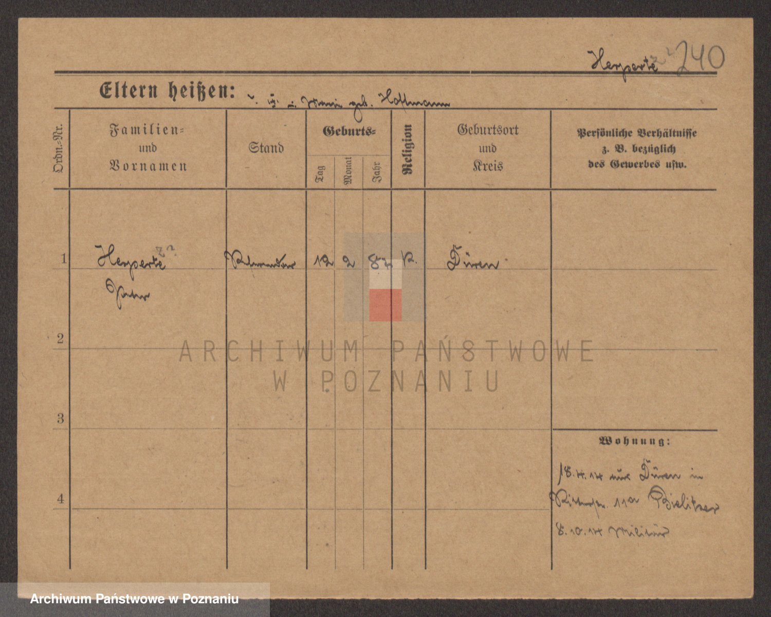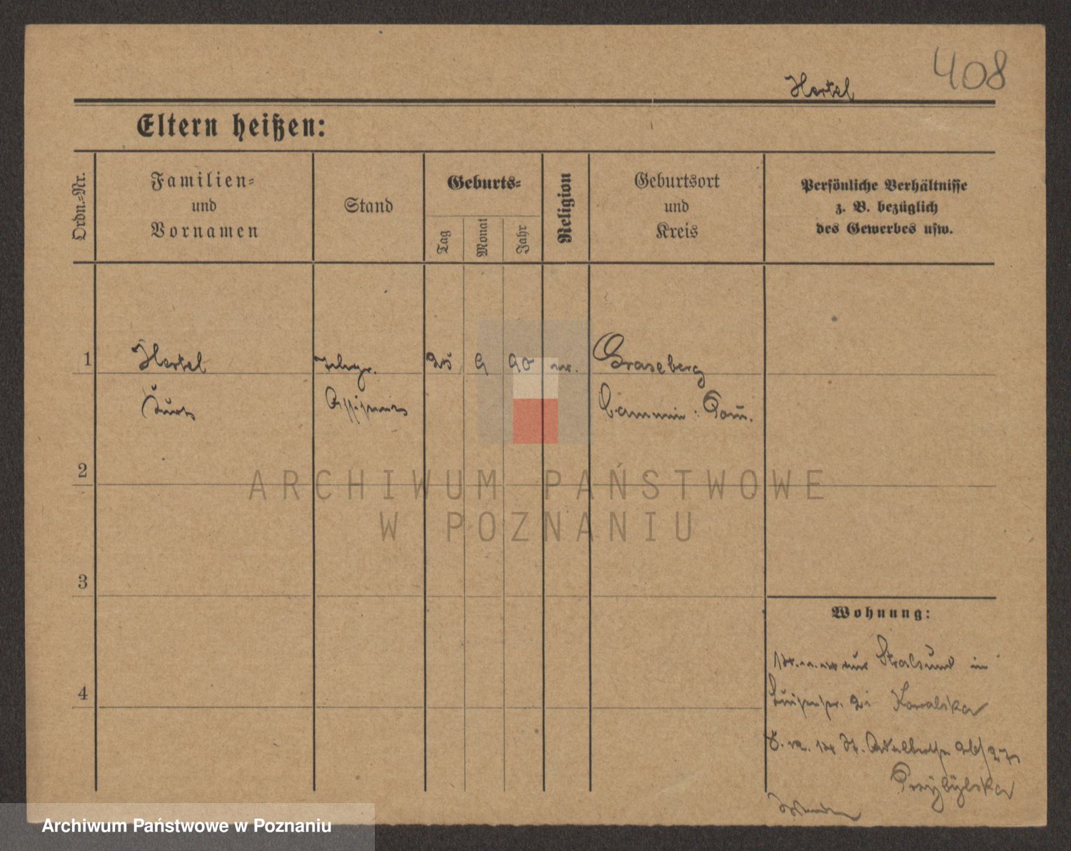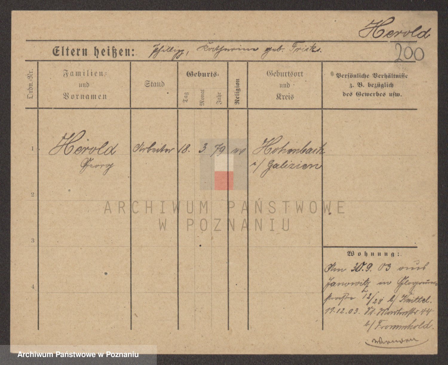 Podgląd karty osobowej dostępny jest po kliknięciu na nazwisko lub ikonkę karty. Można dokonywać powiększenia (ikony na górze) lub przechodzić między kolejnymi skanami (strzałki po bokach).