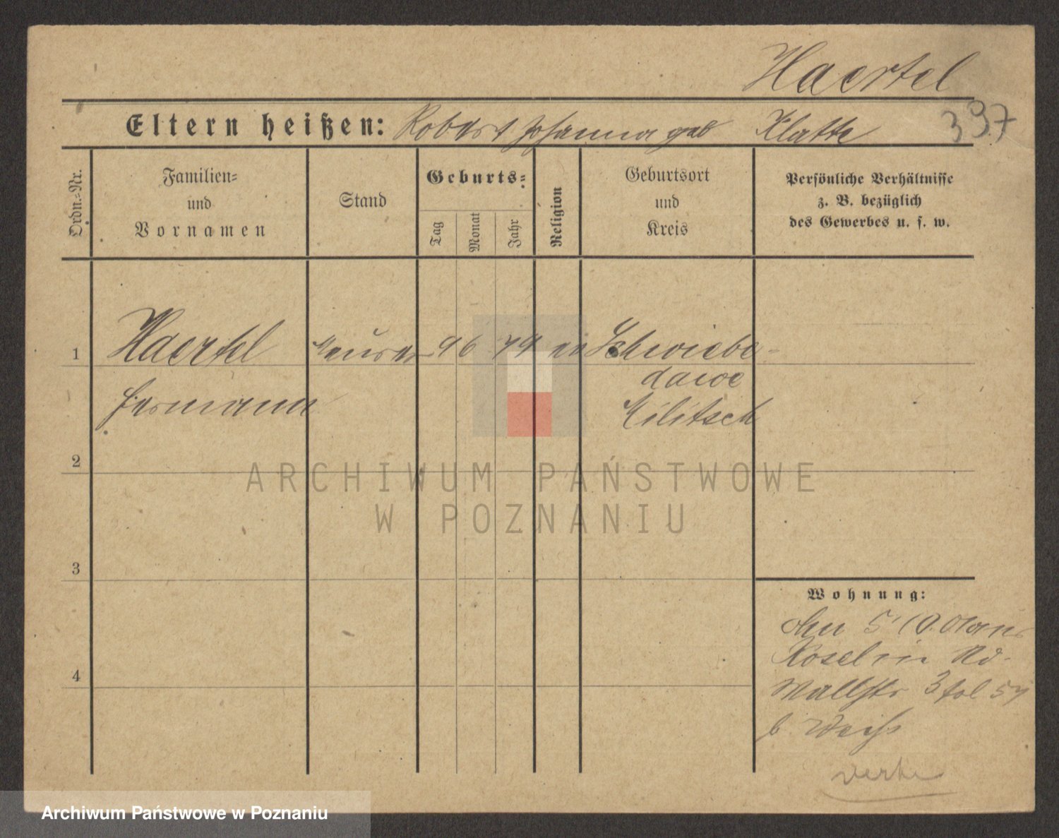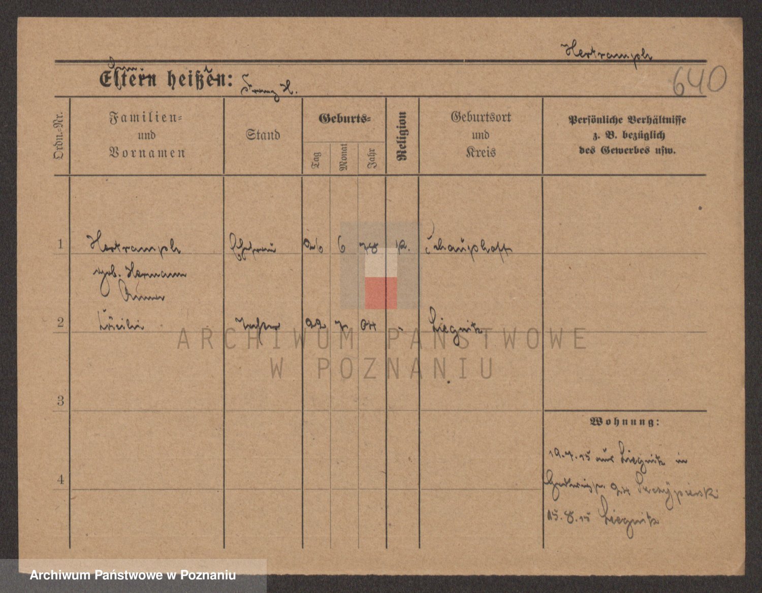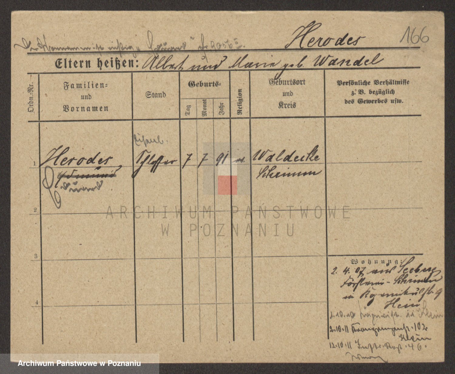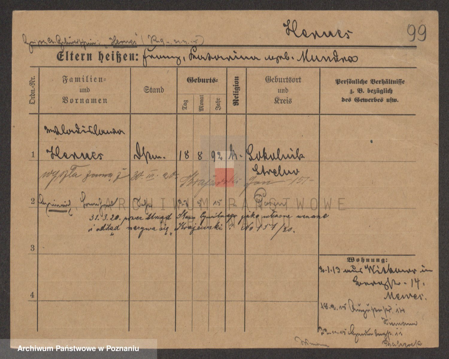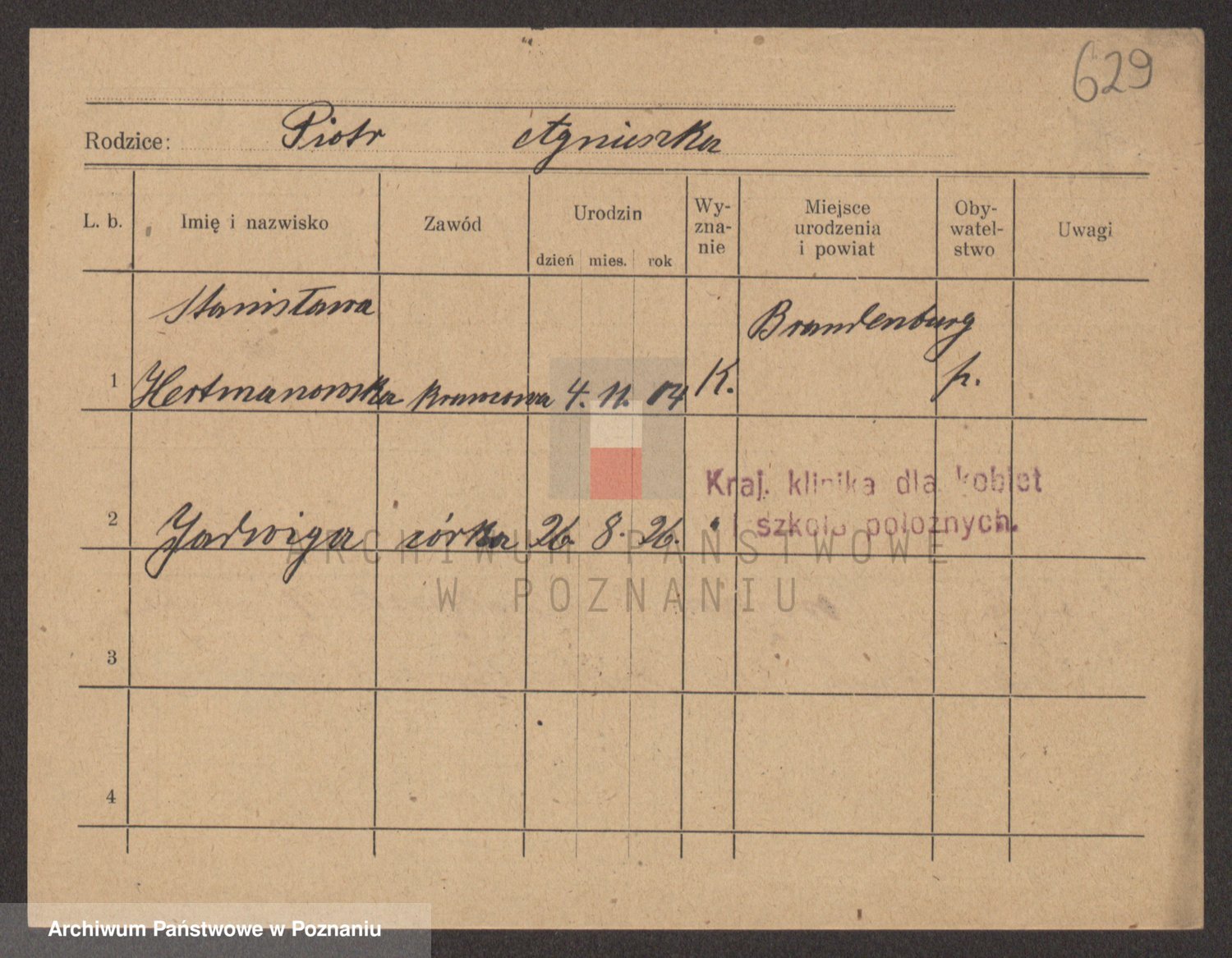 Podgląd karty osobowej dostępny jest po kliknięciu na nazwisko lub ikonkę karty. Można dokonywać powiększenia (ikony na górze) lub przechodzić między kolejnymi skanami (strzałki po bokach).