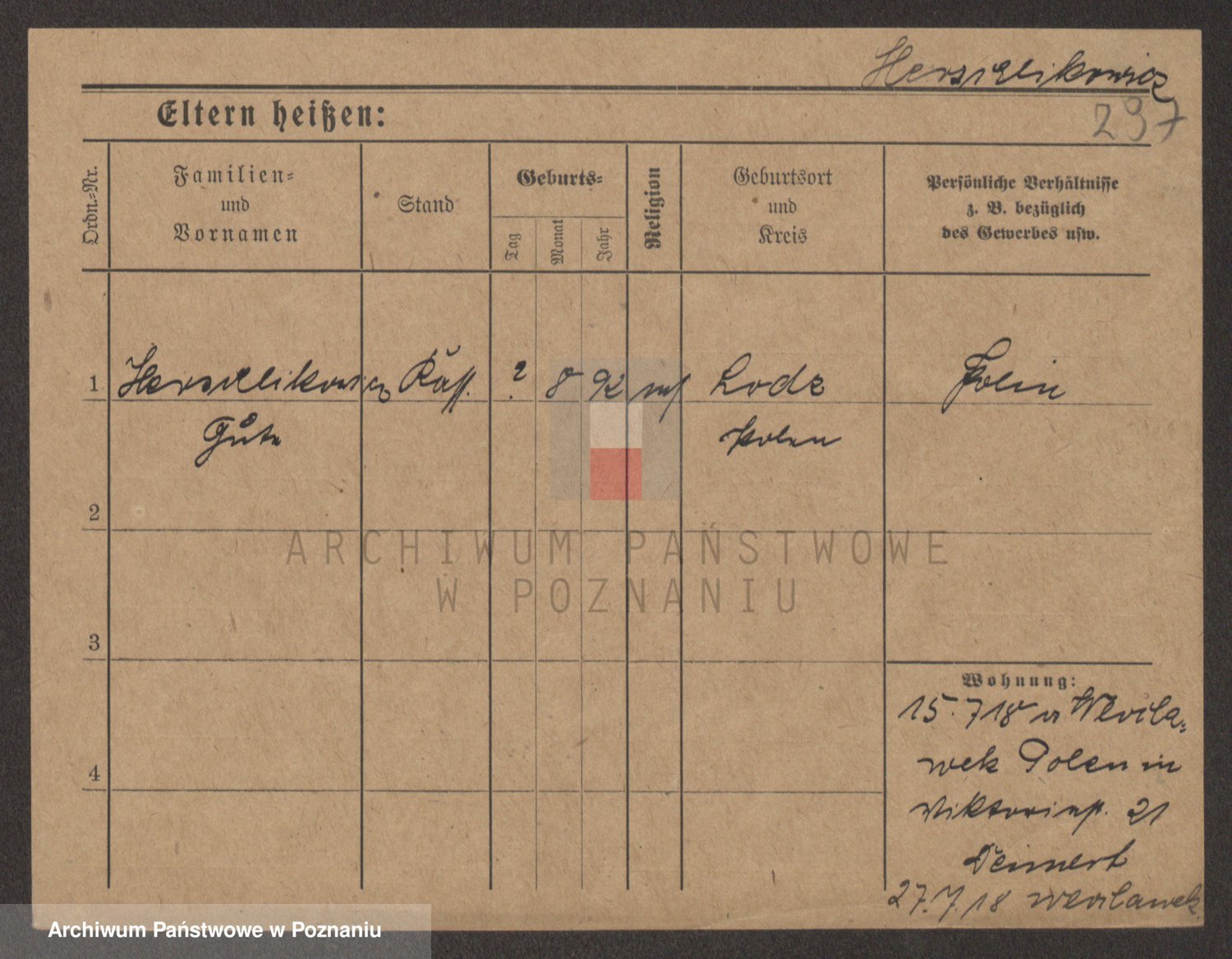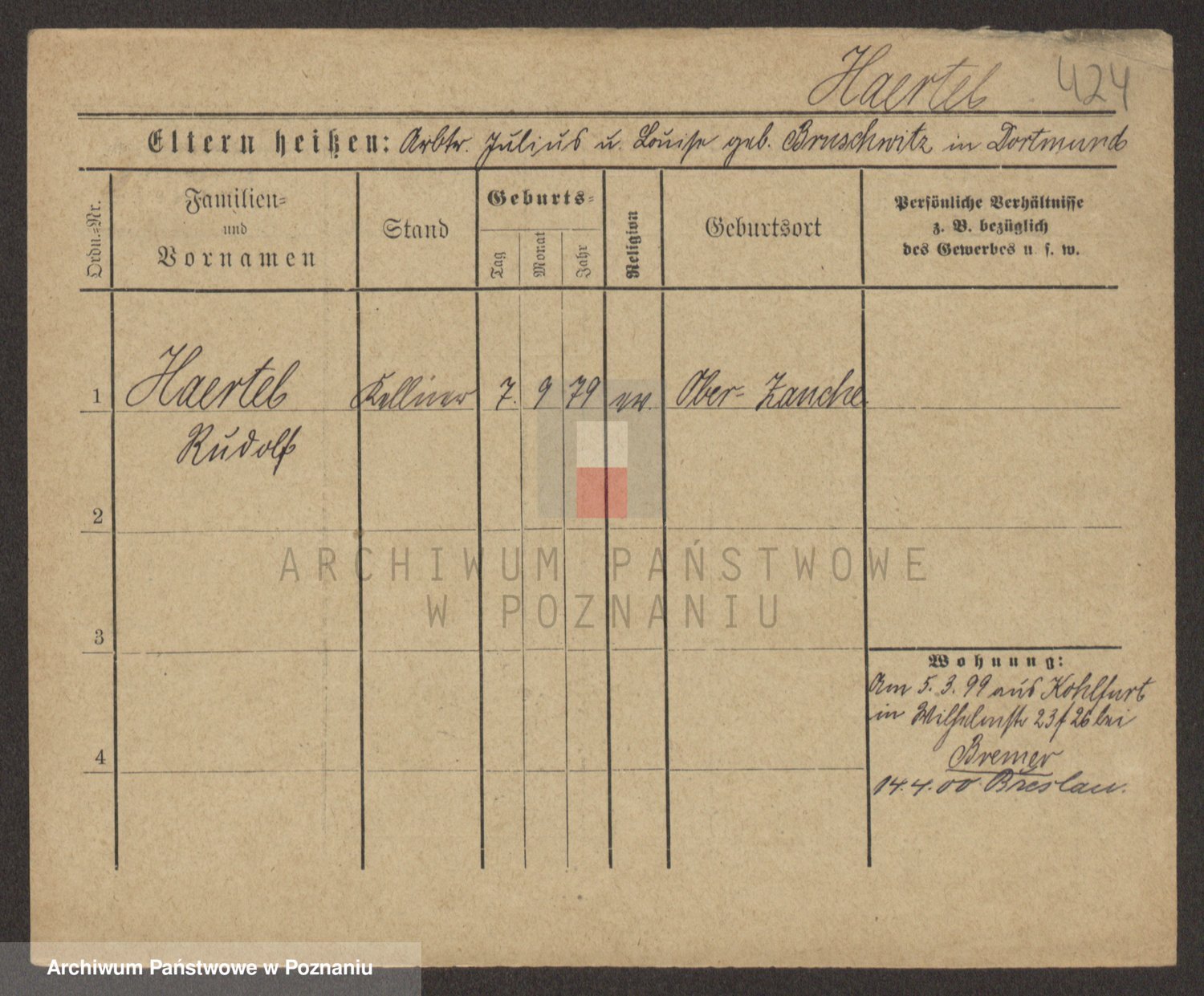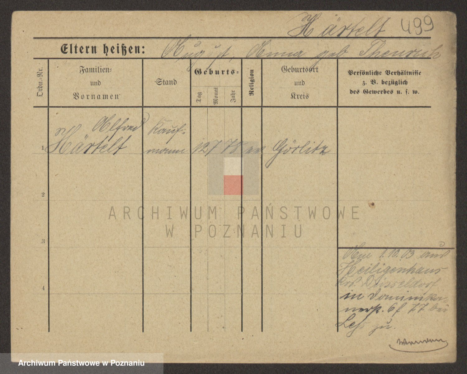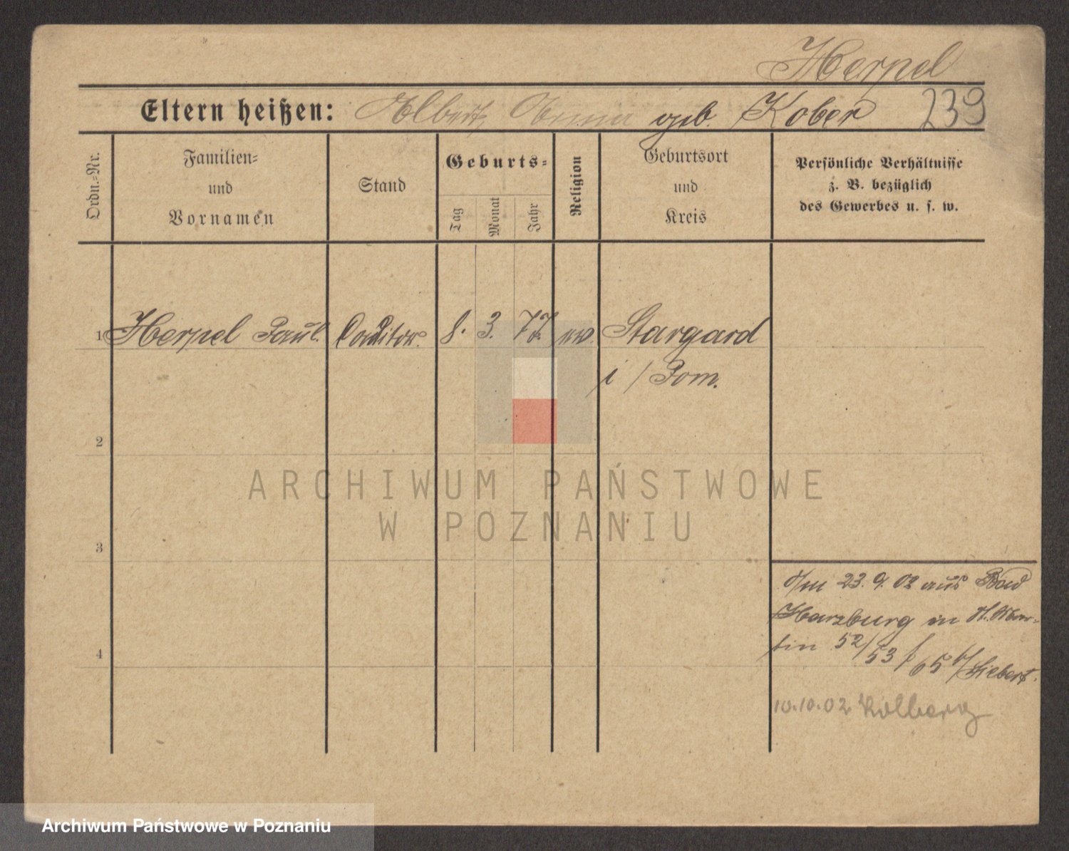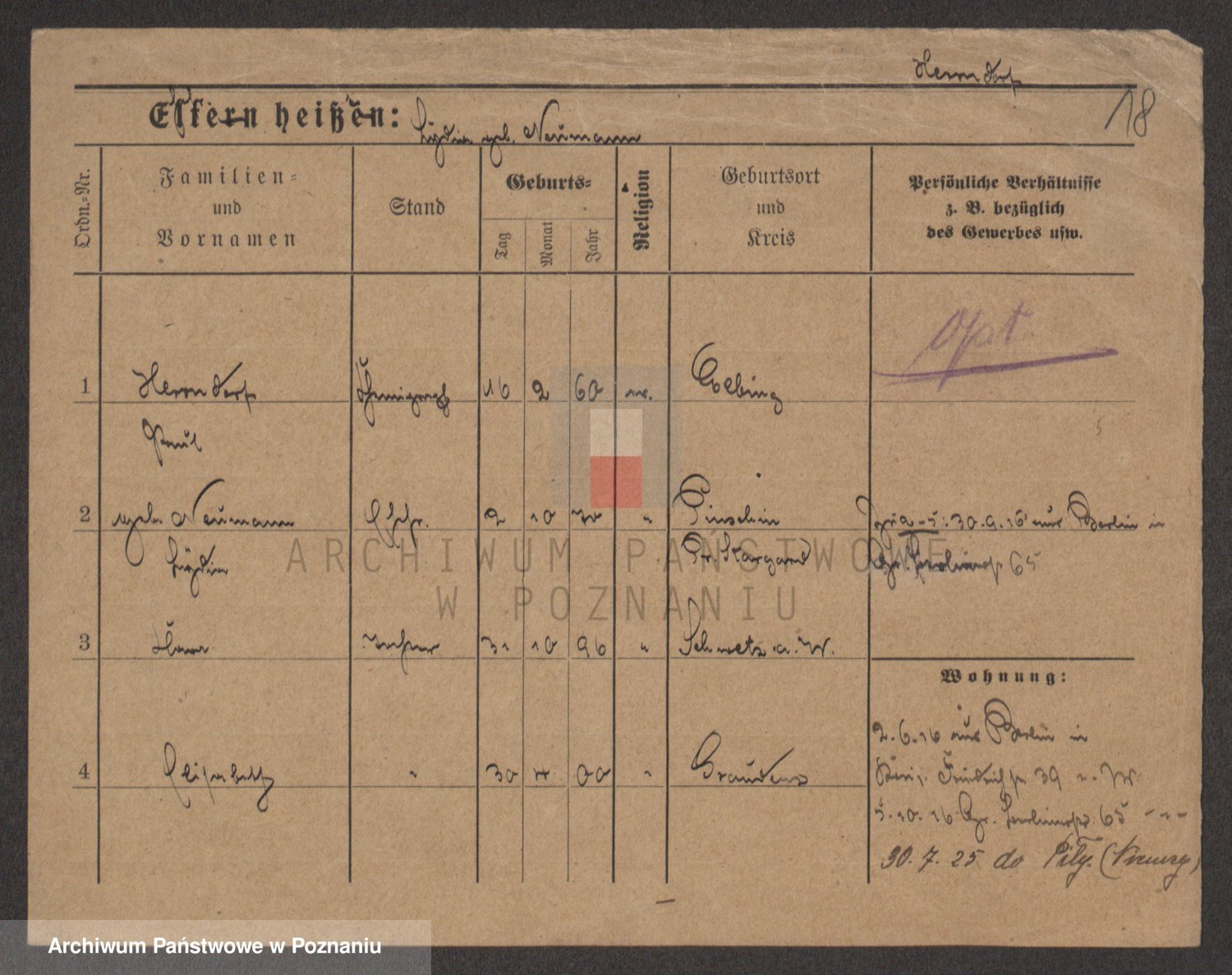 Podgląd karty osobowej dostępny jest po kliknięciu na nazwisko lub ikonkę karty. Można dokonywać powiększenia (ikony na górze) lub przechodzić między kolejnymi skanami (strzałki po bokach).
