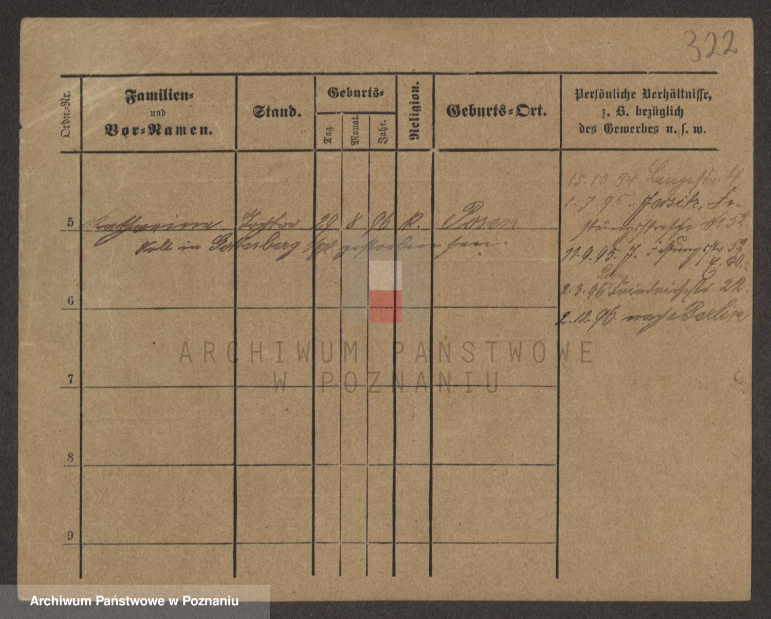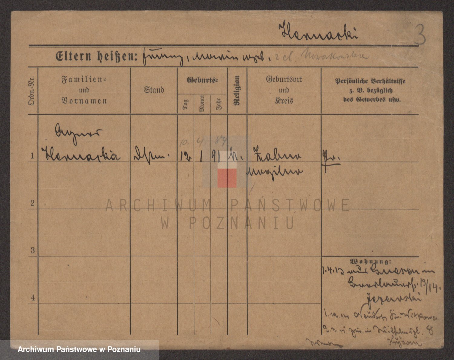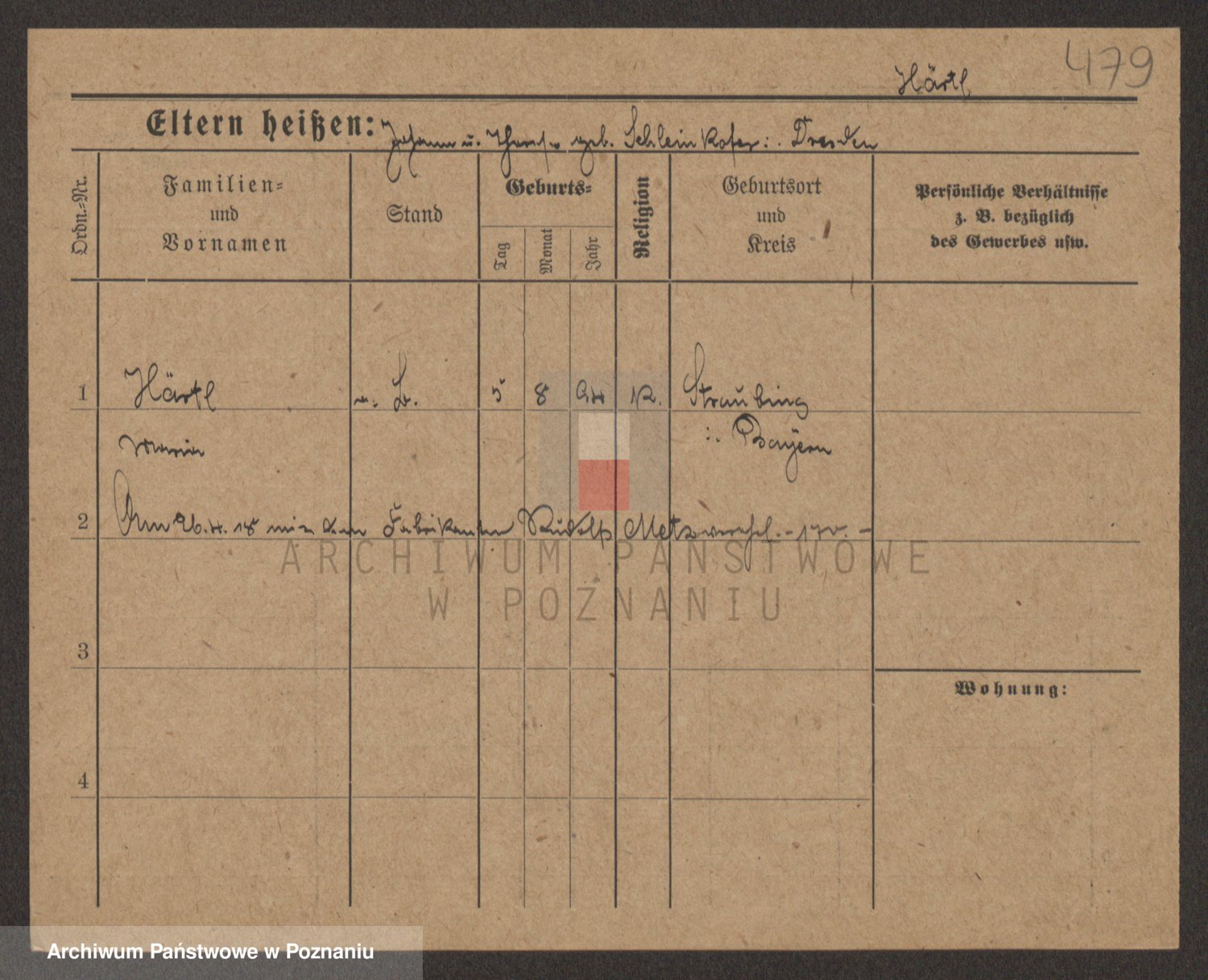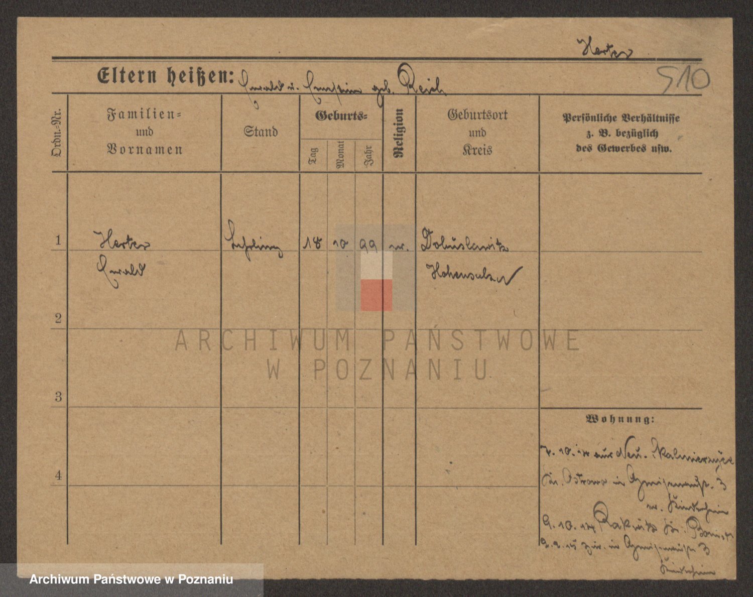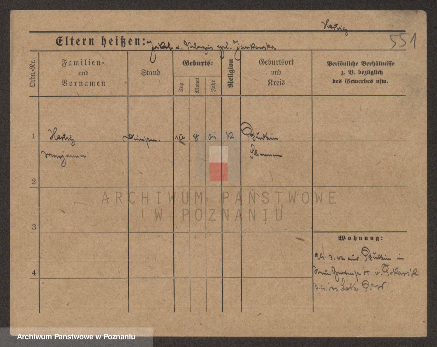 Podgląd karty osobowej dostępny jest po kliknięciu na nazwisko lub ikonkę karty. Można dokonywać powiększenia (ikony na górze) lub przechodzić między kolejnymi skanami (strzałki po bokach).