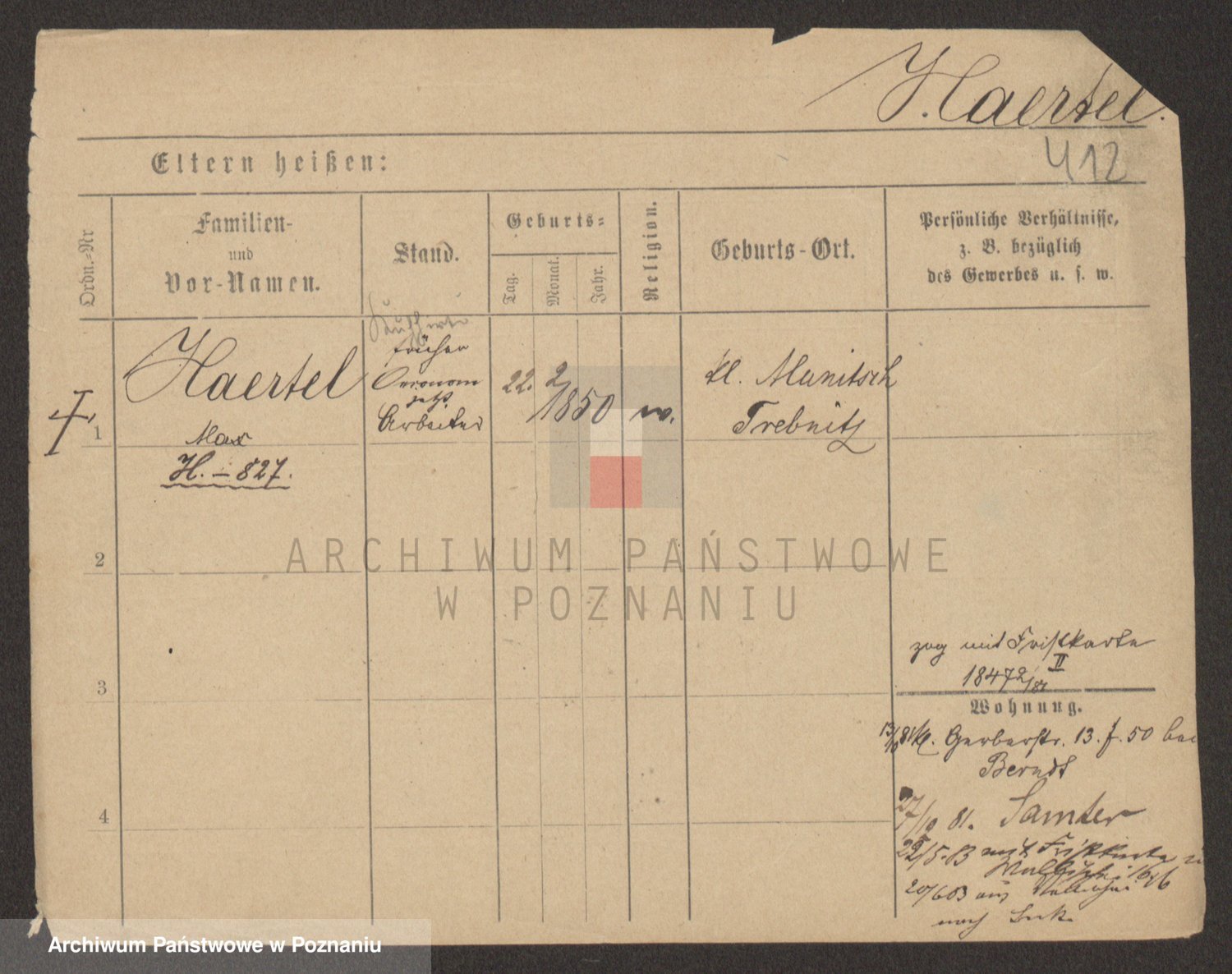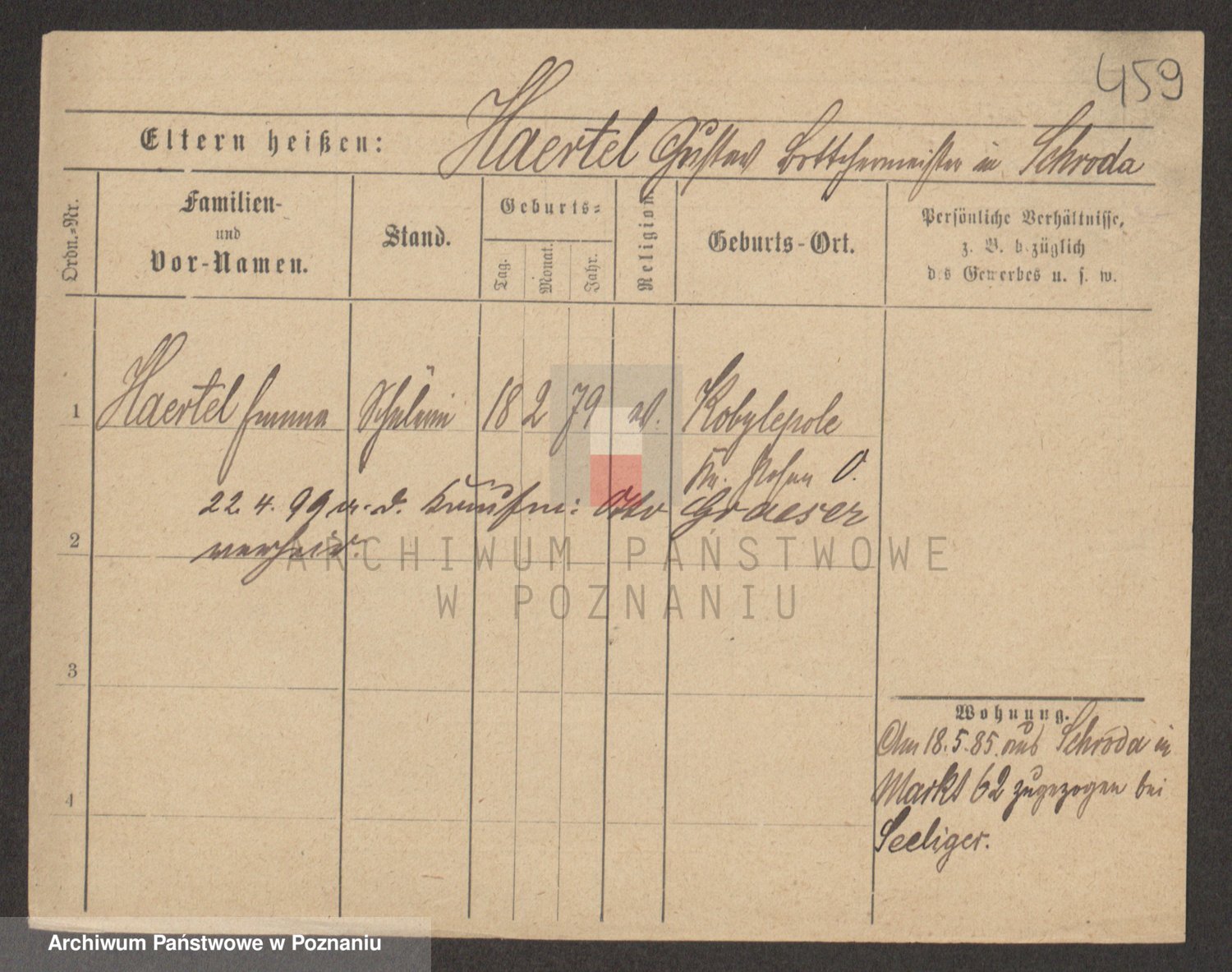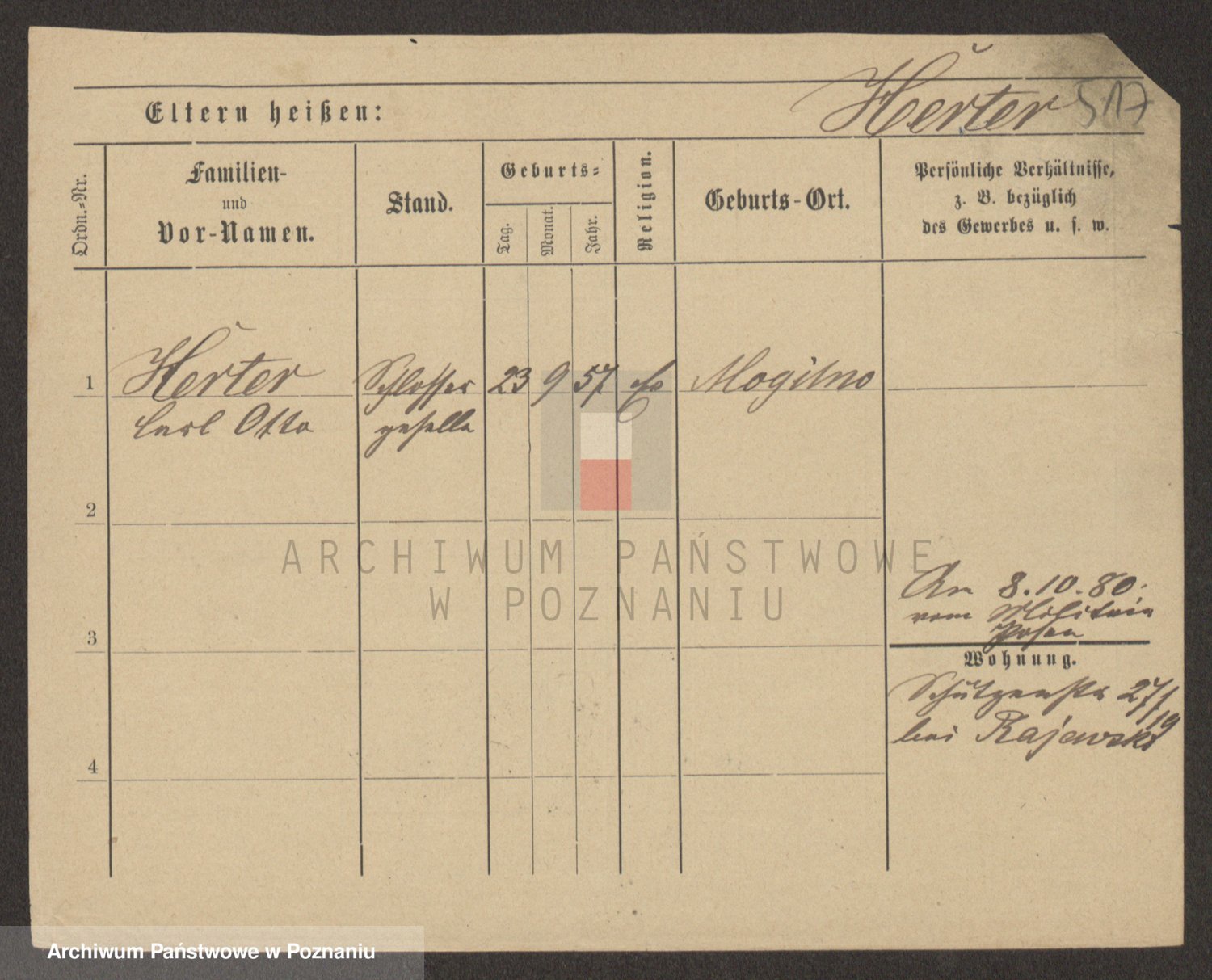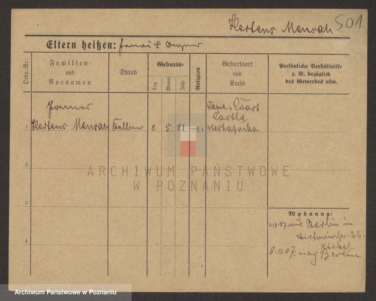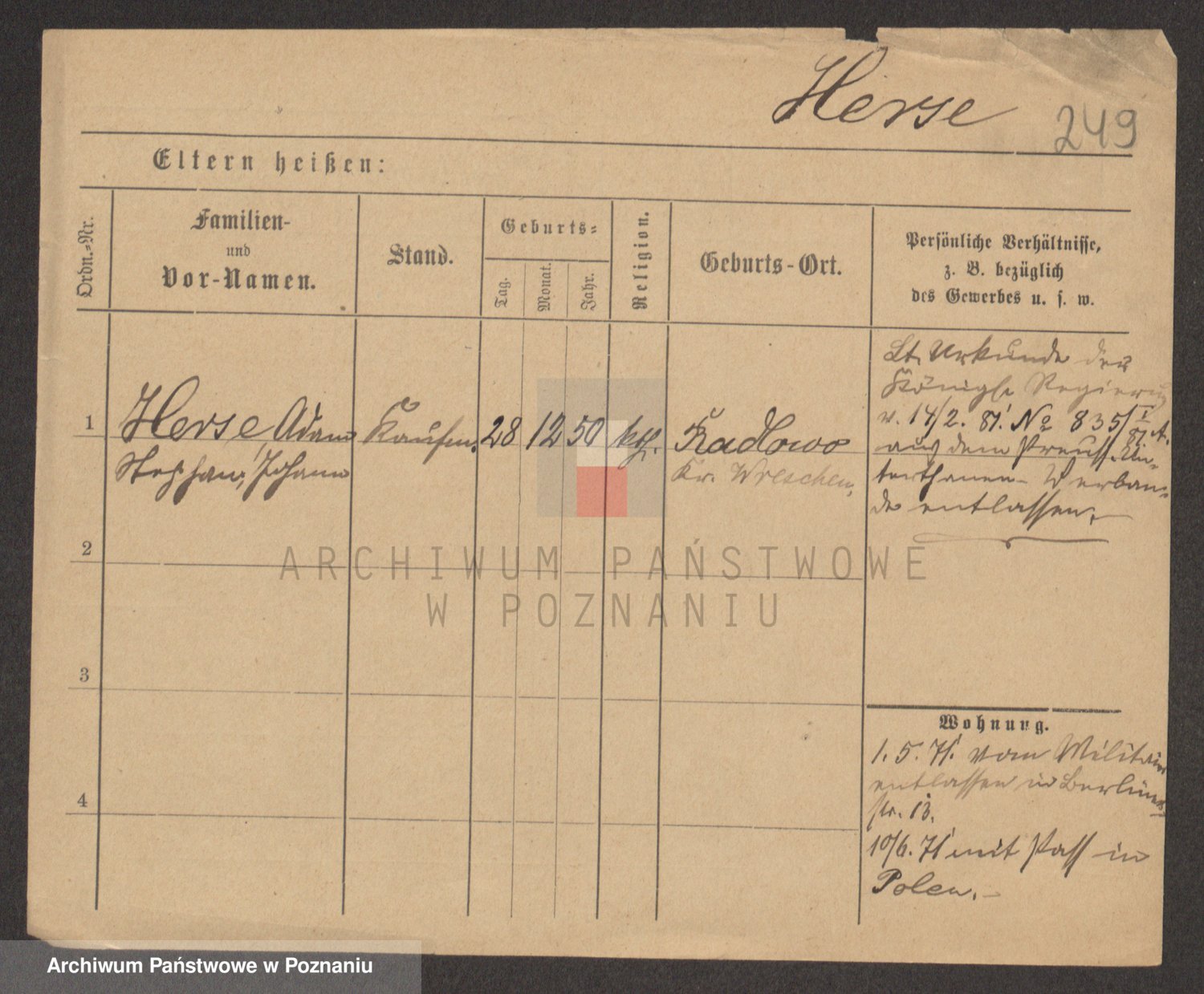 Podgląd karty osobowej dostępny jest po kliknięciu na nazwisko lub ikonkę karty. Można dokonywać powiększenia (ikony na górze) lub przechodzić między kolejnymi skanami (strzałki po bokach).
