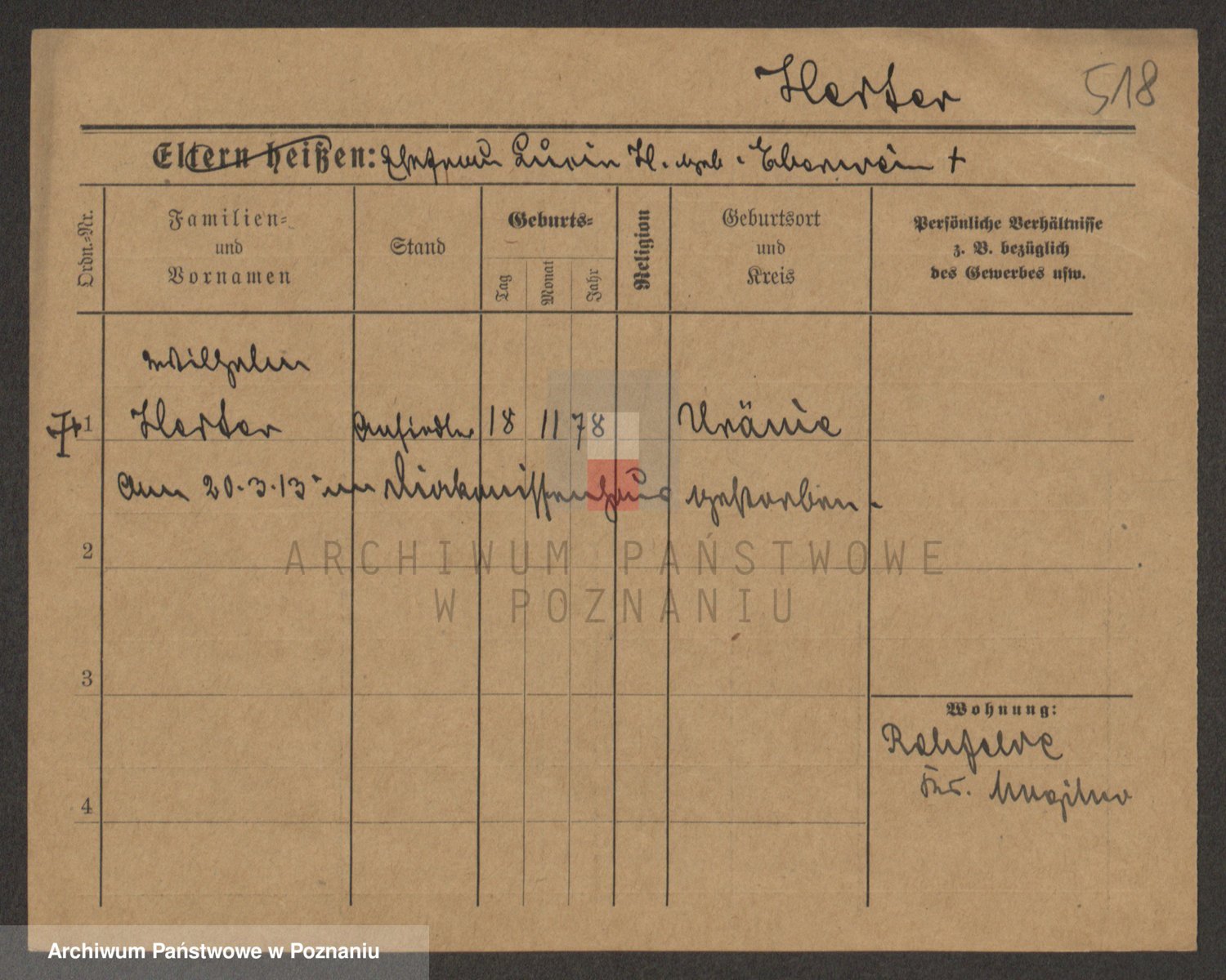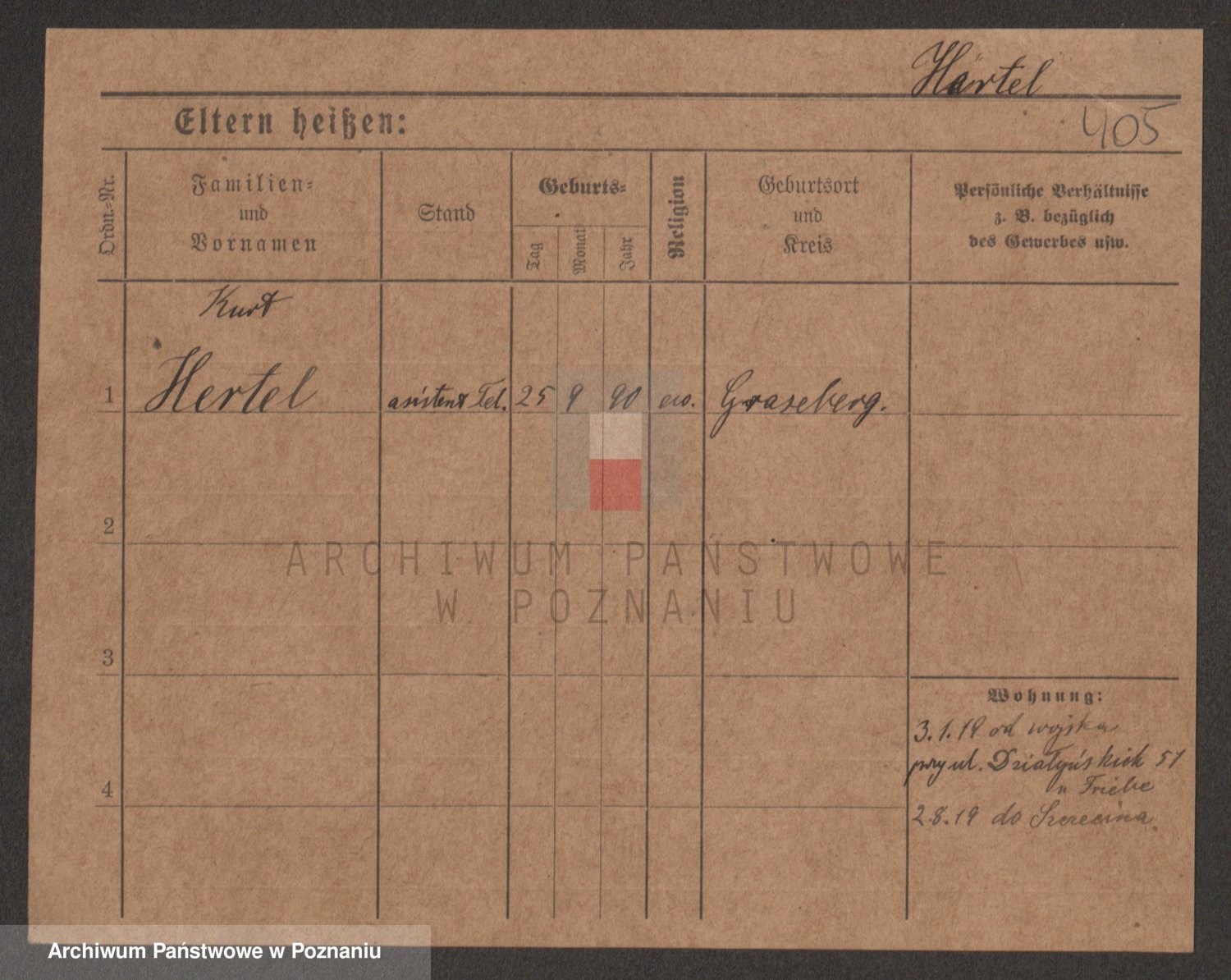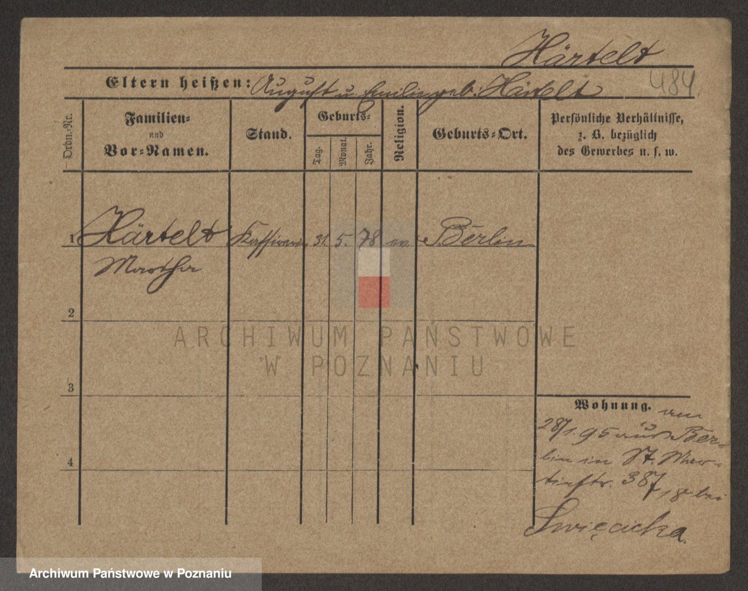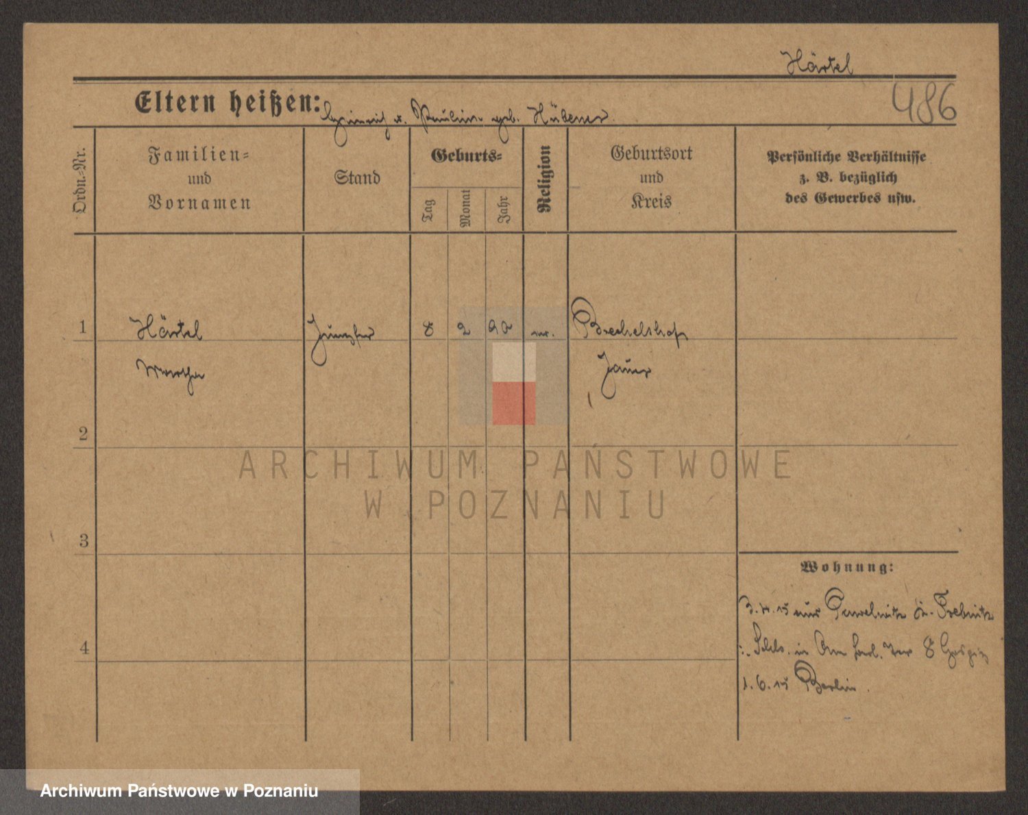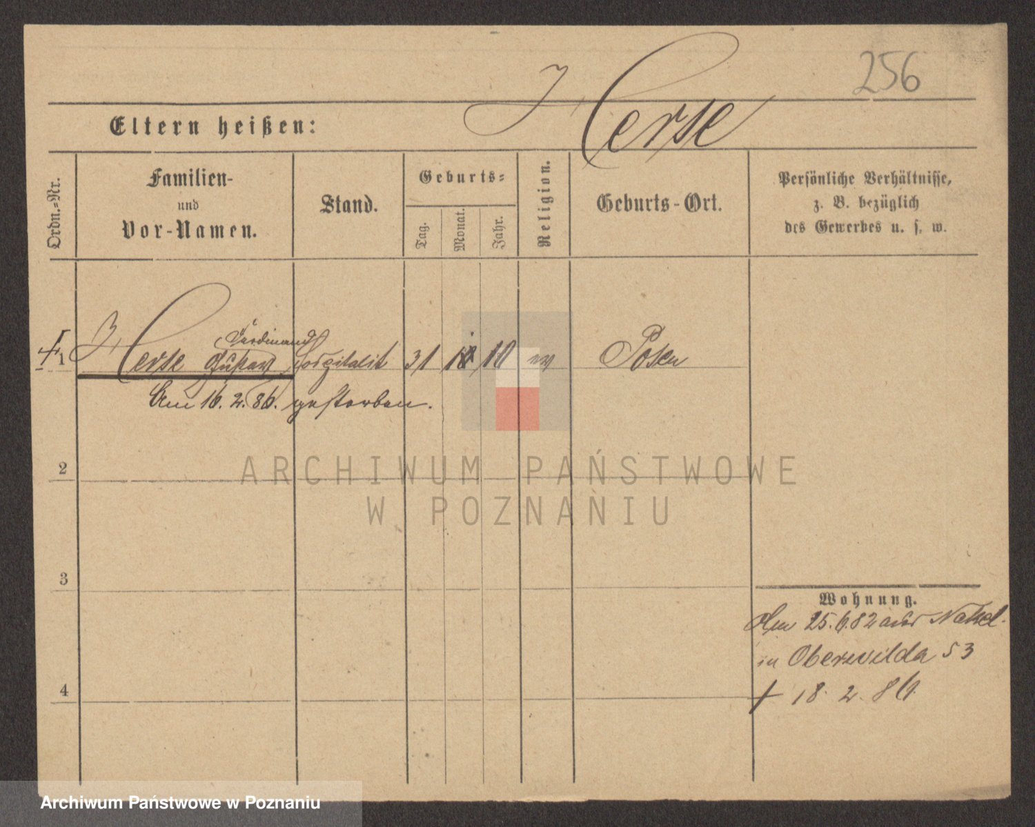 Podgląd karty osobowej dostępny jest po kliknięciu na nazwisko lub ikonkę karty. Można dokonywać powiększenia (ikony na górze) lub przechodzić między kolejnymi skanami (strzałki po bokach).