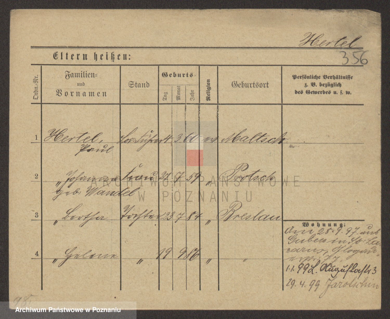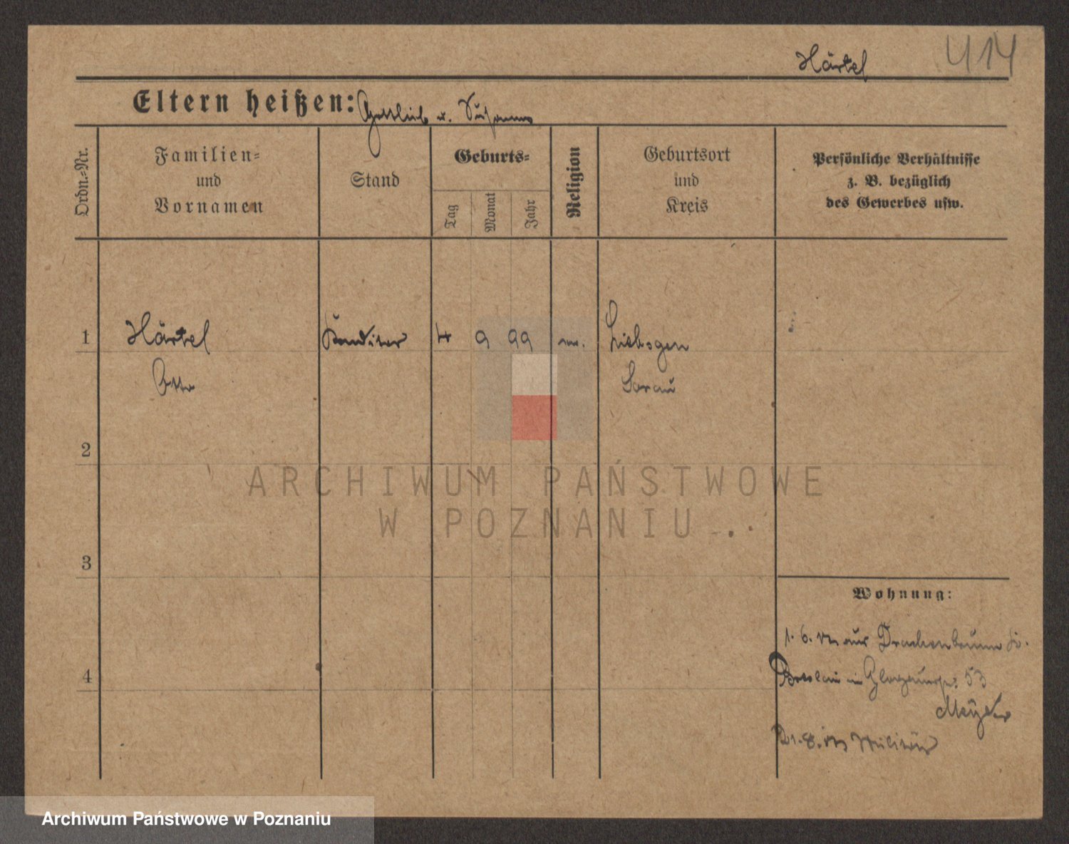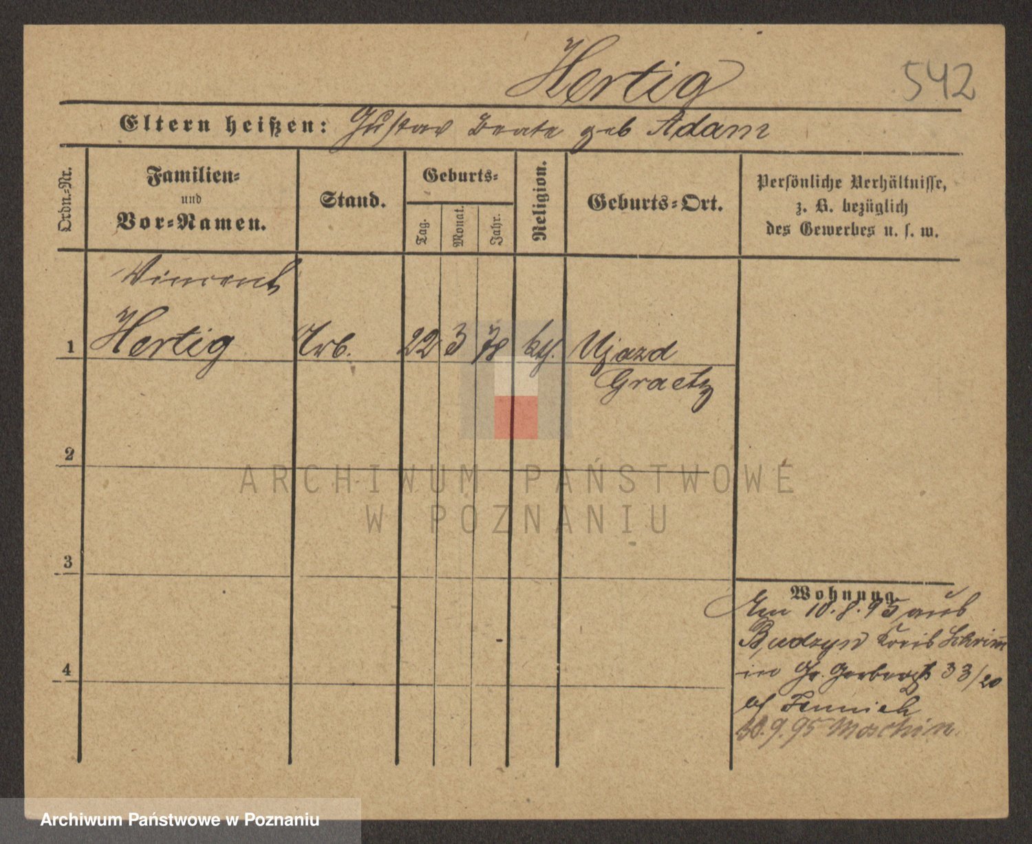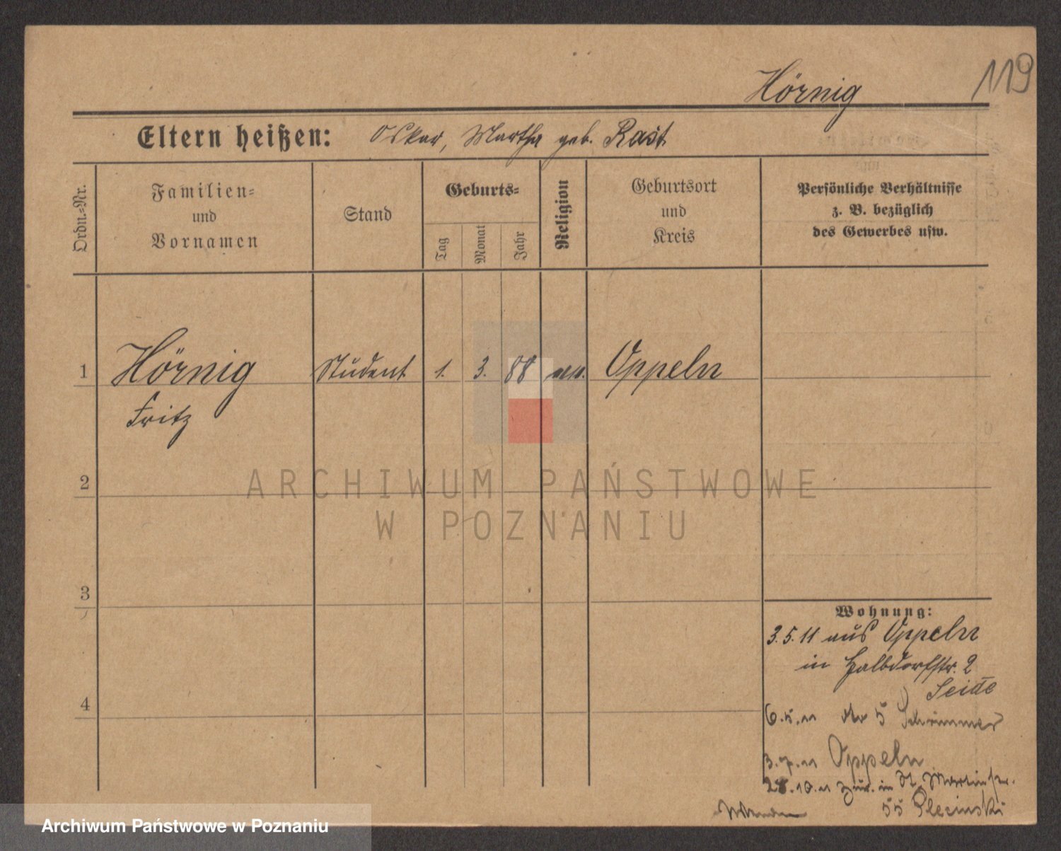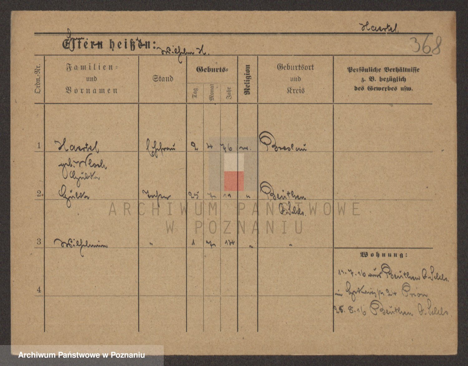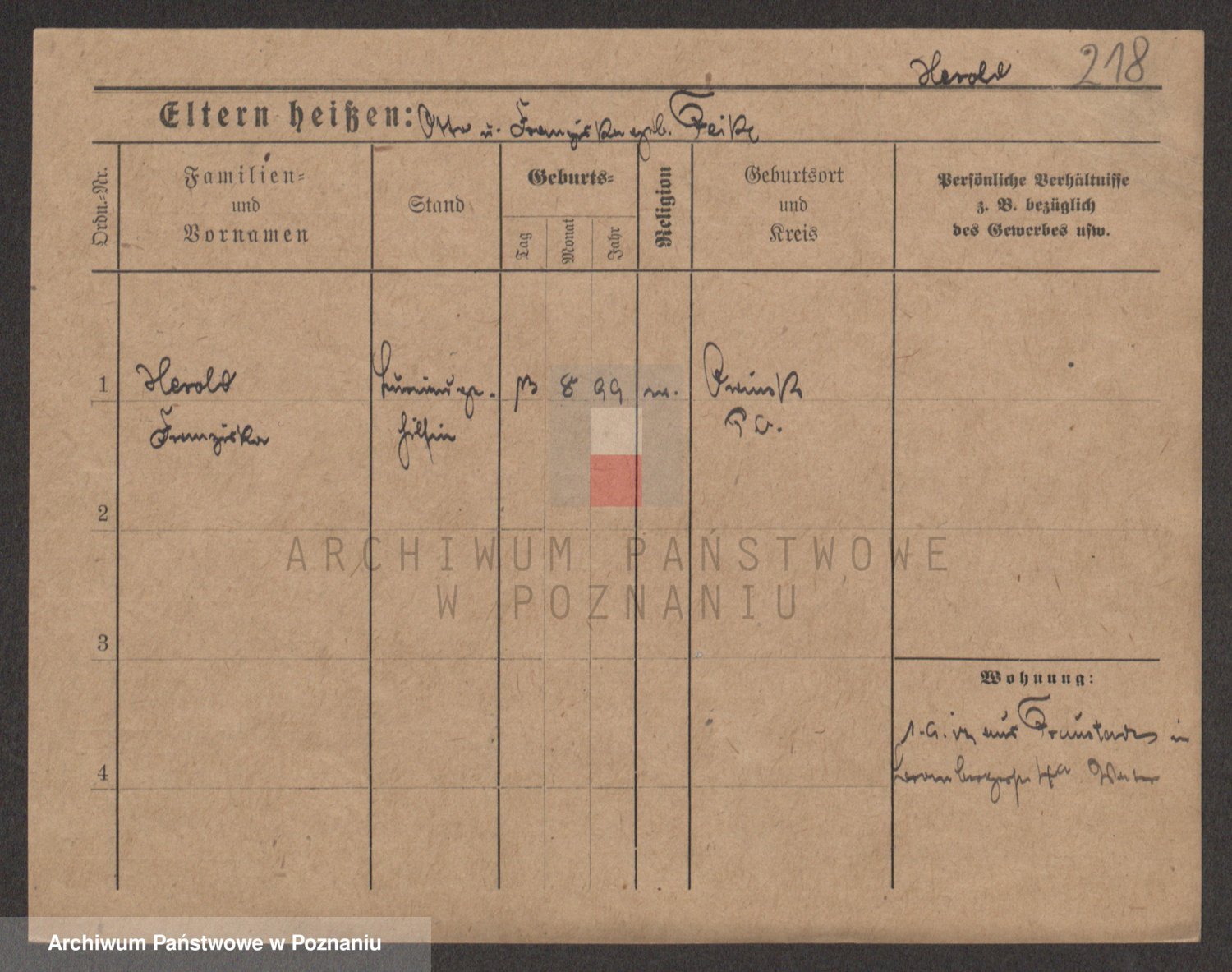 Podgląd karty osobowej dostępny jest po kliknięciu na nazwisko lub ikonkę karty. Można dokonywać powiększenia (ikony na górze) lub przechodzić między kolejnymi skanami (strzałki po bokach).