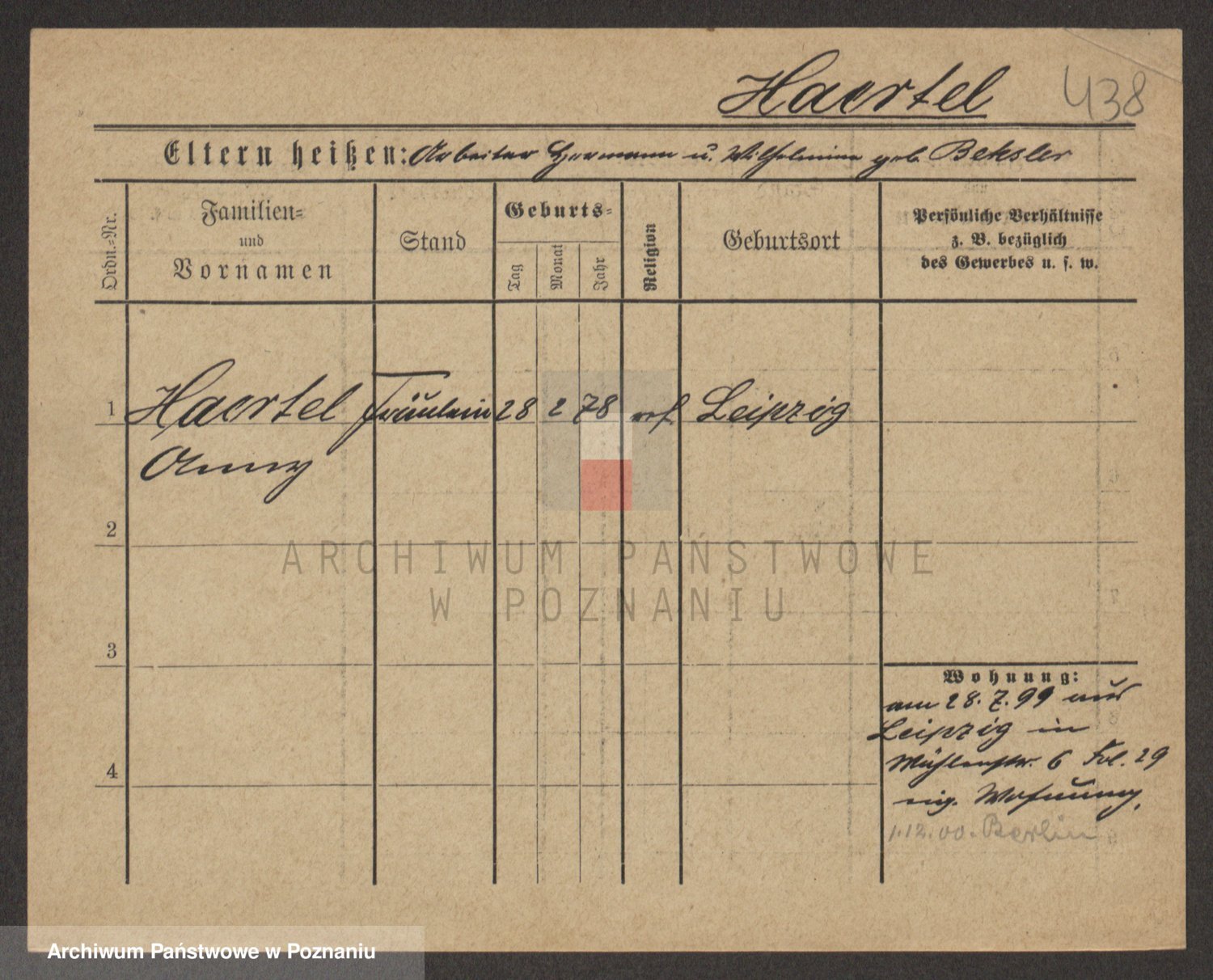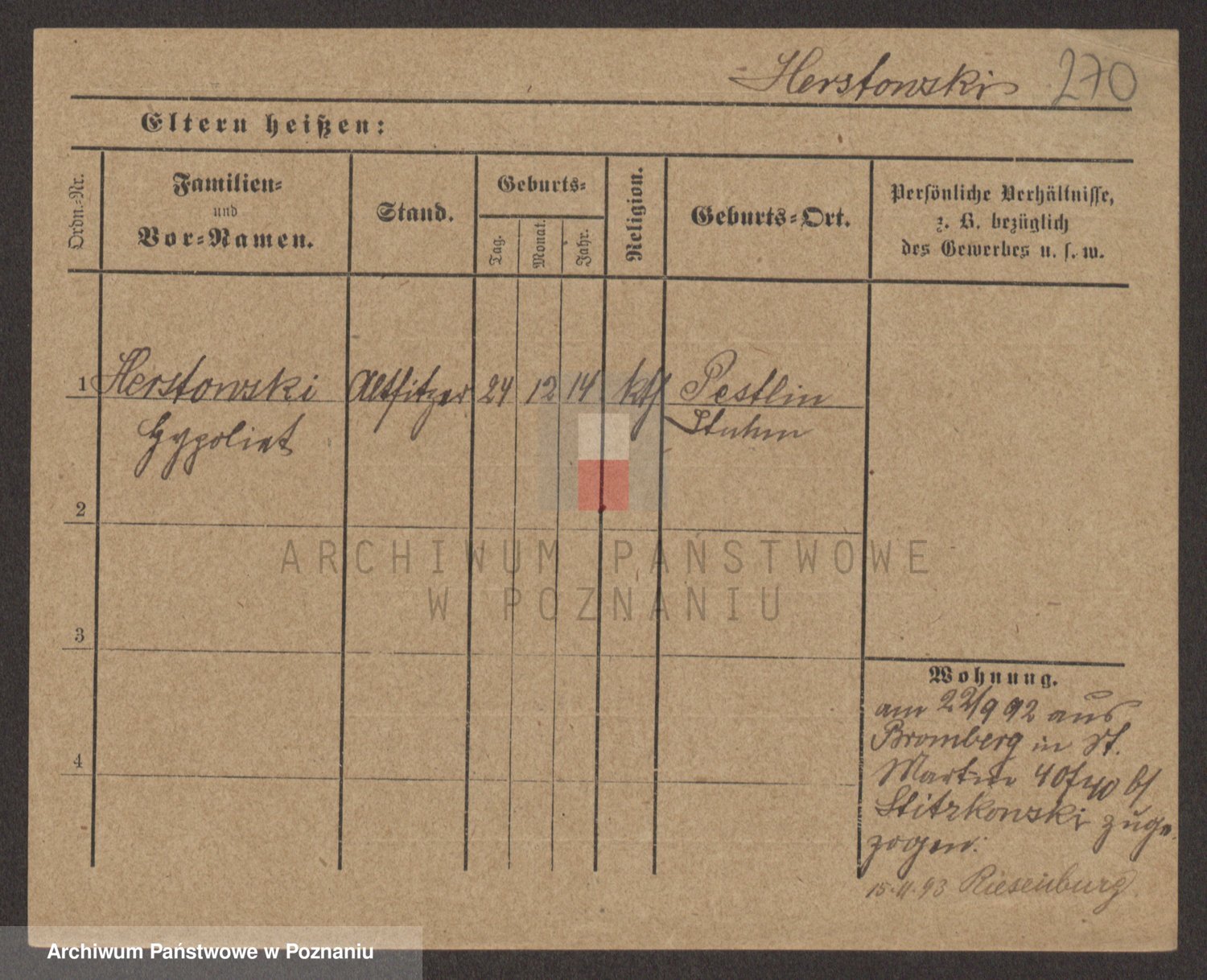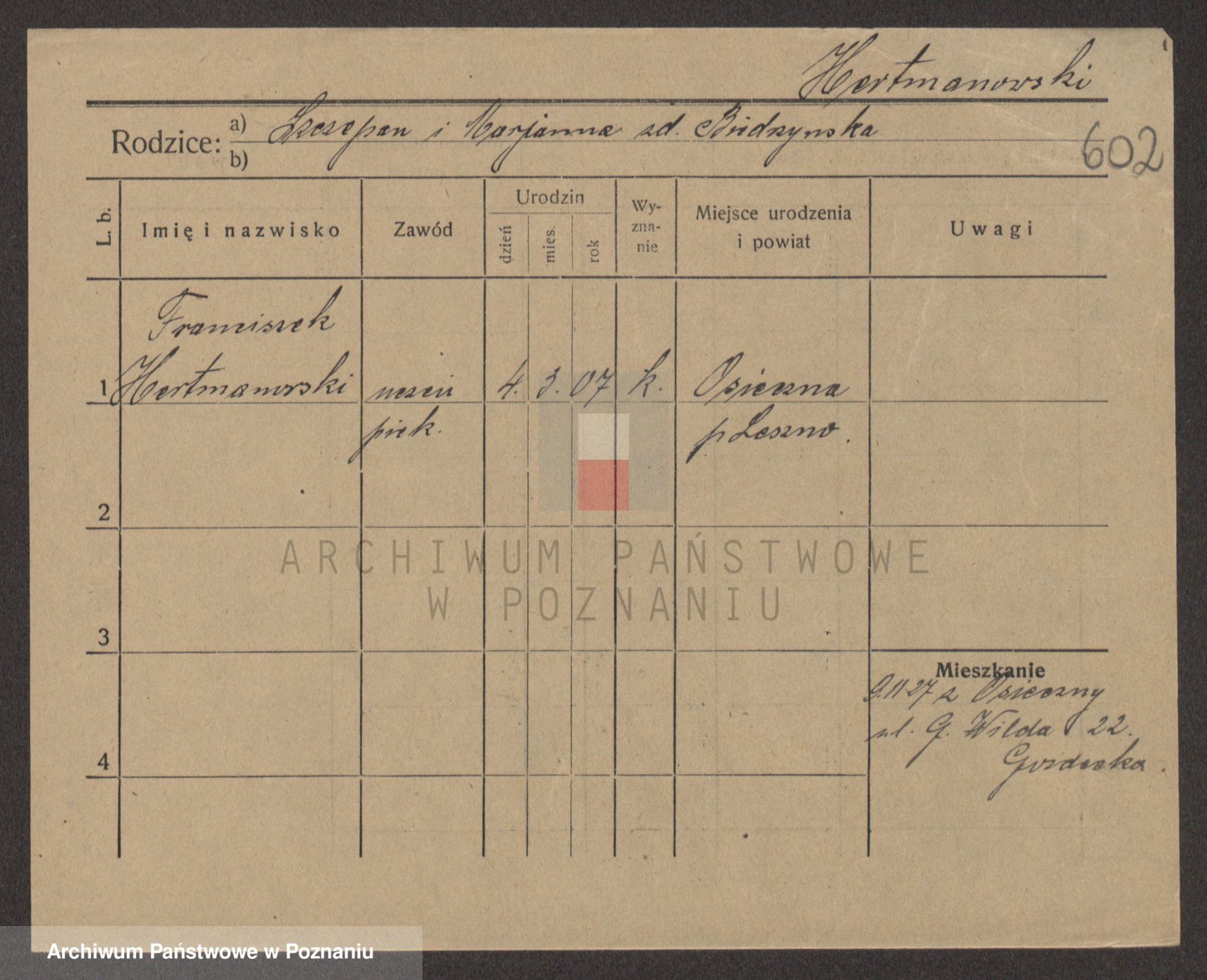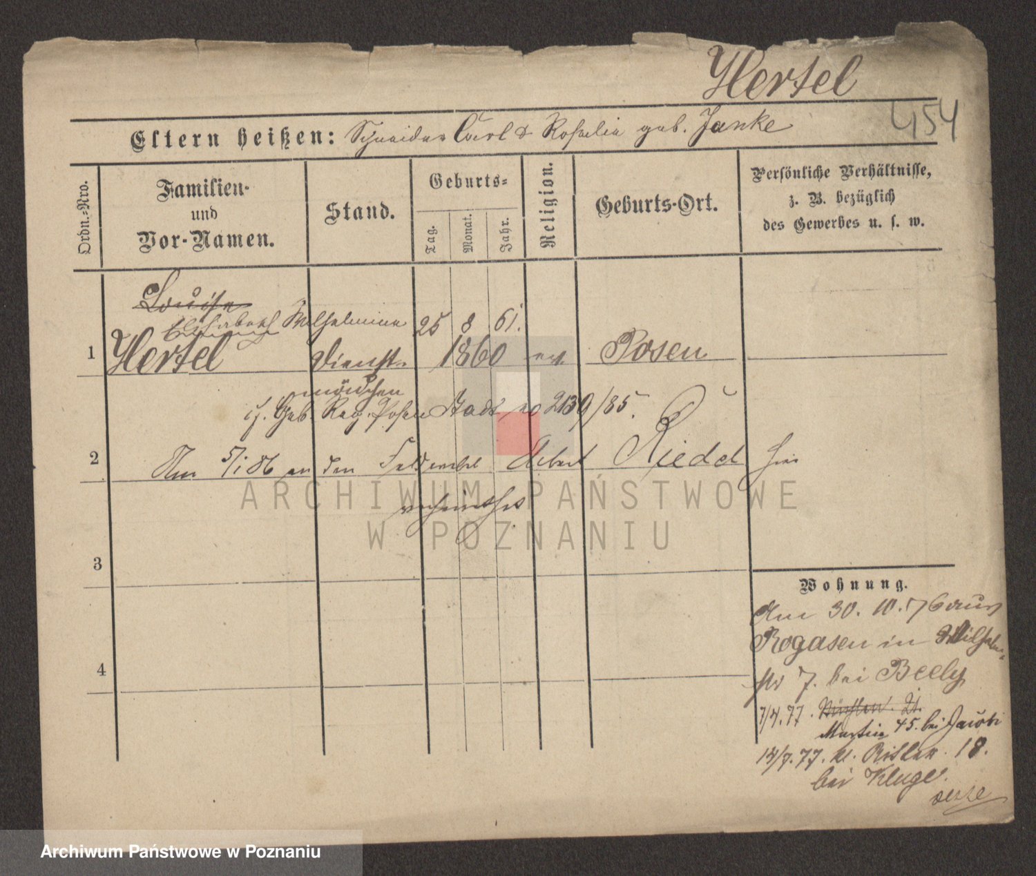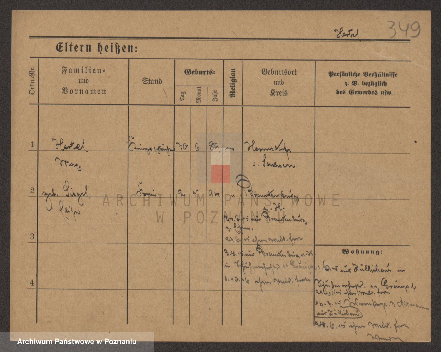 Podgląd karty osobowej dostępny jest po kliknięciu na nazwisko lub ikonkę karty. Można dokonywać powiększenia (ikony na górze) lub przechodzić między kolejnymi skanami (strzałki po bokach).