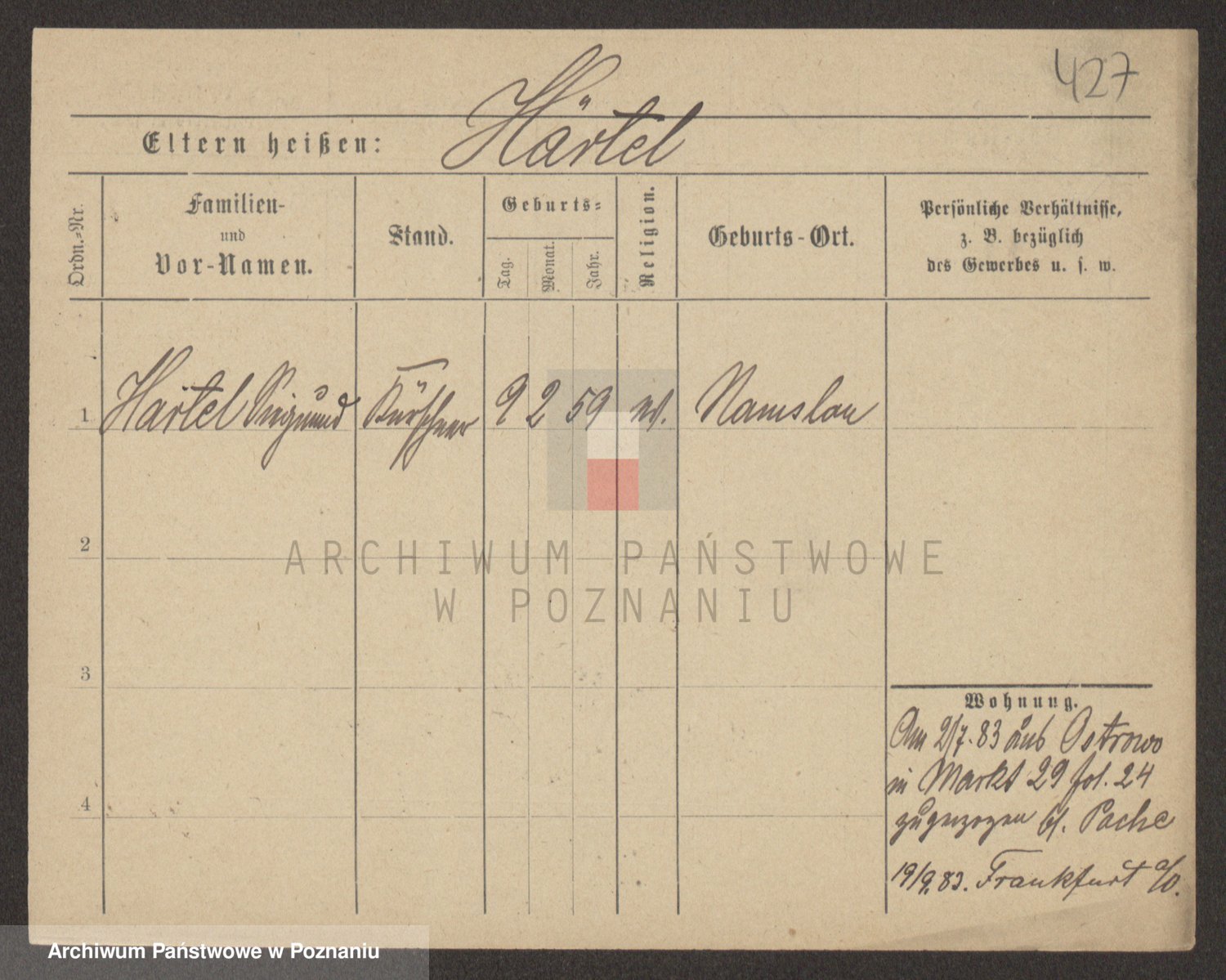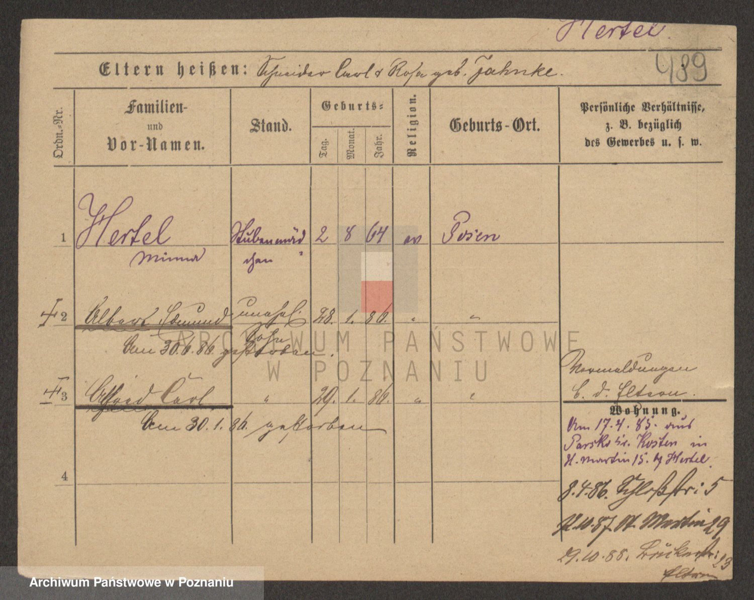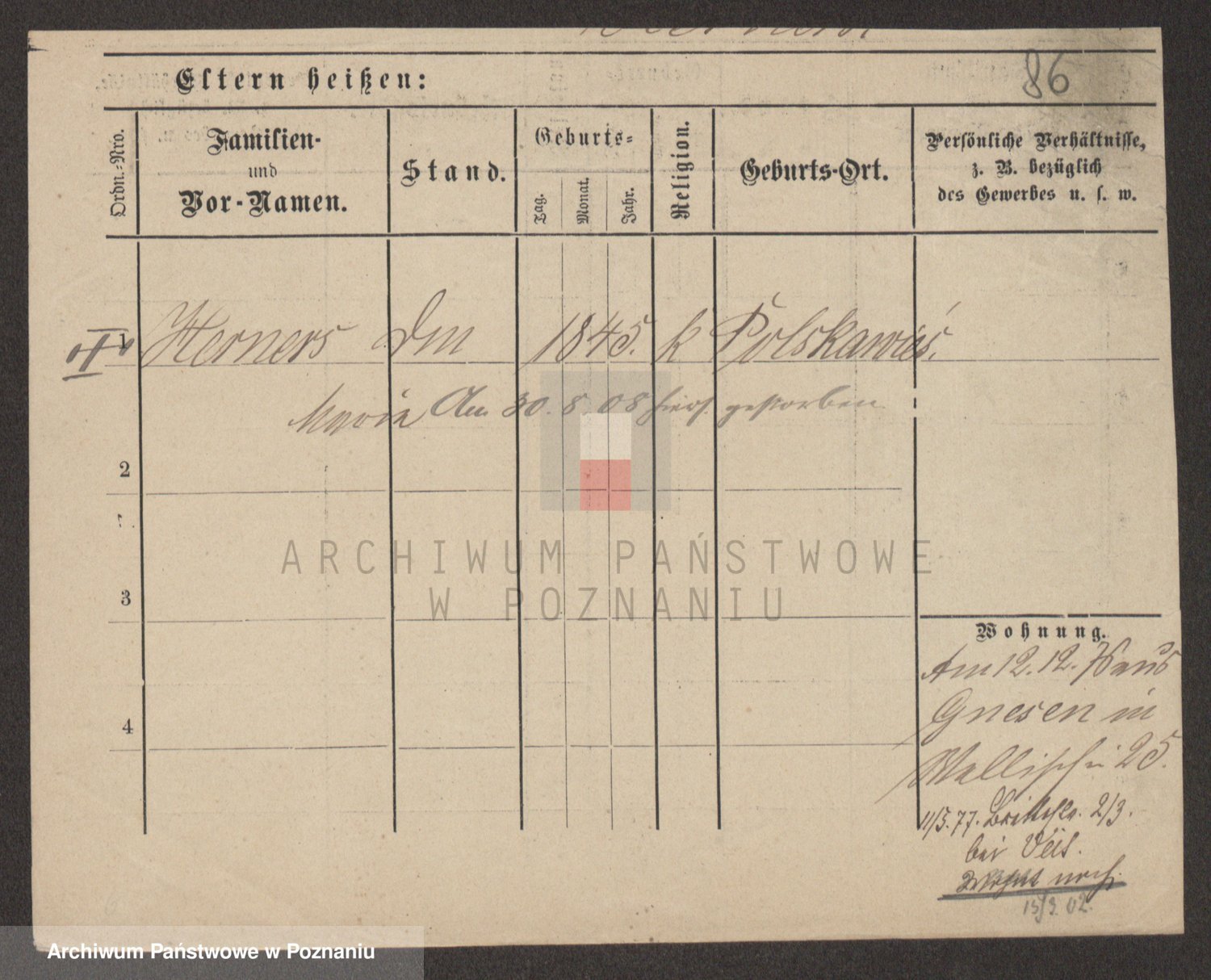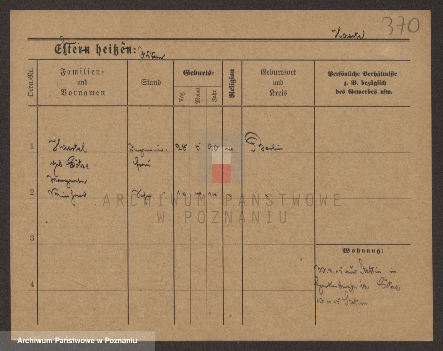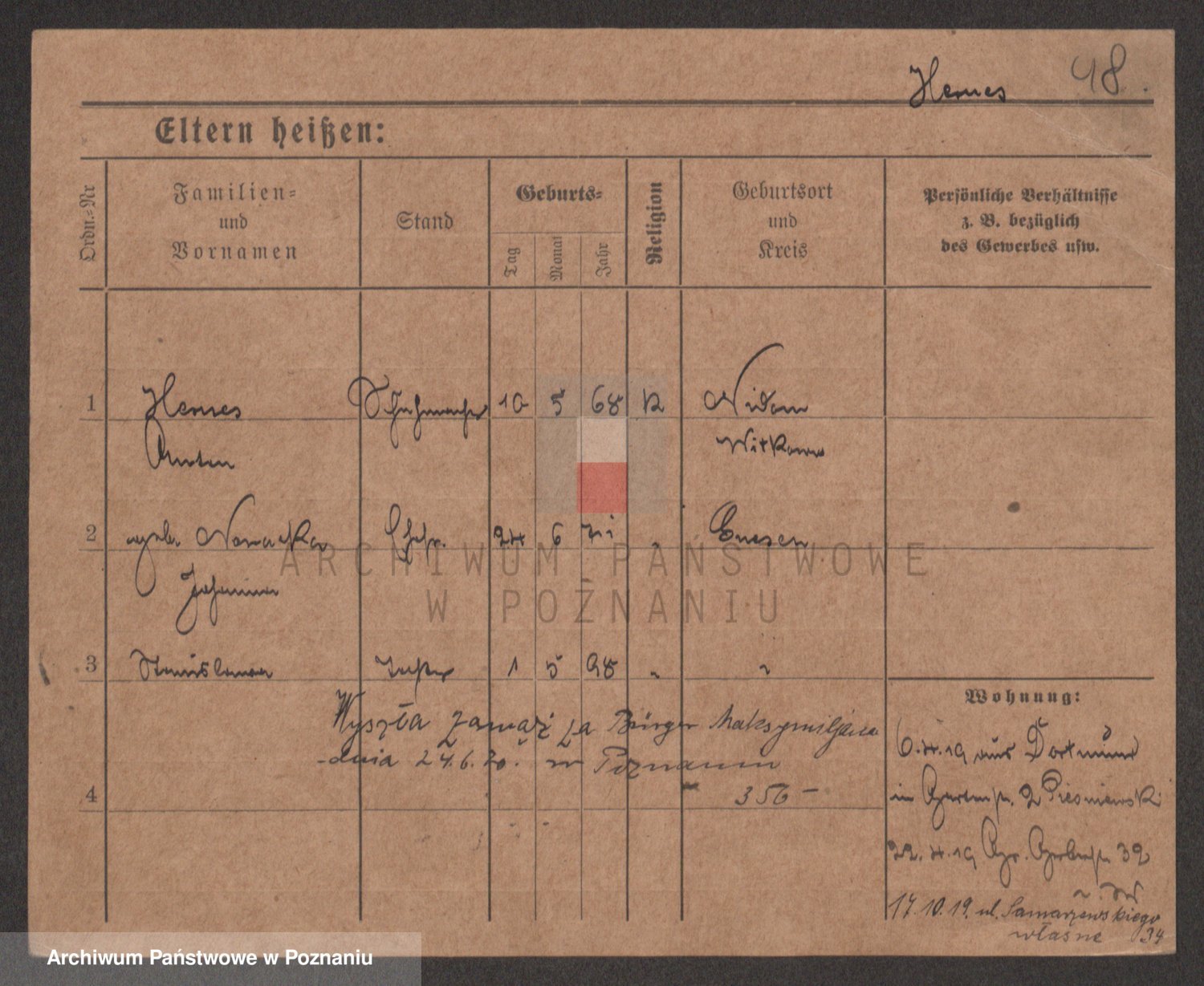 Podgląd karty osobowej dostępny jest po kliknięciu na nazwisko lub ikonkę karty. Można dokonywać powiększenia (ikony na górze) lub przechodzić między kolejnymi skanami (strzałki po bokach).