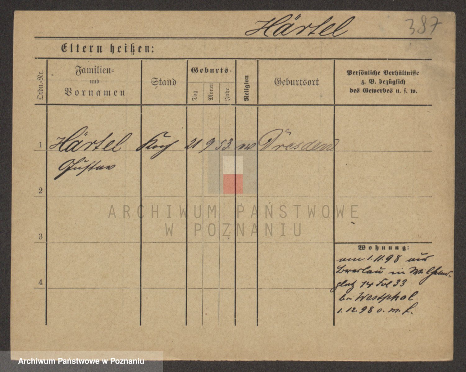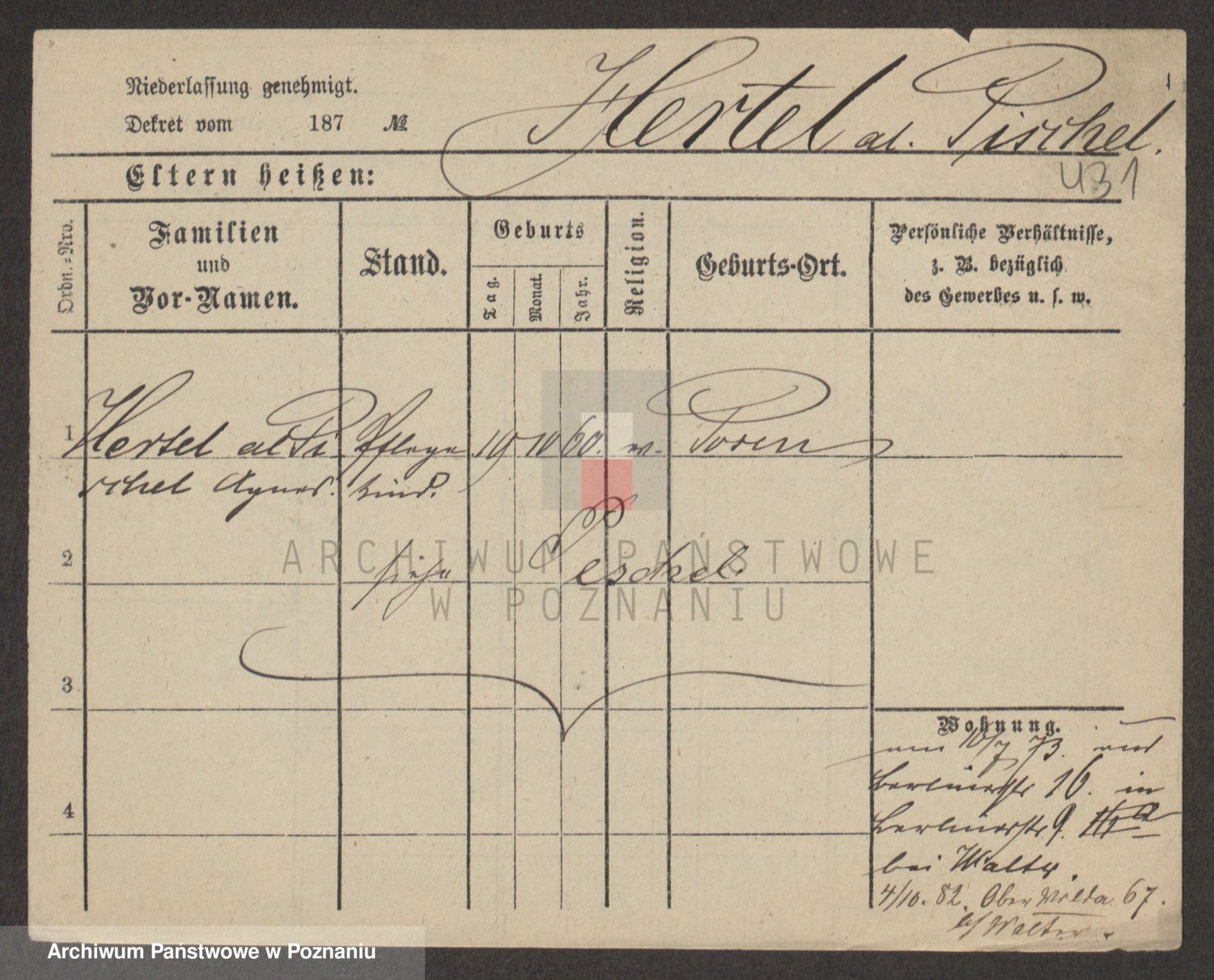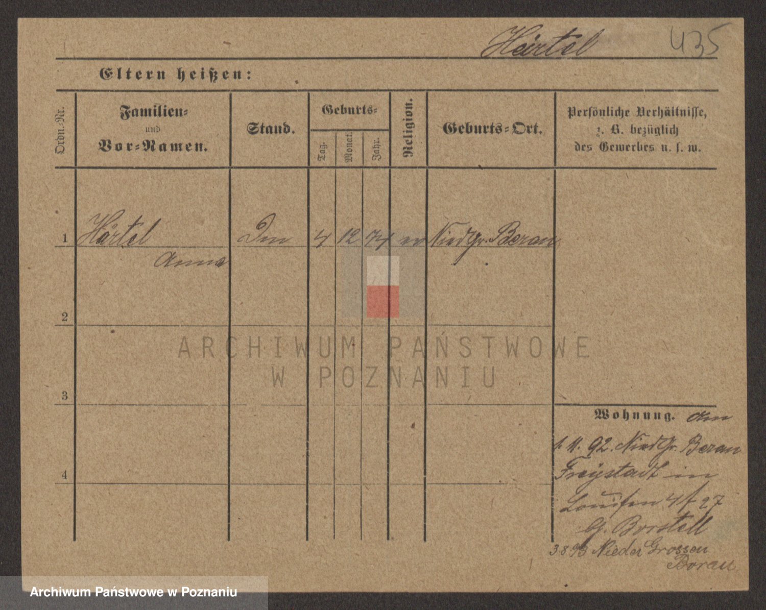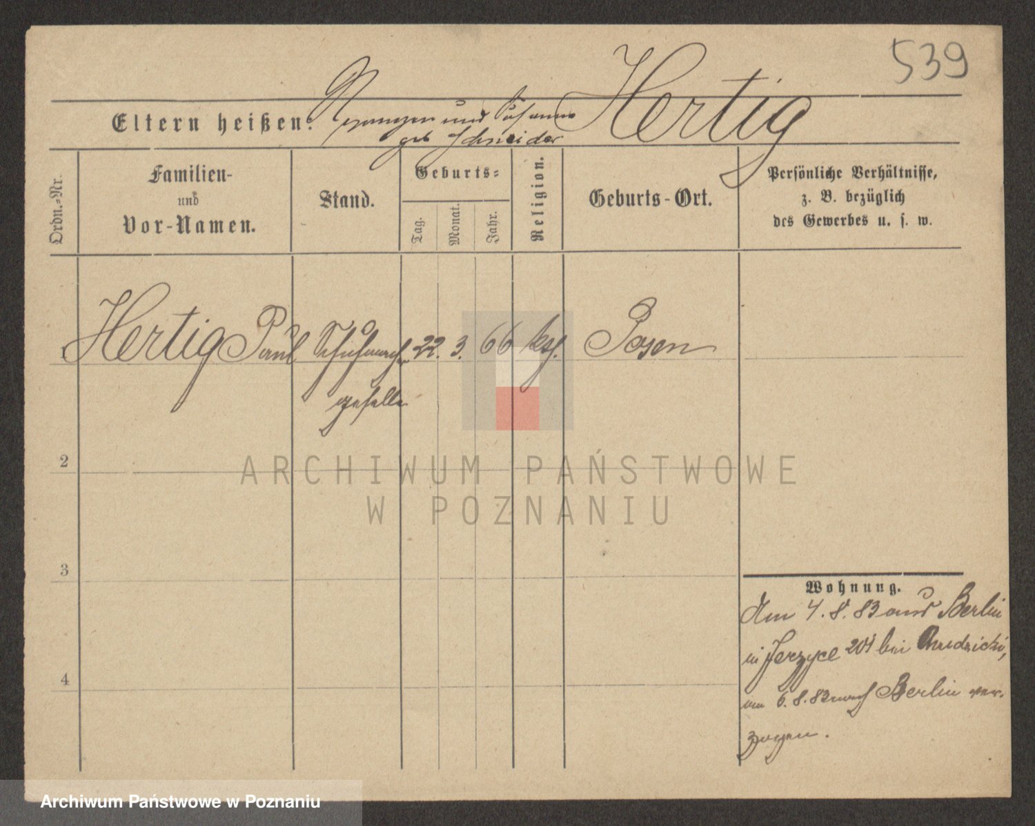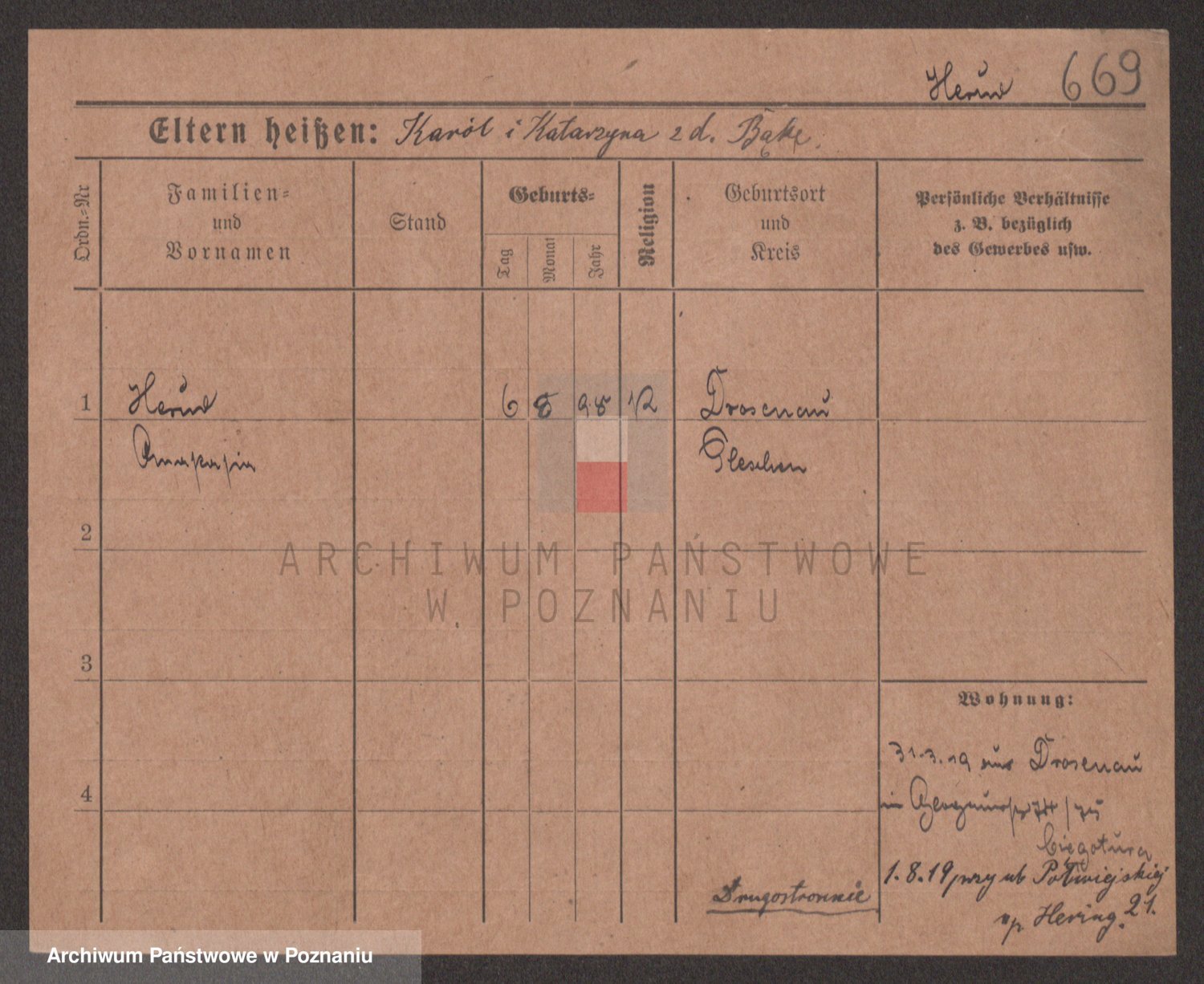 Podgląd karty osobowej dostępny jest po kliknięciu na nazwisko lub ikonkę karty. Można dokonywać powiększenia (ikony na górze) lub przechodzić między kolejnymi skanami (strzałki po bokach).