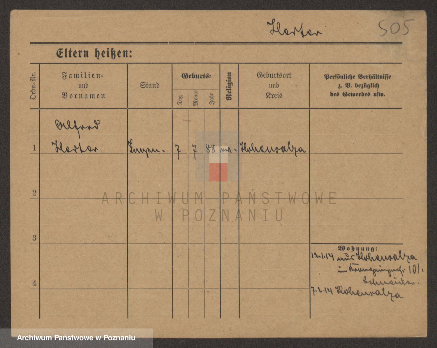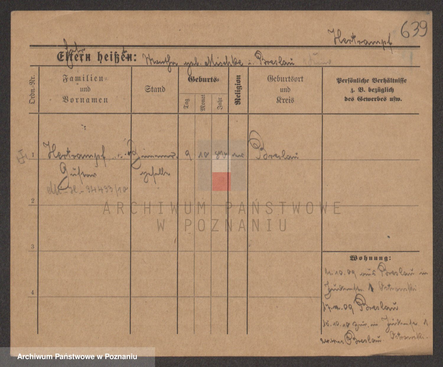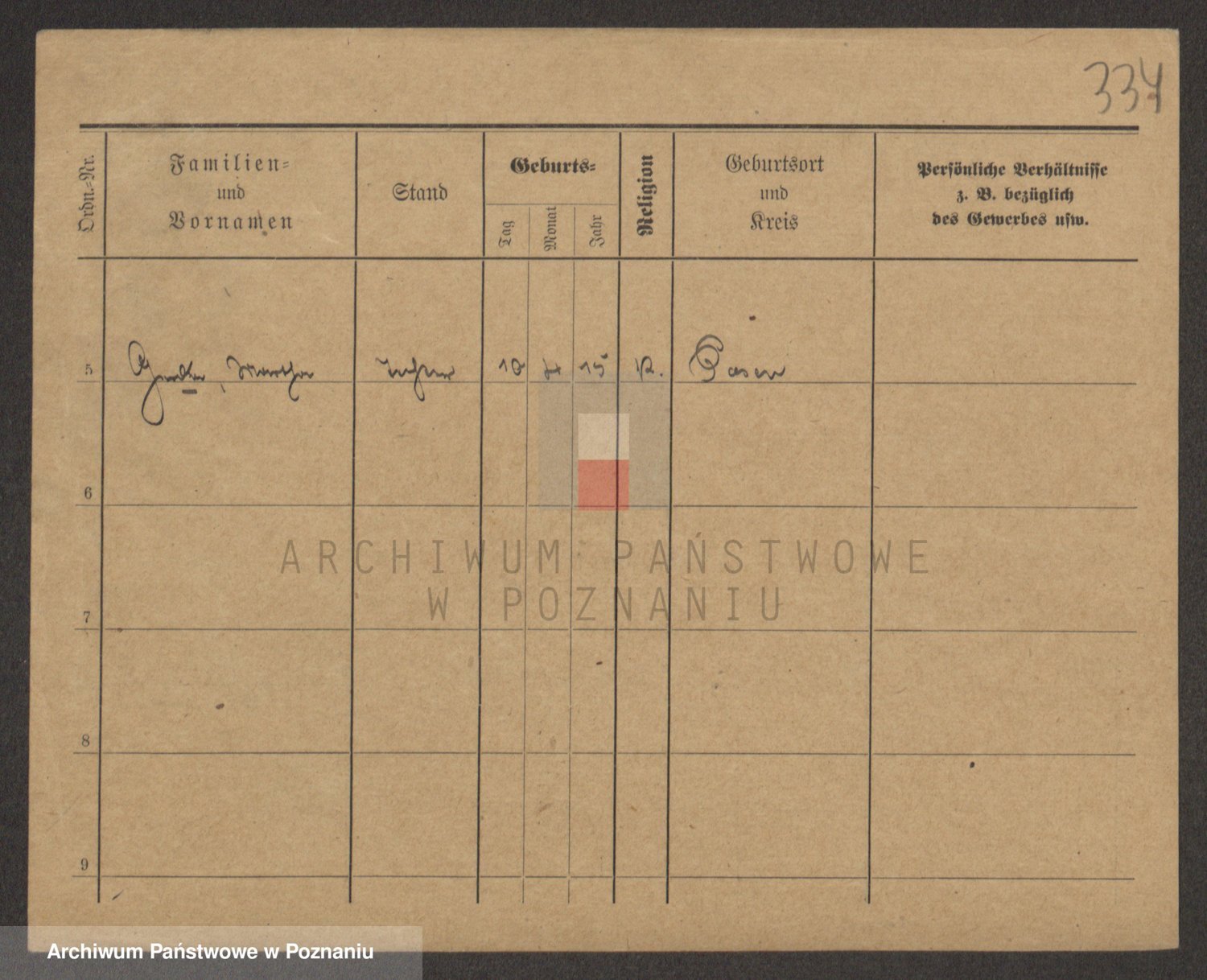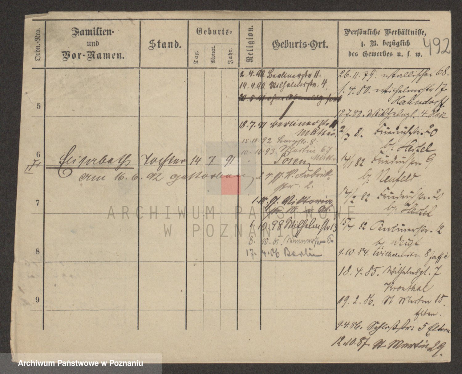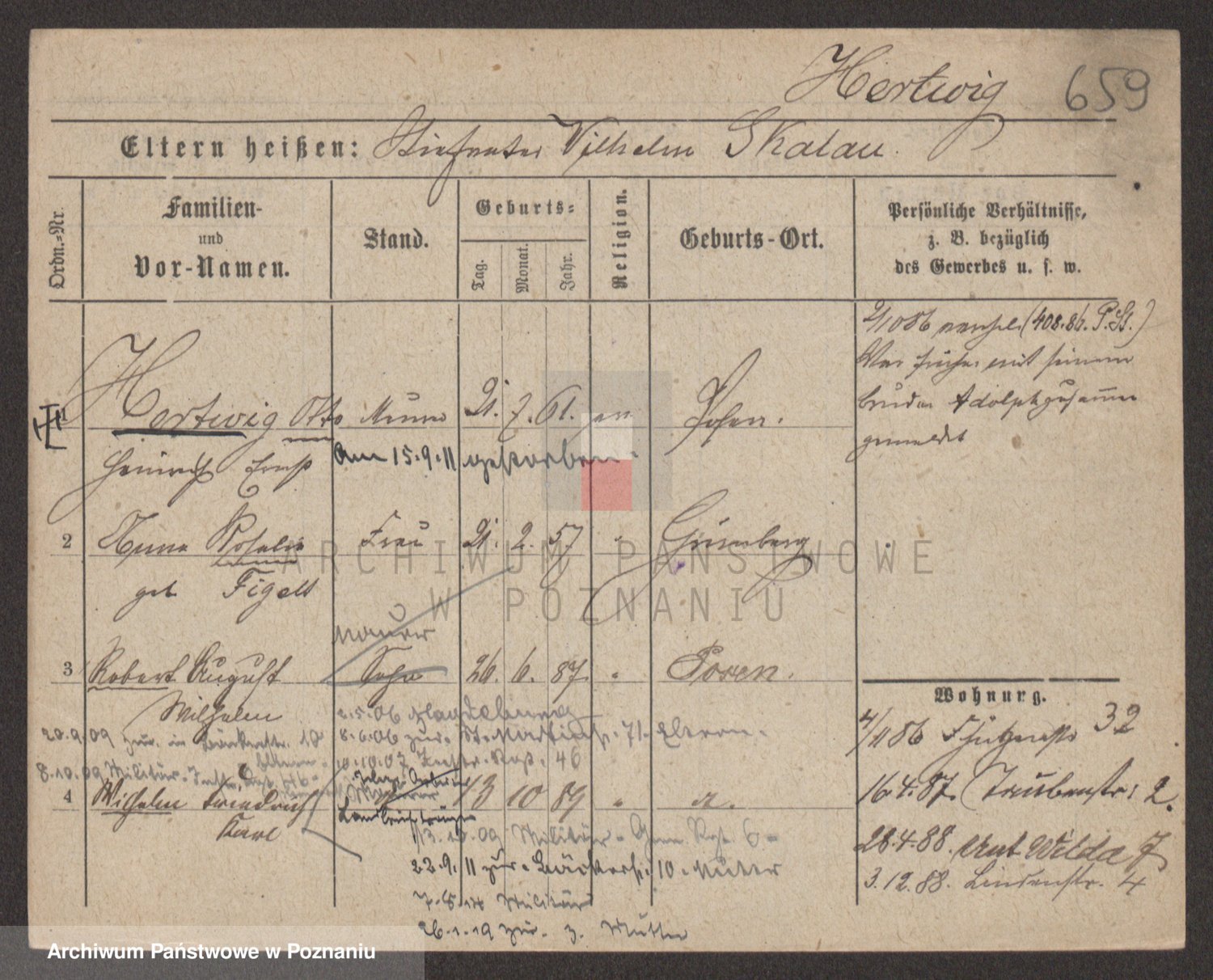 Podgląd karty osobowej dostępny jest po kliknięciu na nazwisko lub ikonkę karty. Można dokonywać powiększenia (ikony na górze) lub przechodzić między kolejnymi skanami (strzałki po bokach).