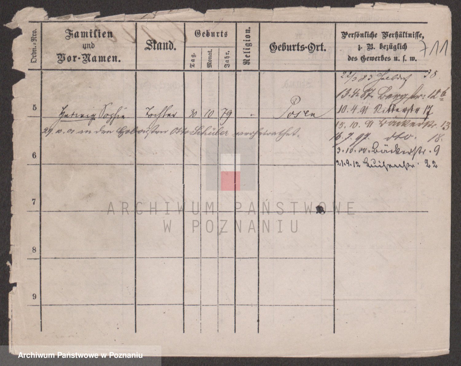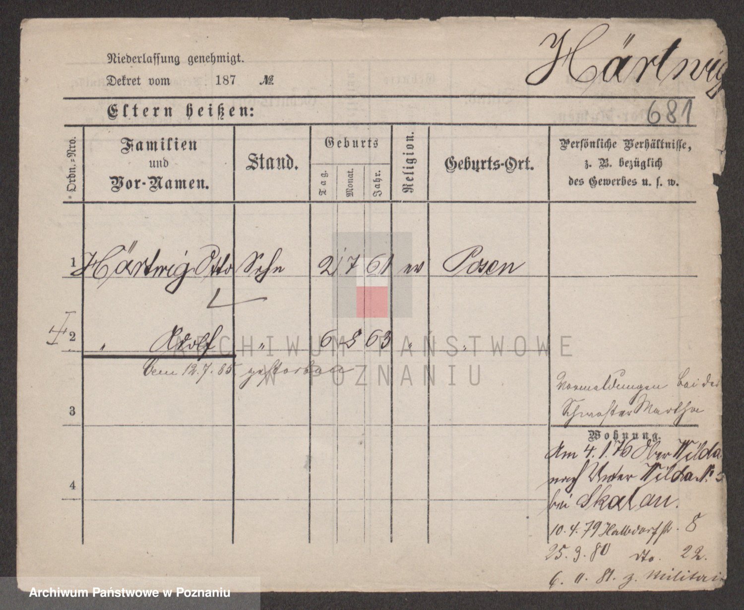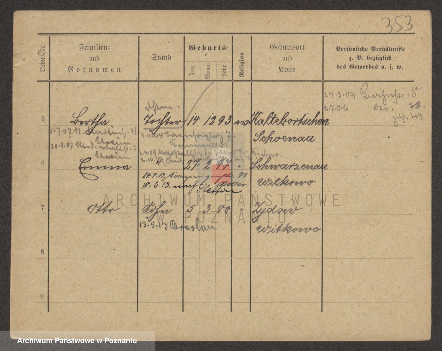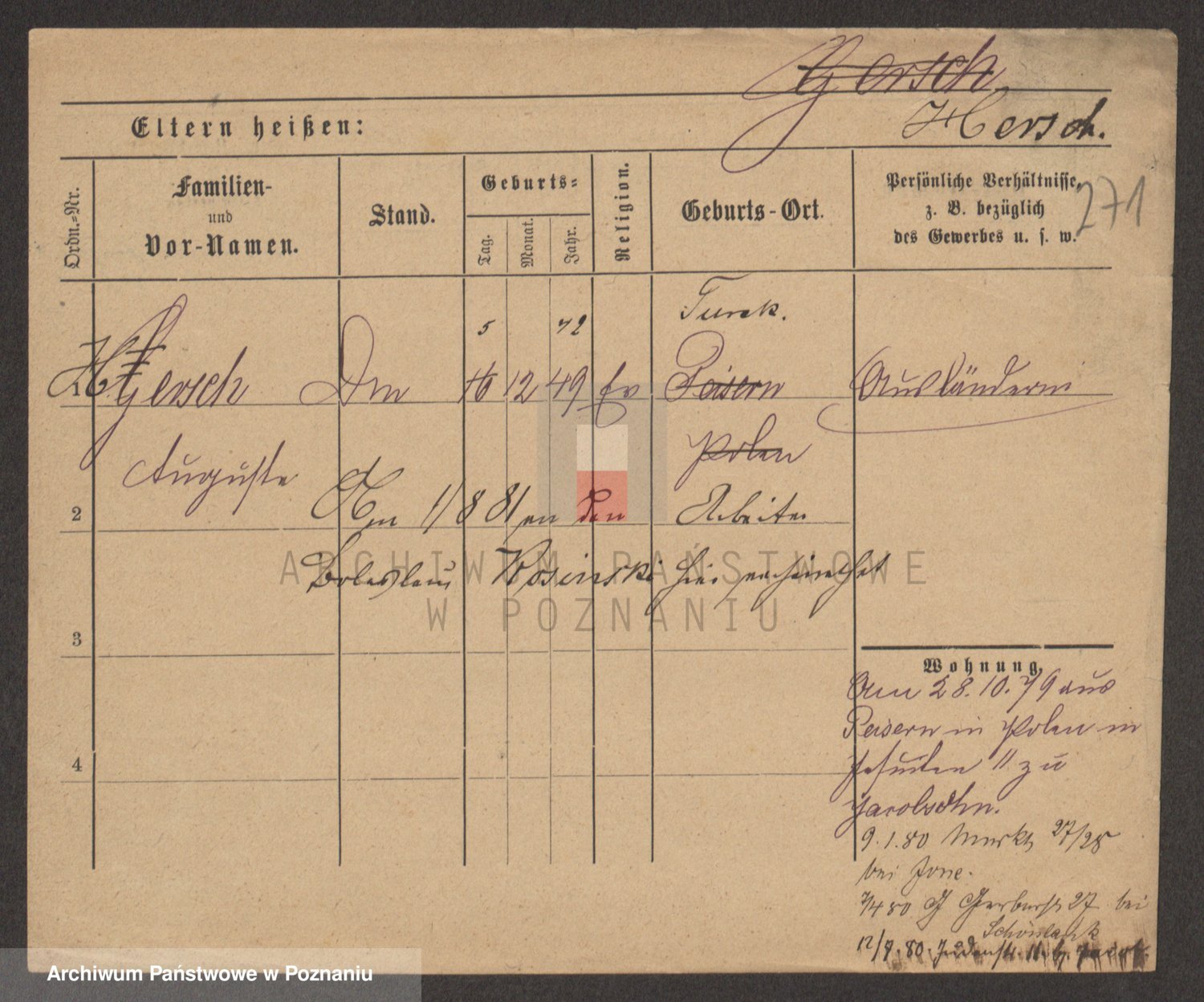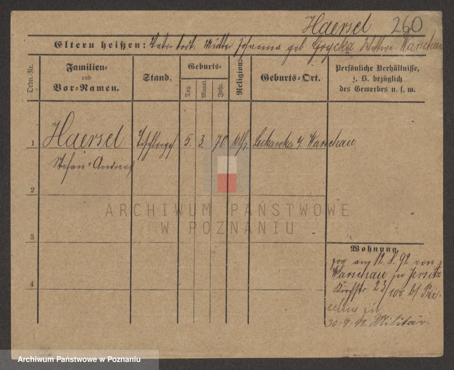 Podgląd karty osobowej dostępny jest po kliknięciu na nazwisko lub ikonkę karty. Można dokonywać powiększenia (ikony na górze) lub przechodzić między kolejnymi skanami (strzałki po bokach).