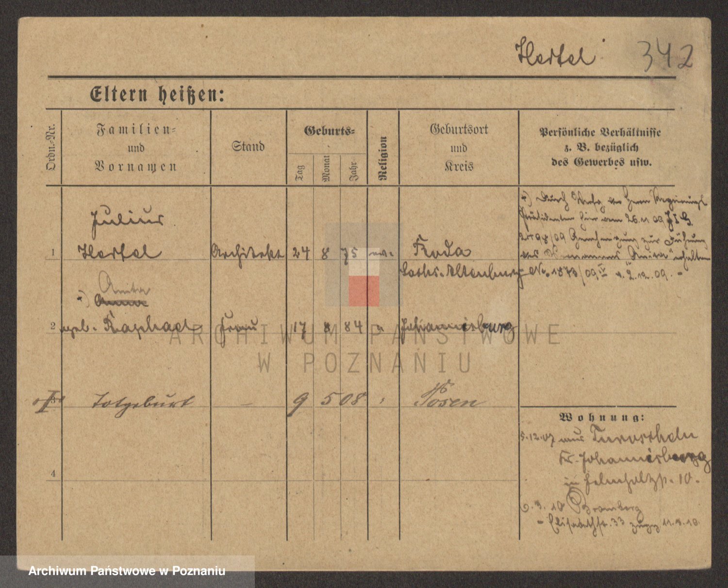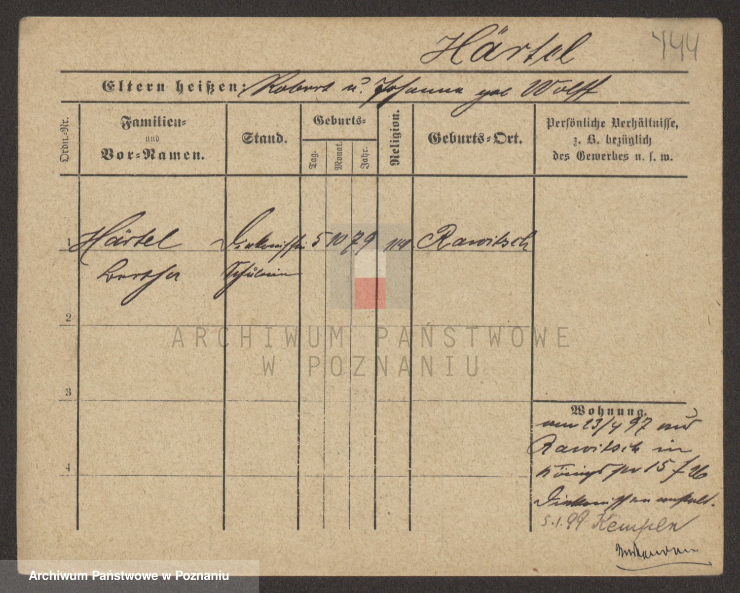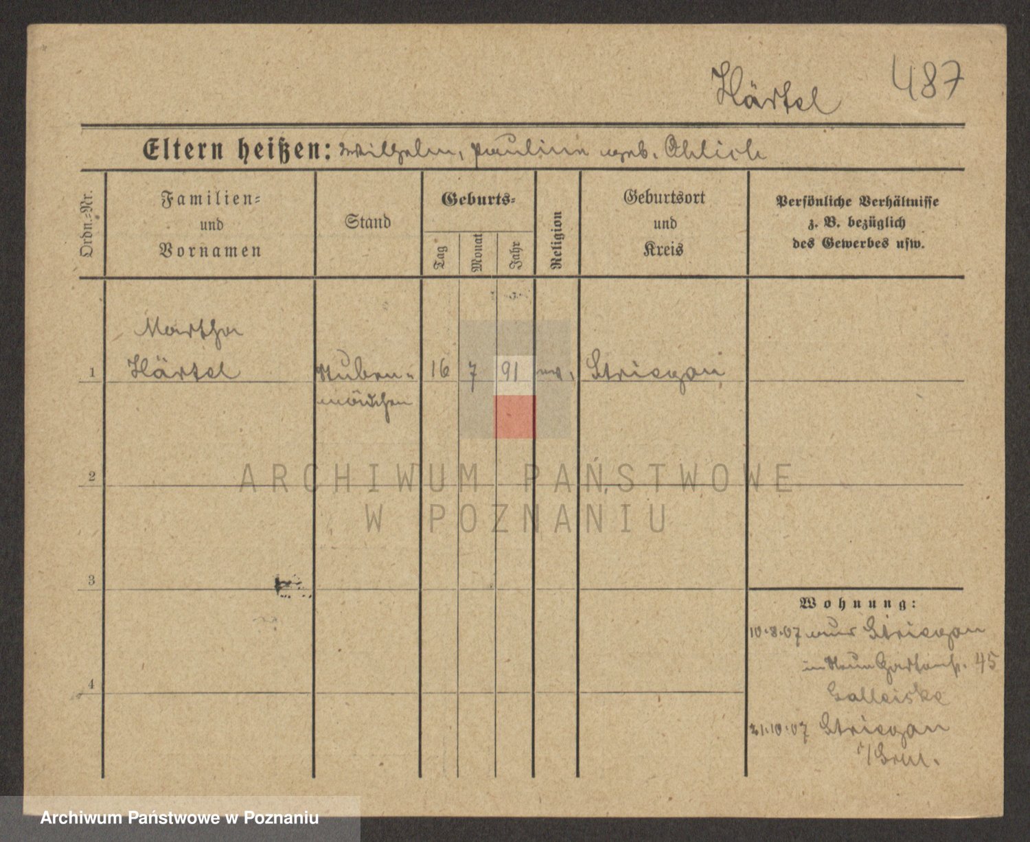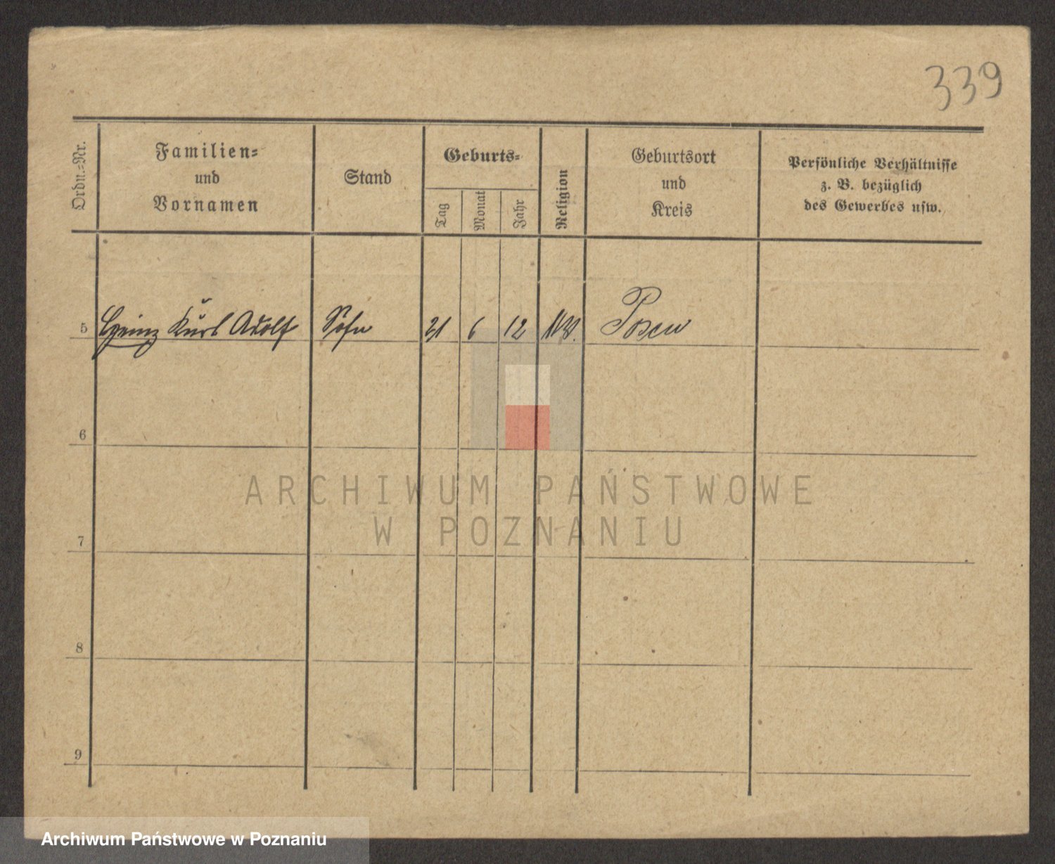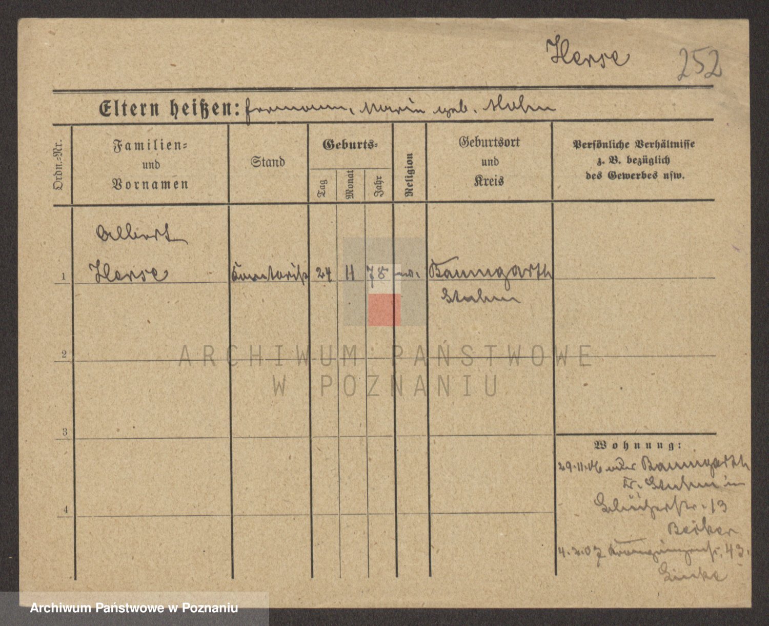 Podgląd karty osobowej dostępny jest po kliknięciu na nazwisko lub ikonkę karty. Można dokonywać powiększenia (ikony na górze) lub przechodzić między kolejnymi skanami (strzałki po bokach).
