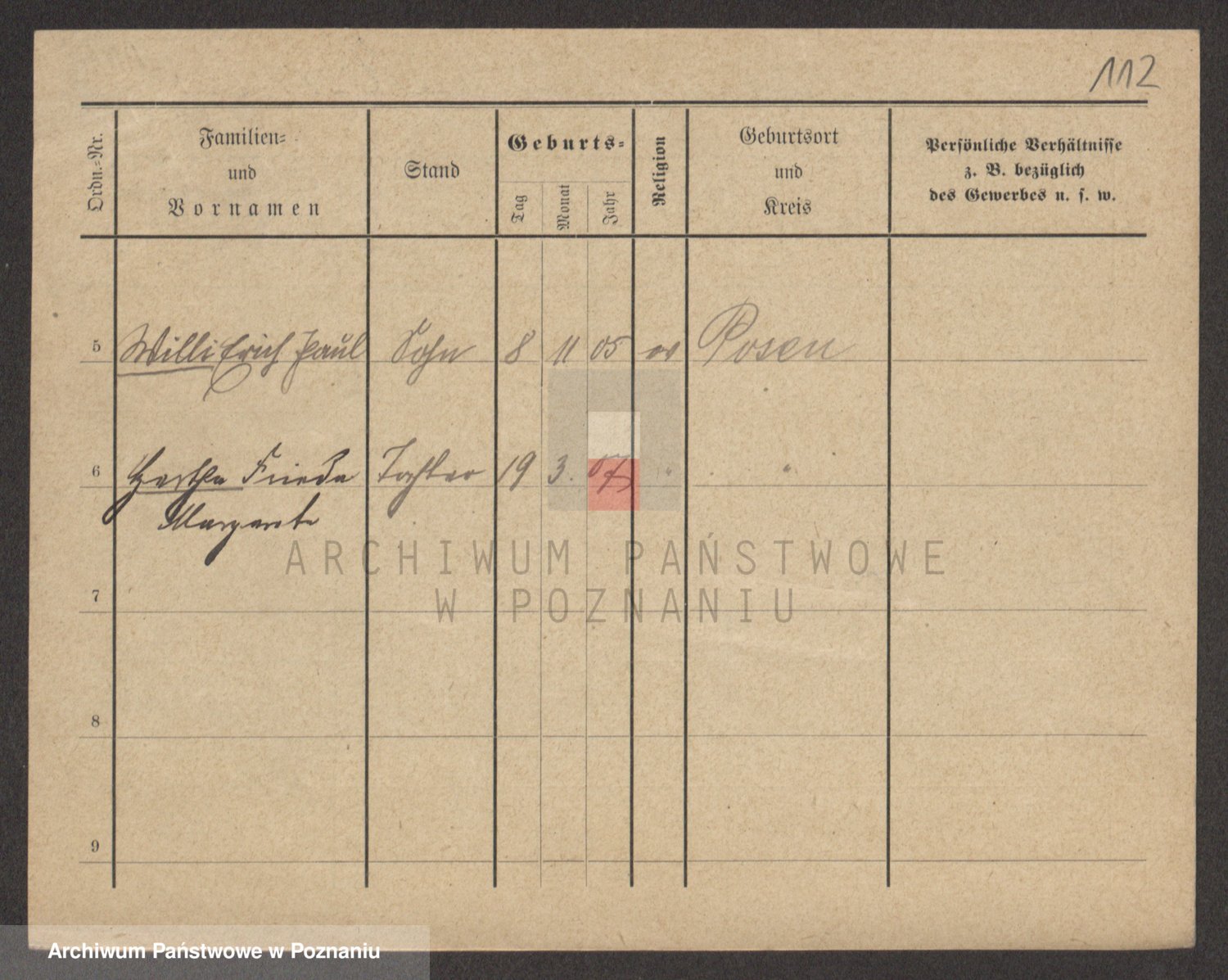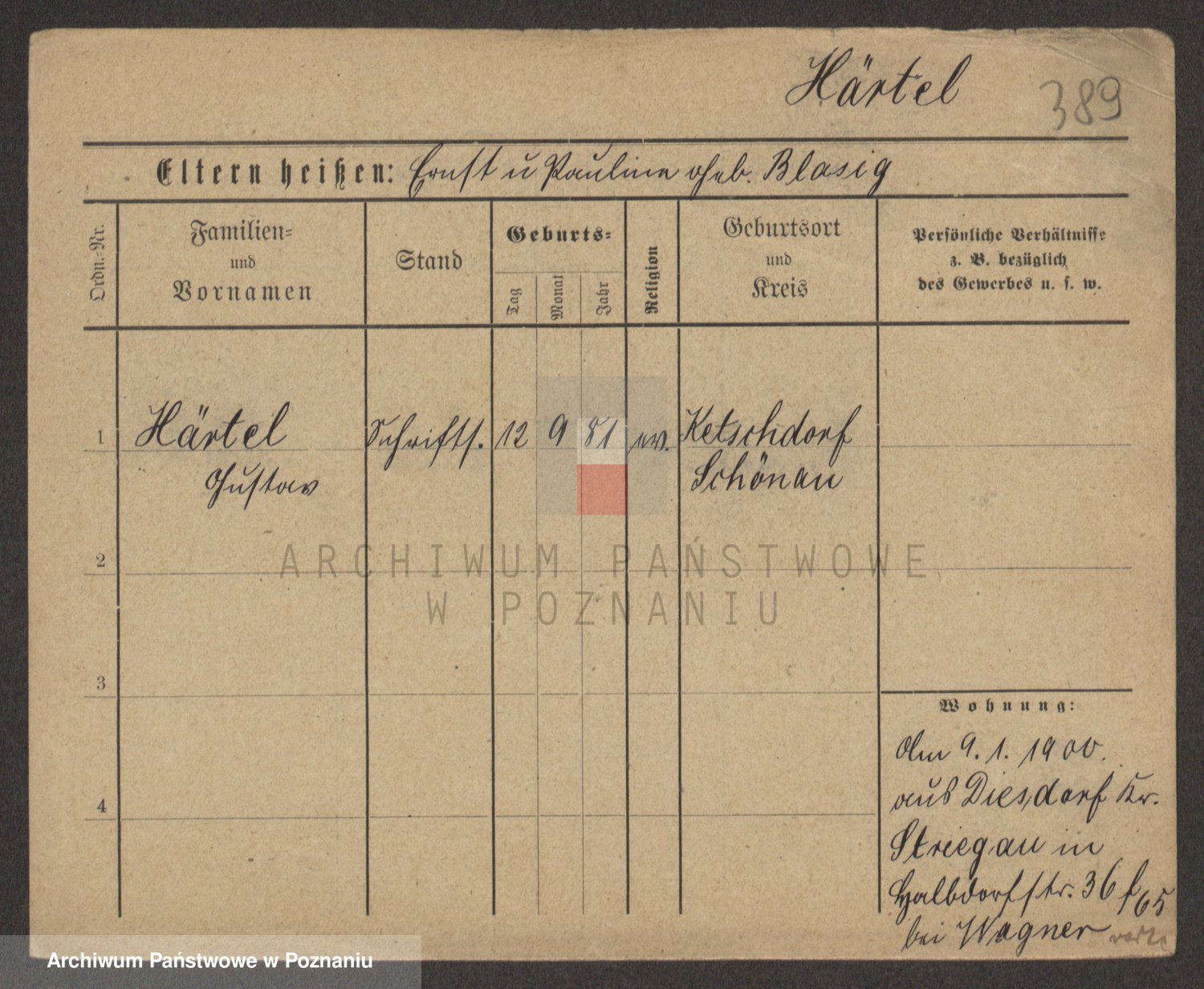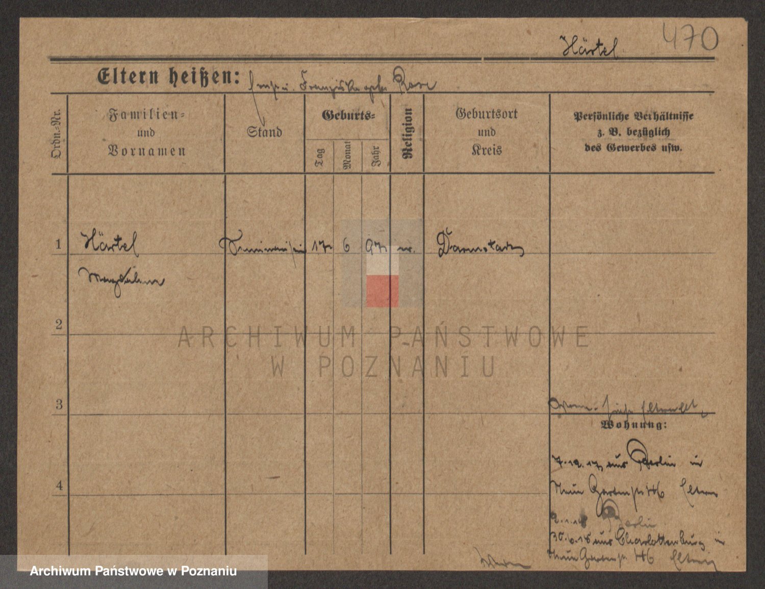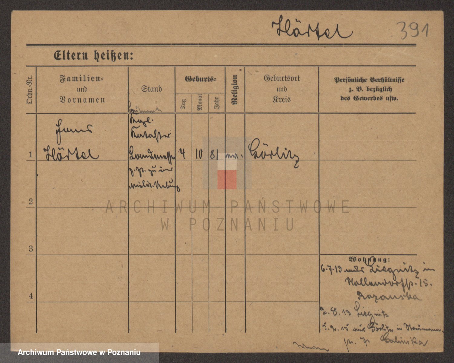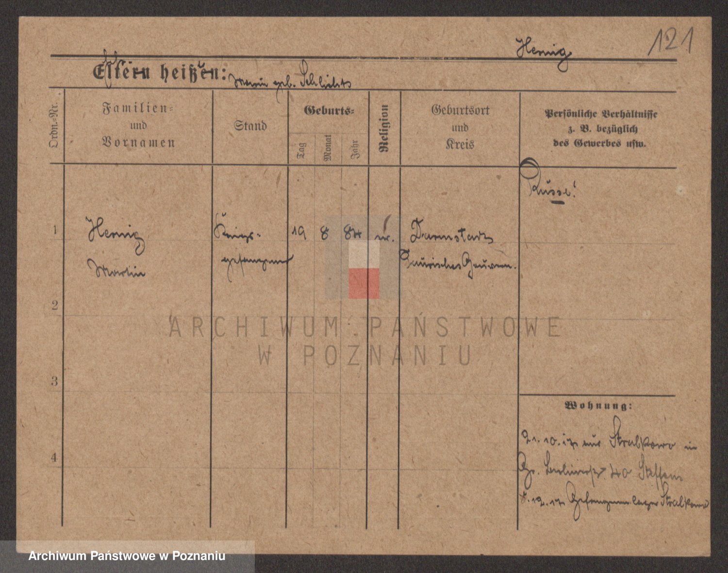 Podgląd karty osobowej dostępny jest po kliknięciu na nazwisko lub ikonkę karty. Można dokonywać powiększenia (ikony na górze) lub przechodzić między kolejnymi skanami (strzałki po bokach).