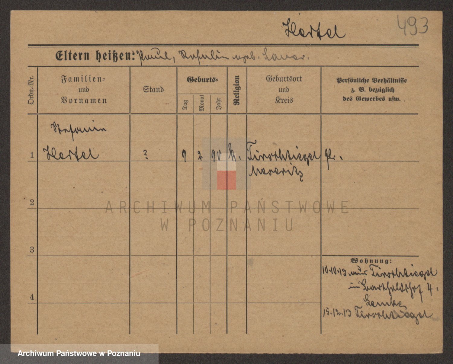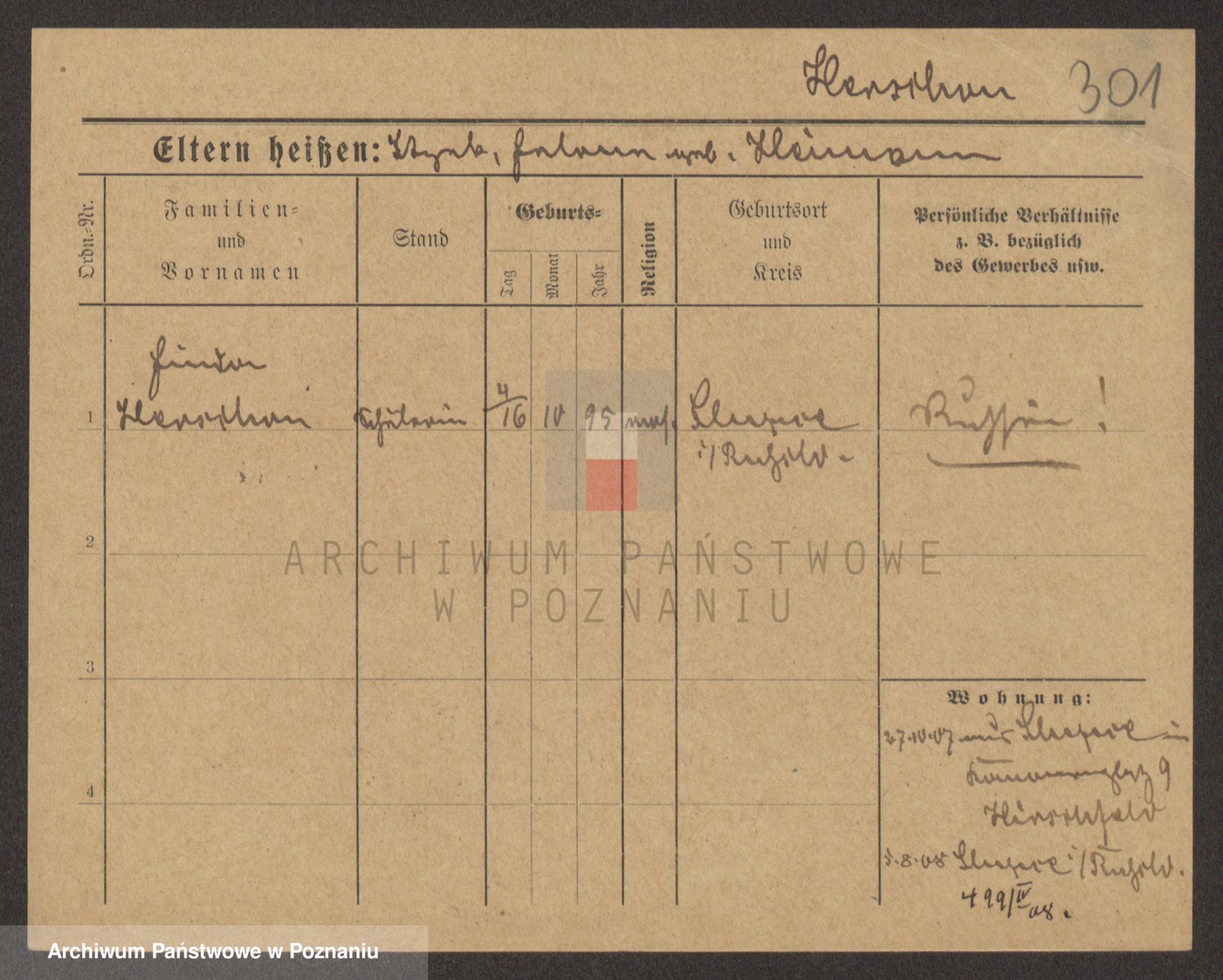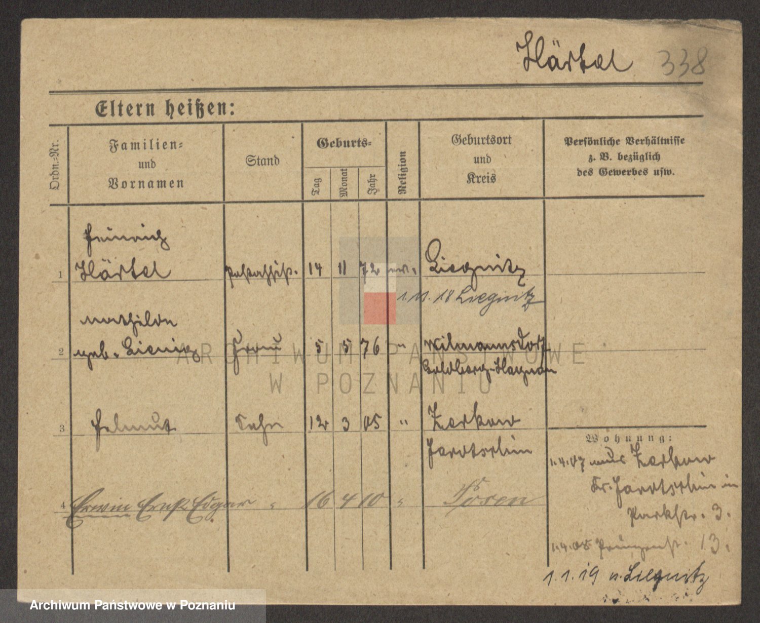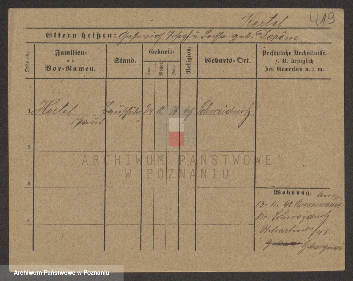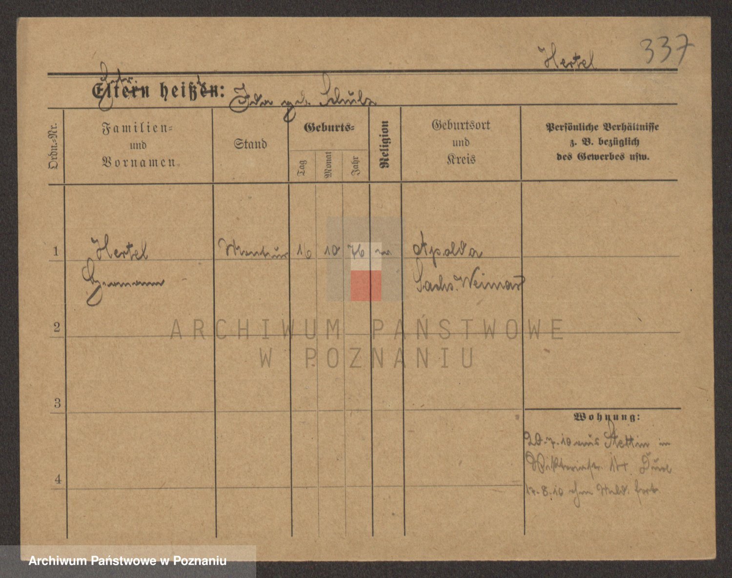 Podgląd karty osobowej dostępny jest po kliknięciu na nazwisko lub ikonkę karty. Można dokonywać powiększenia (ikony na górze) lub przechodzić między kolejnymi skanami (strzałki po bokach).